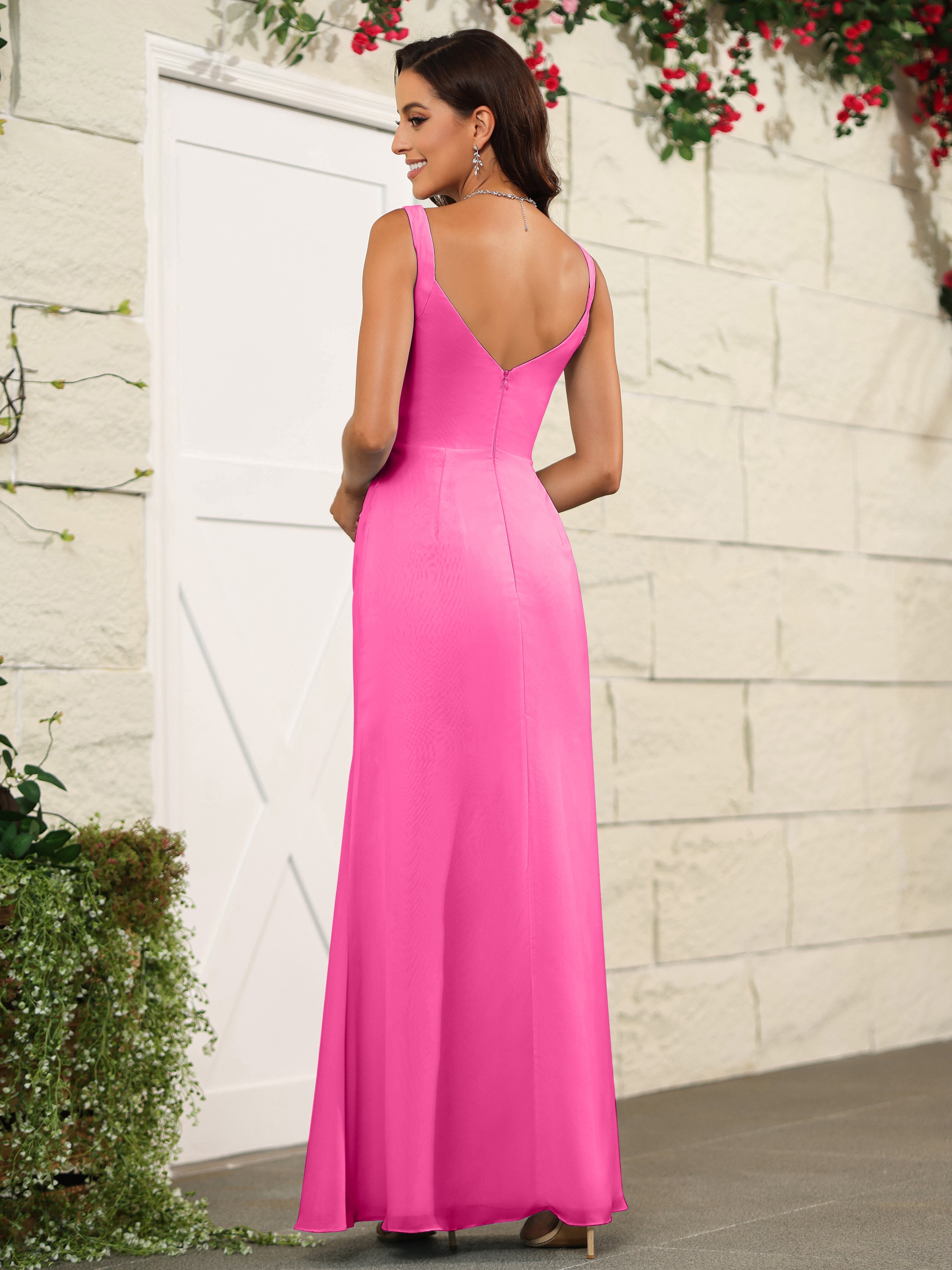 These elegant bridesmaid dresses feature a sweetheart neckline and delicate spaghetti straps, crafted from light and flowing chiffon fabric that is perfect for formal occasions. With its sophisticated design and lightweight material, this dress offers both style and comfort for your special event. Experience the perfect combination of grace and ease with these elegant bridesmaid dresses.