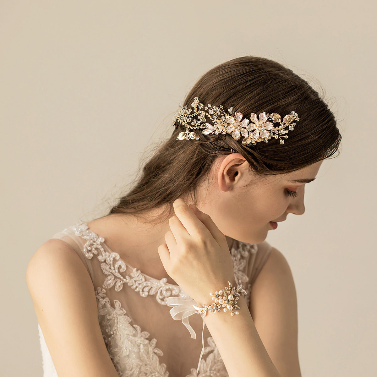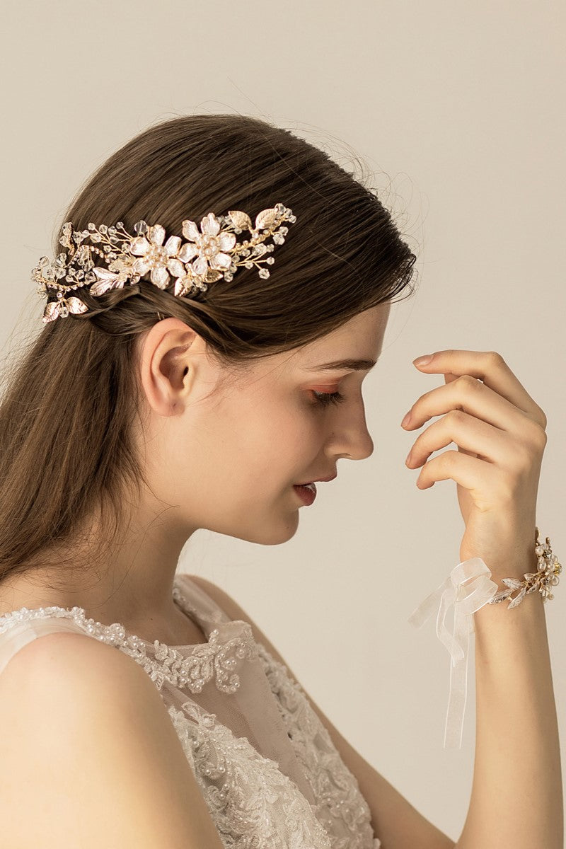 Golden Floral Wedding Headpiece