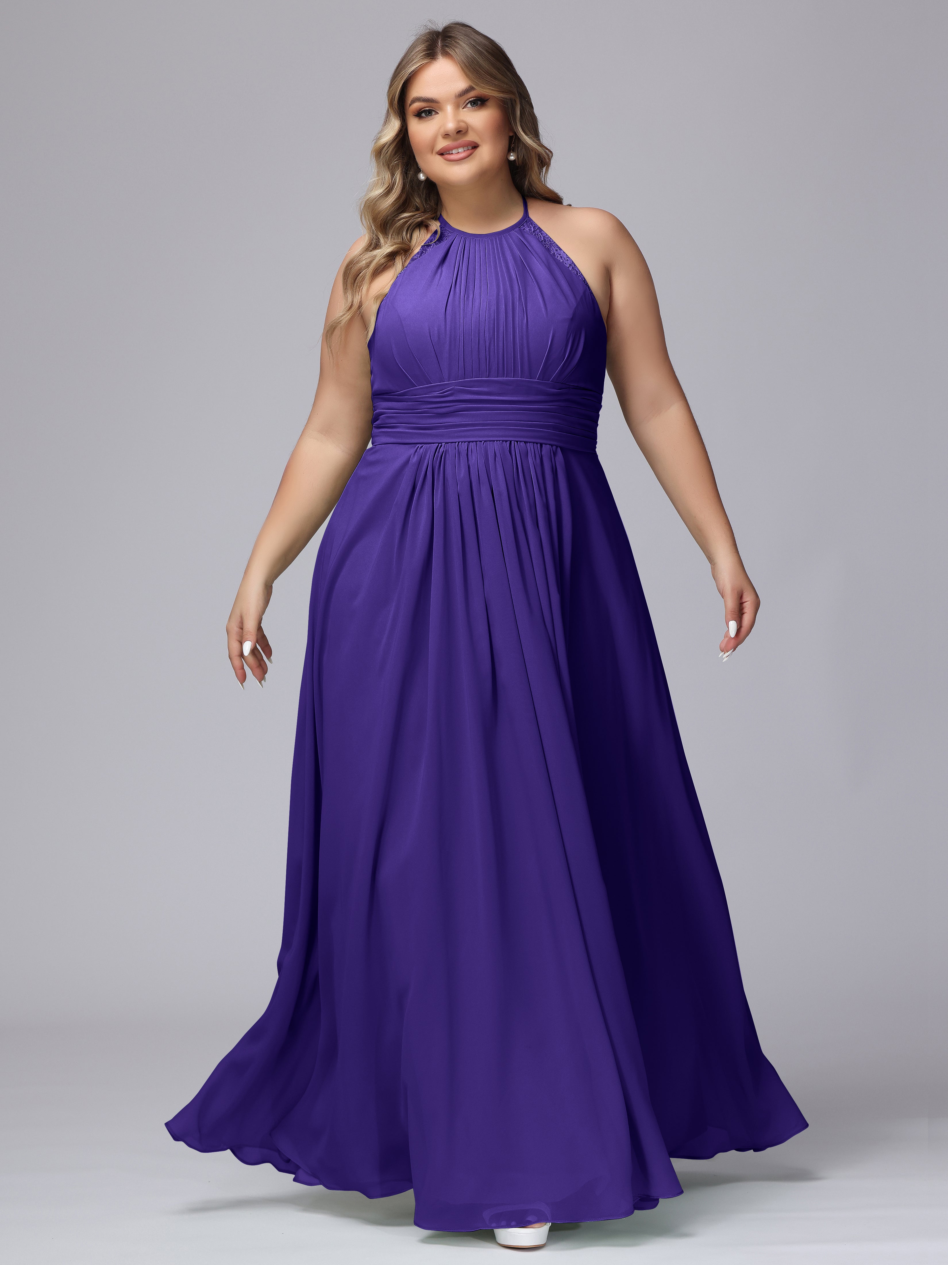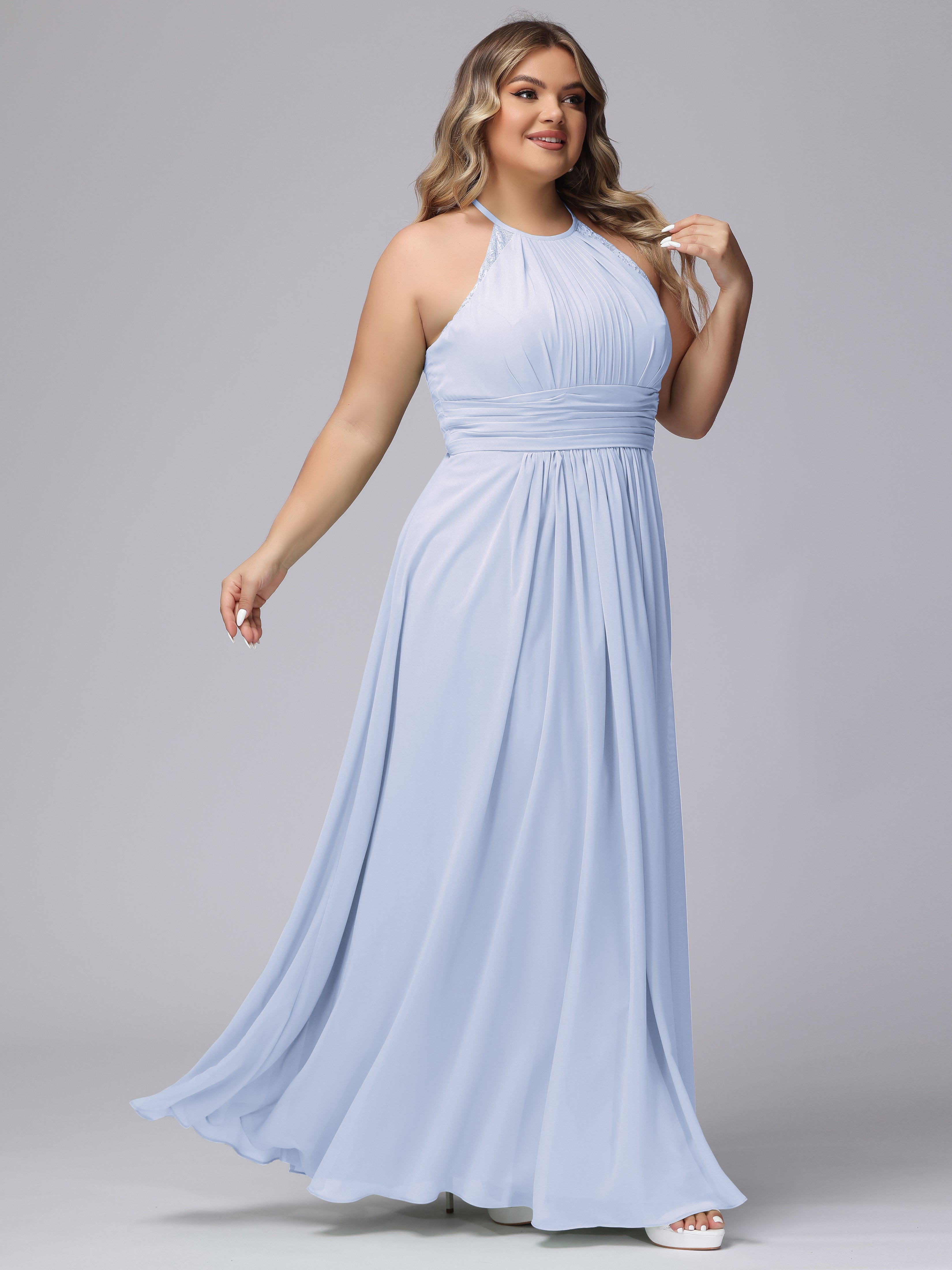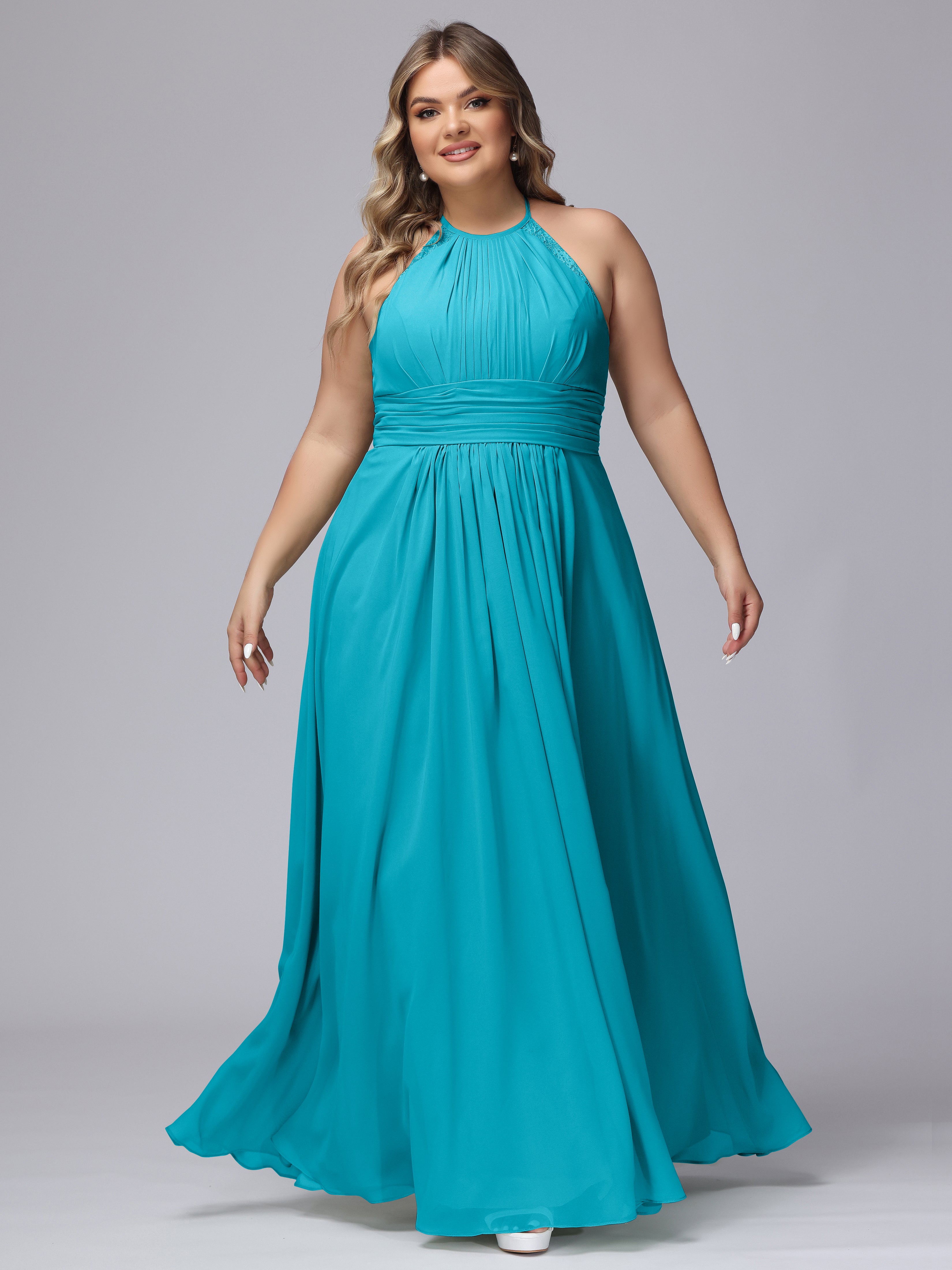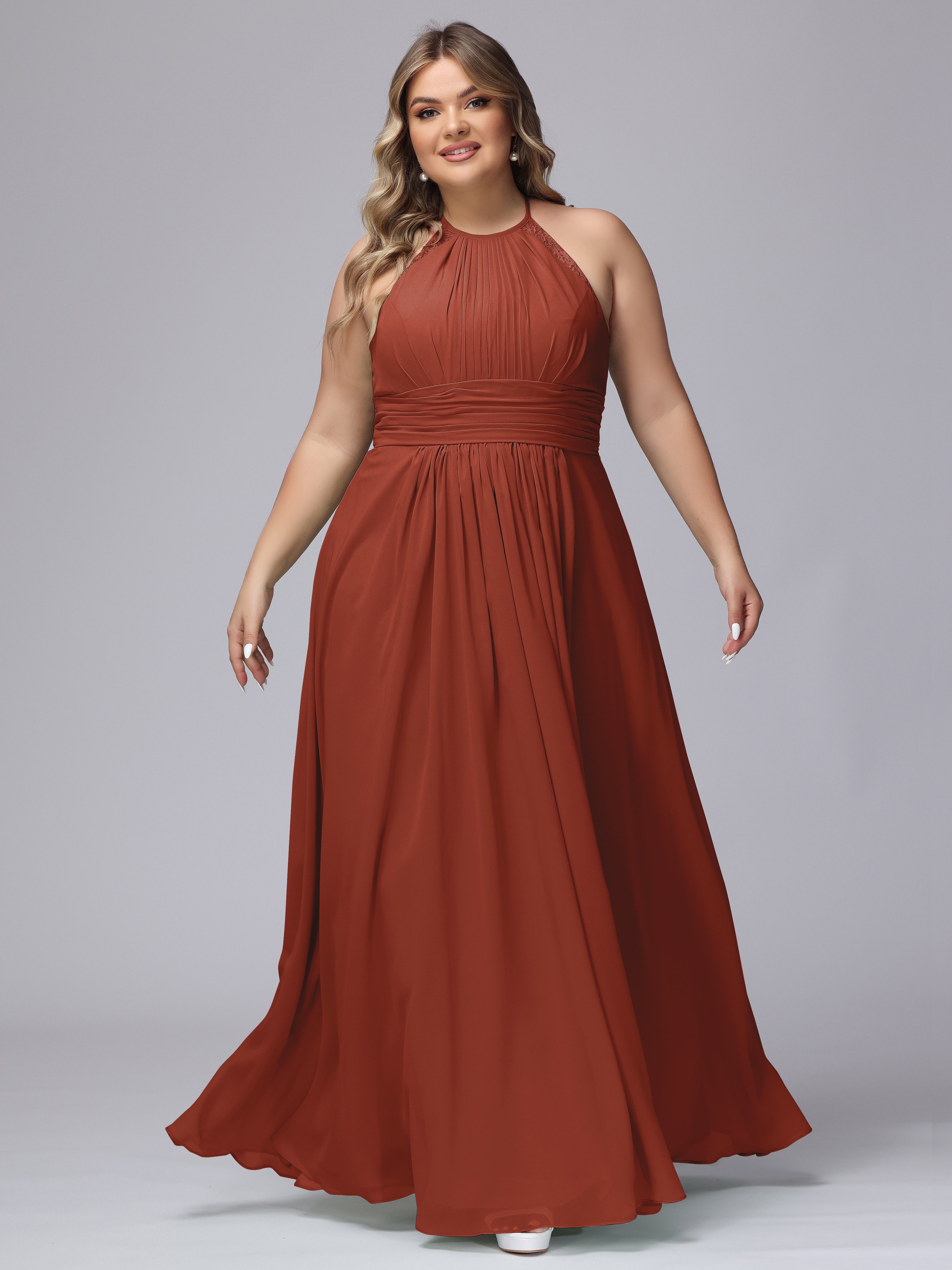 Halter Sleeveless Long Plus Size Chiffon Bridesmaid Dresses