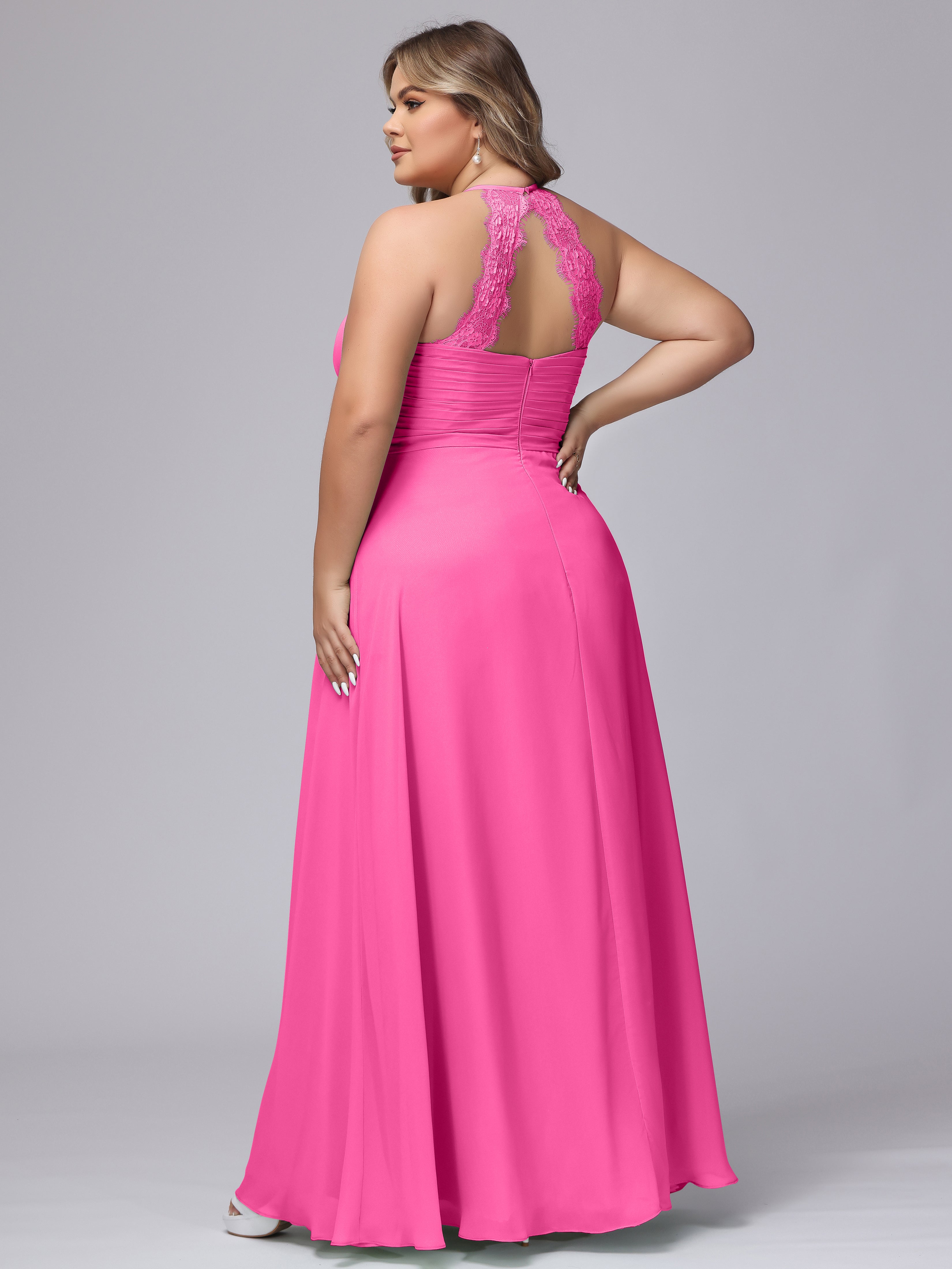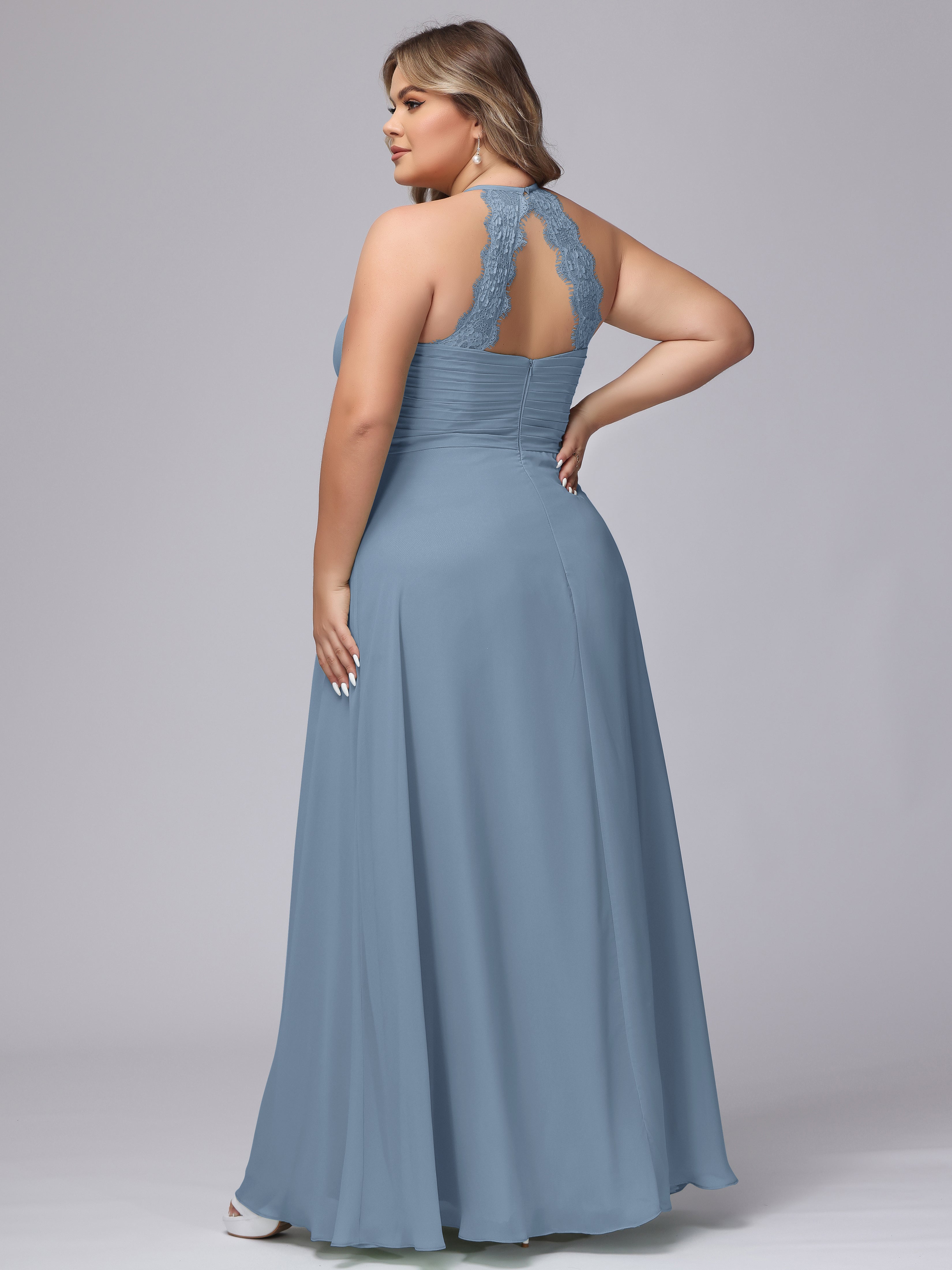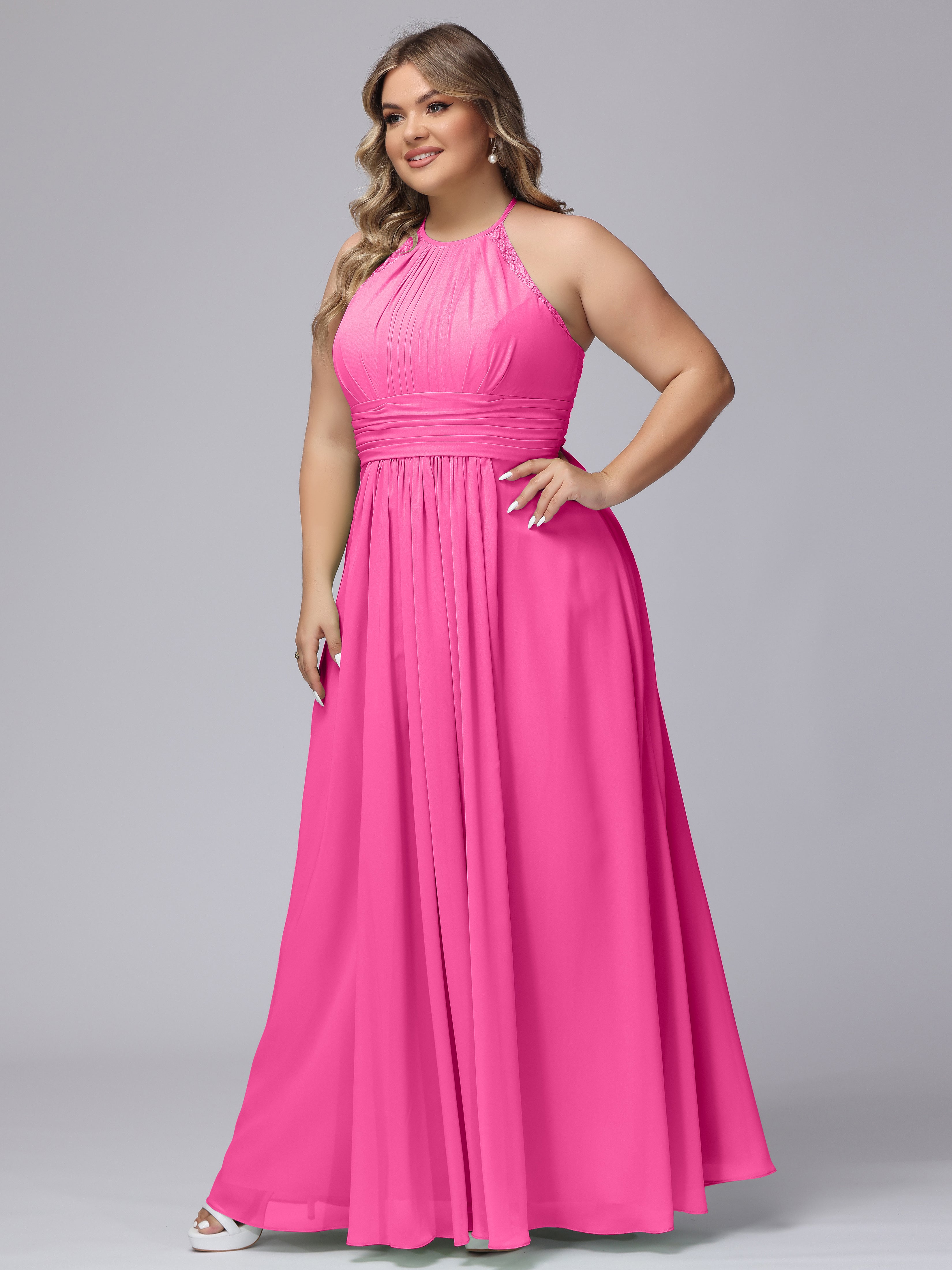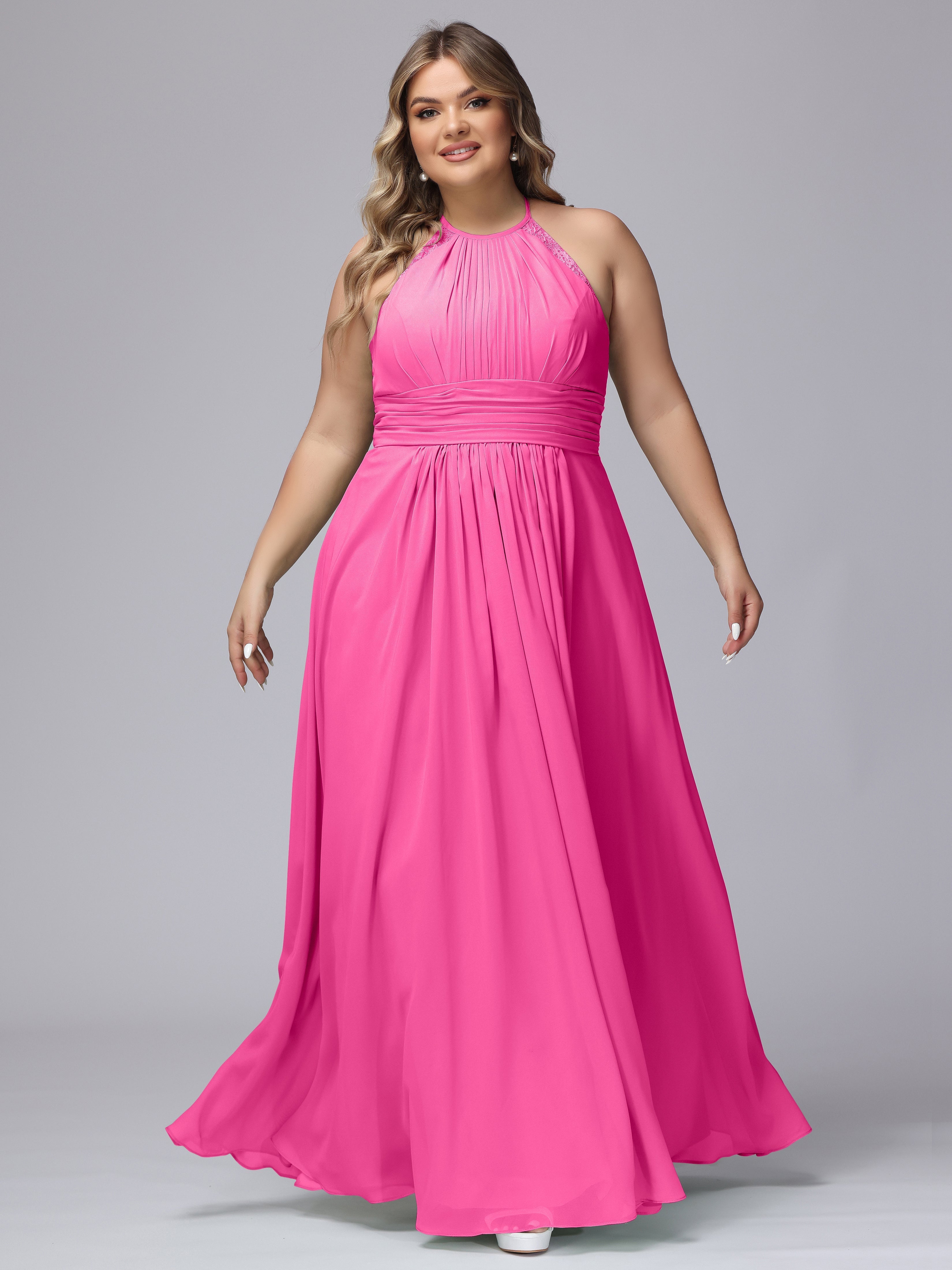 Halter Sleeveless Long Plus Size Chiffon Bridesmaid Dresses