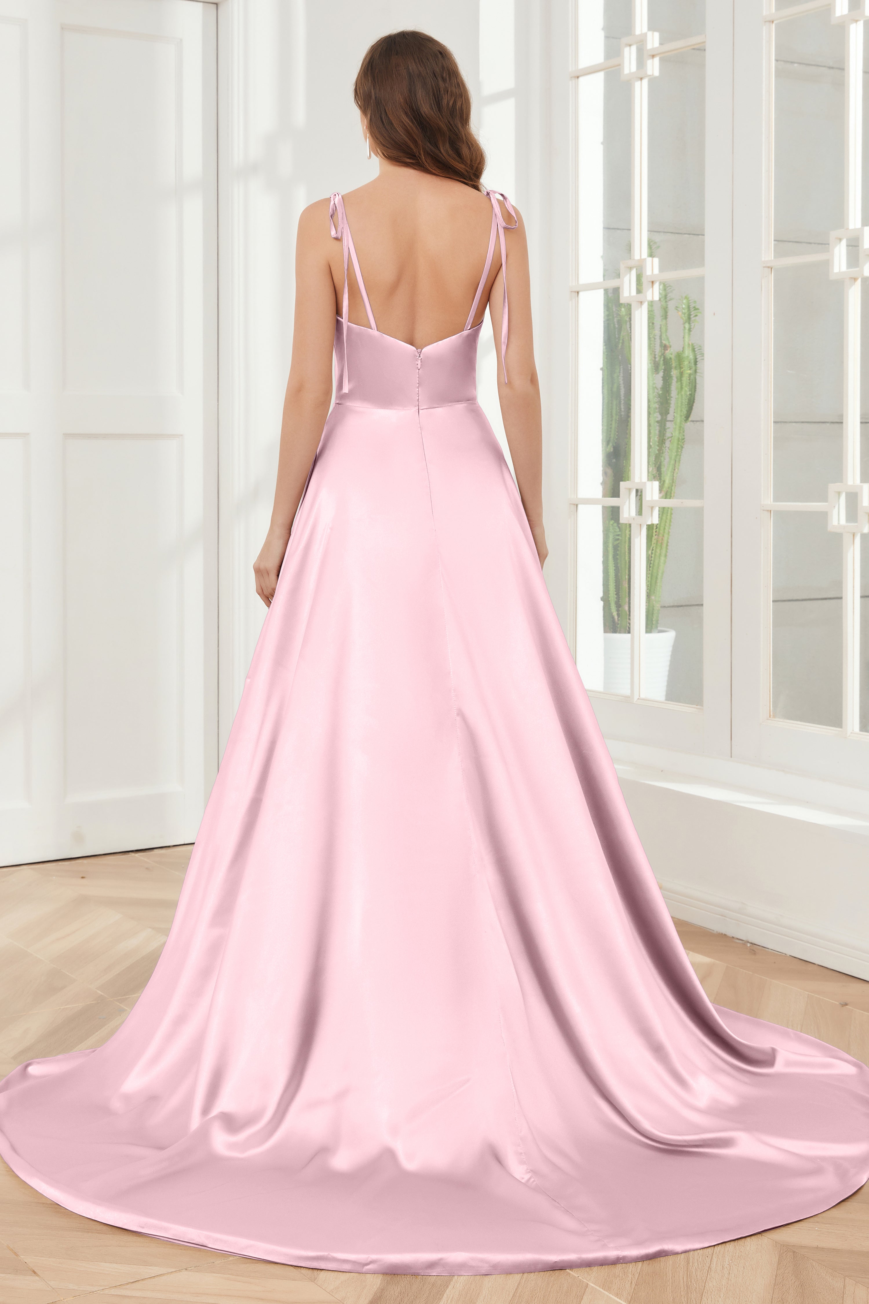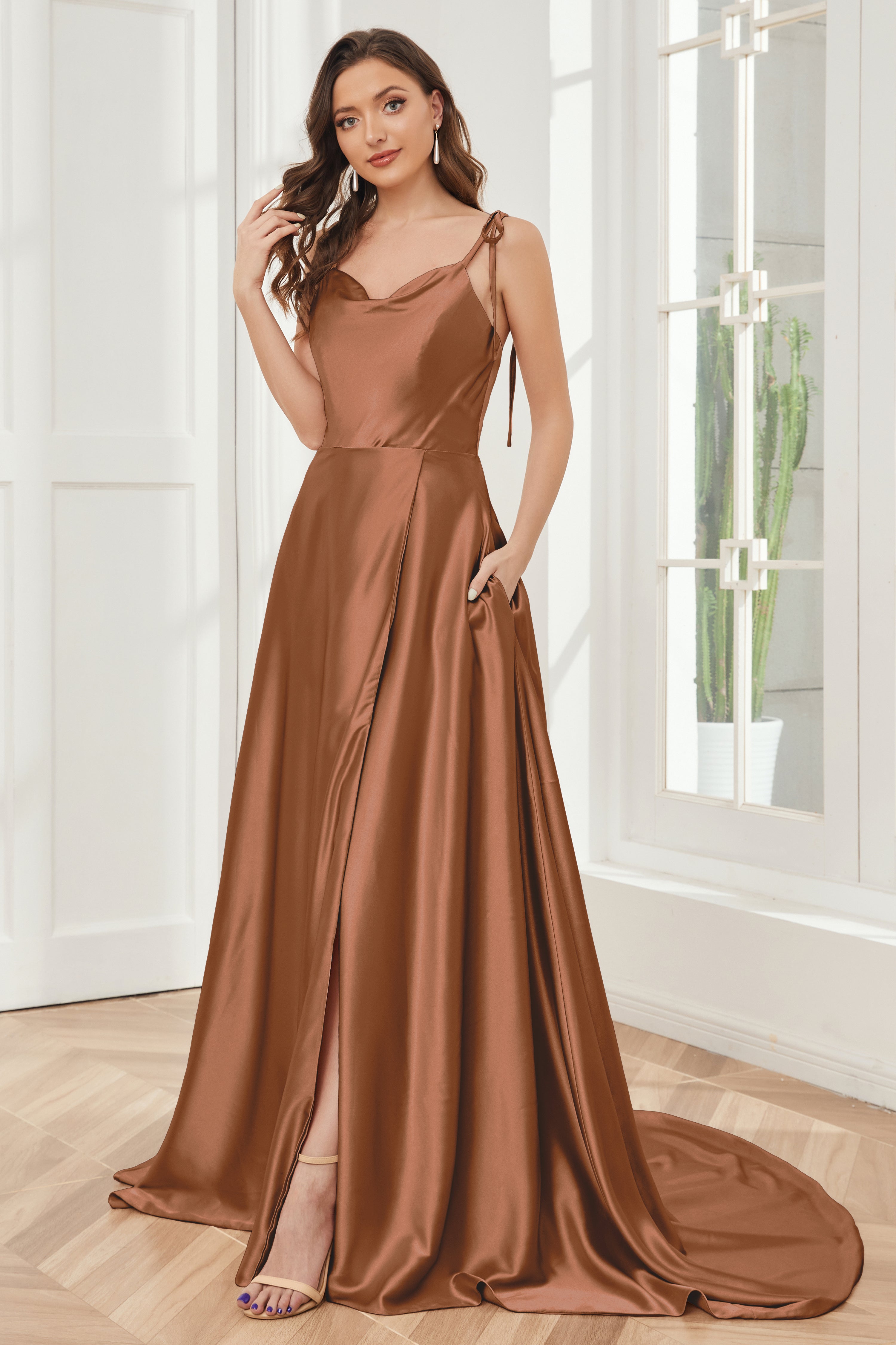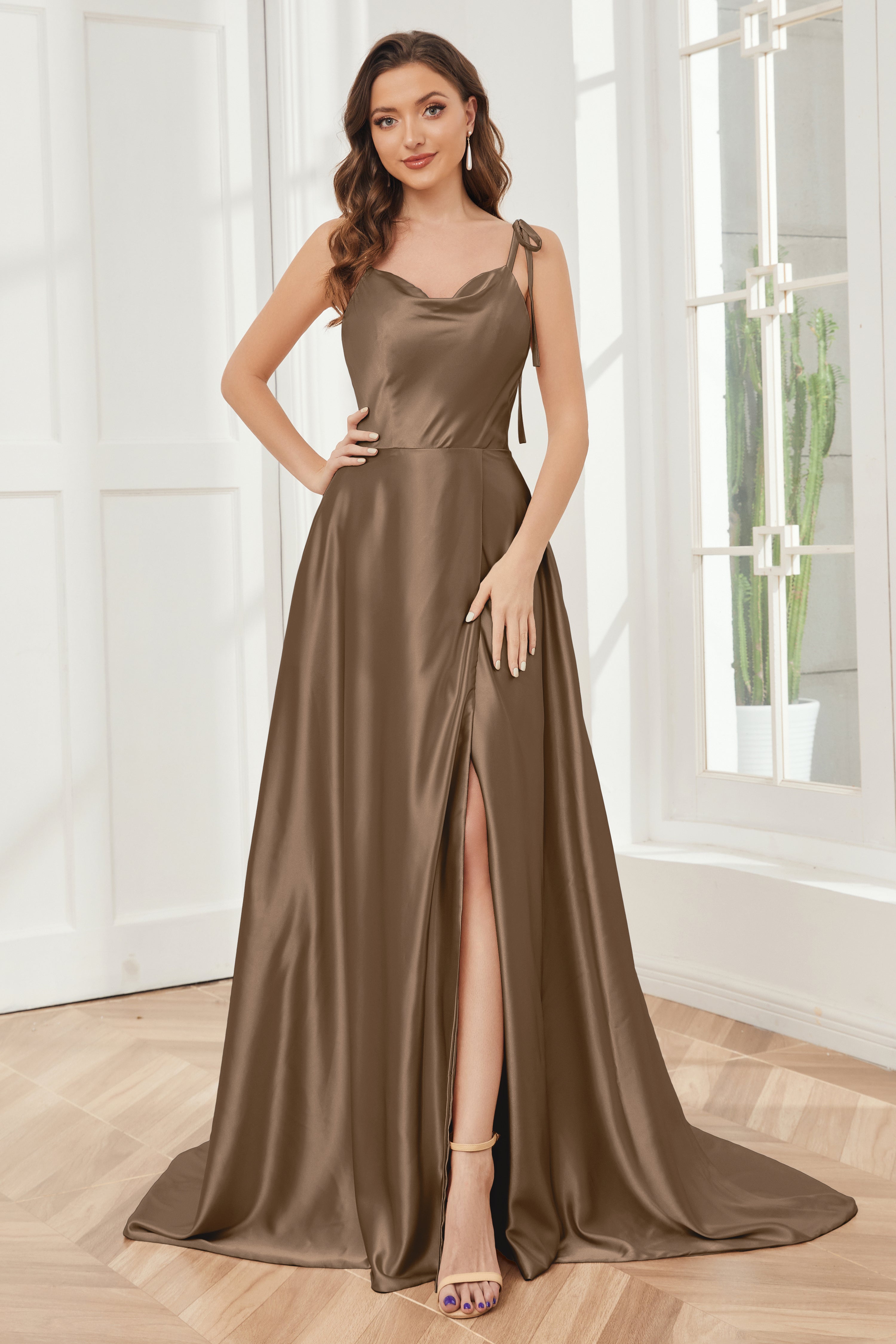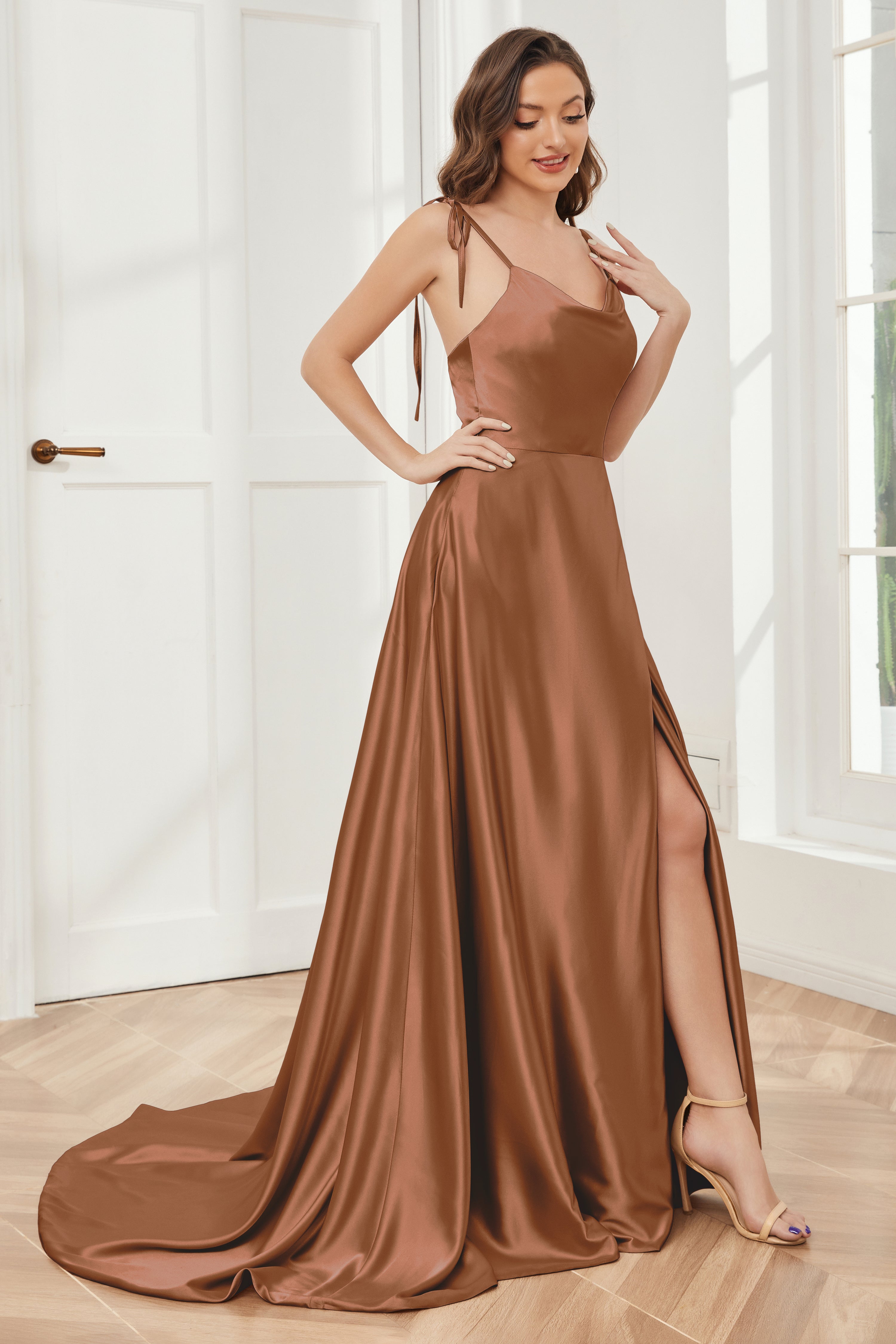 Spaghetti Straps Soft Satin Bridesmaid Dress with Train