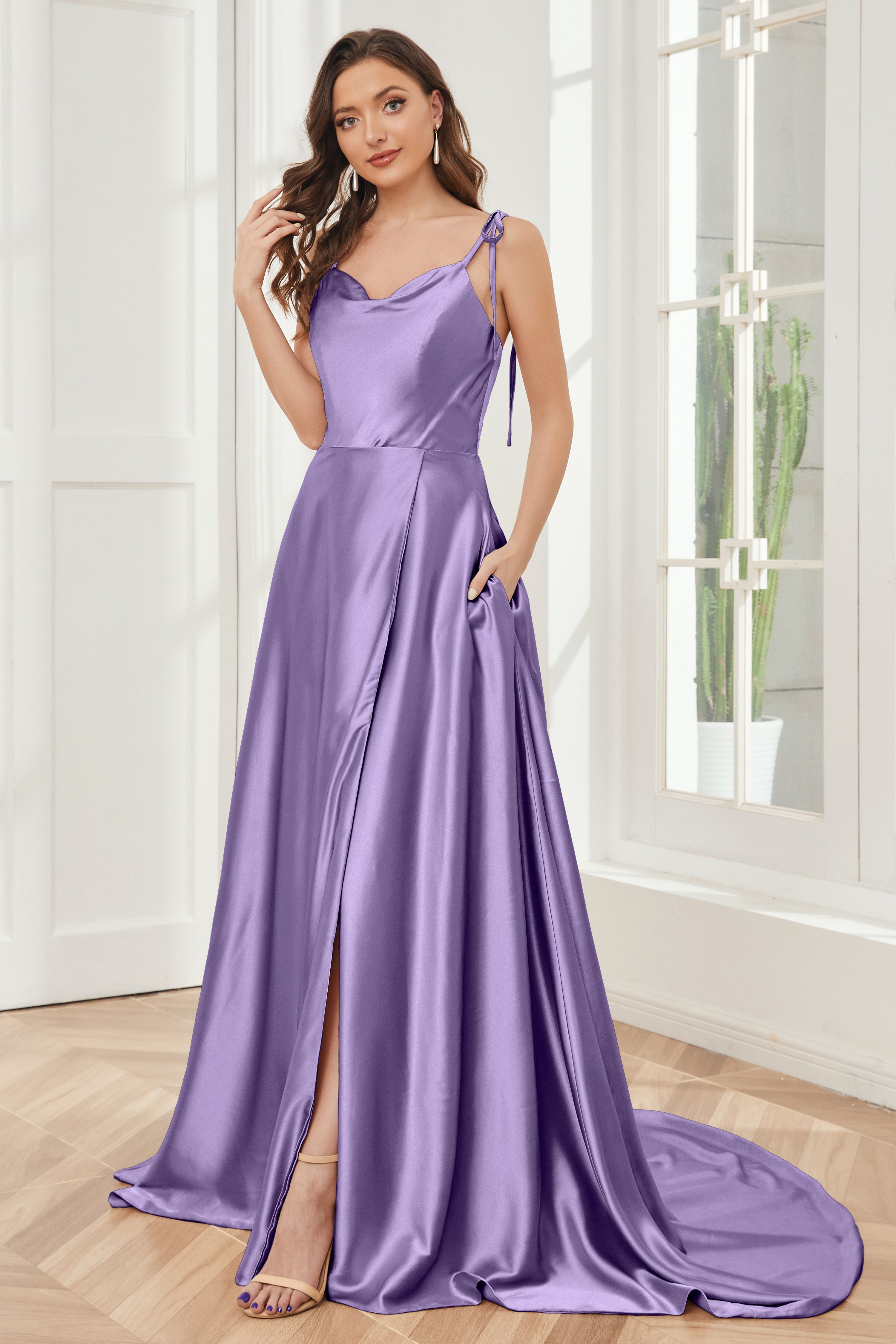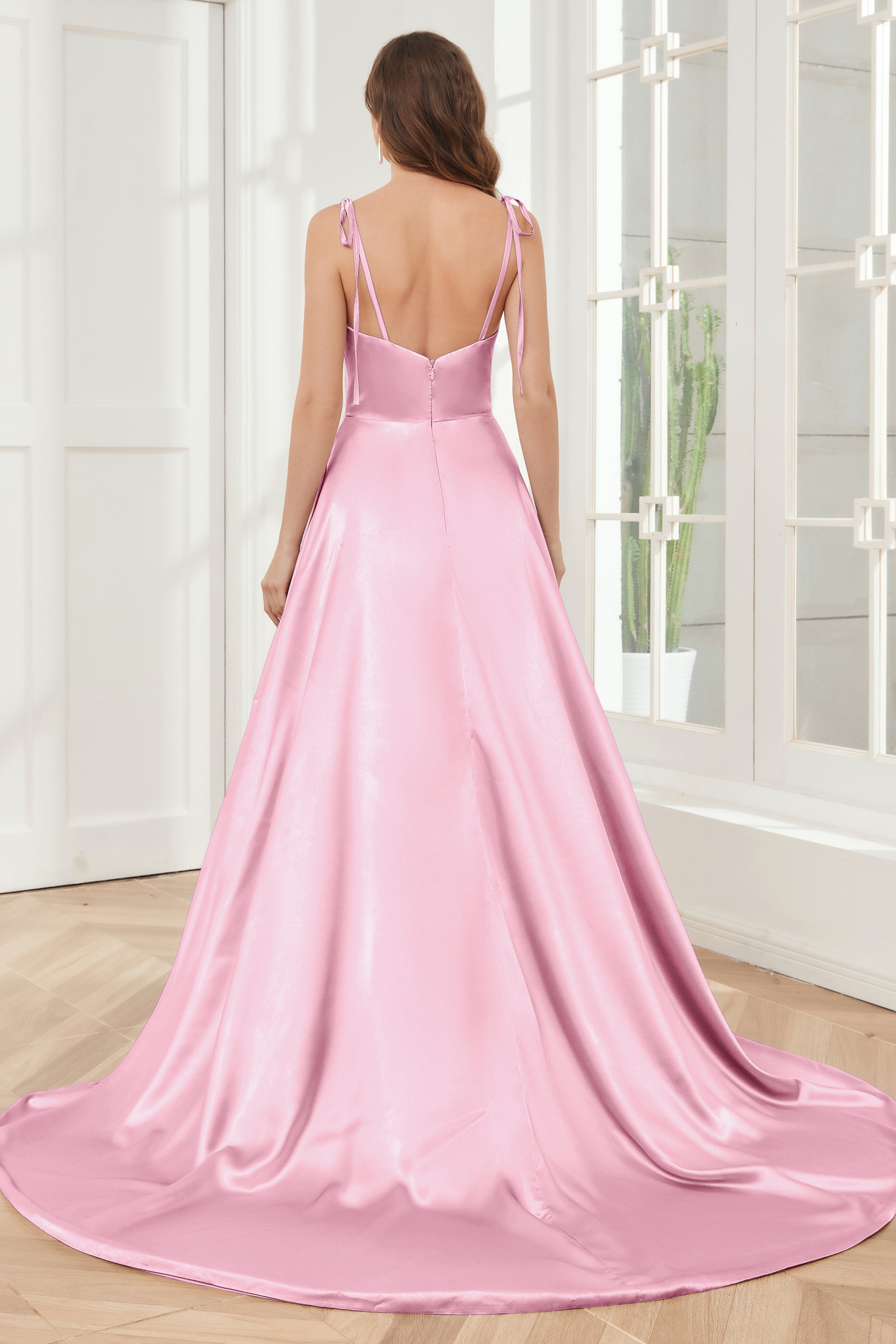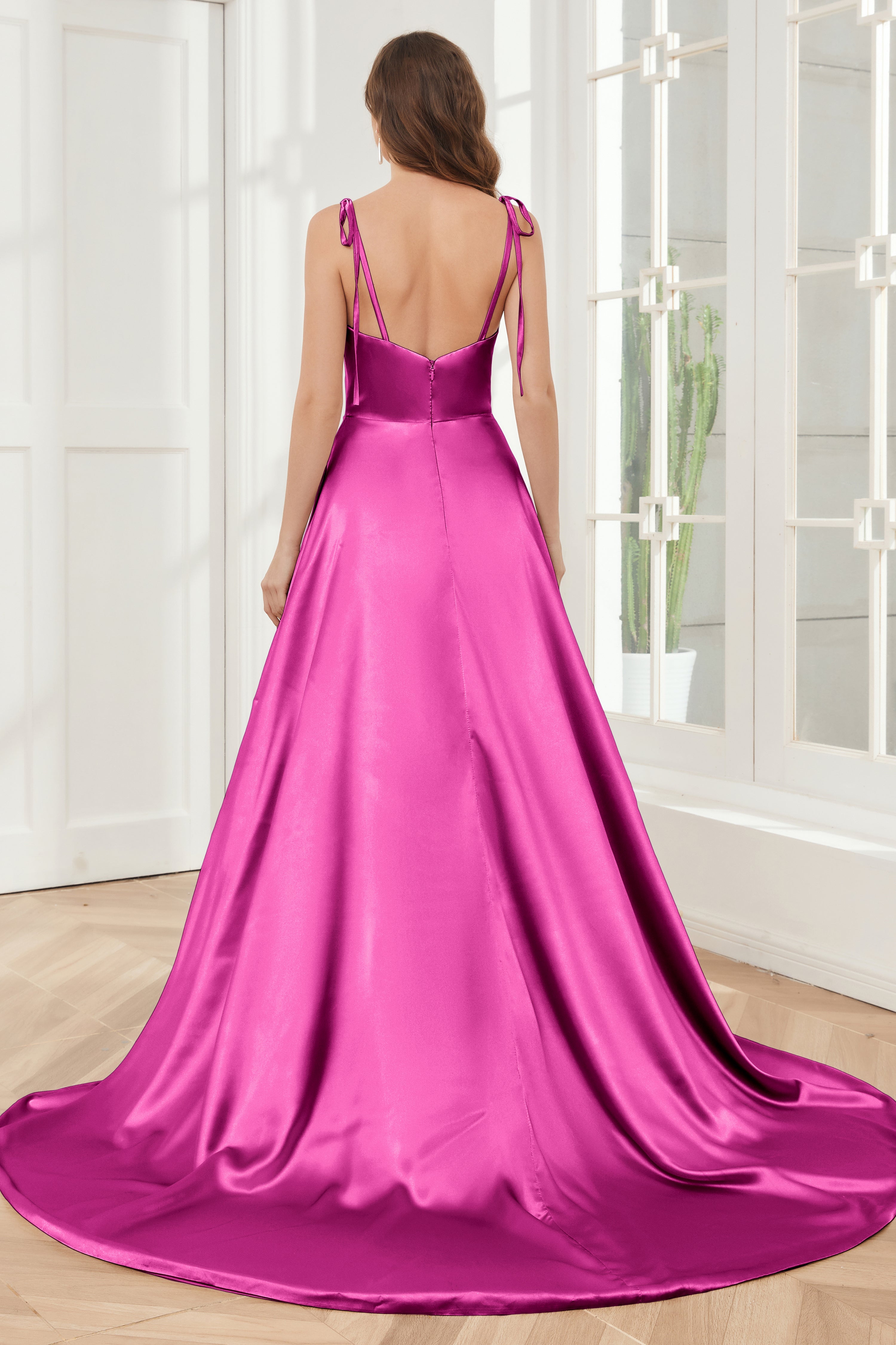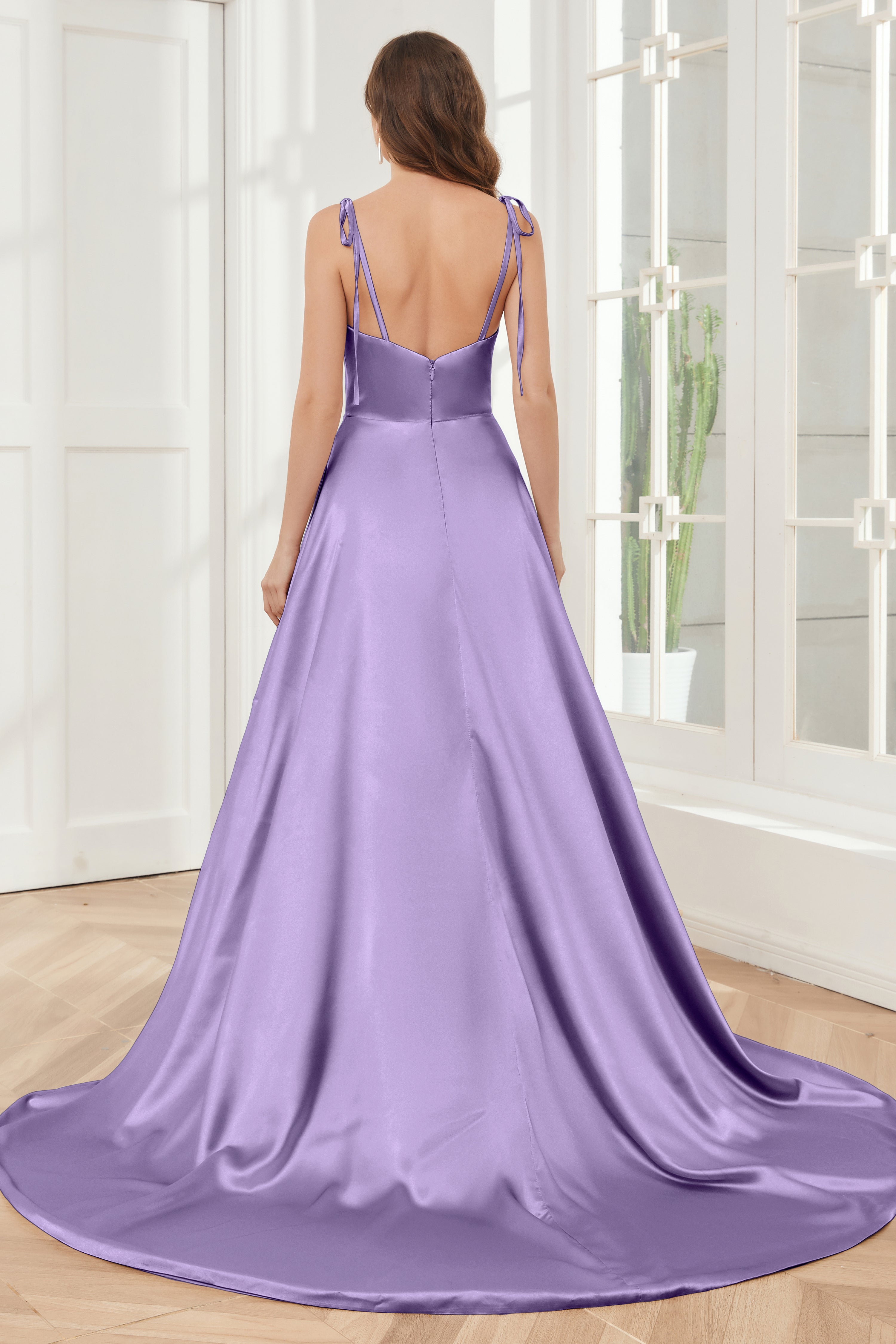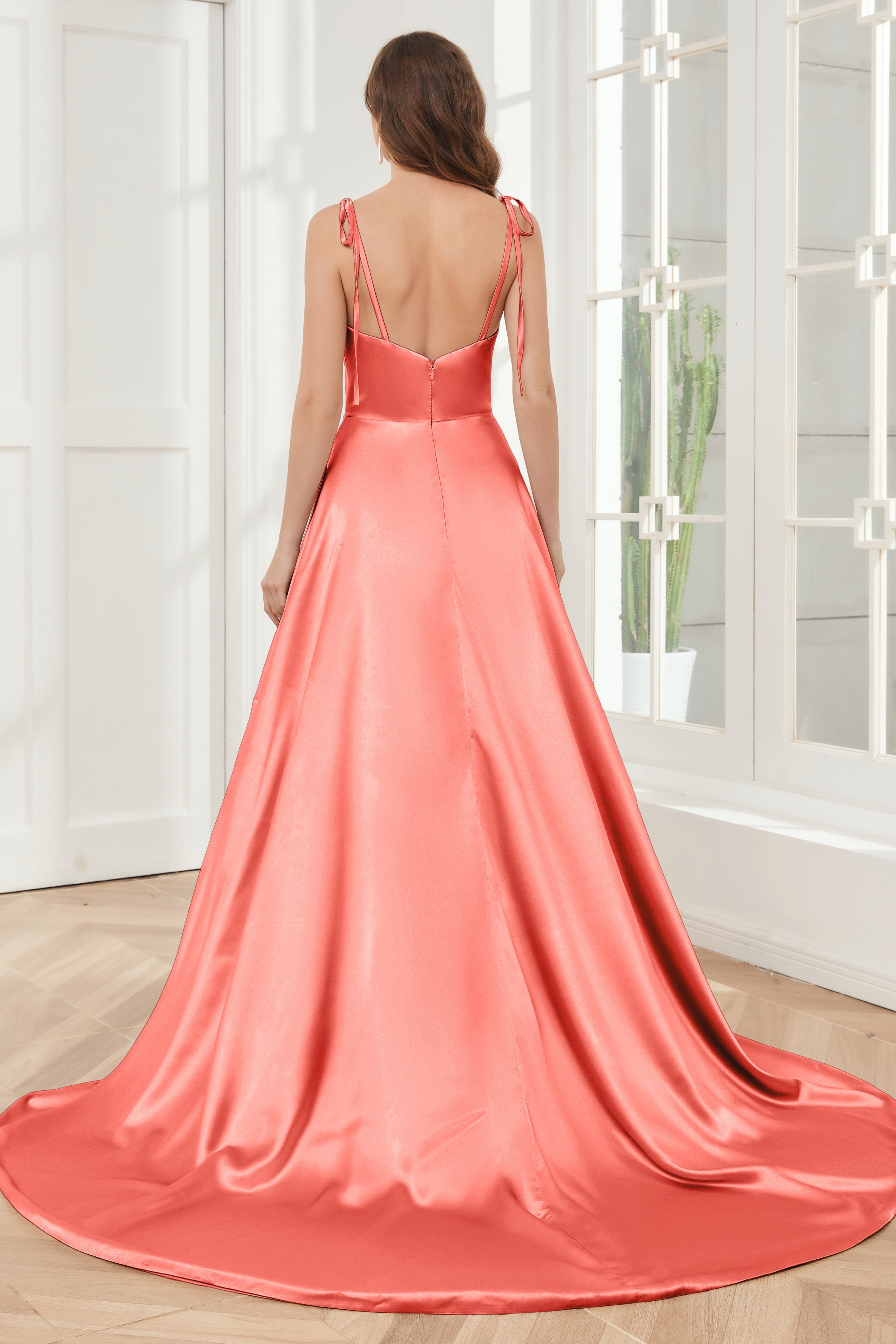 Spaghetti Straps Soft Satin Bridesmaid Dress with Train
