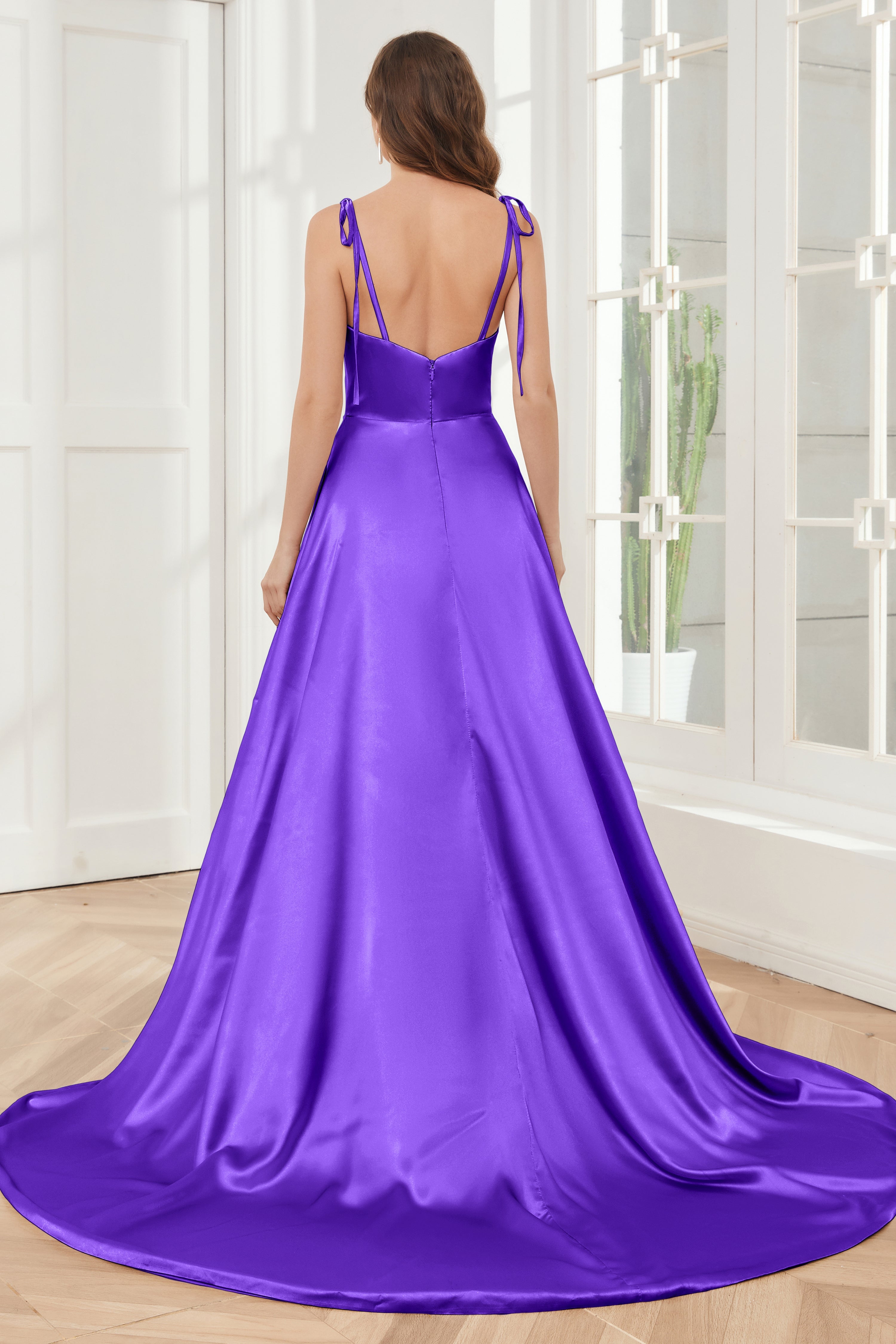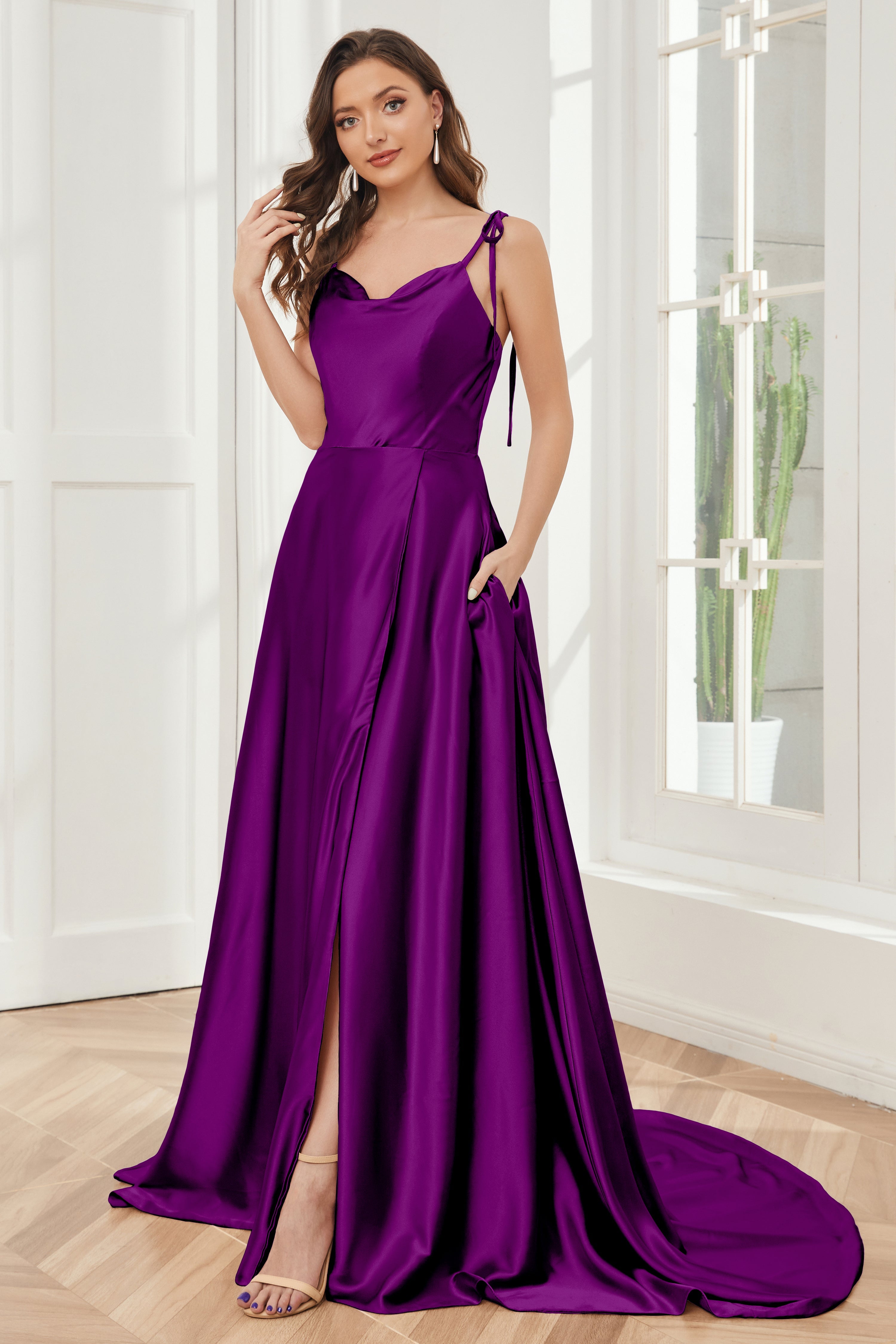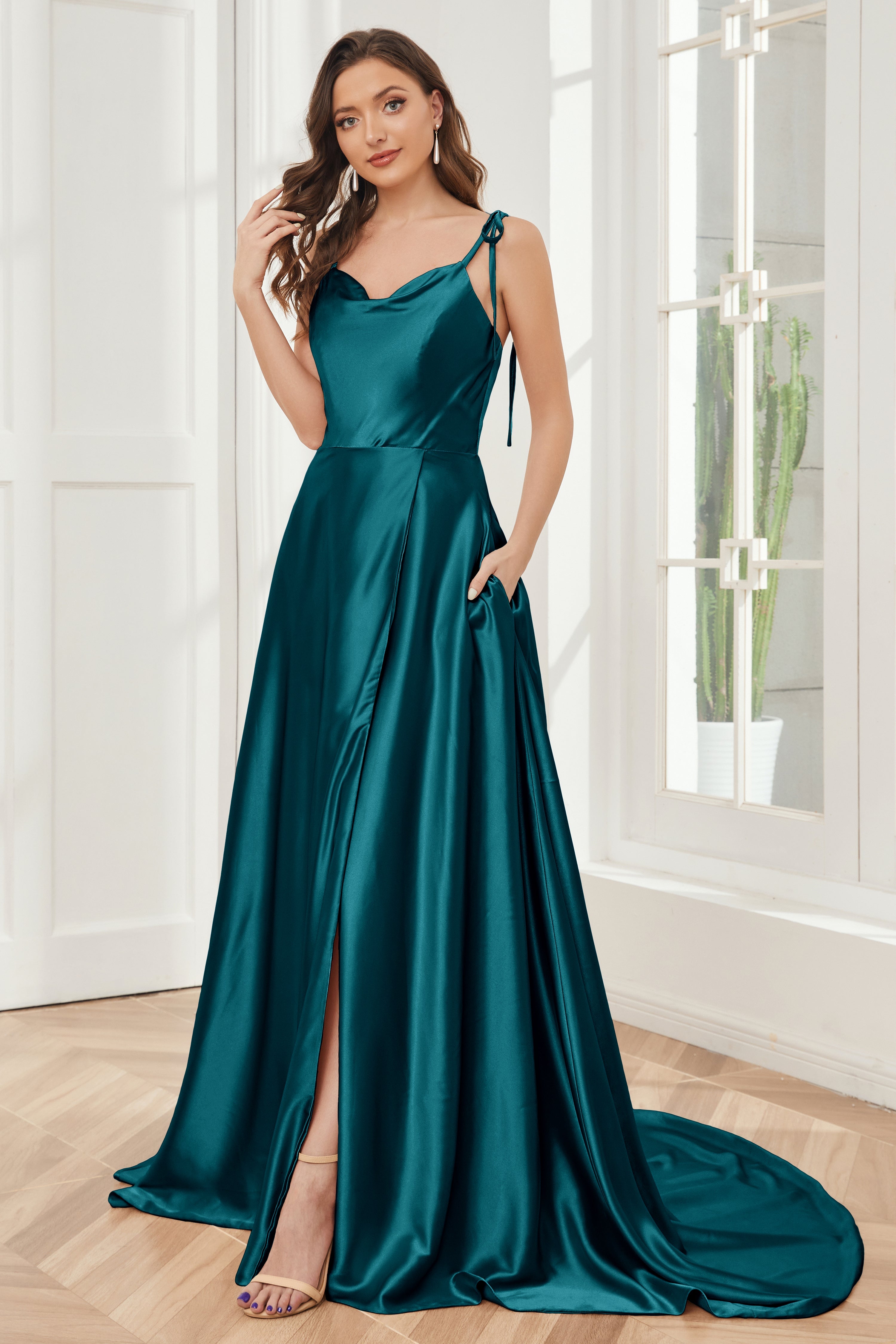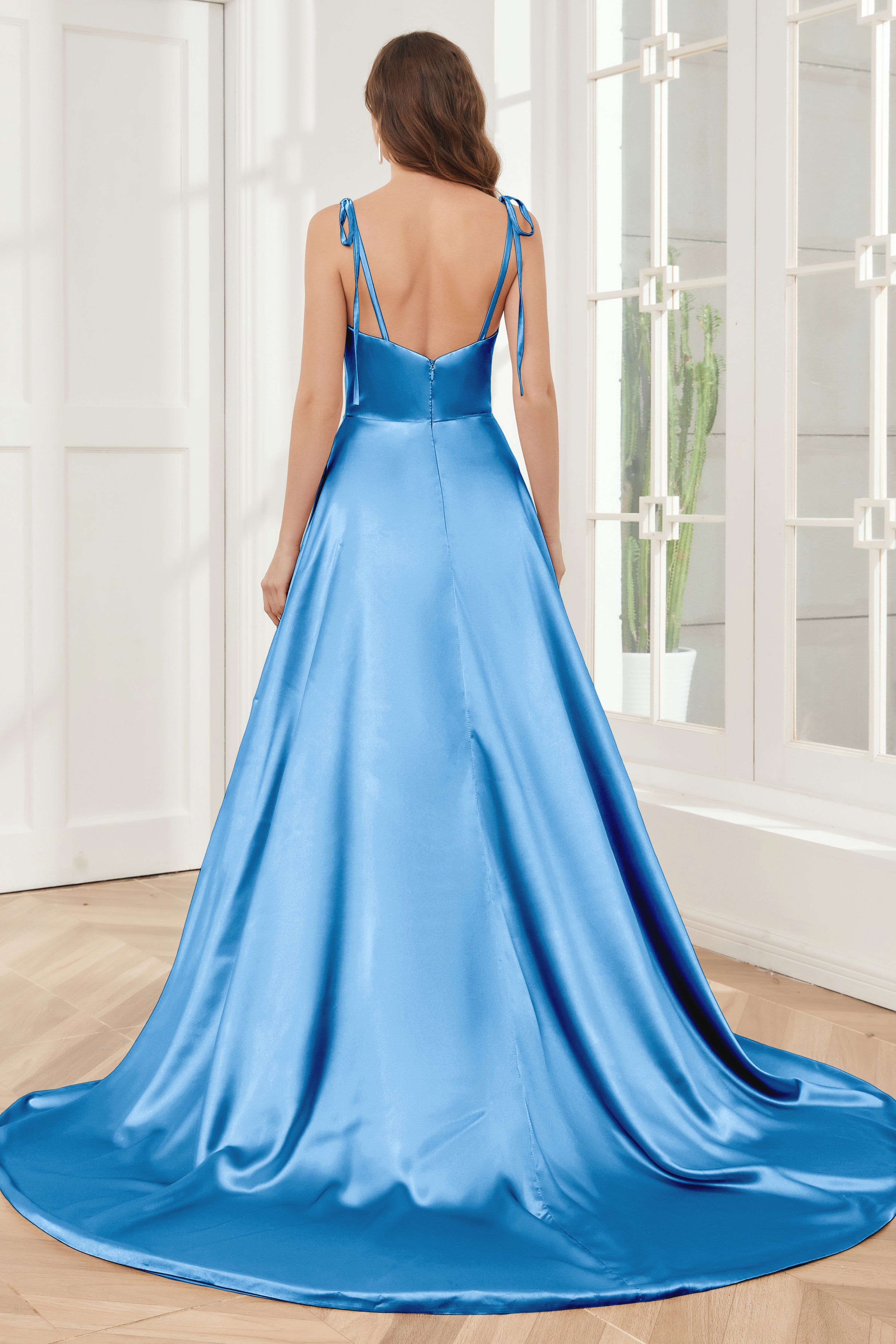 Spaghetti Straps Soft Satin Bridesmaid Dress with Train