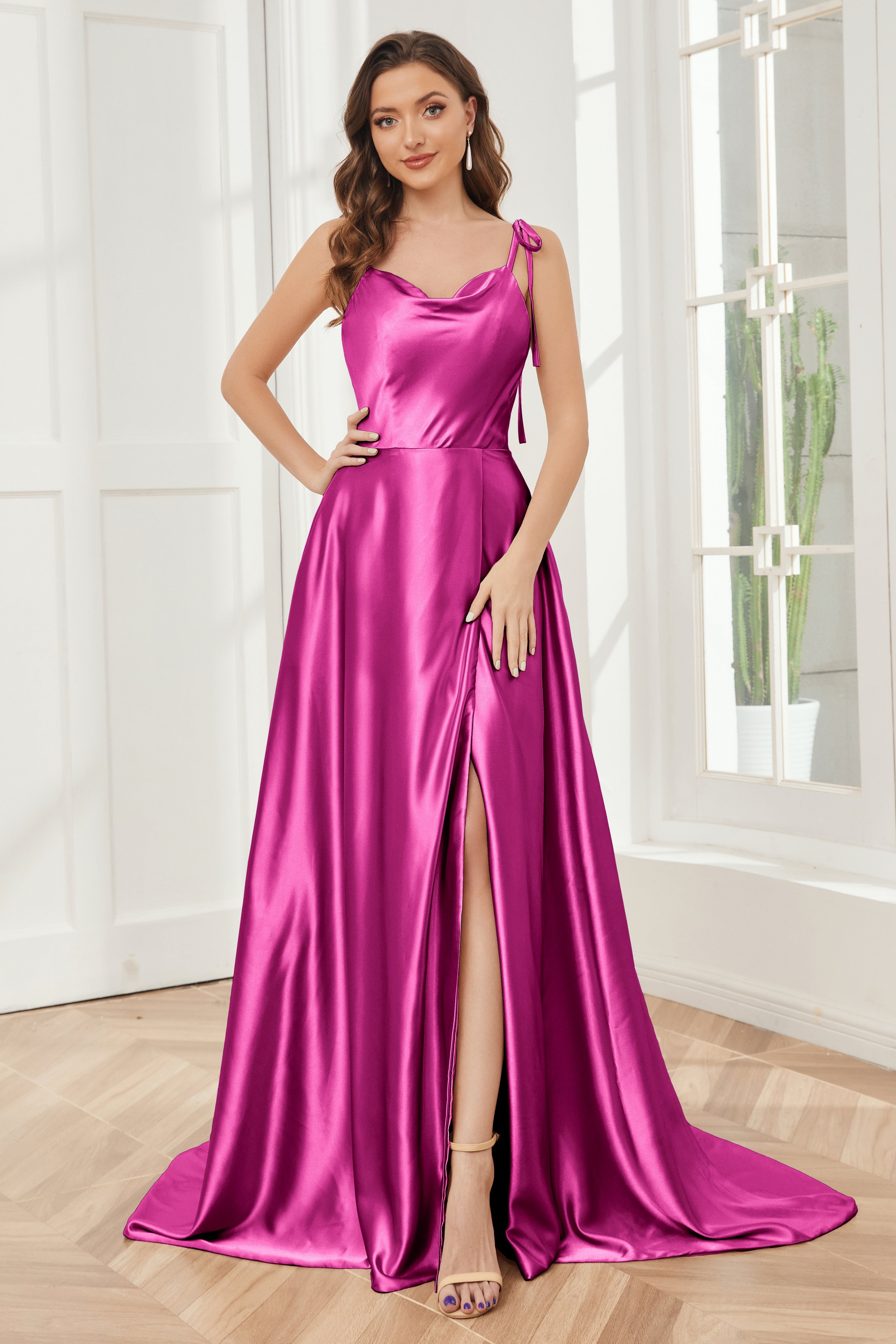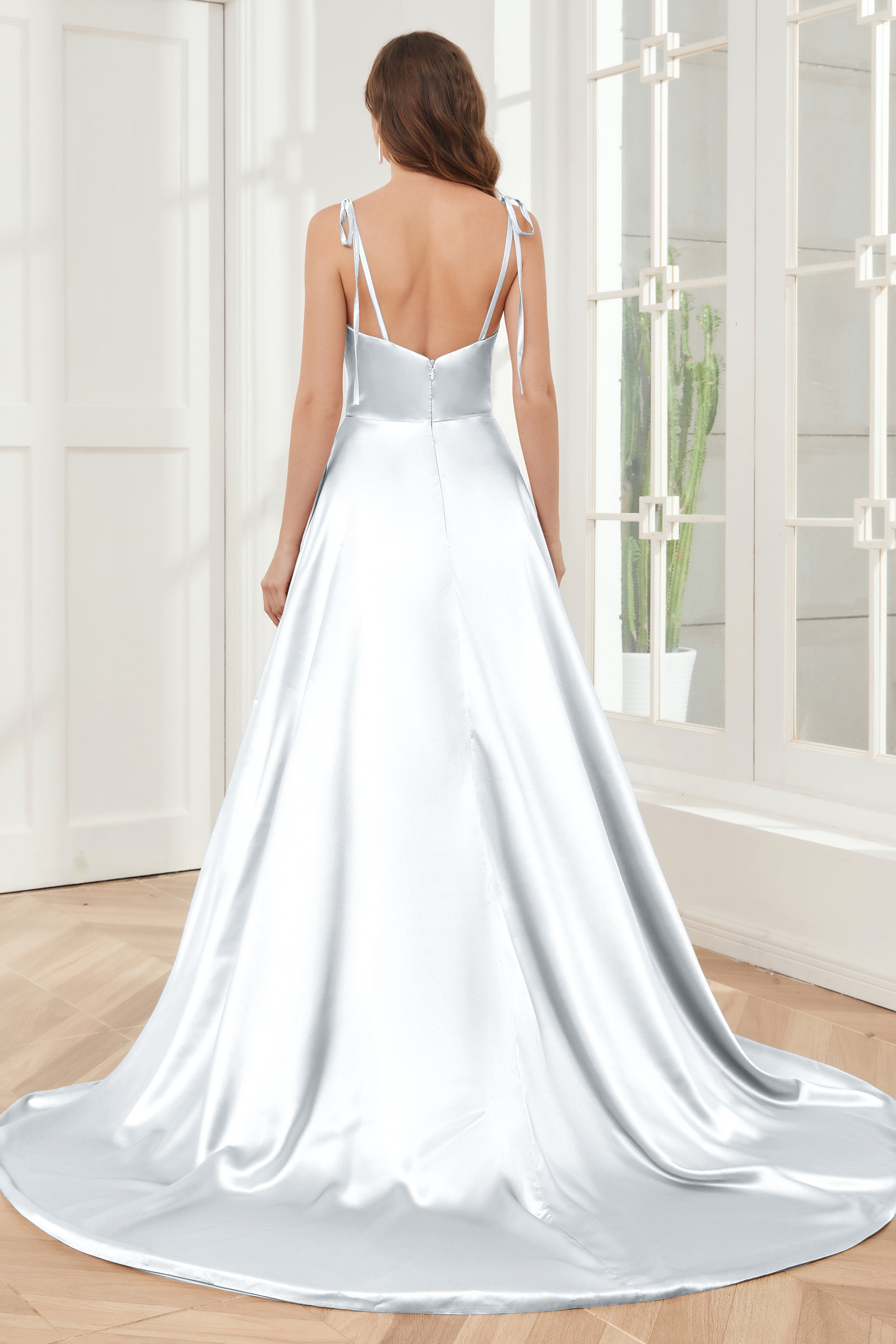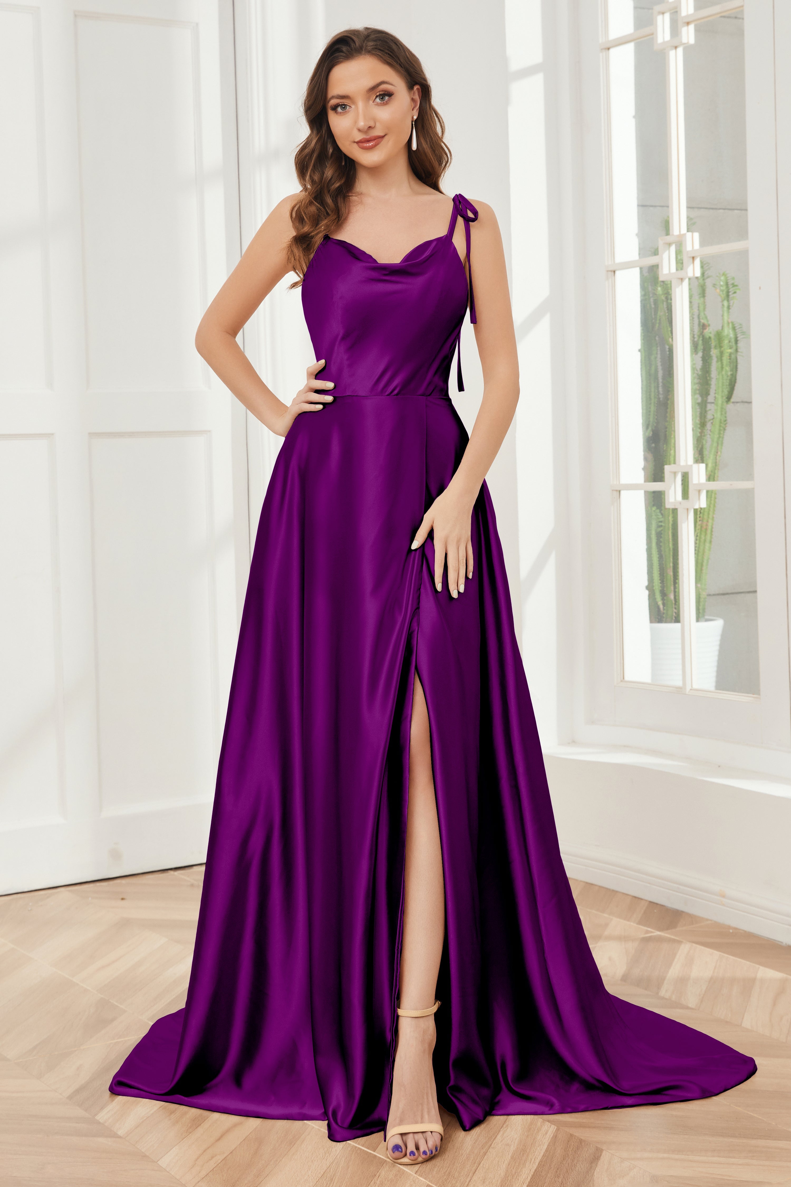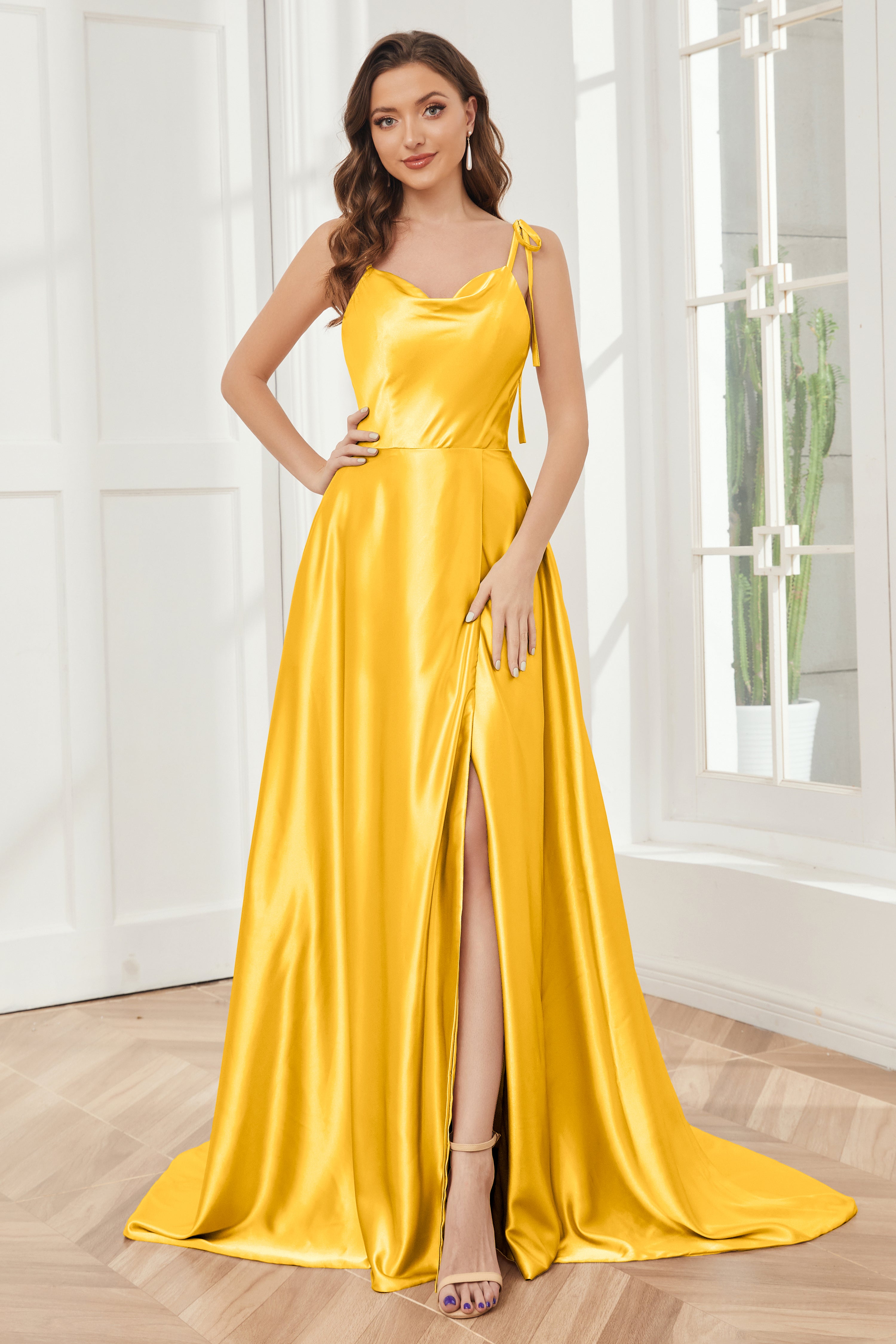 Spaghetti Straps Soft Satin Bridesmaid Dress with Train