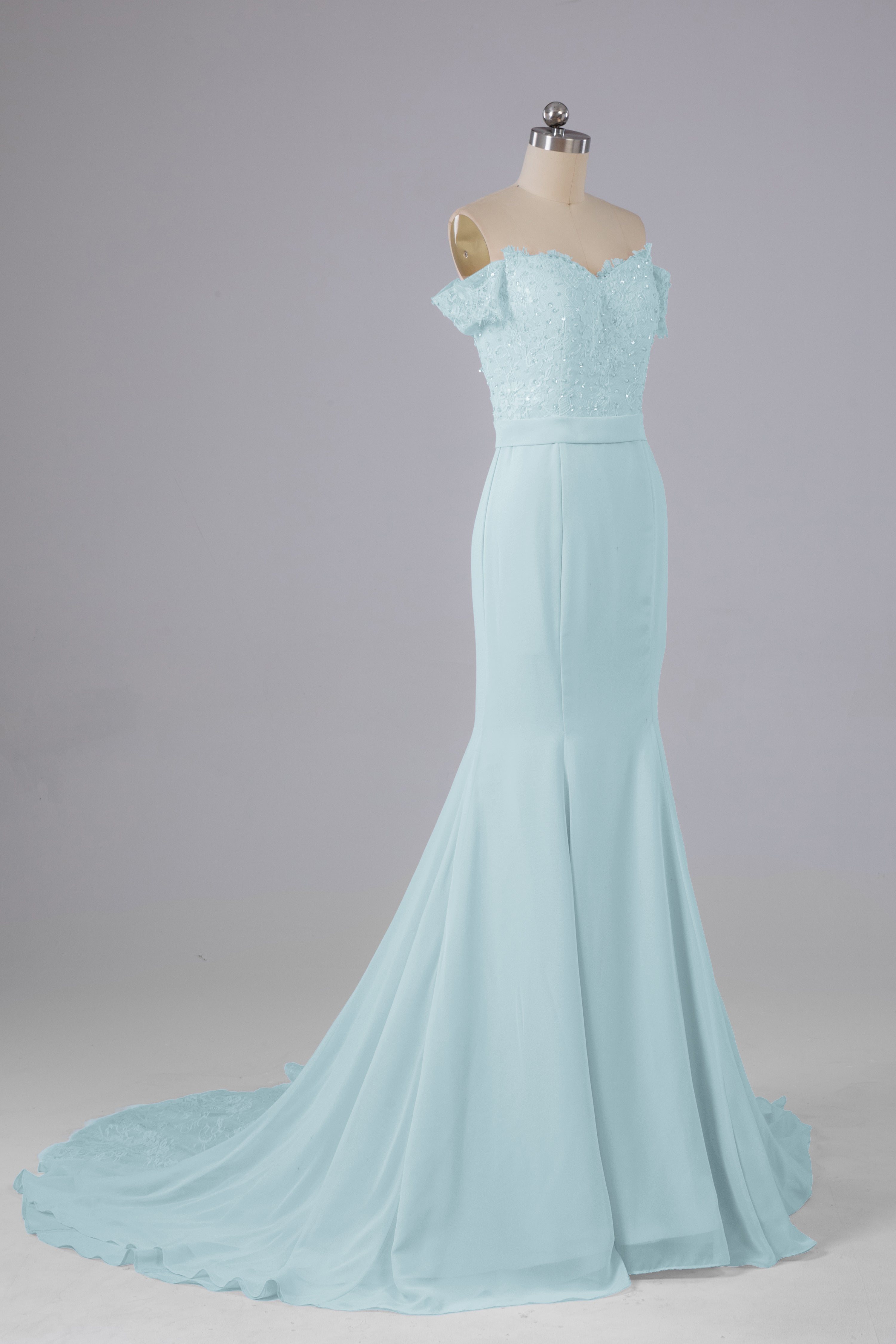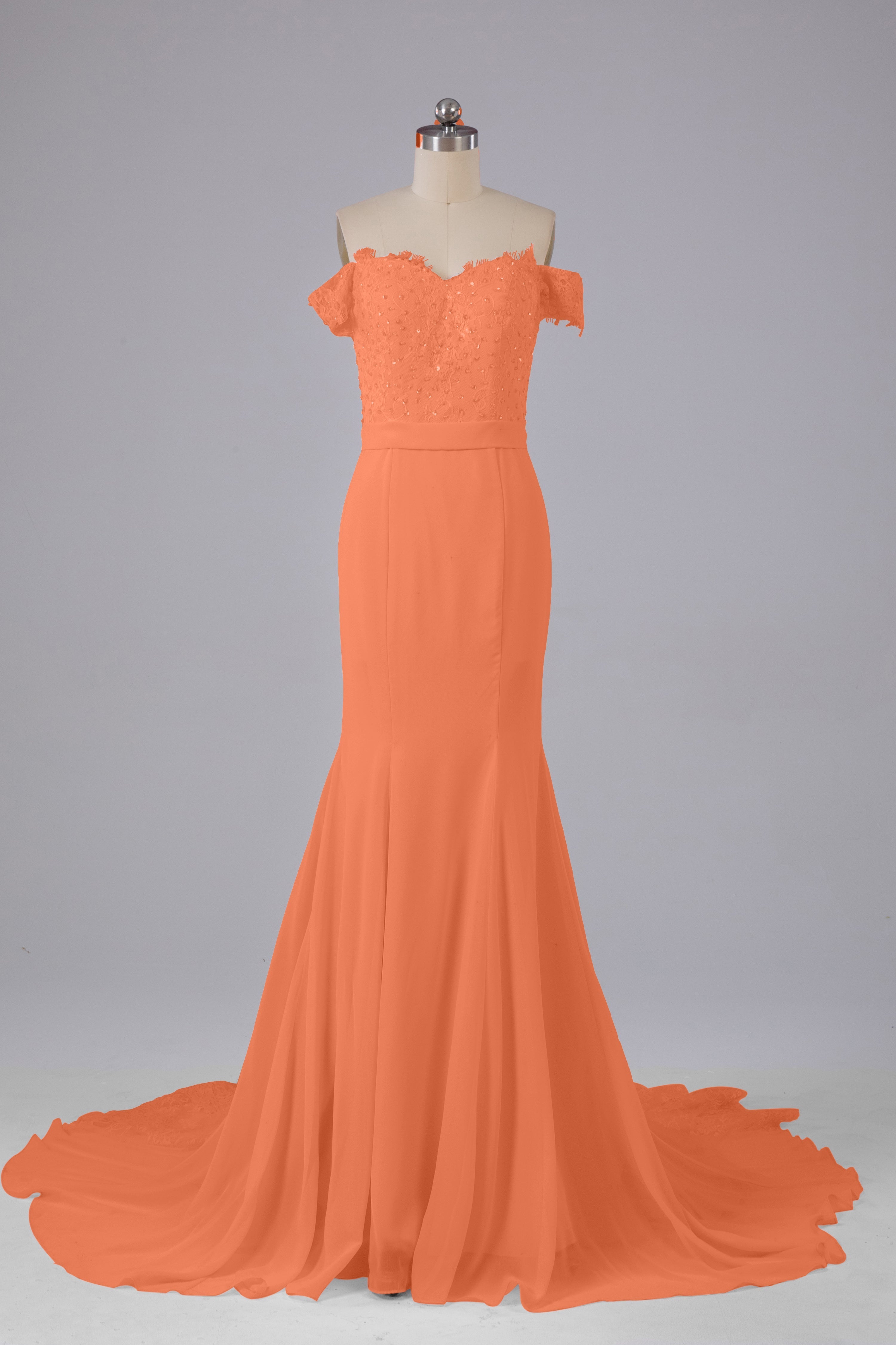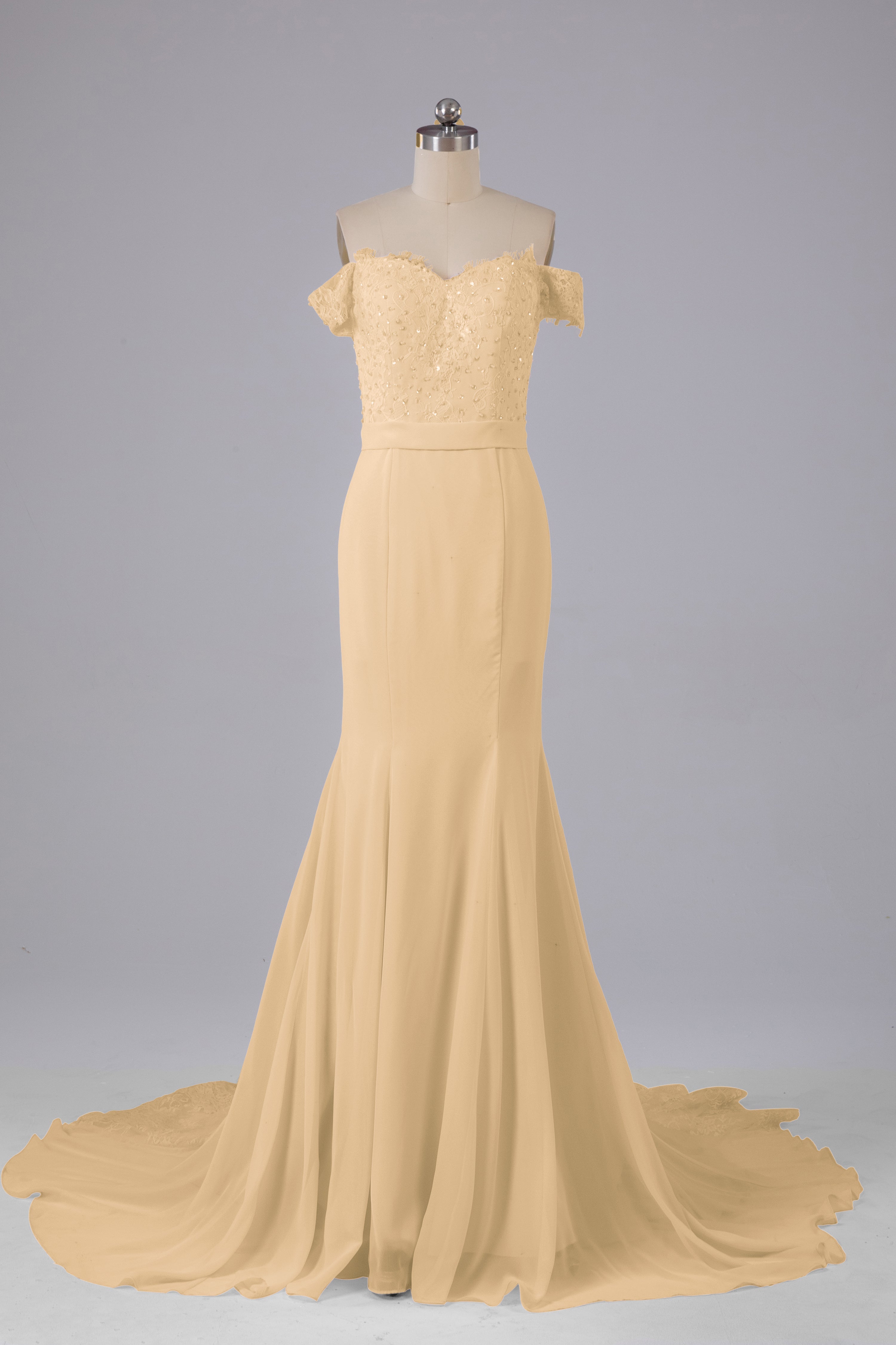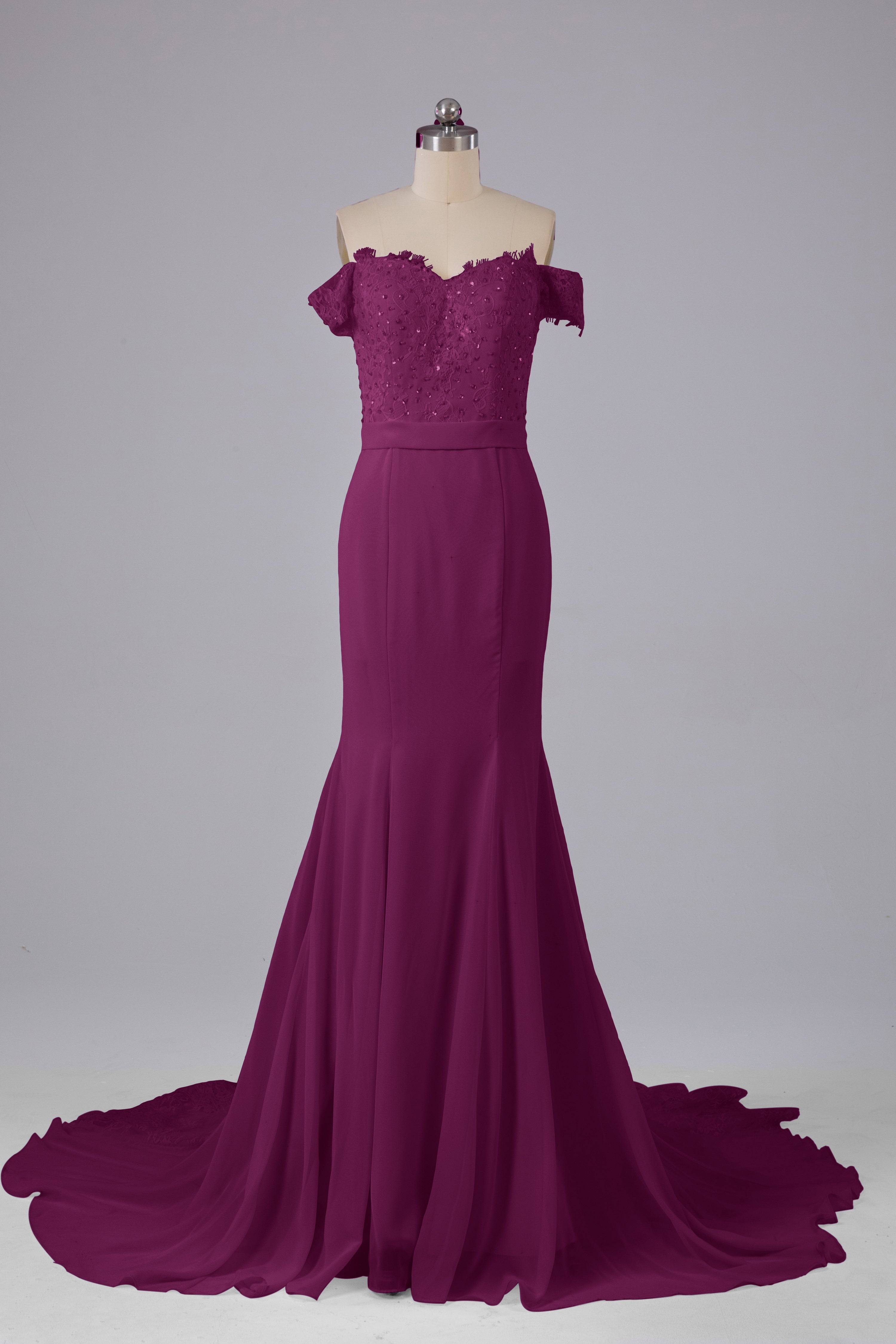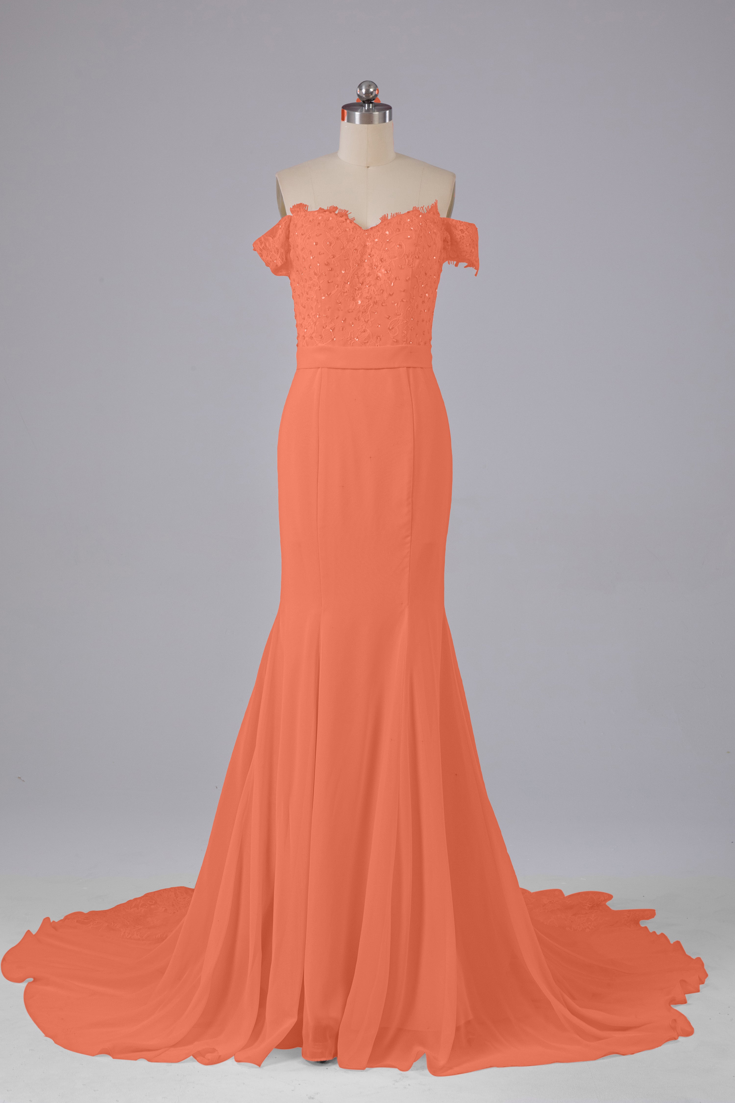Off The Shoulder Hourglass Court Train Bridesmaid Dresses