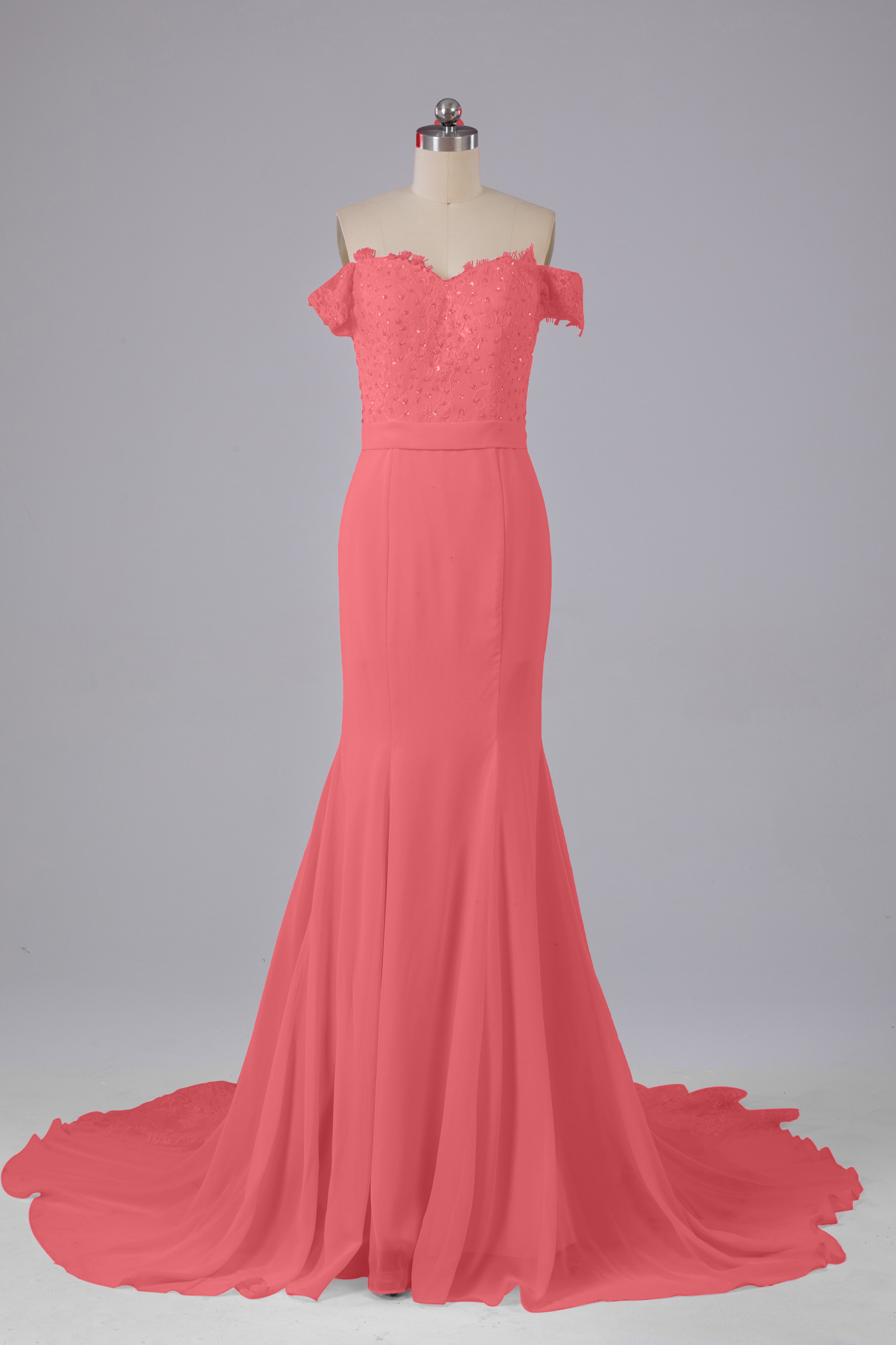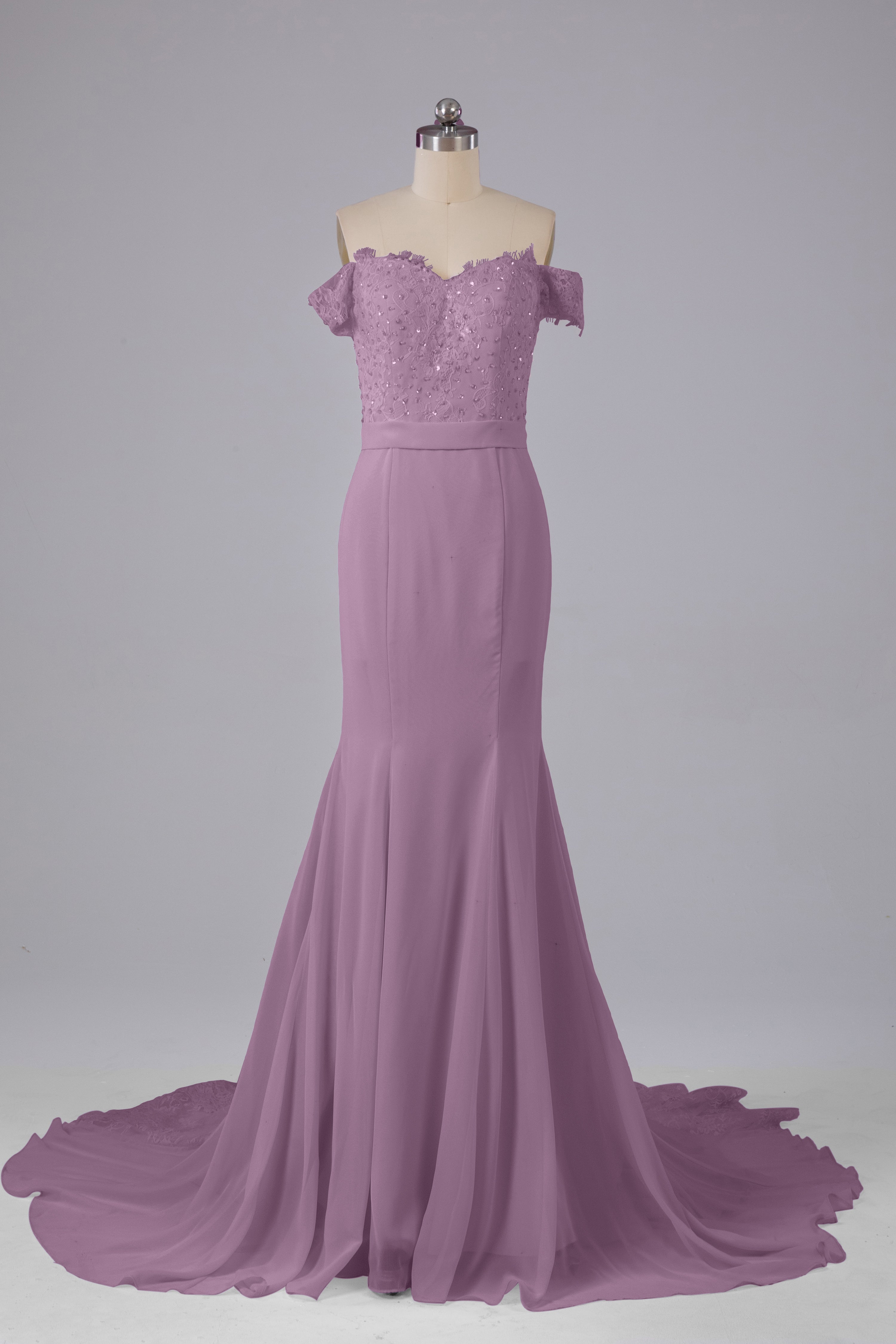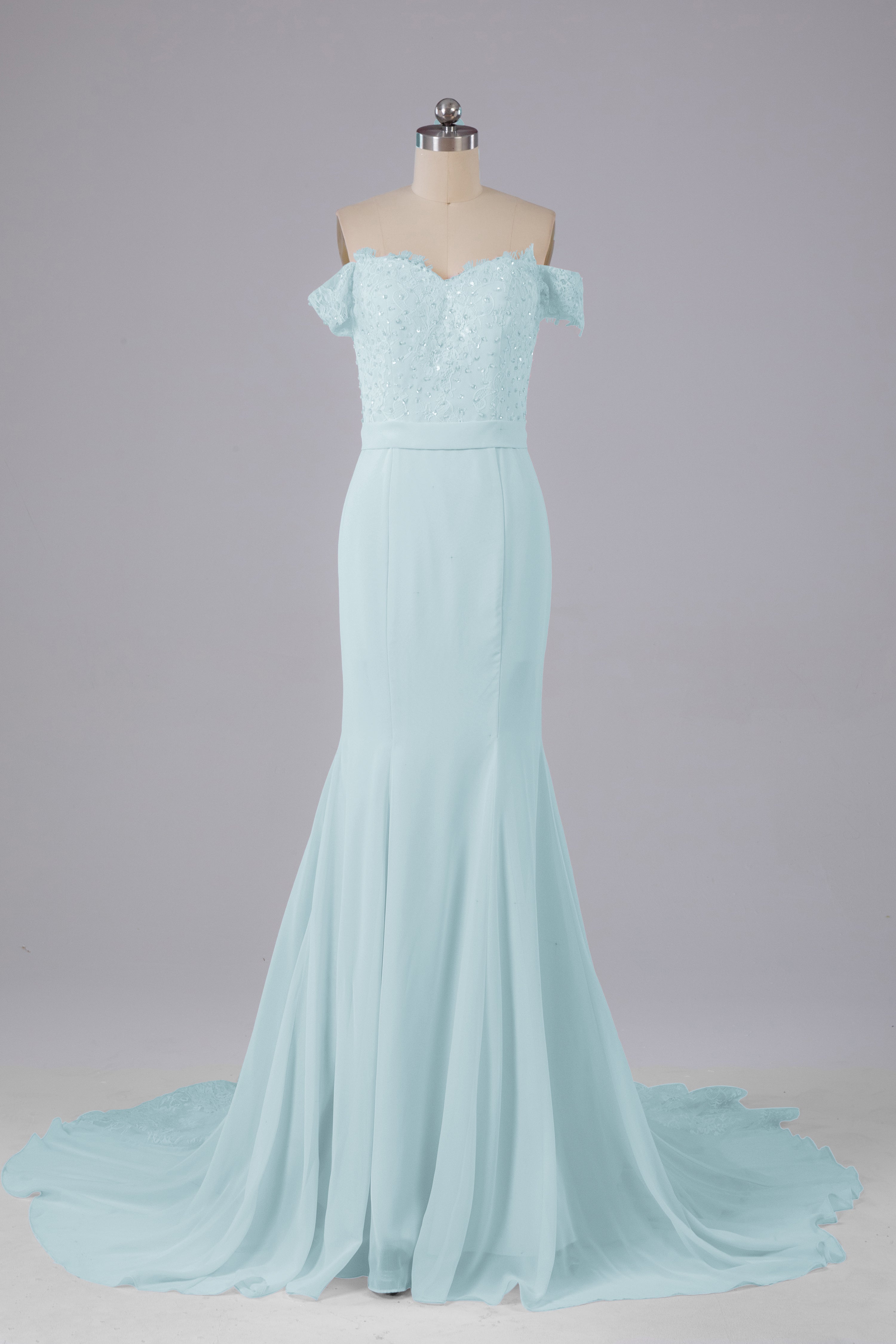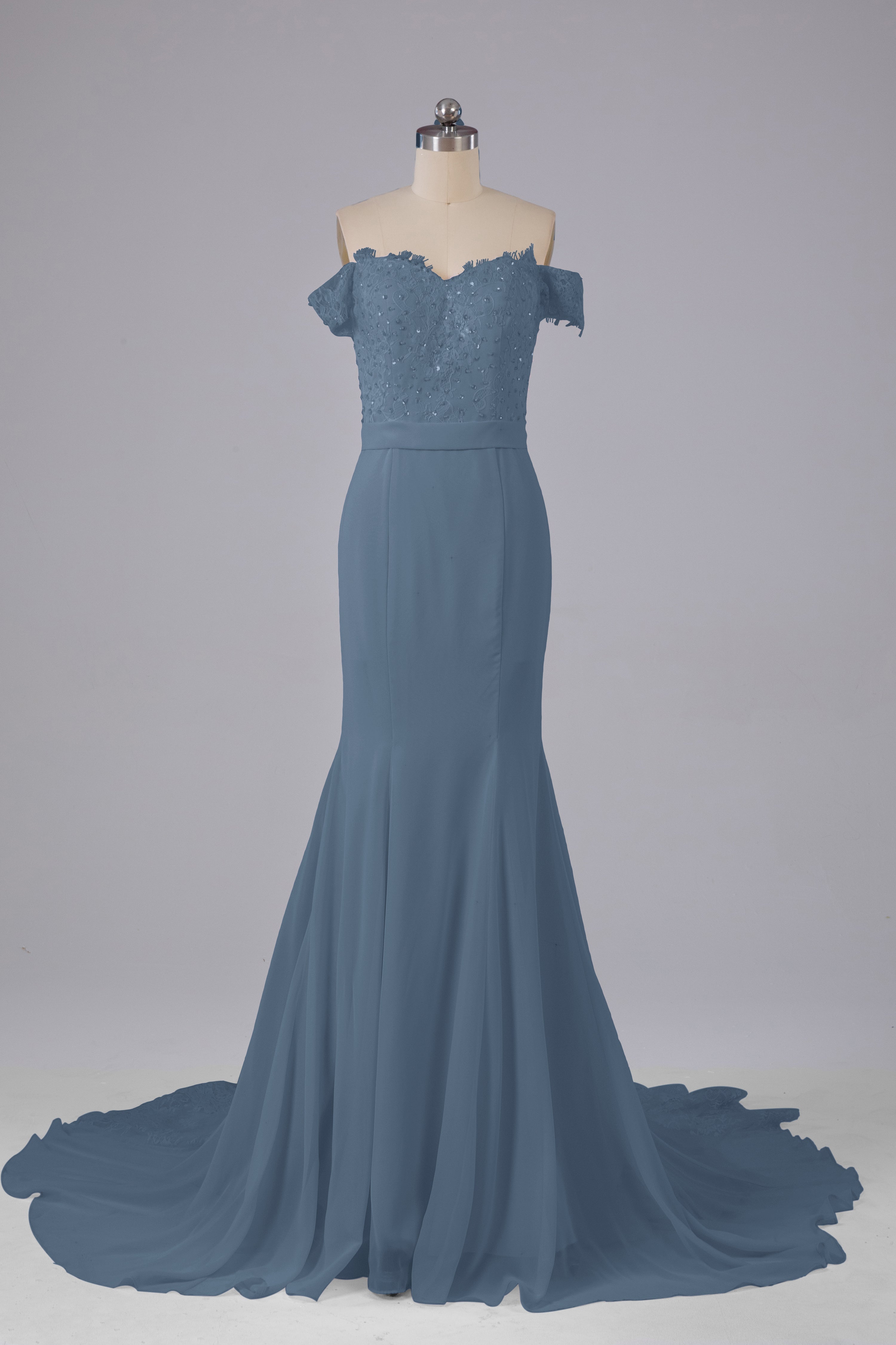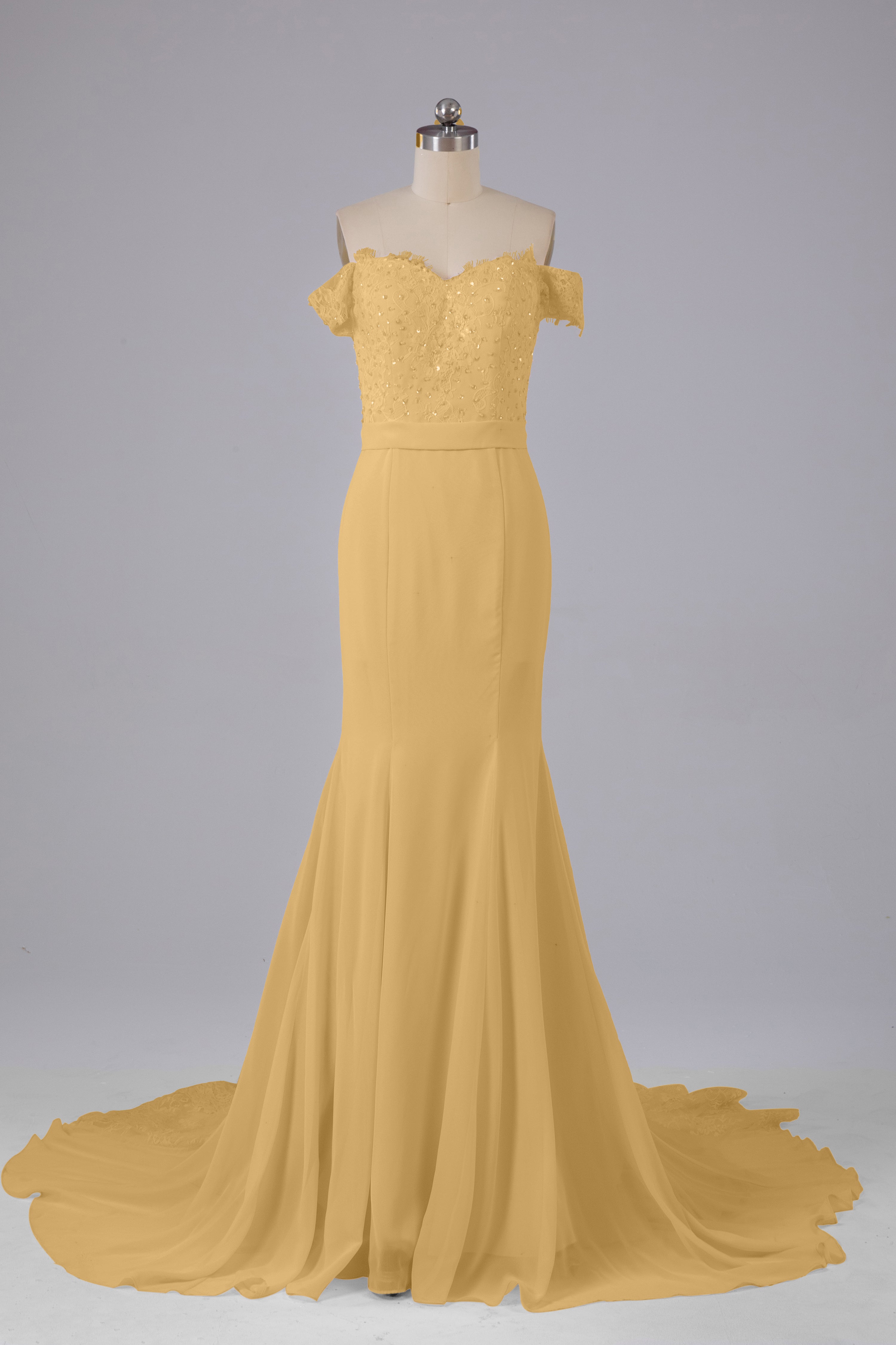 Off The Shoulder Hourglass Court Train Bridesmaid Dresses