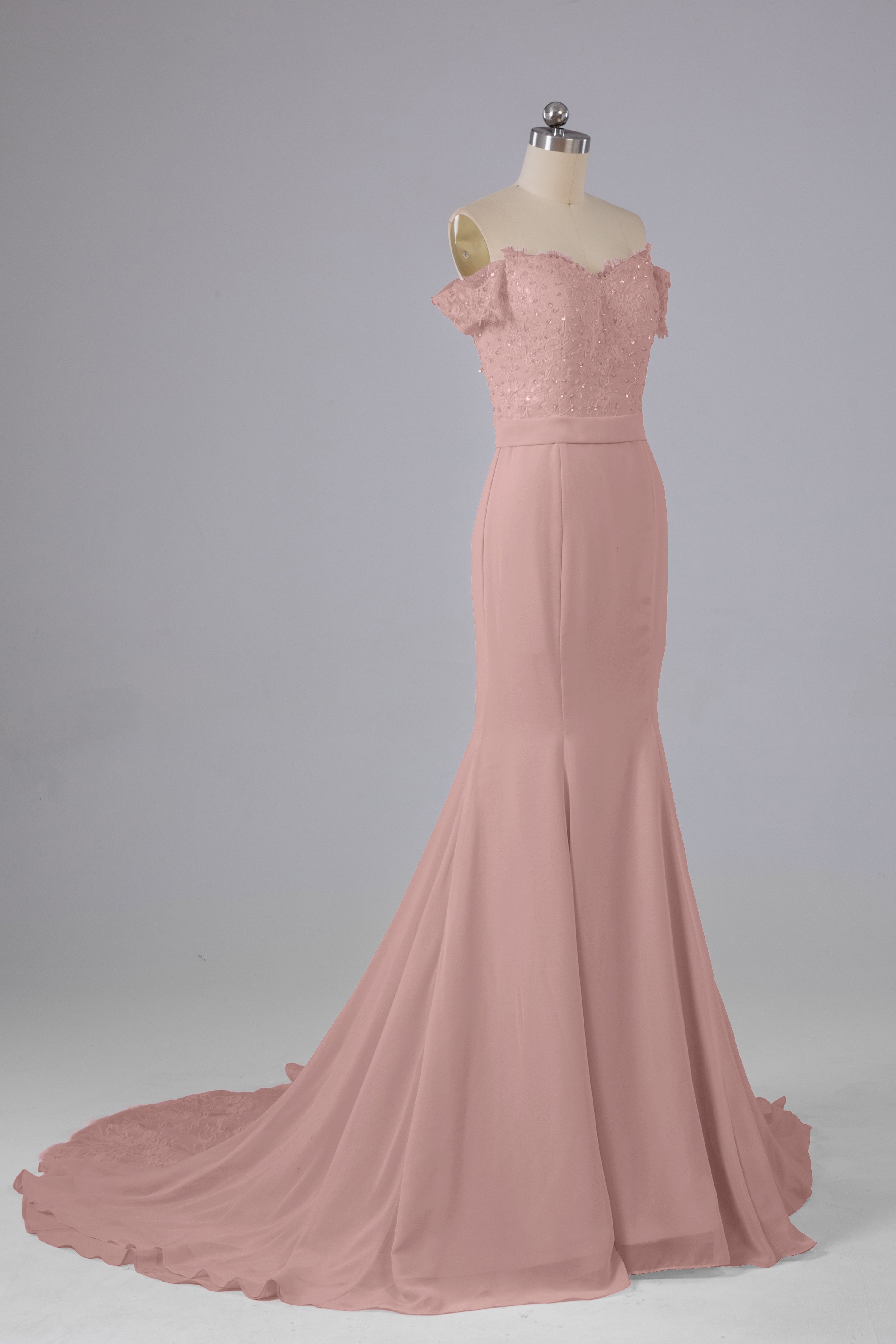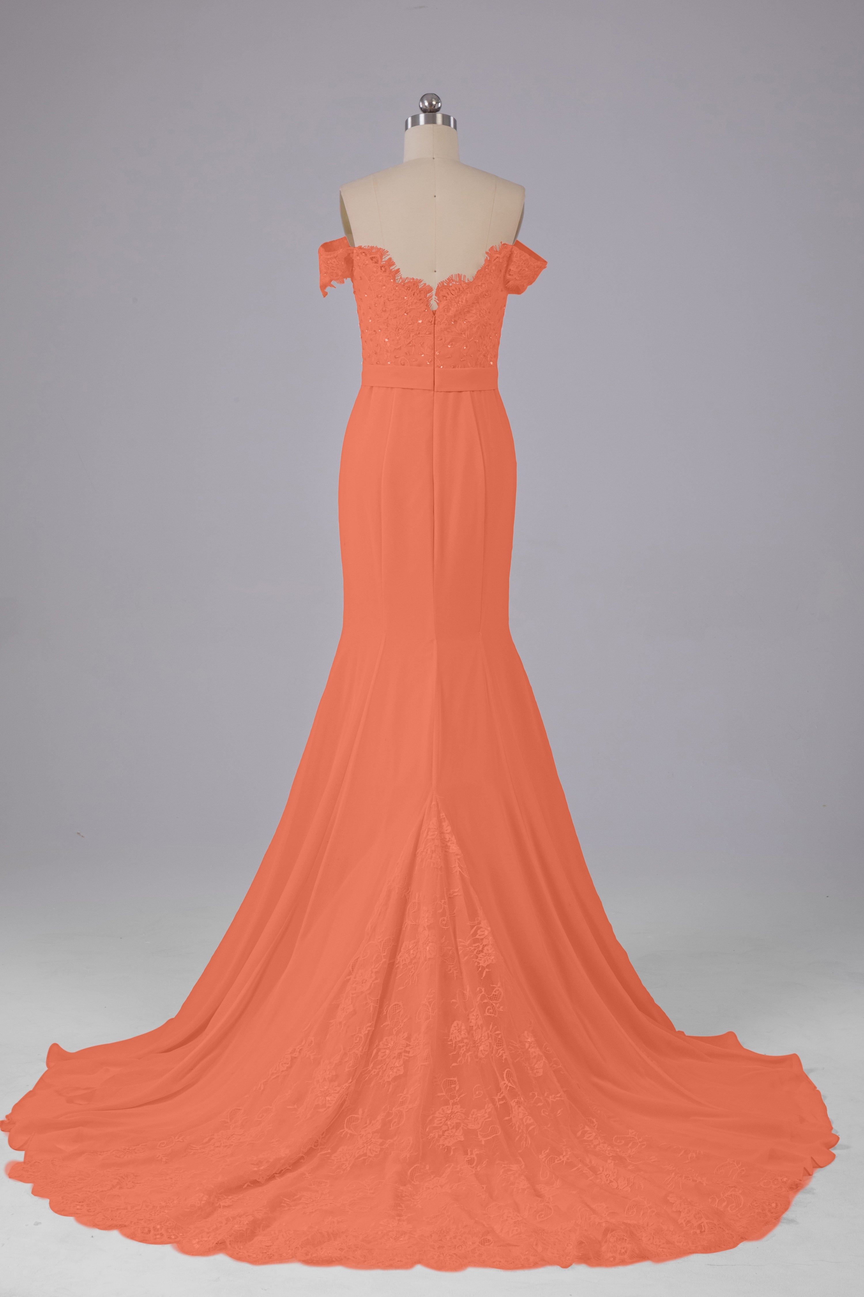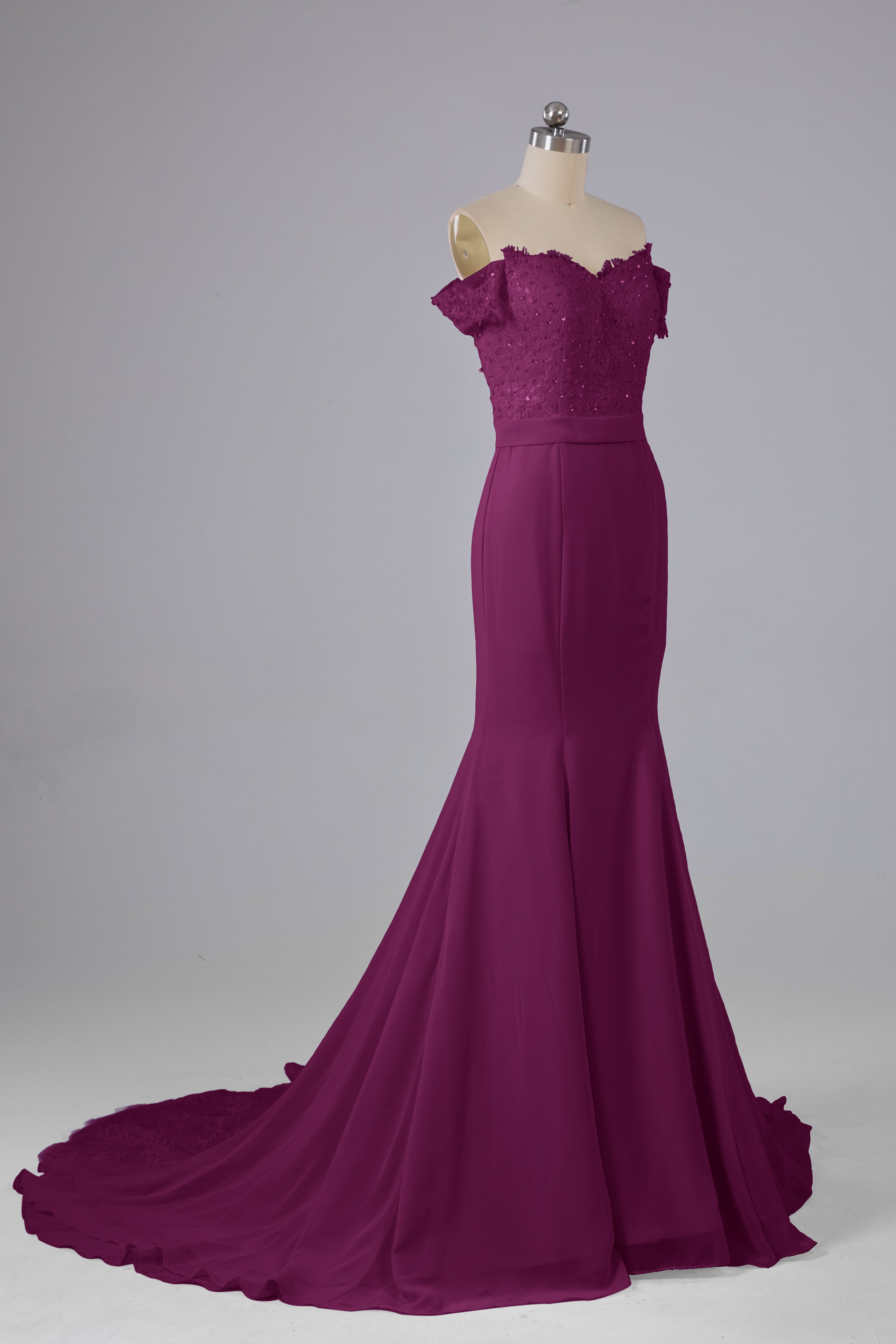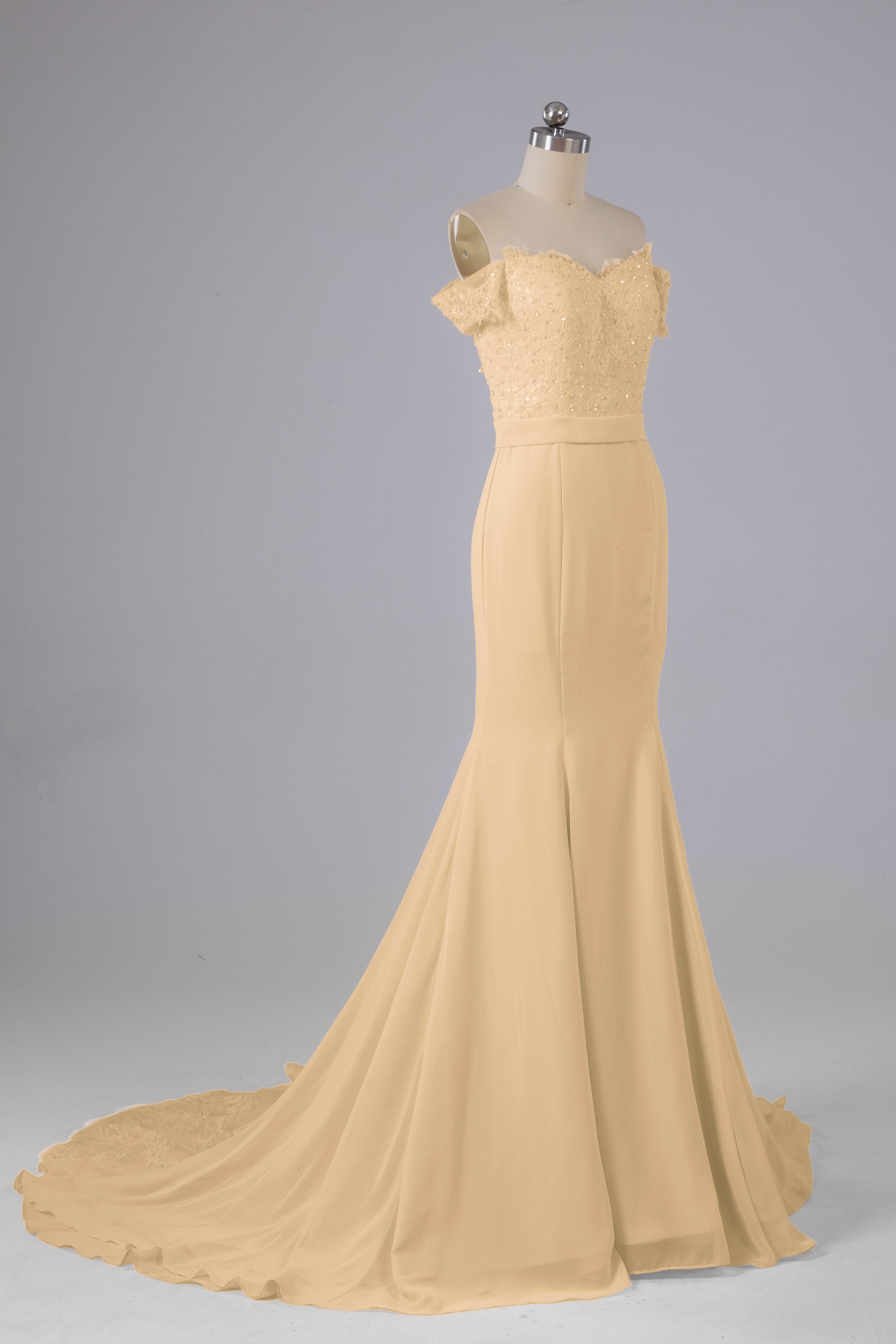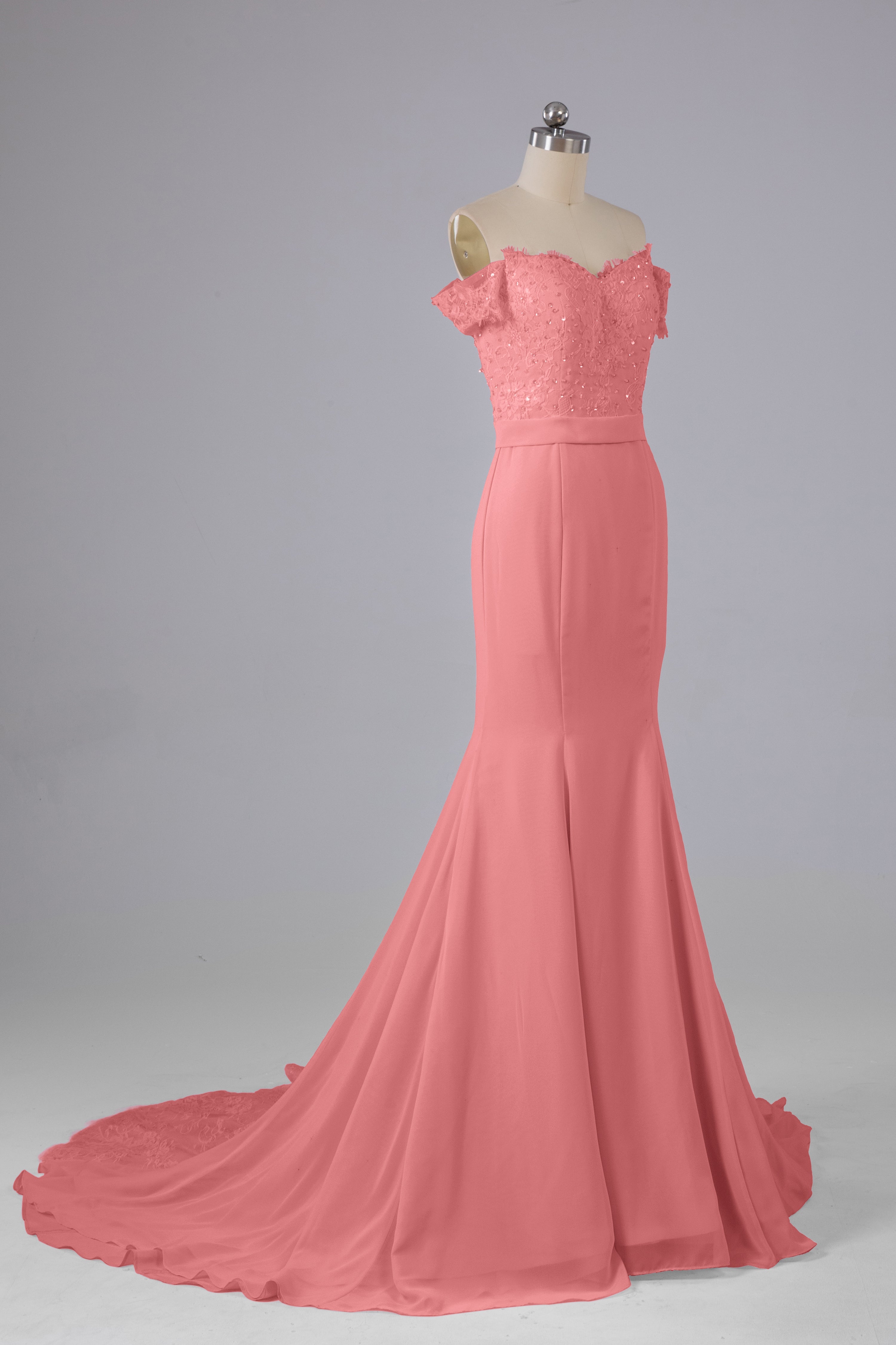 Off The Shoulder Hourglass Court Train Bridesmaid Dresses