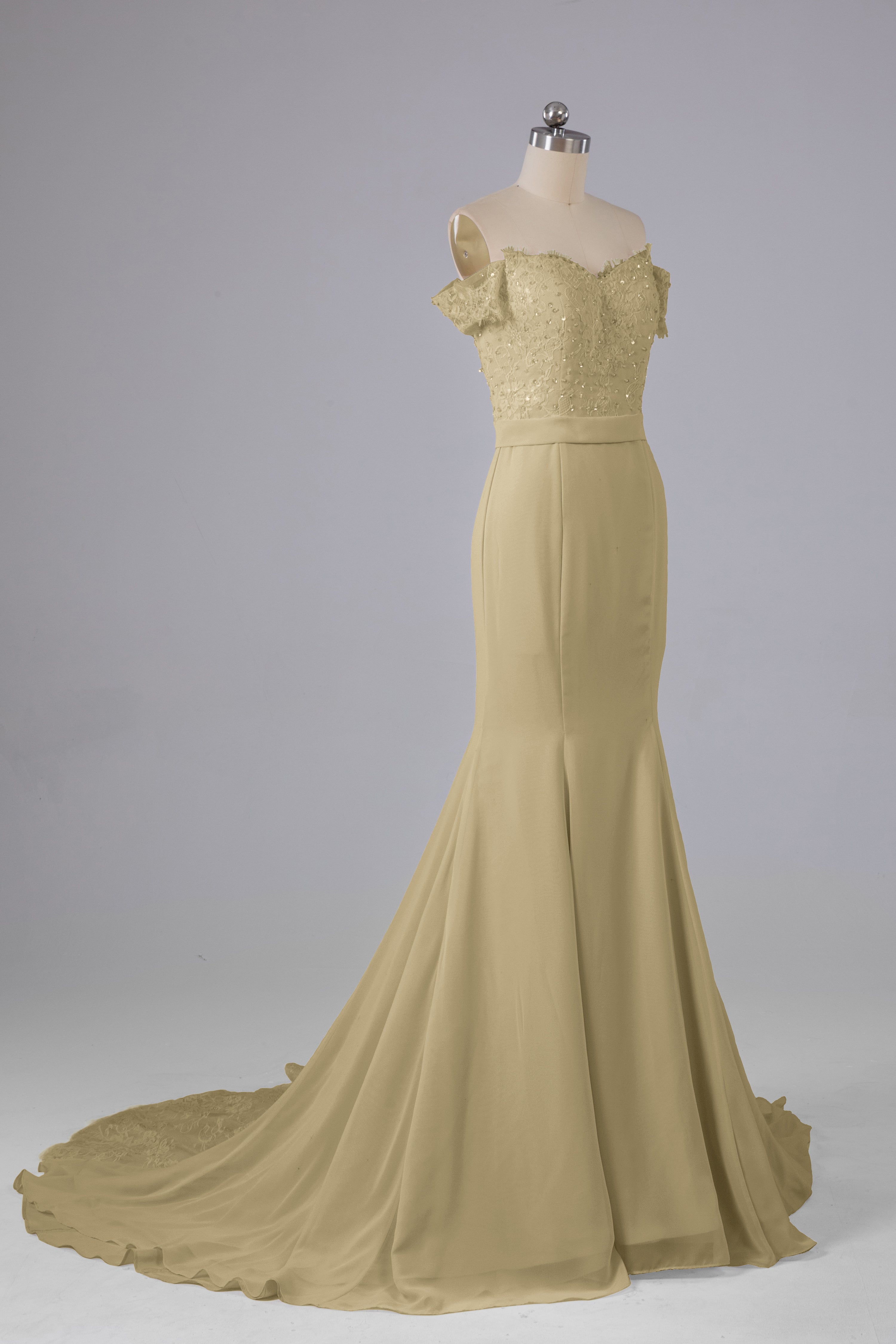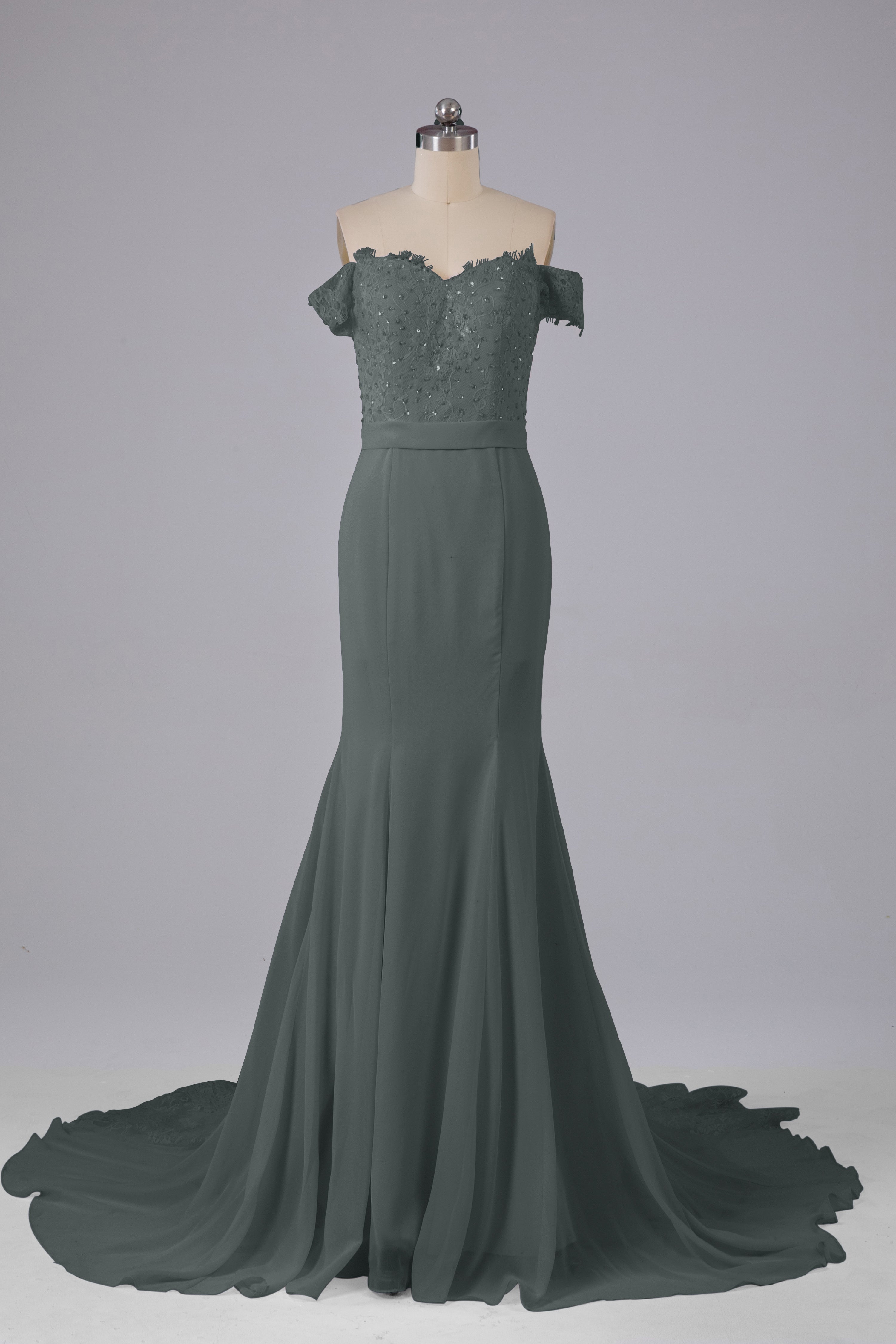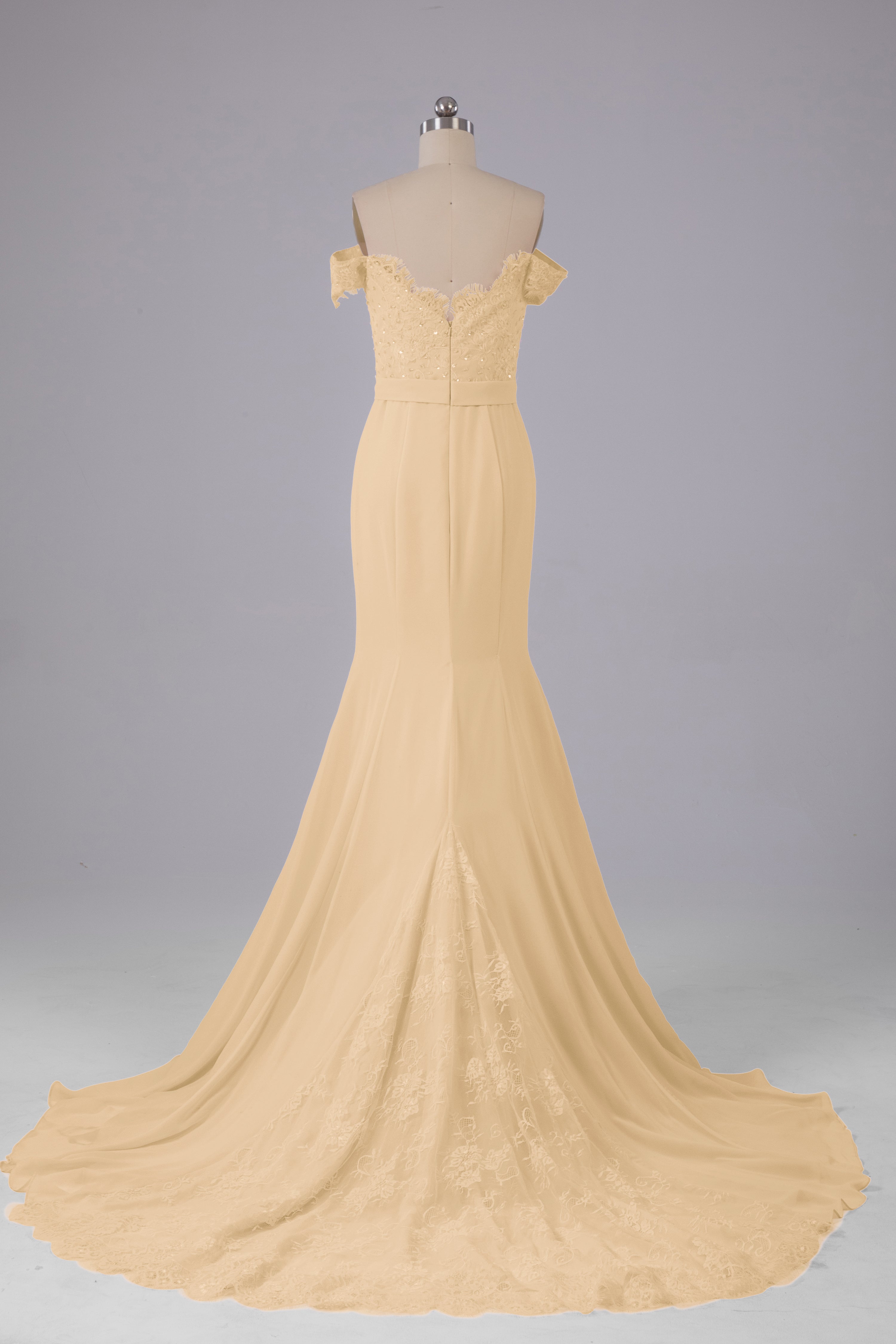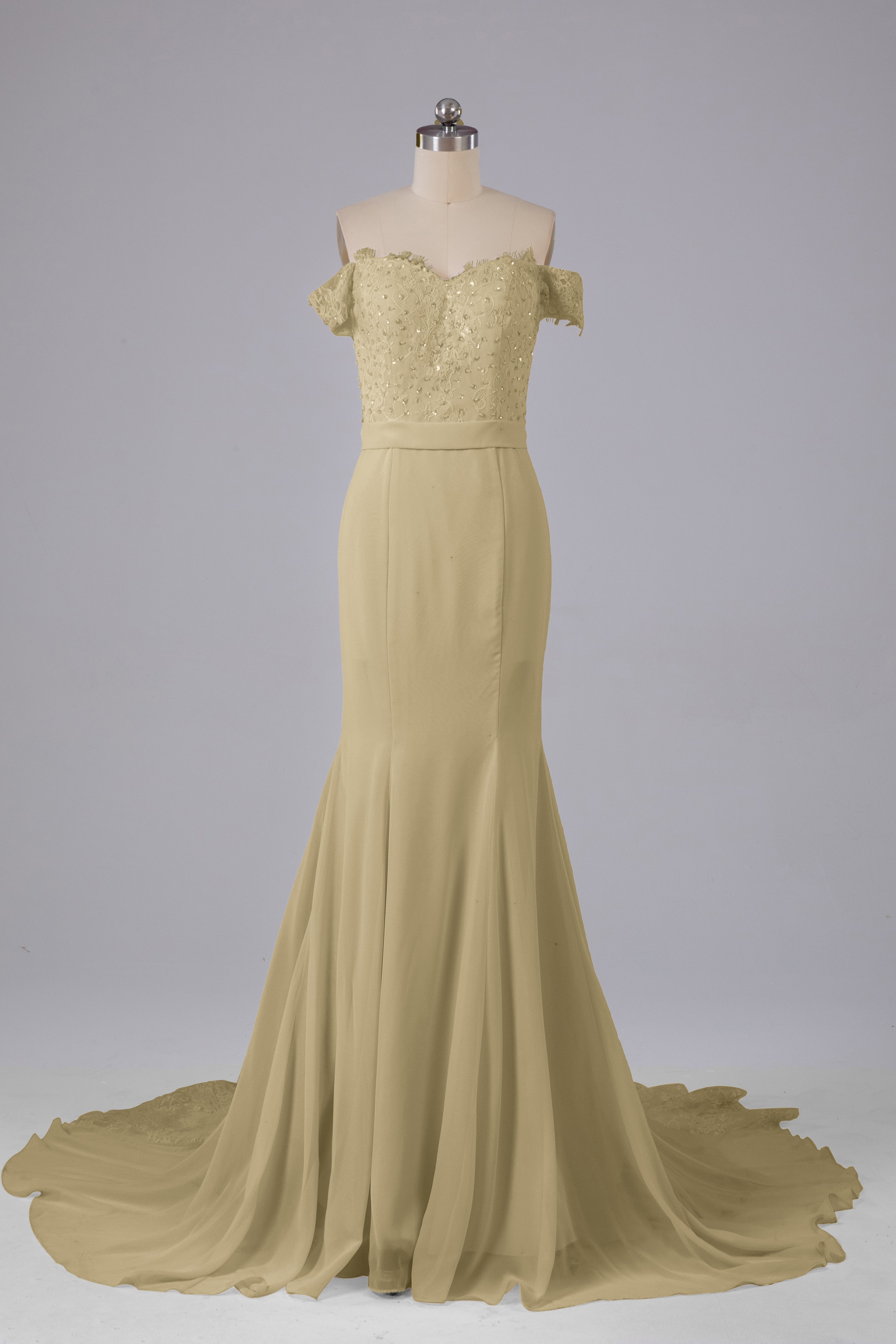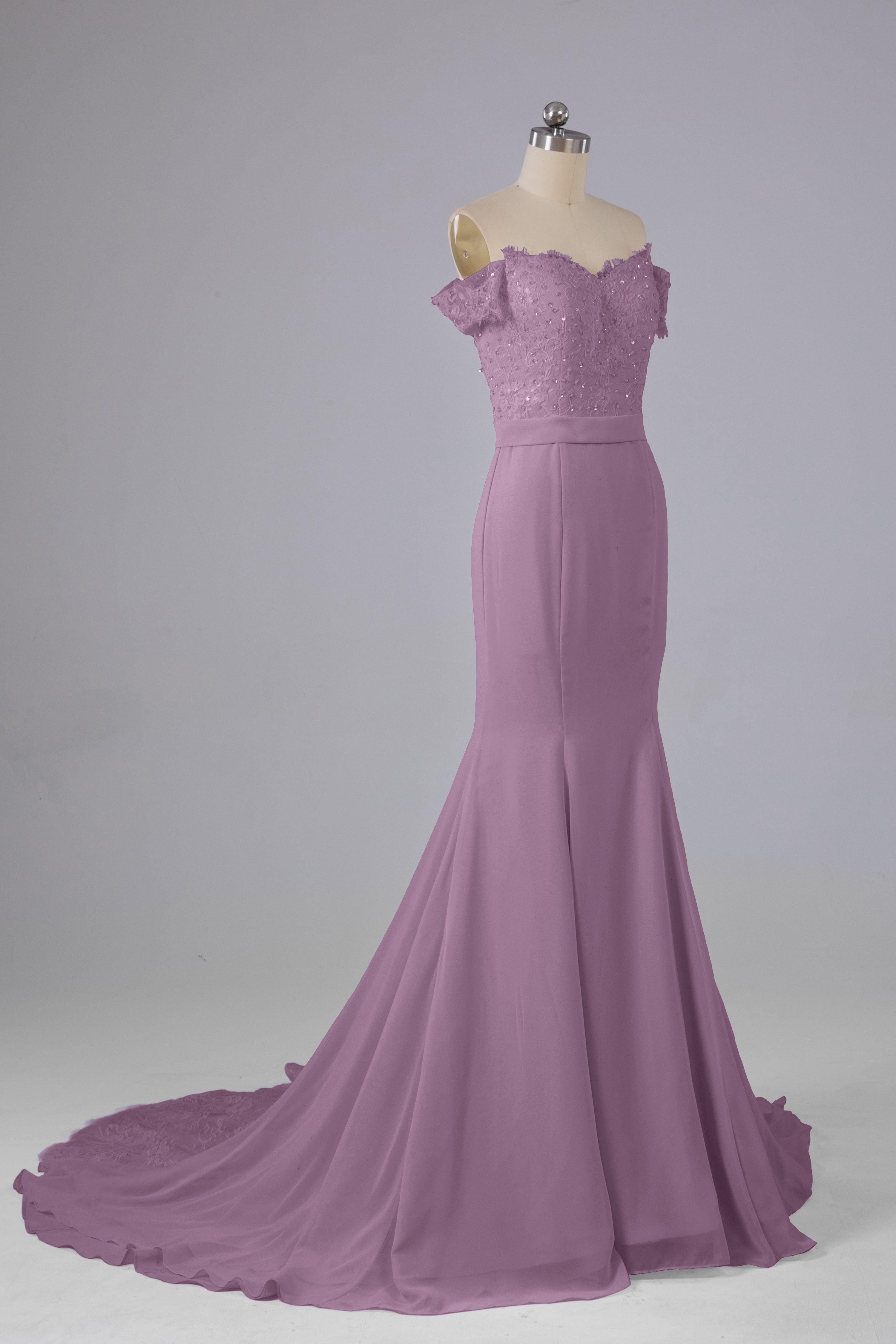 Off The Shoulder Hourglass Court Train Bridesmaid Dresses