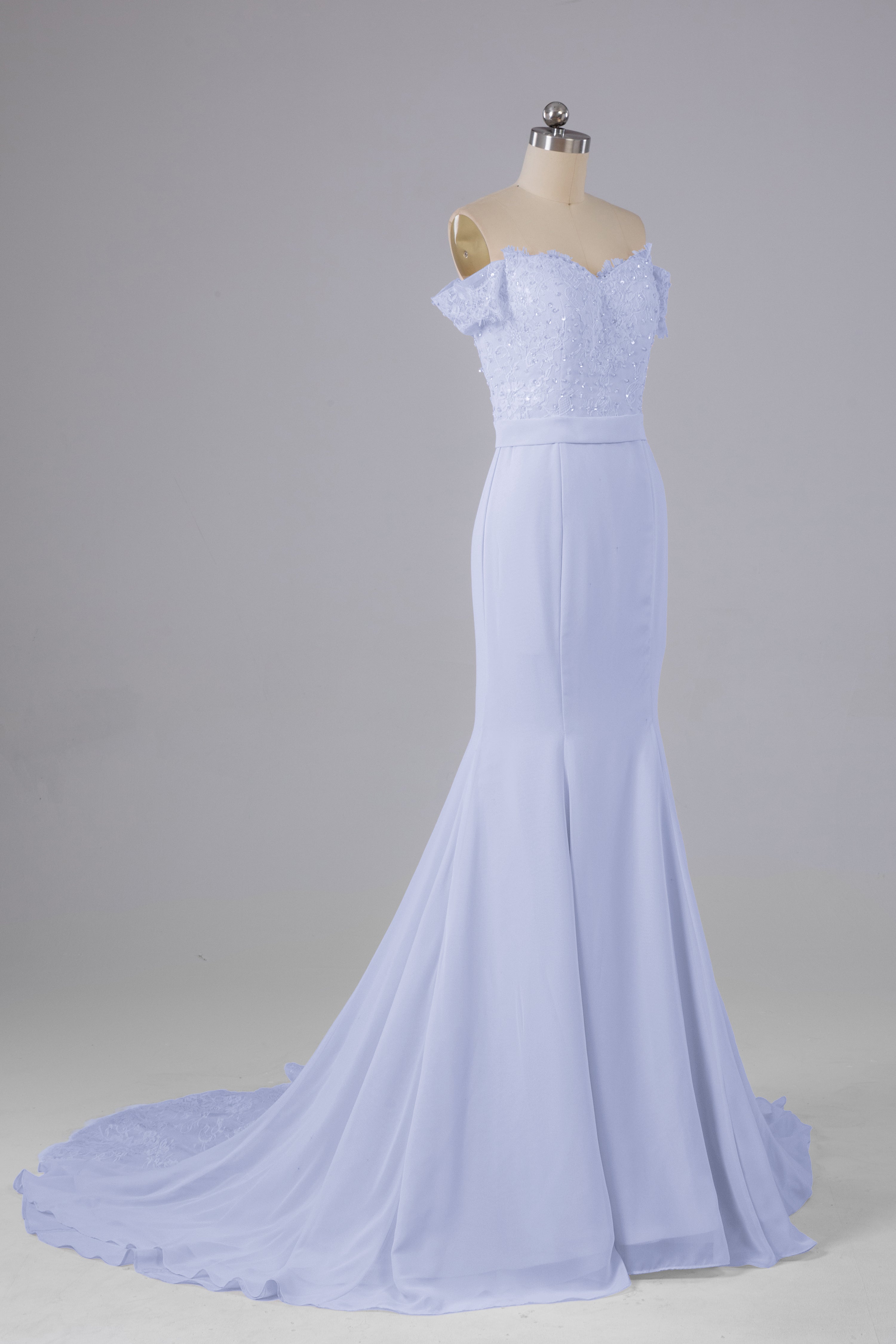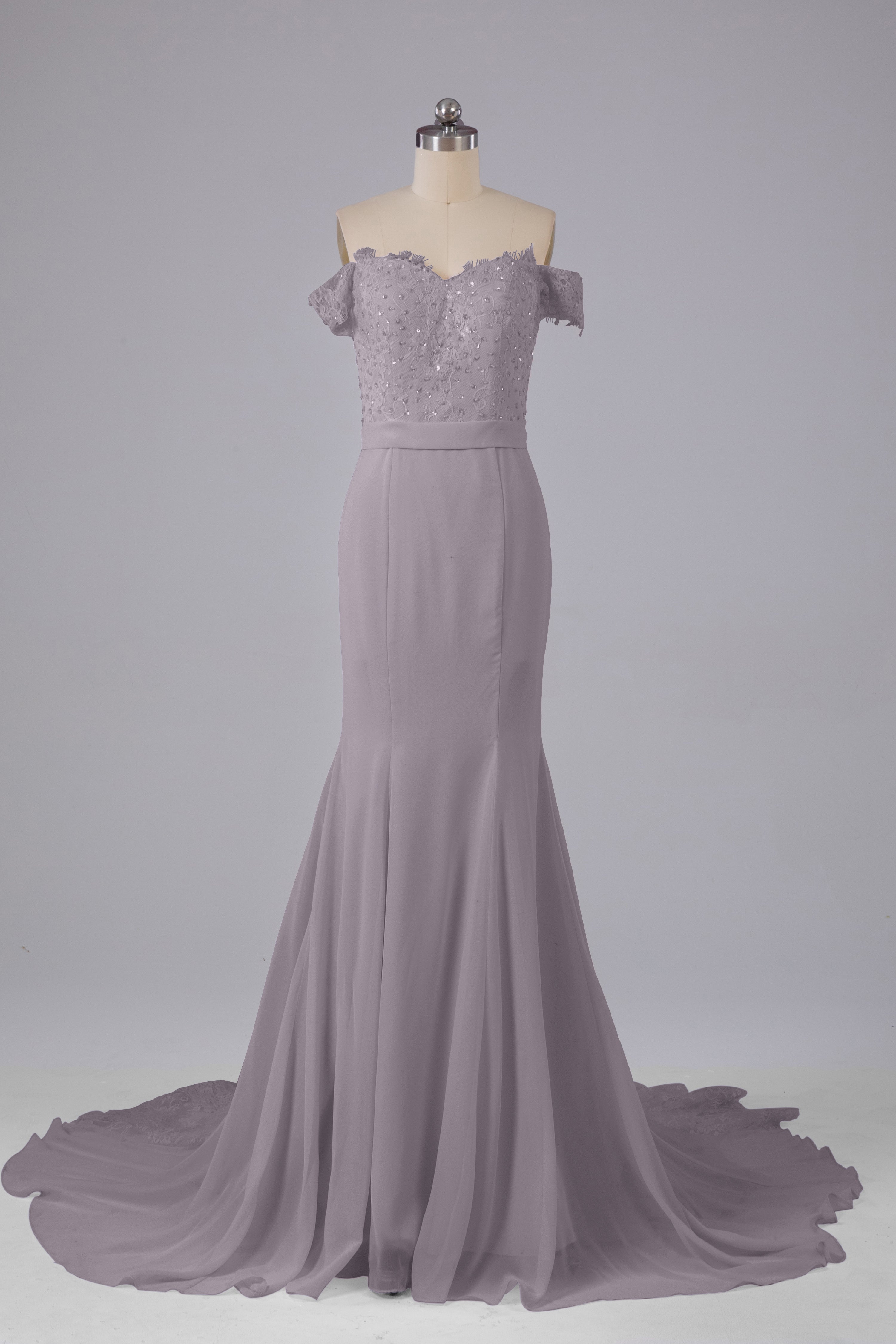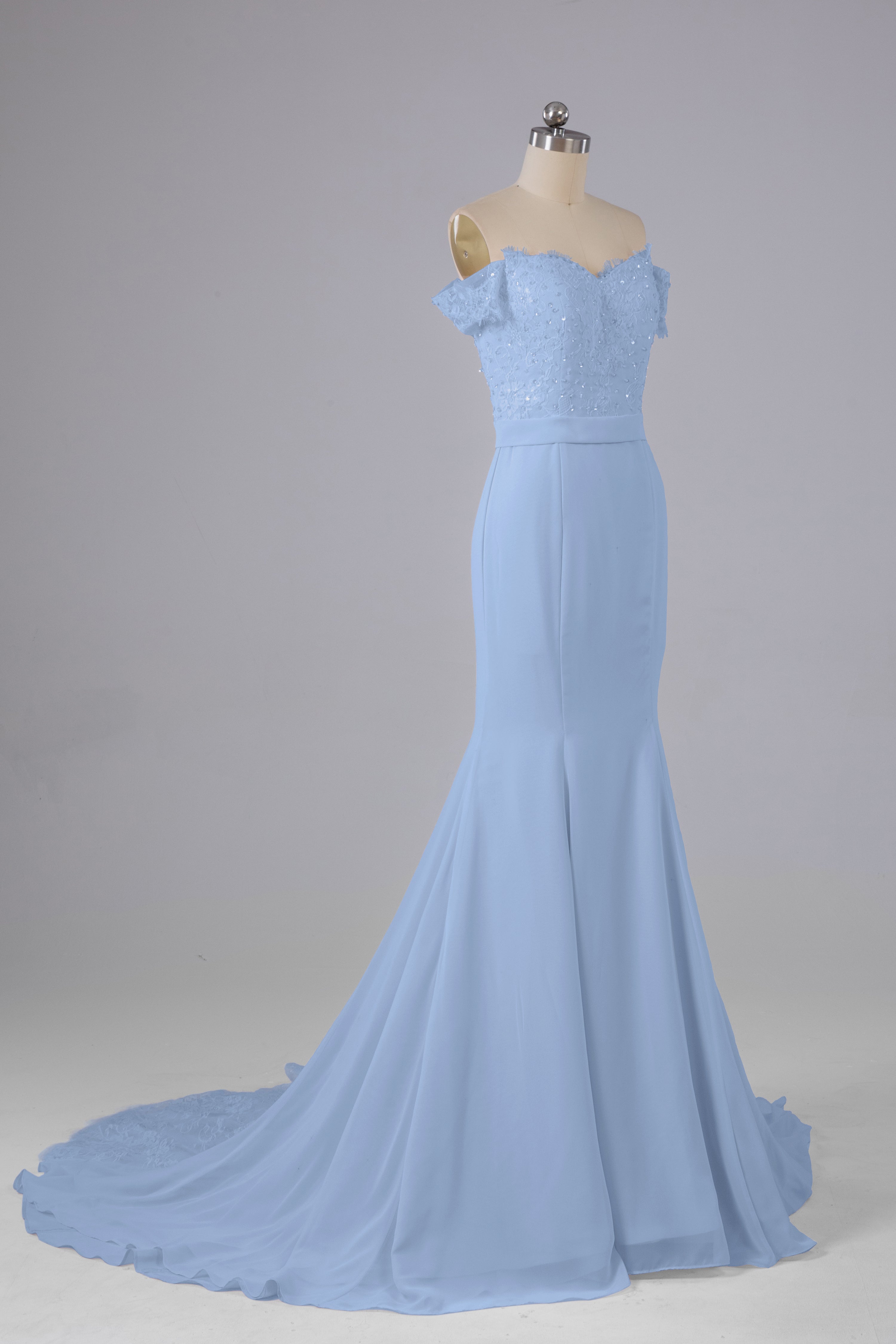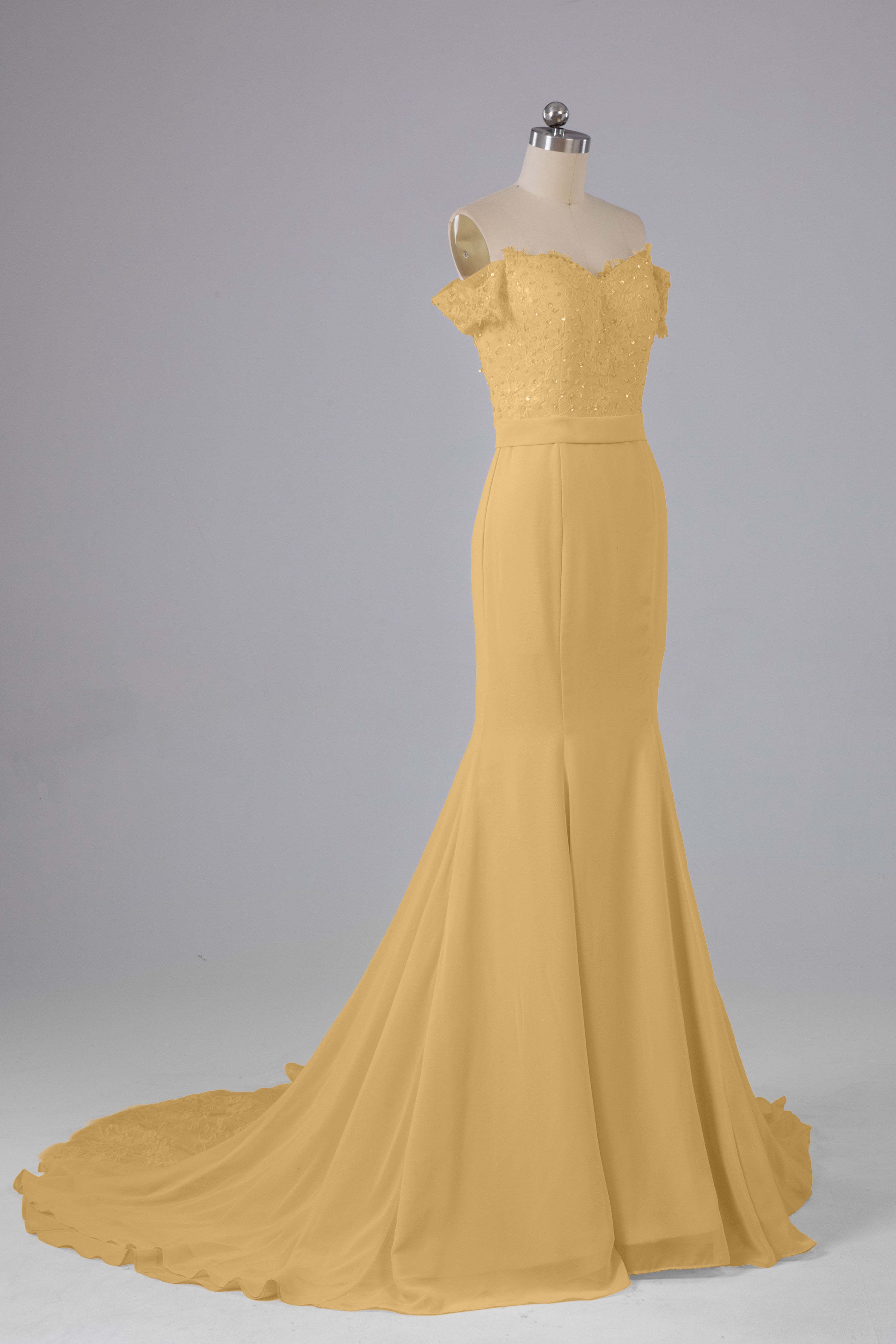 Off The Shoulder Hourglass Court Train Bridesmaid Dresses