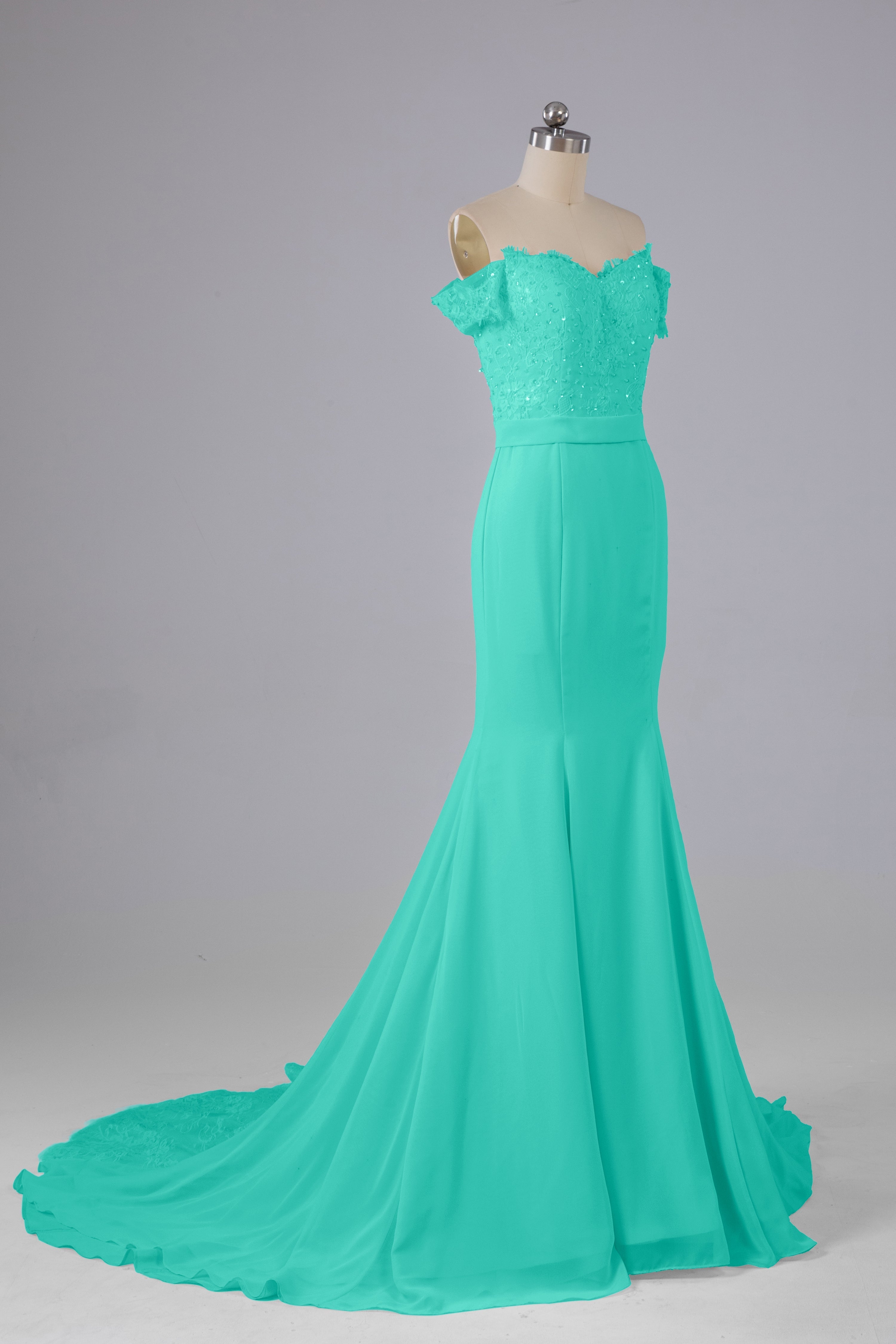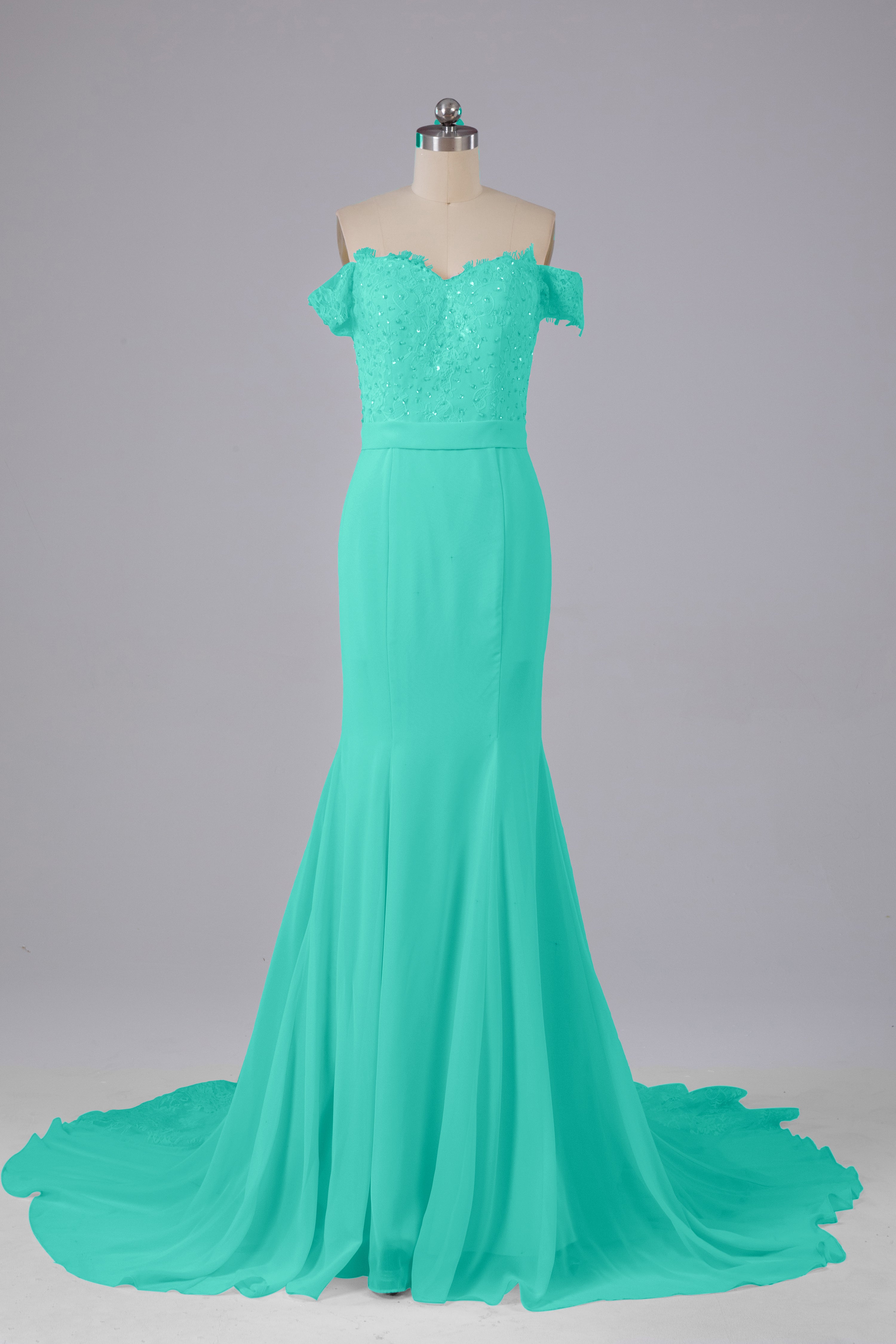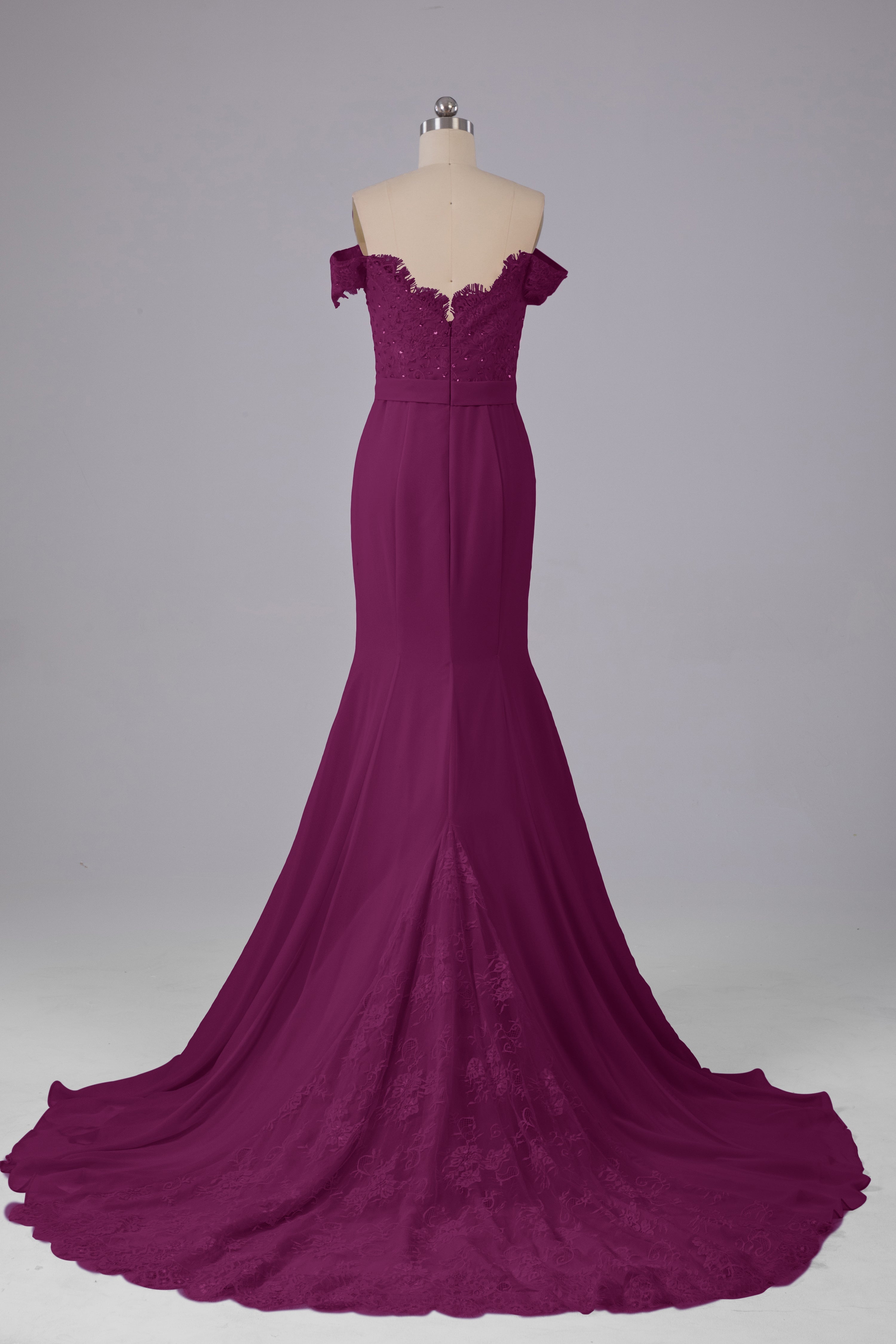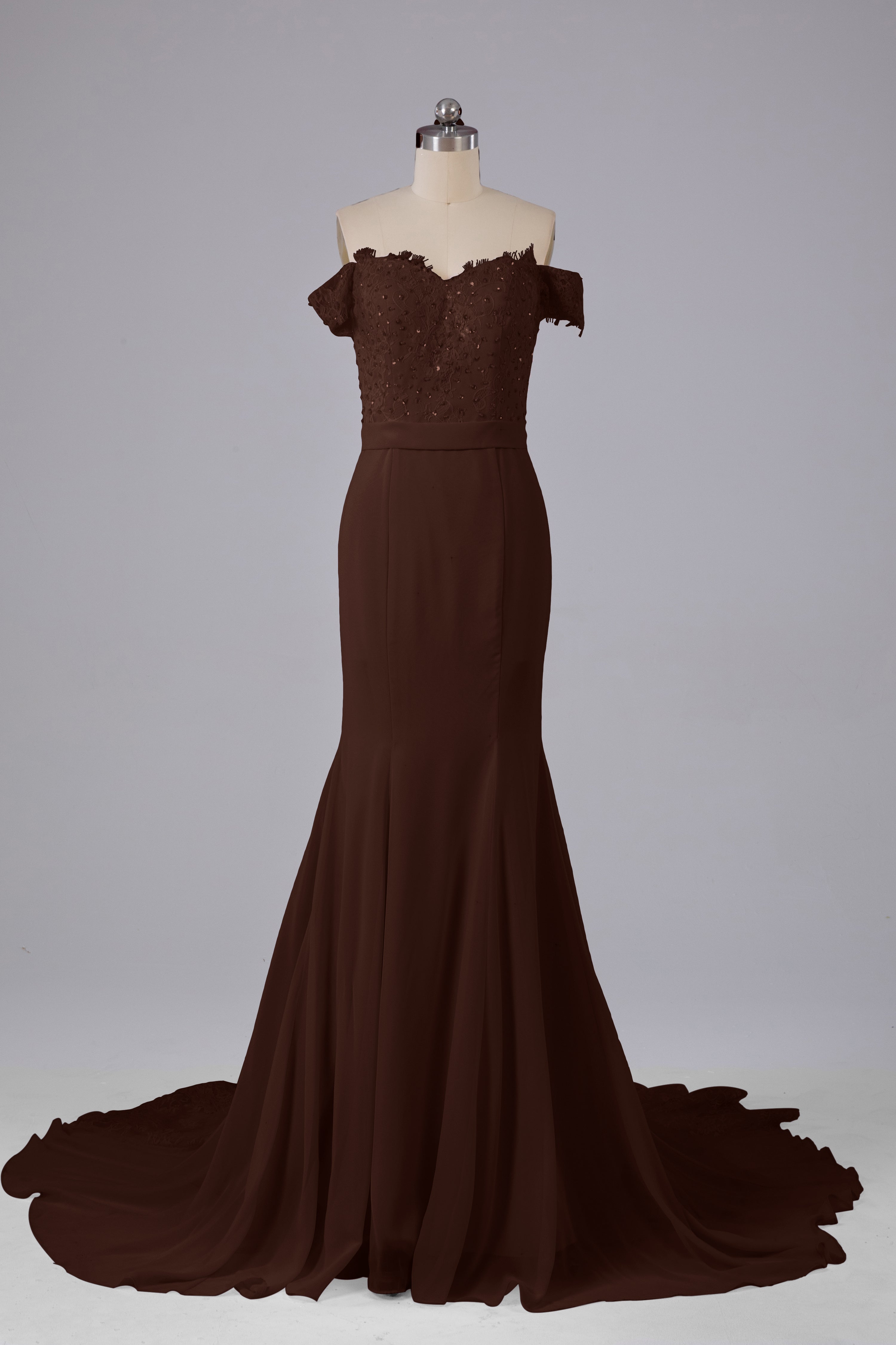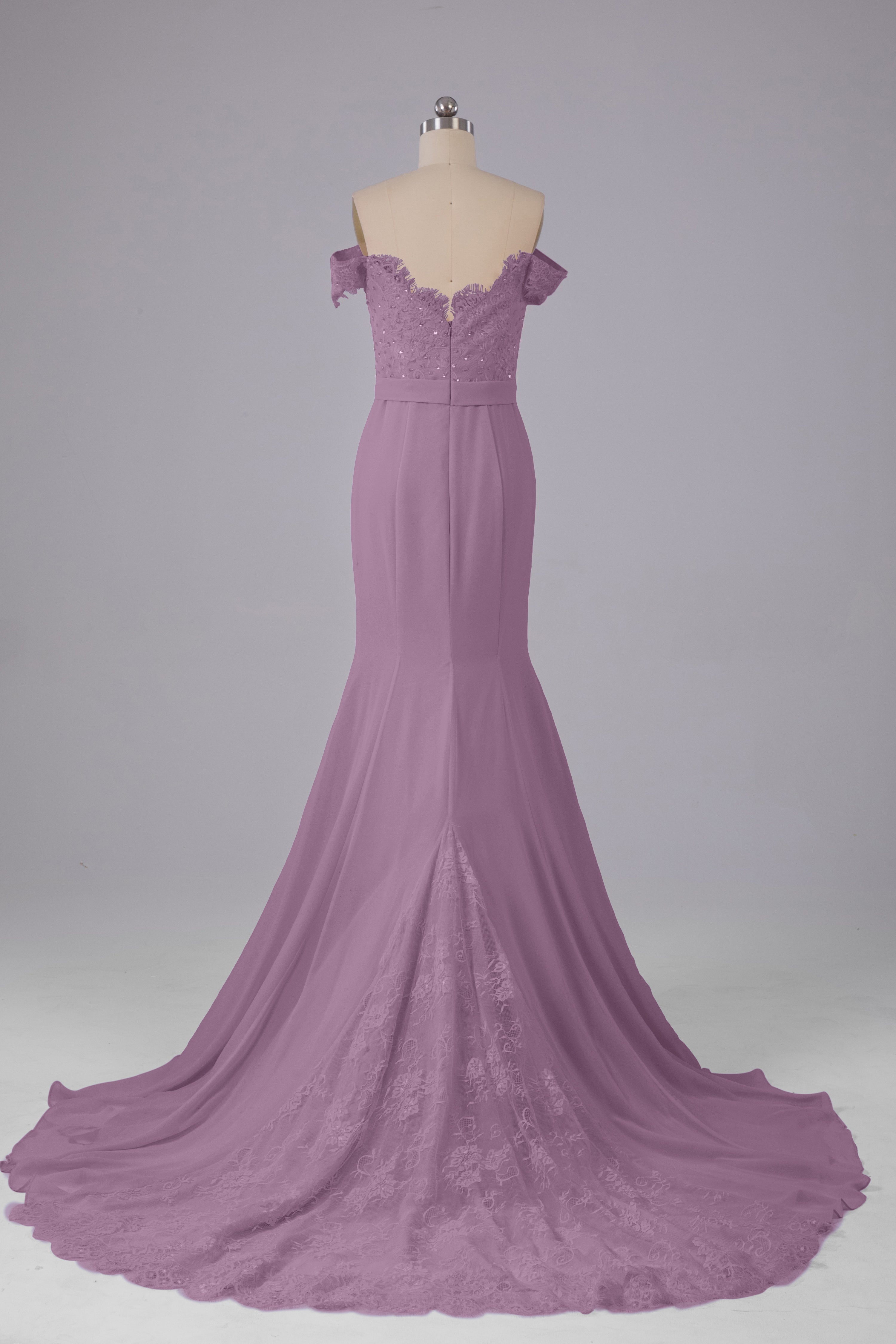 Off The Shoulder Hourglass Court Train Bridesmaid Dresses