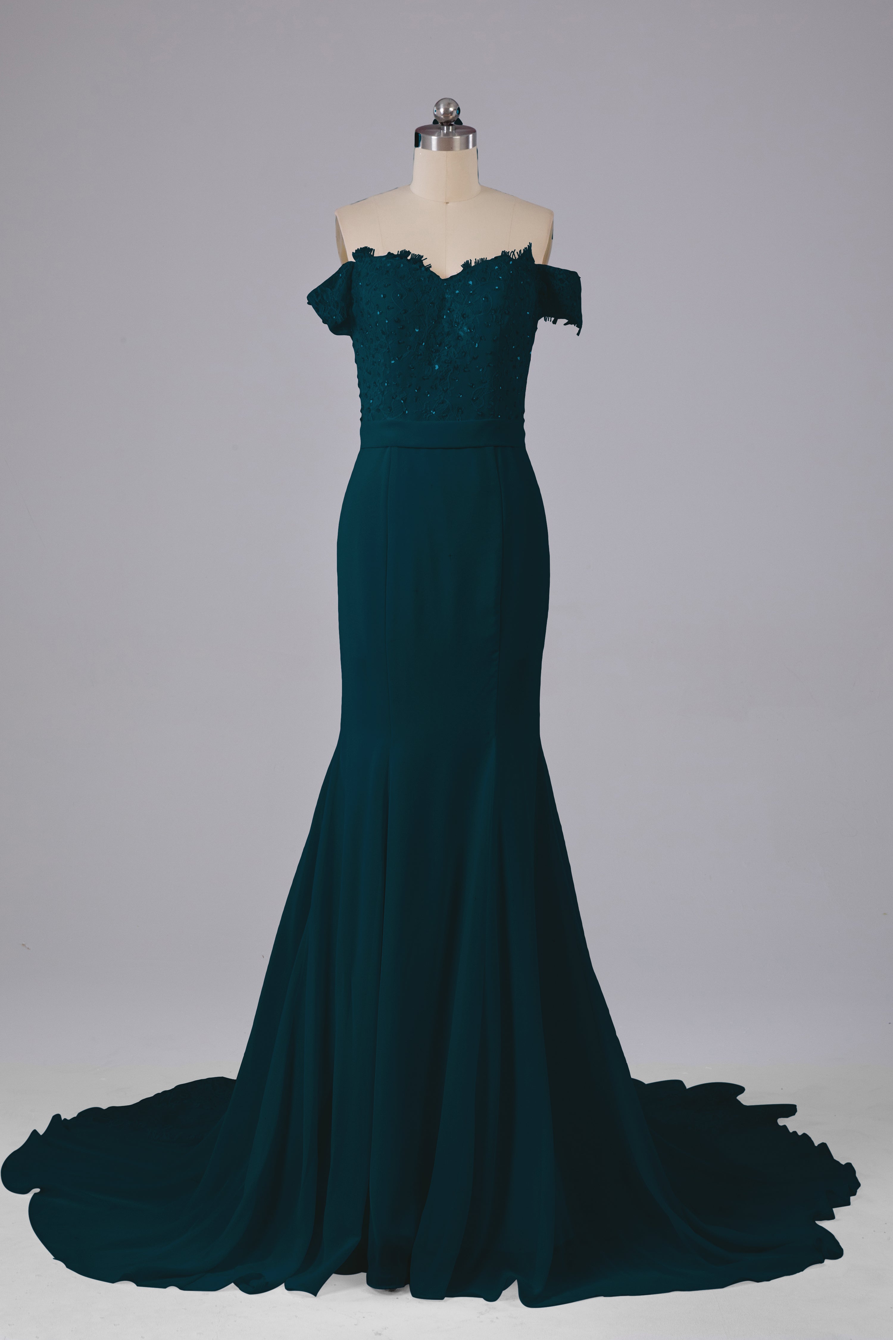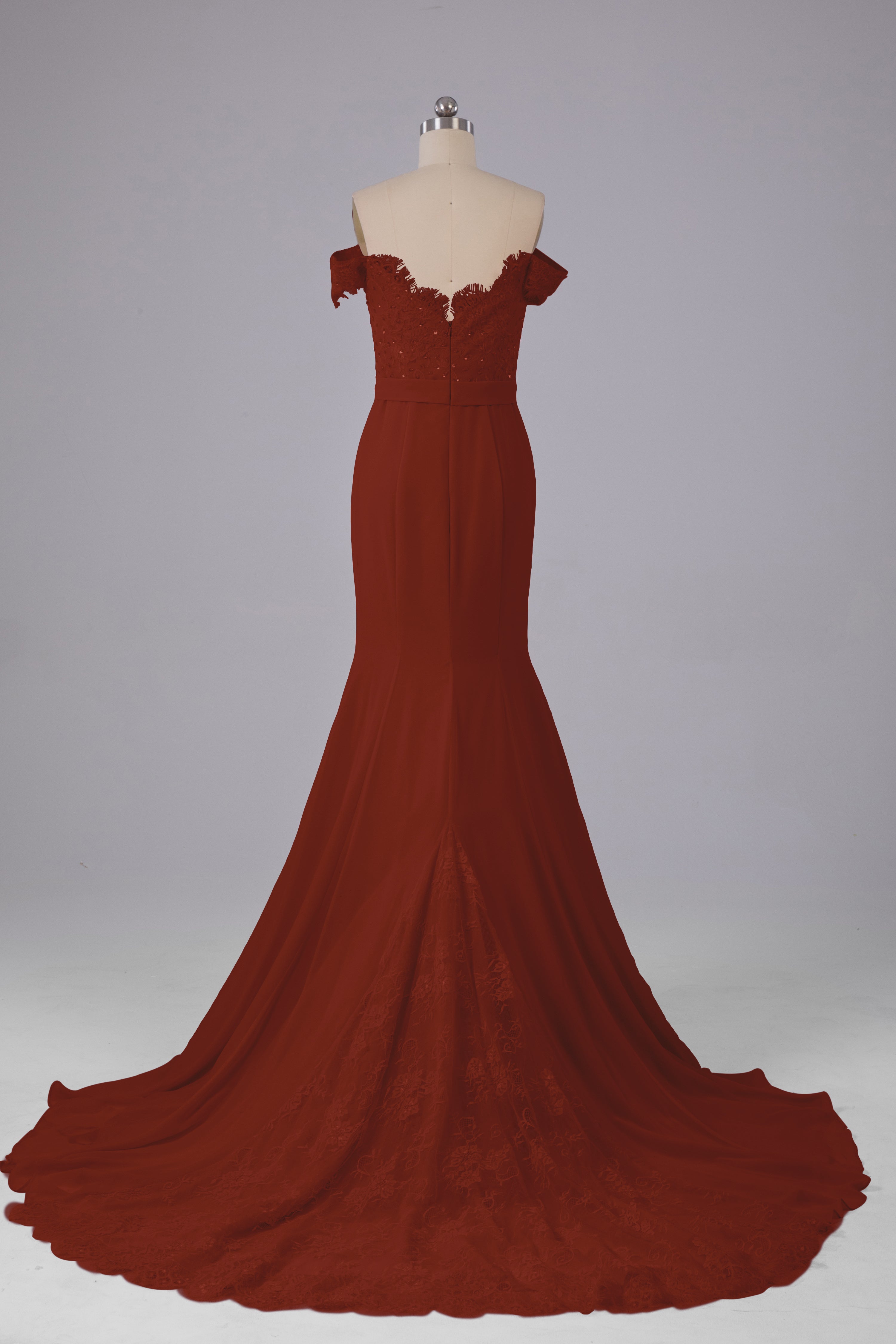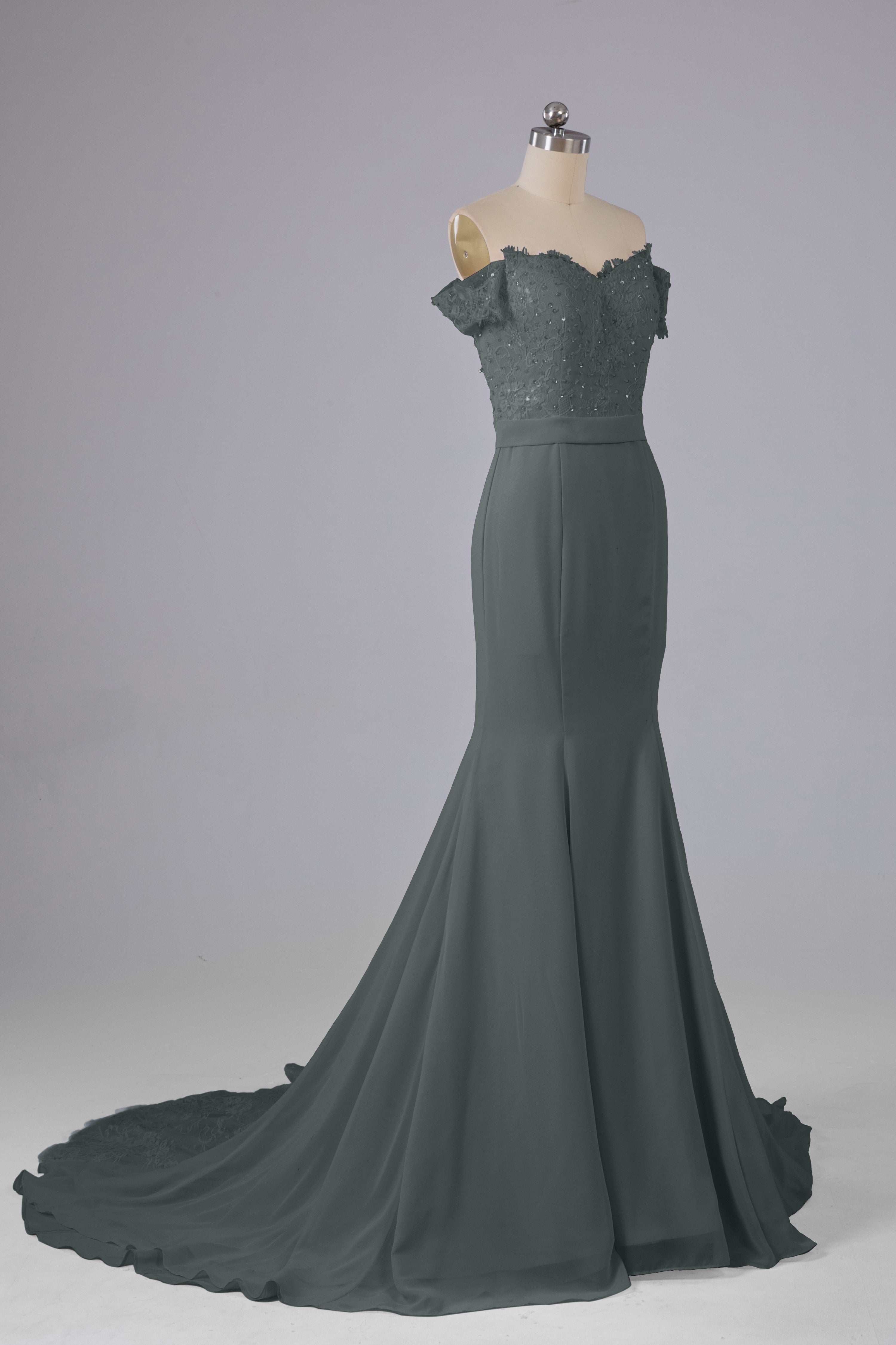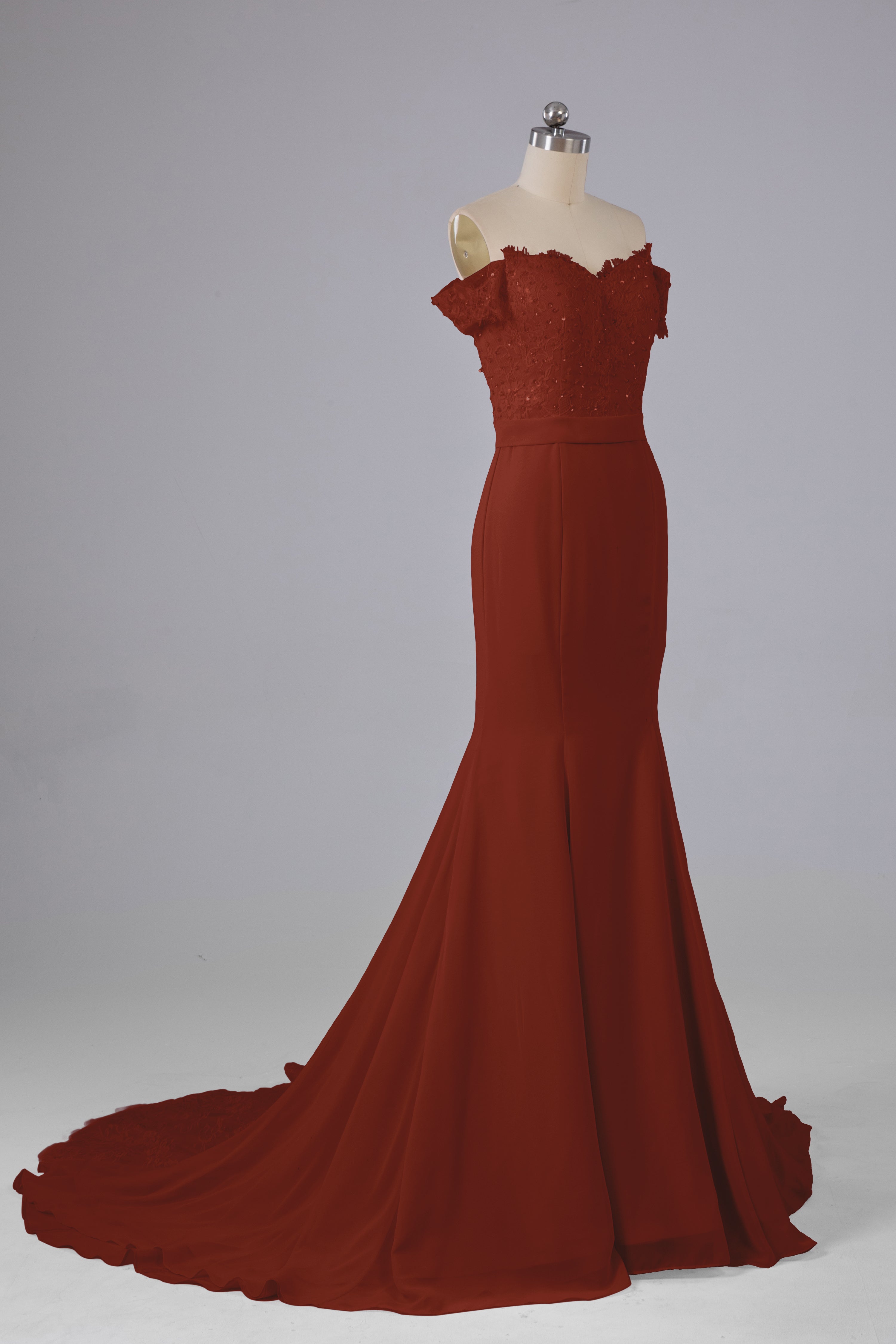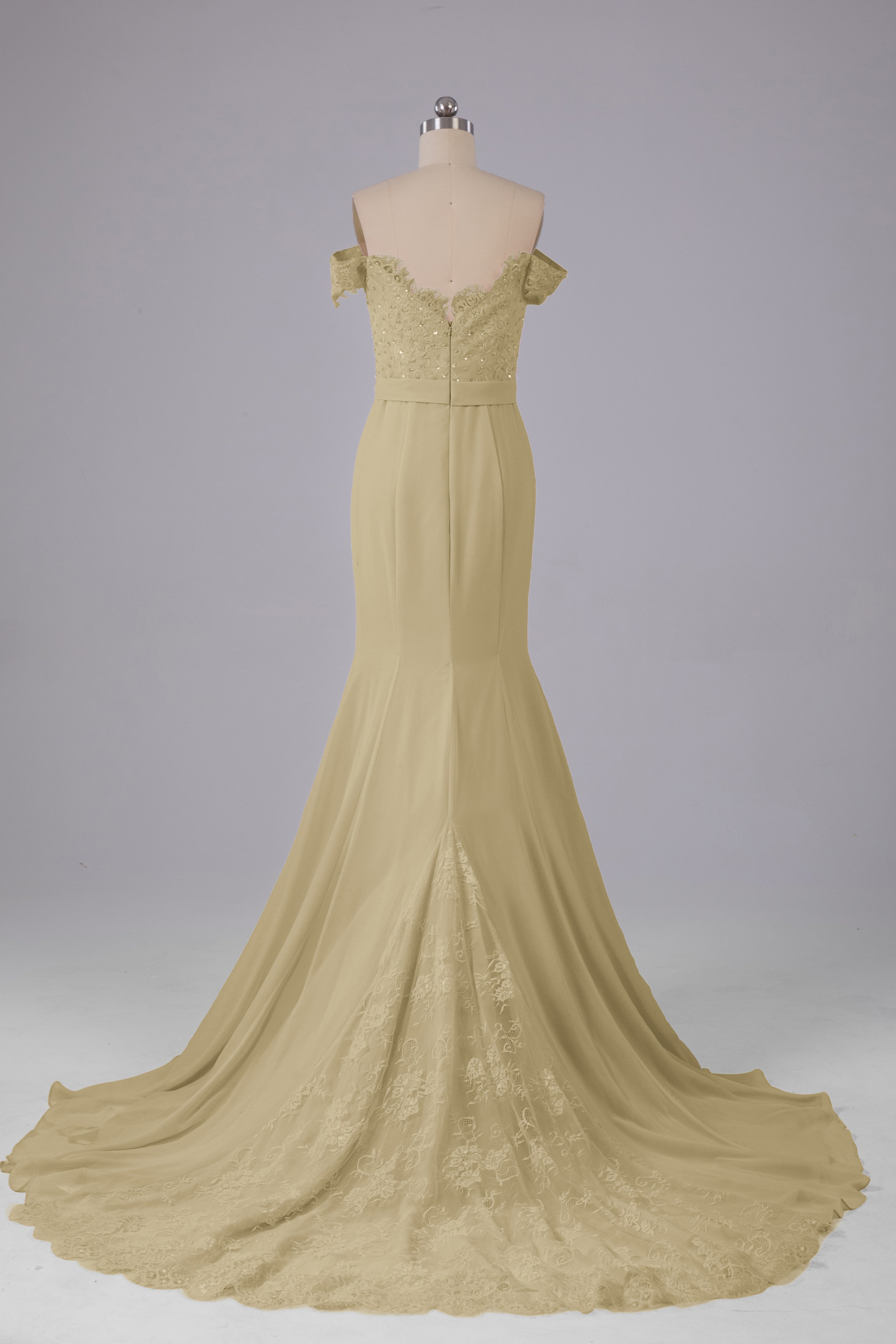 Off The Shoulder Hourglass Court Train Bridesmaid Dresses
