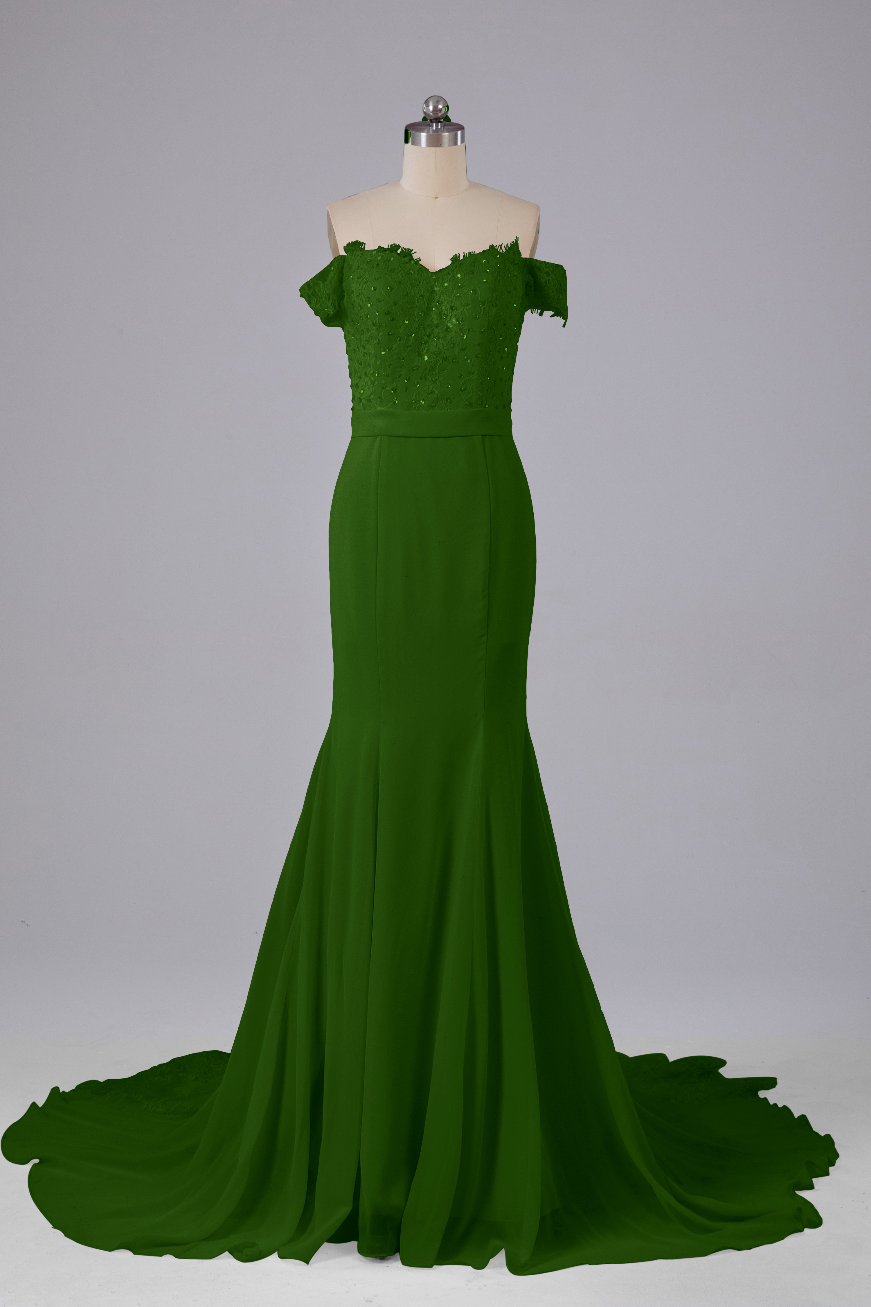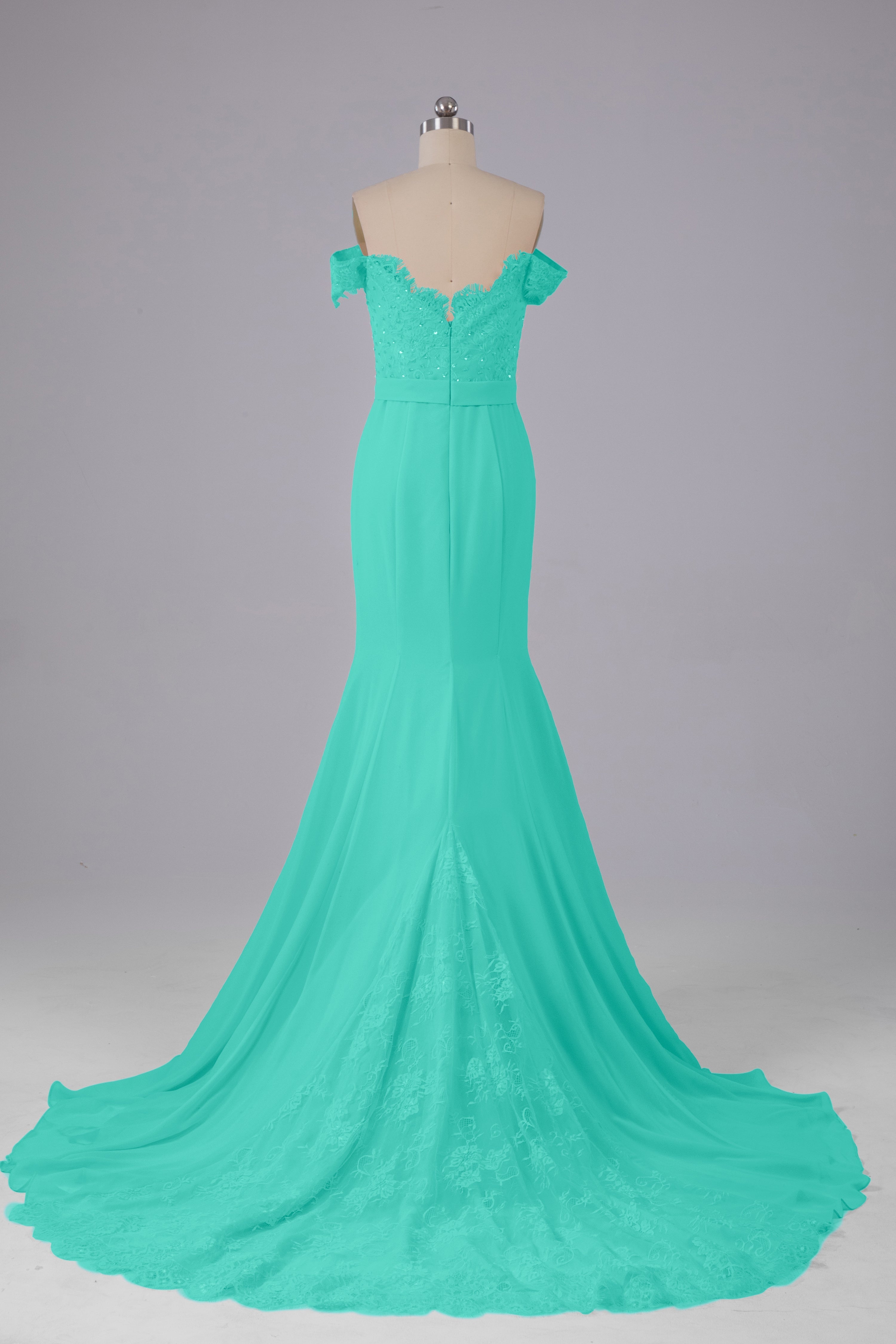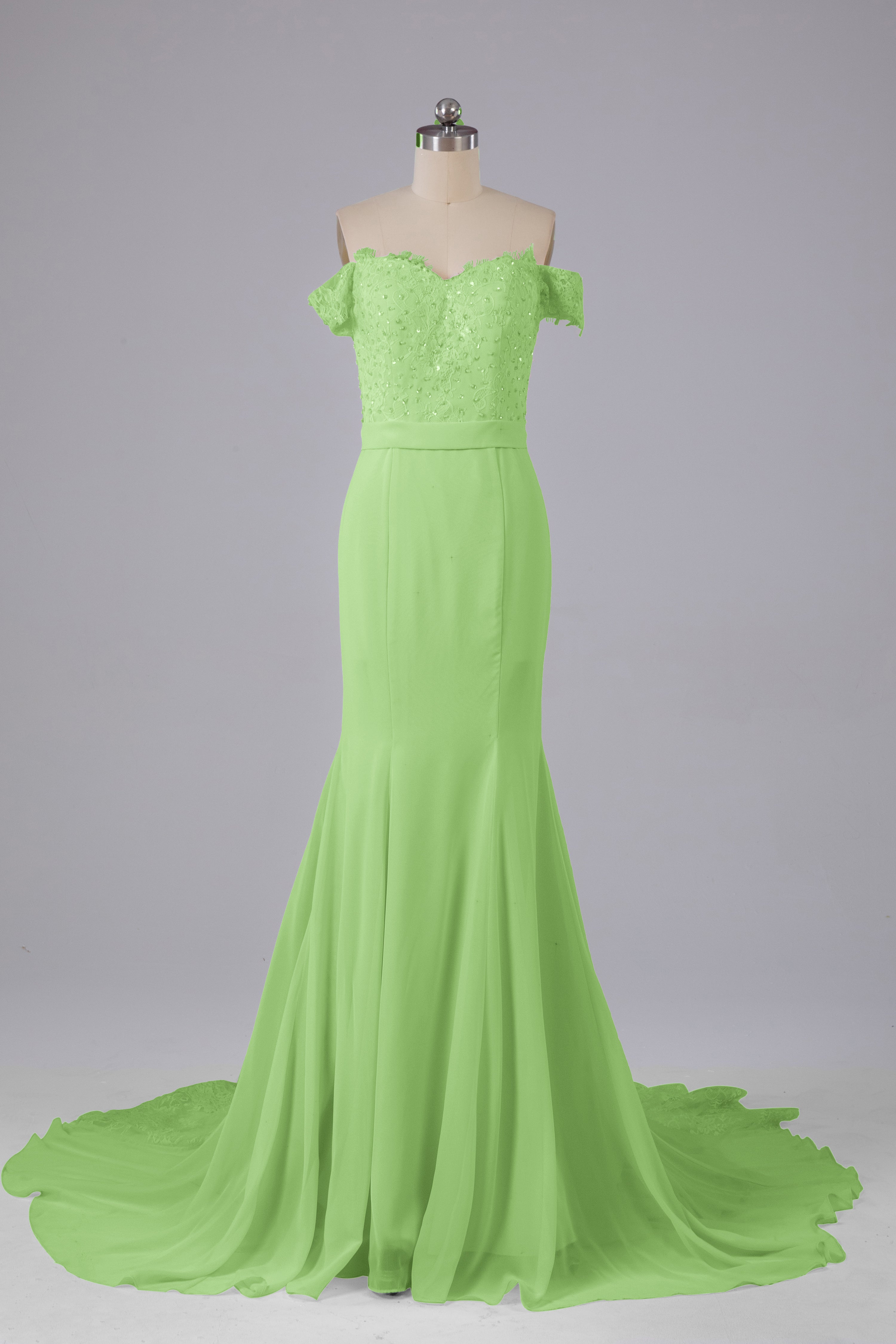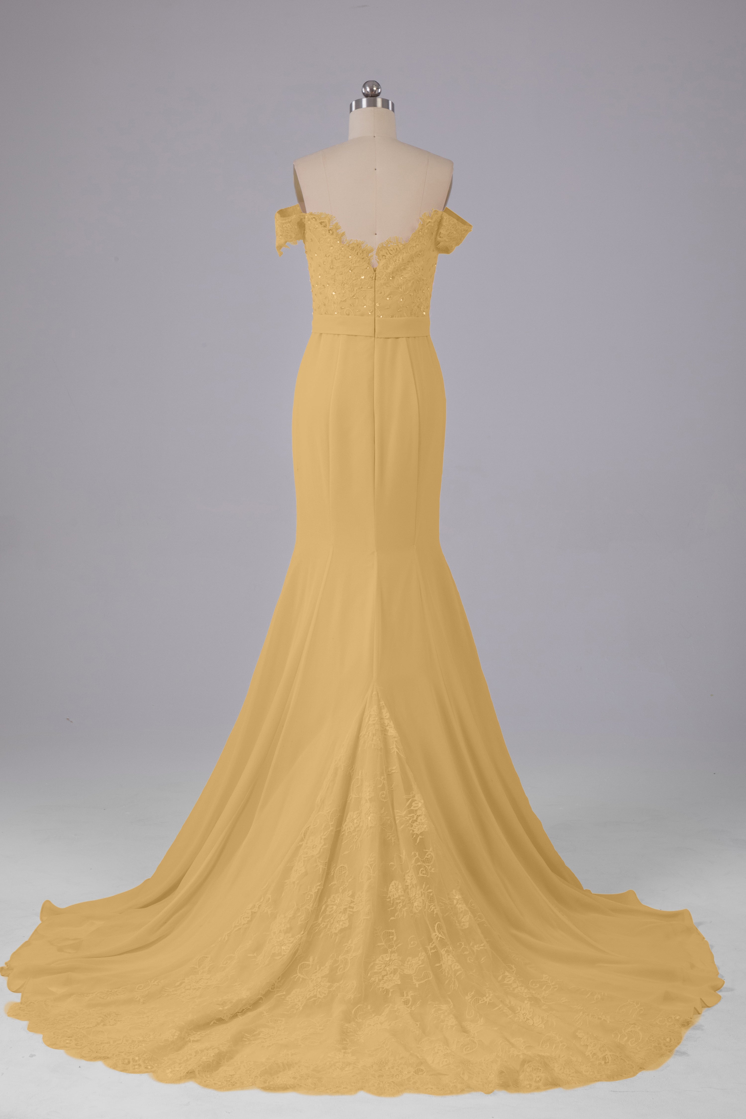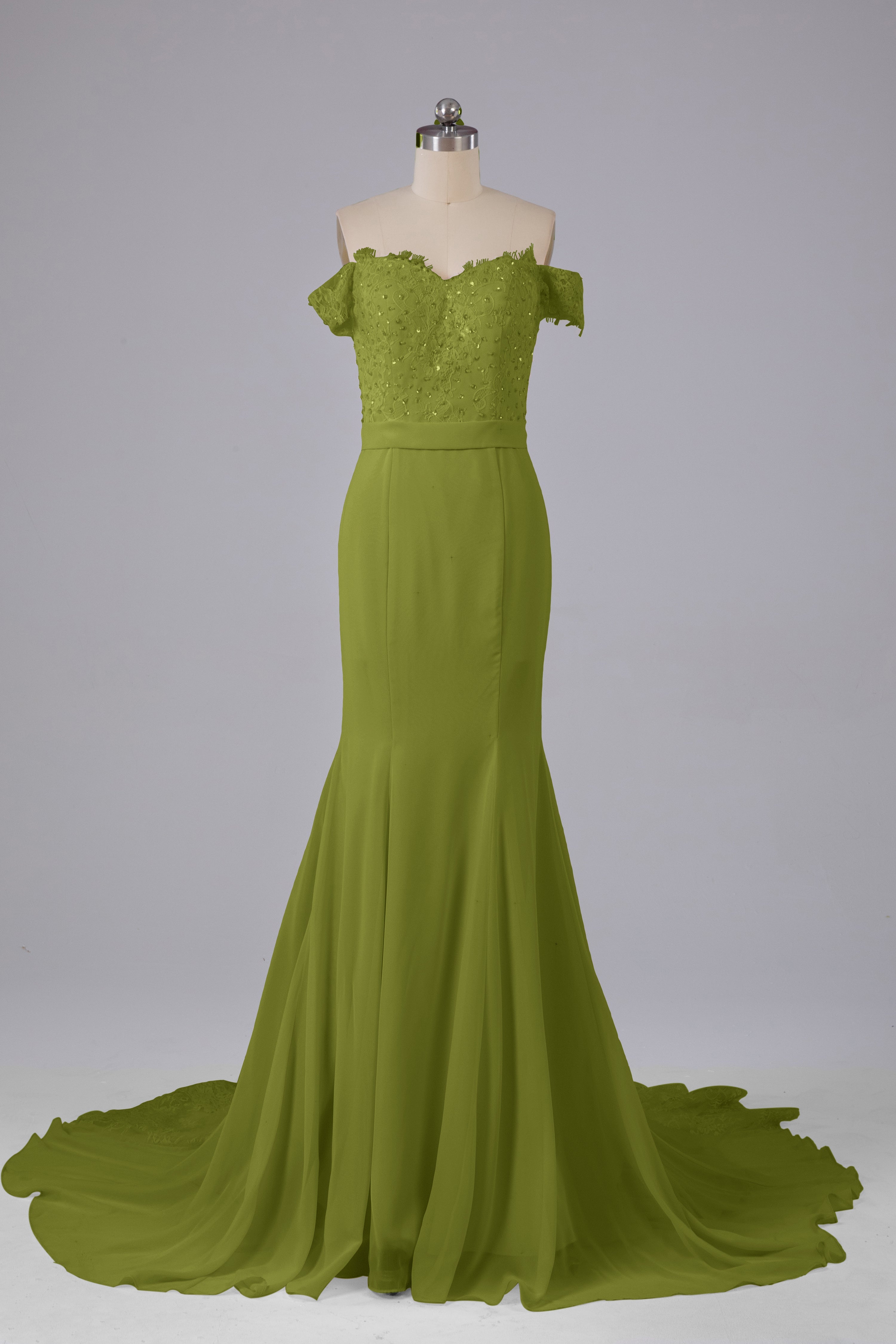 Off The Shoulder Hourglass Court Train Bridesmaid Dresses