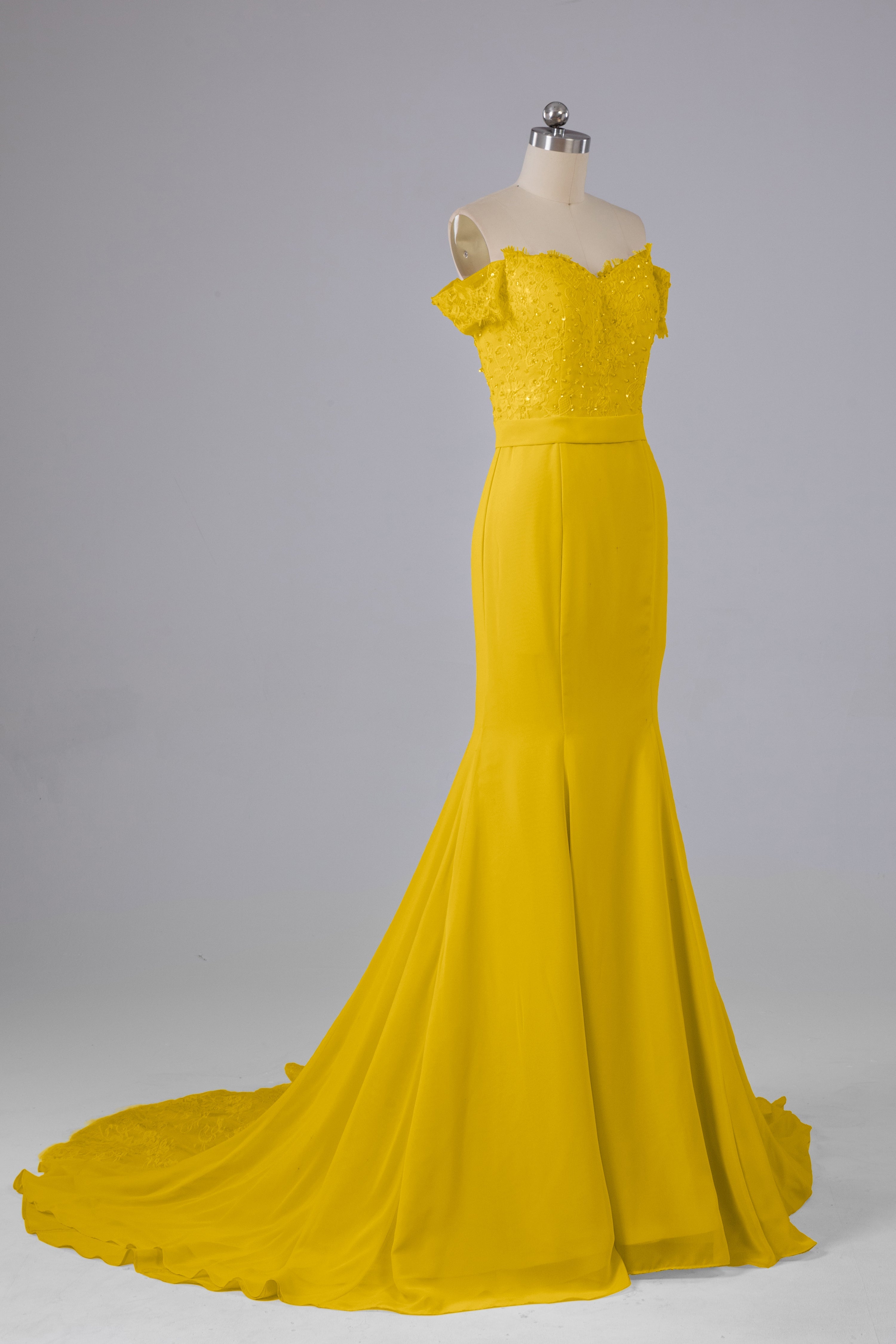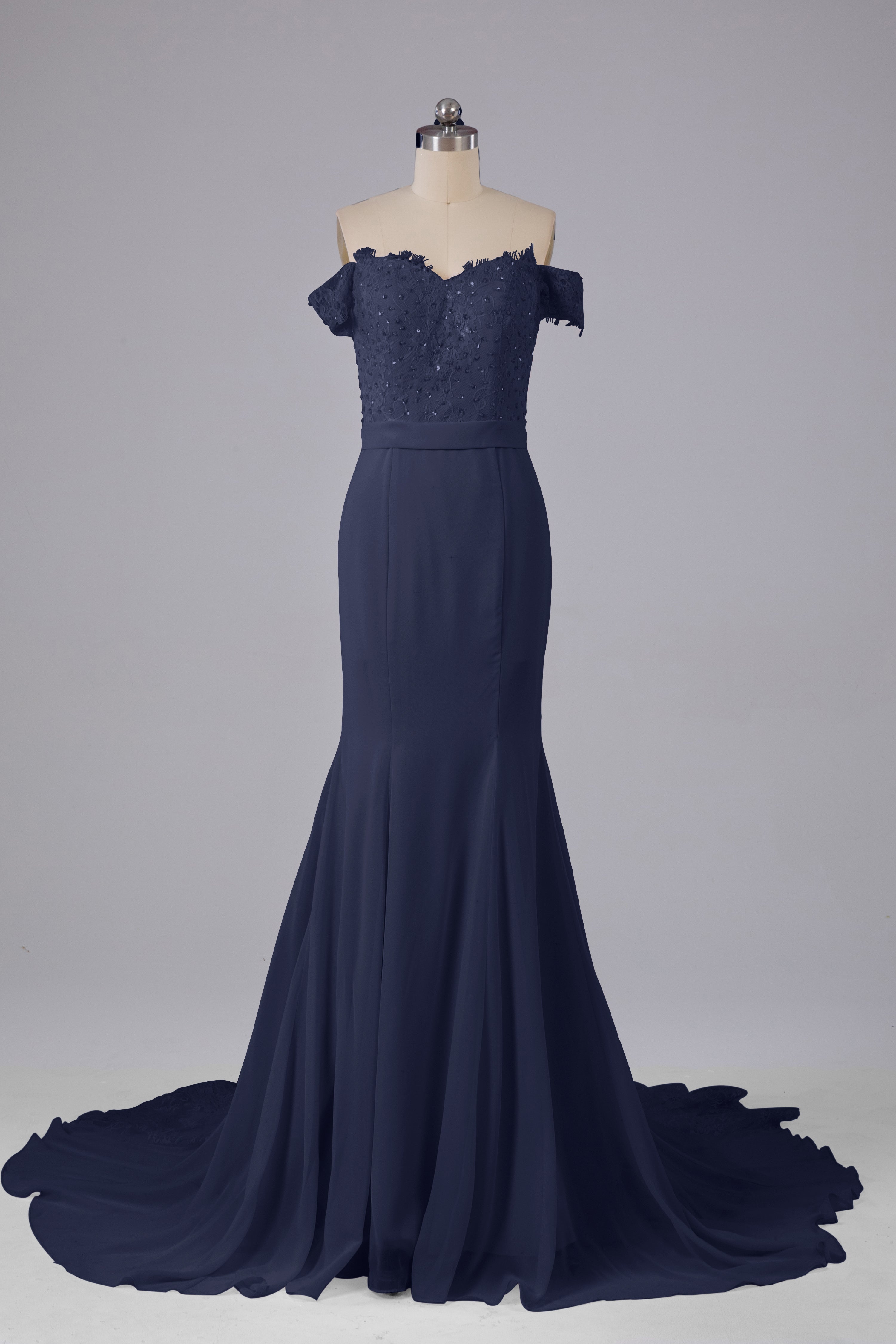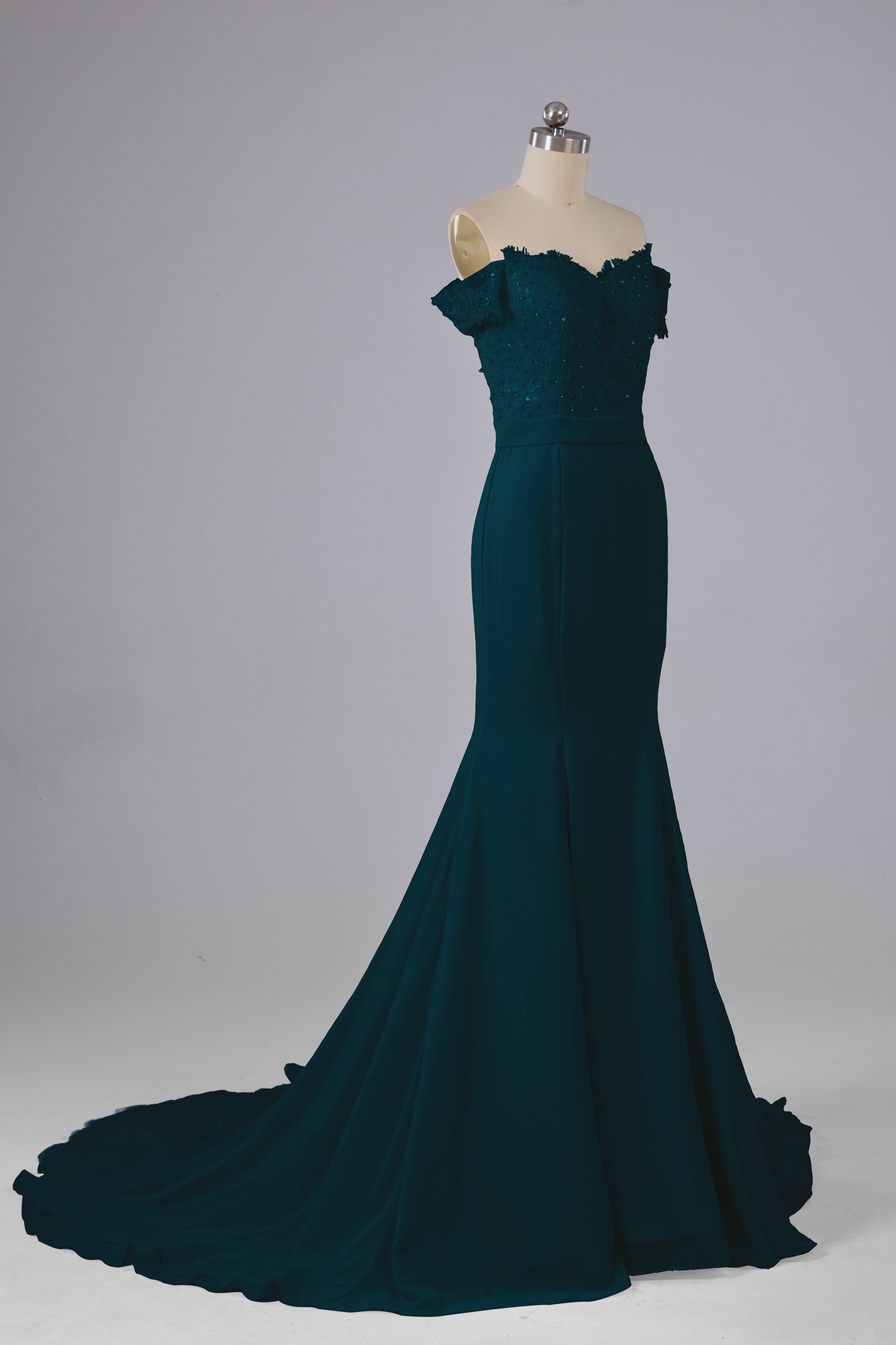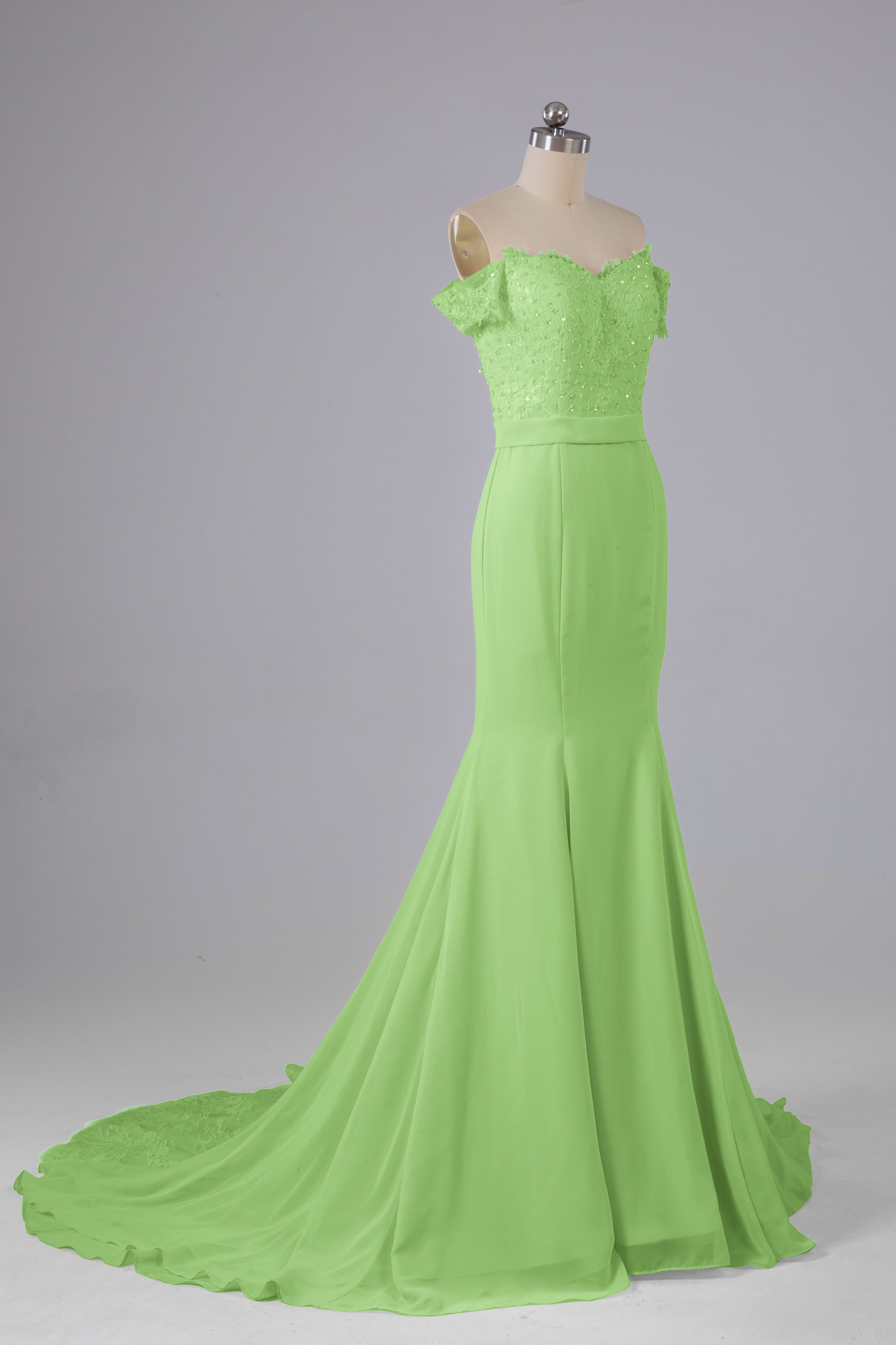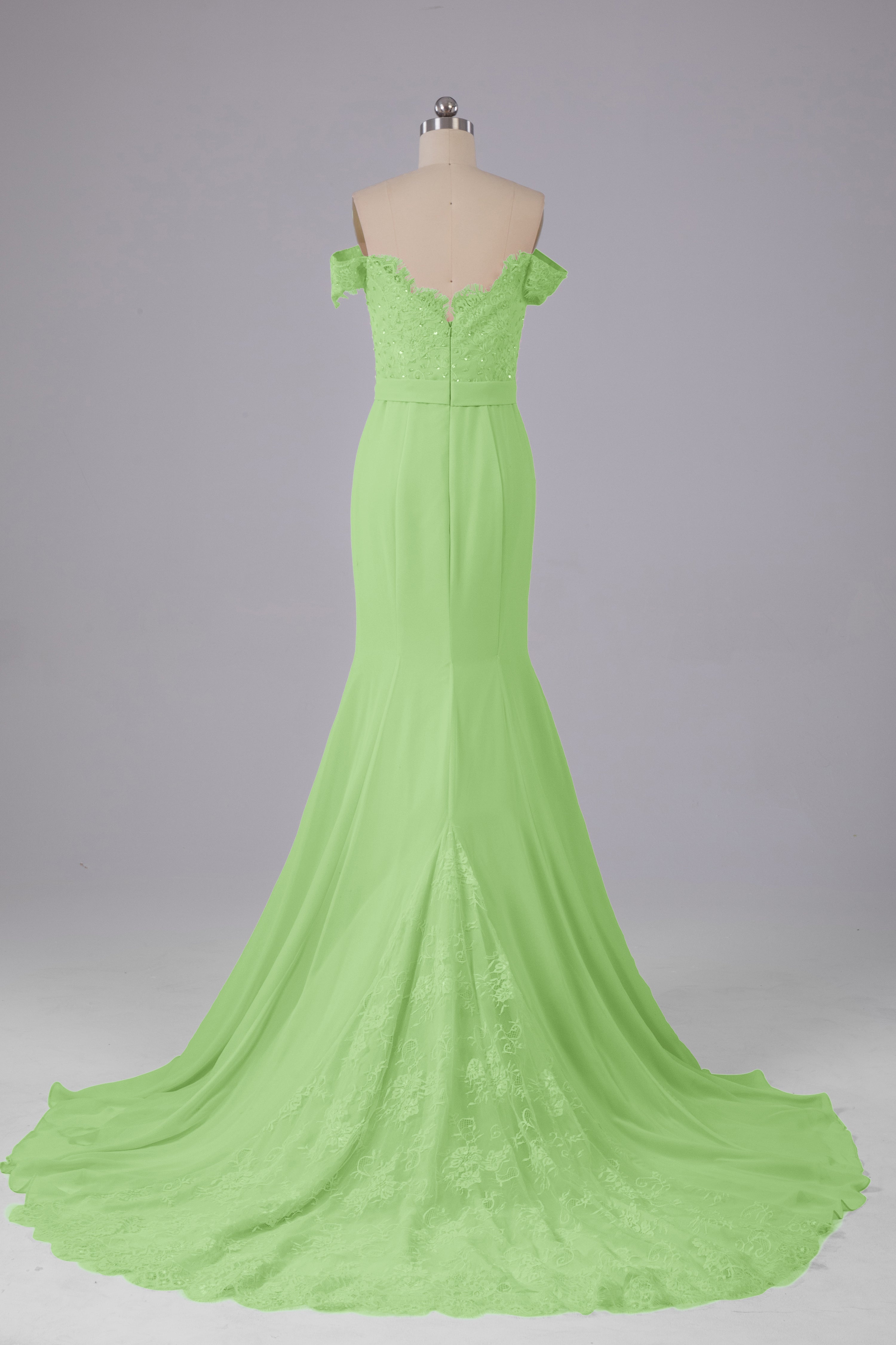 Off The Shoulder Hourglass Court Train Bridesmaid Dresses