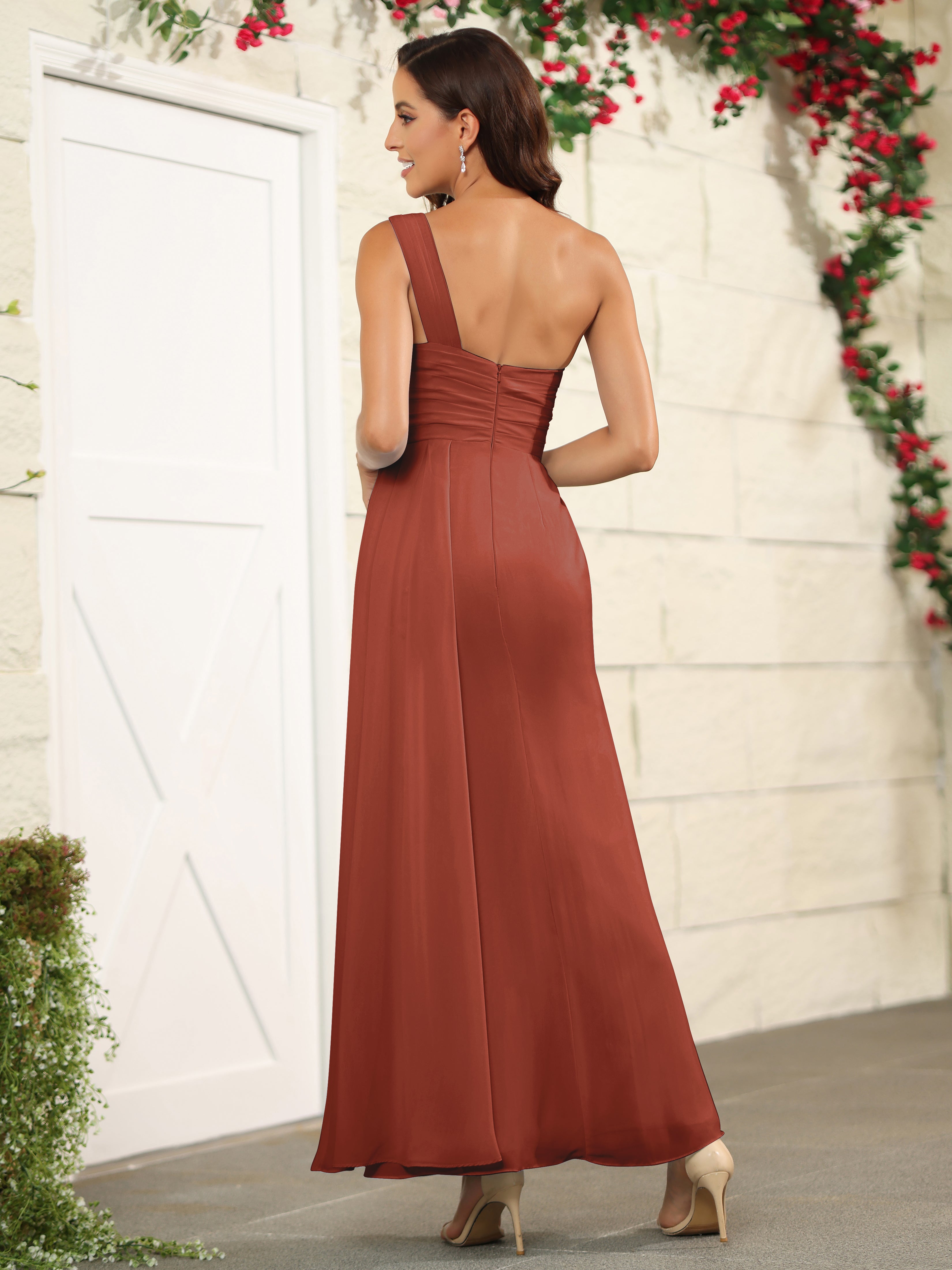 One Shoulder Chiffon Long Bridesmaid Dress with Split