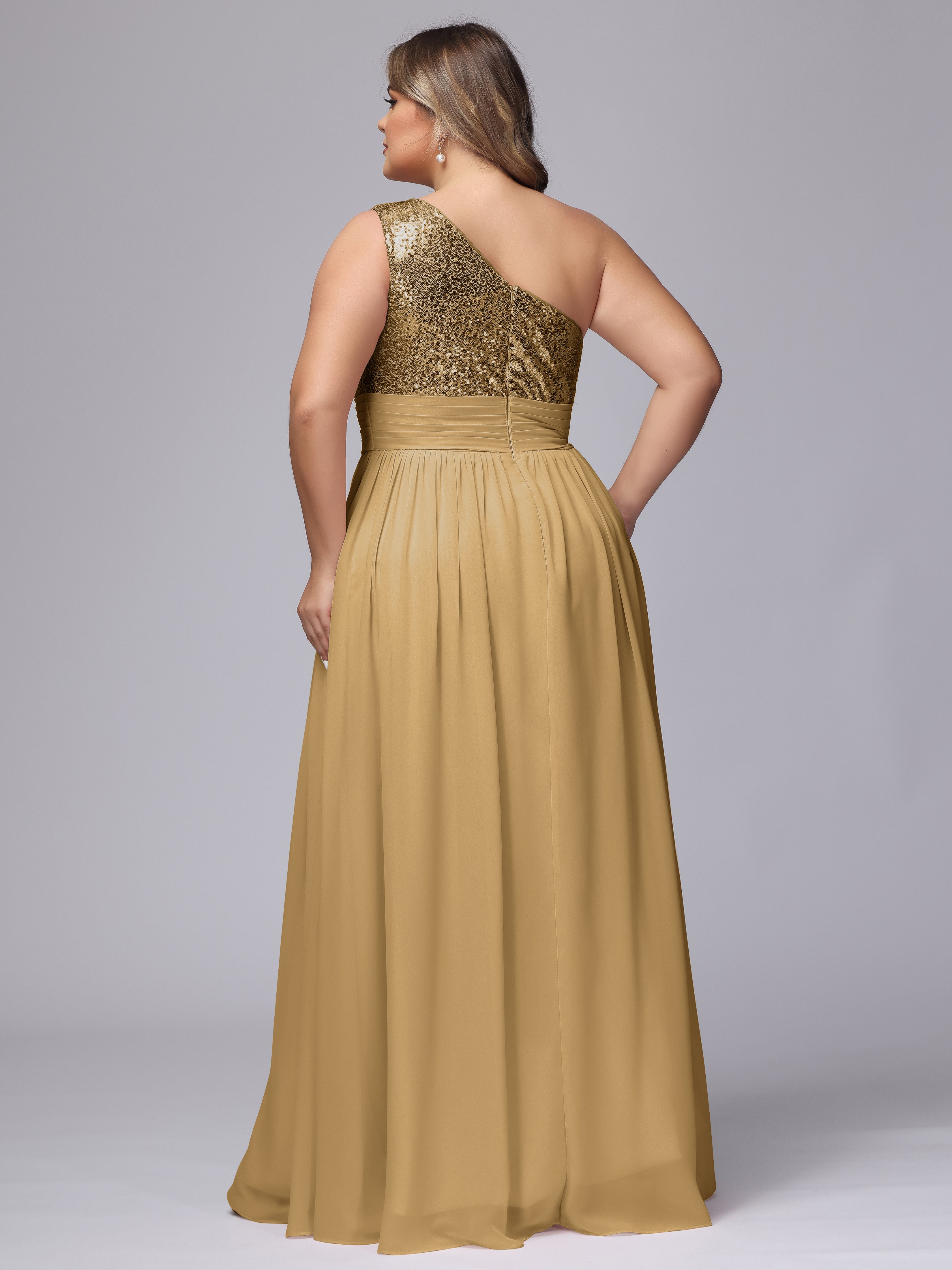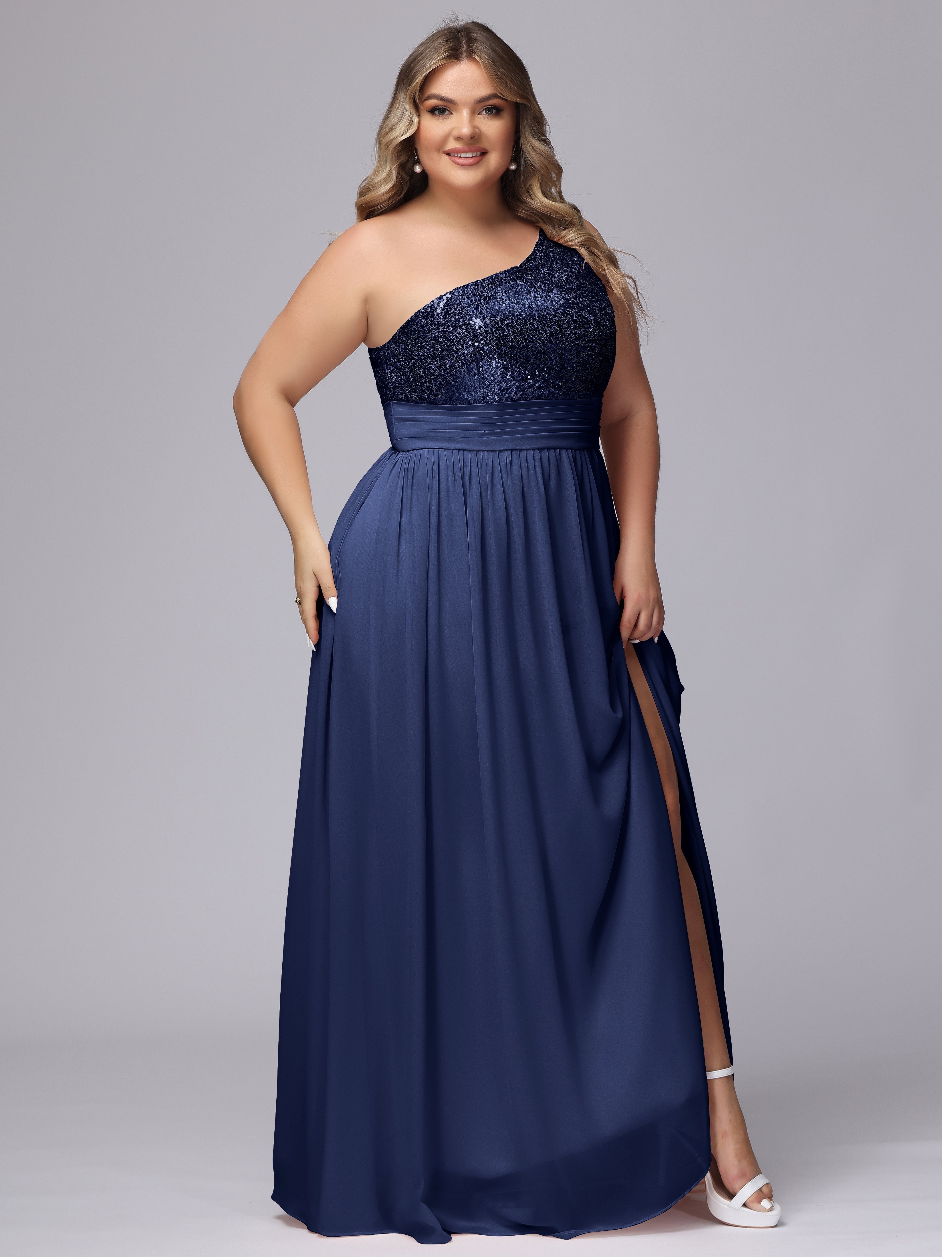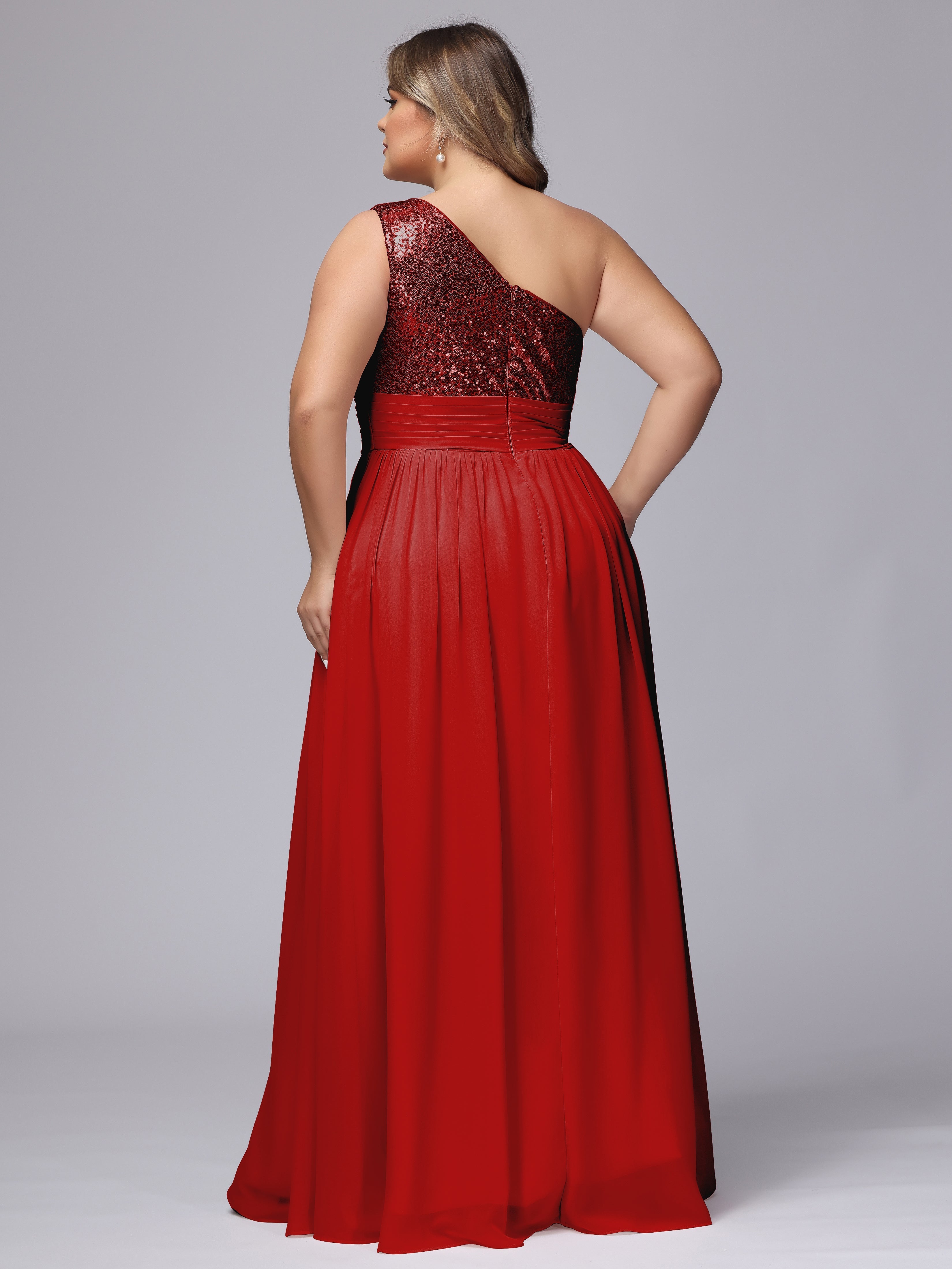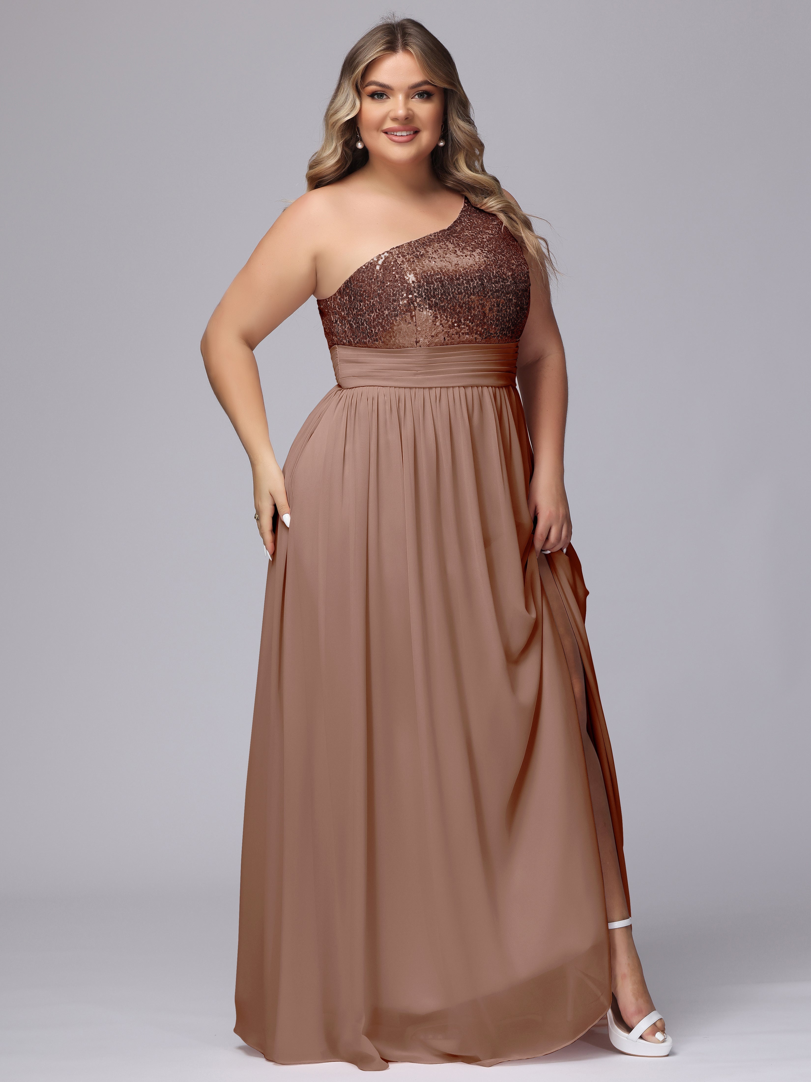 One-Shoulder Sequins Plus Size Bridesmaid Dress with Pockets