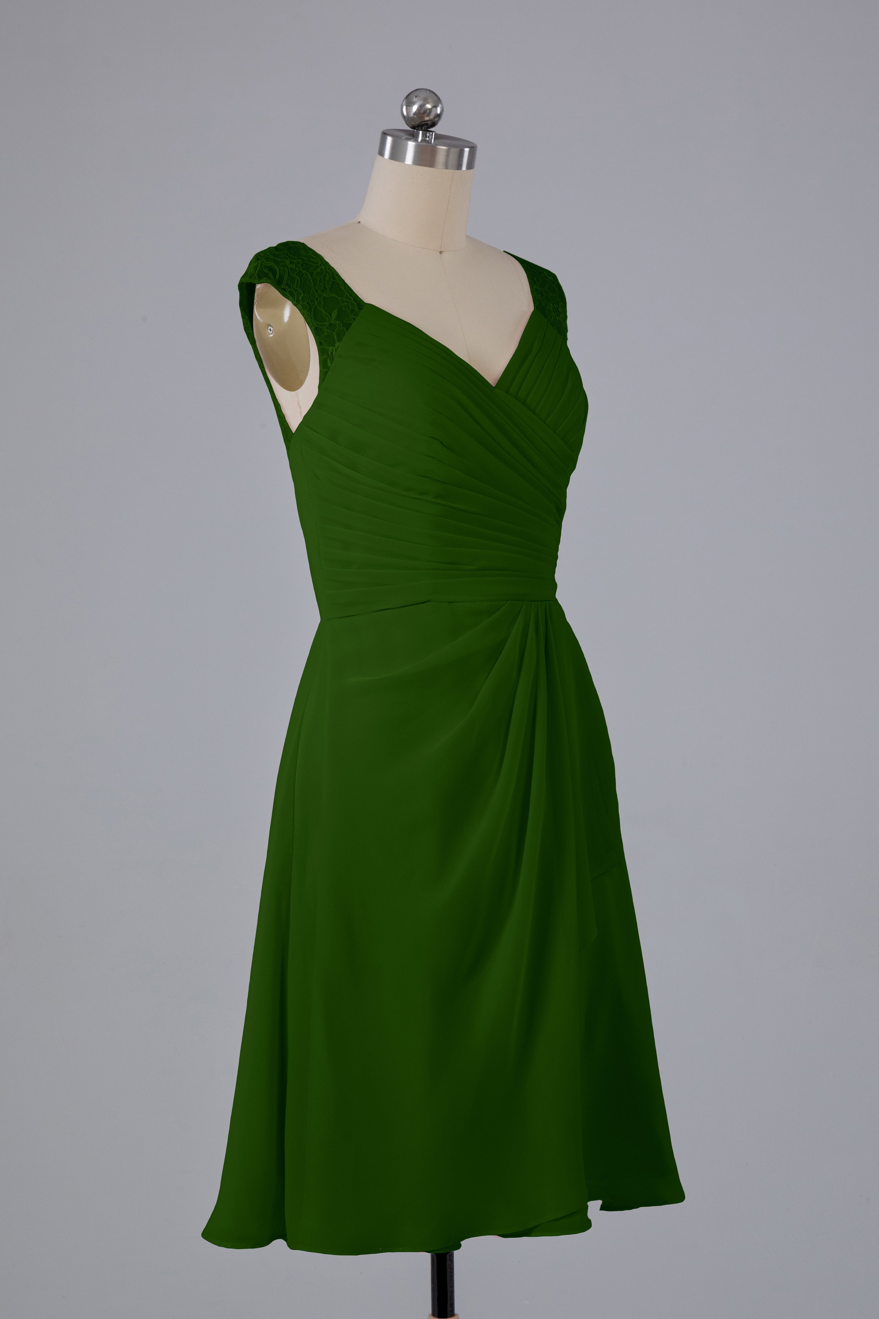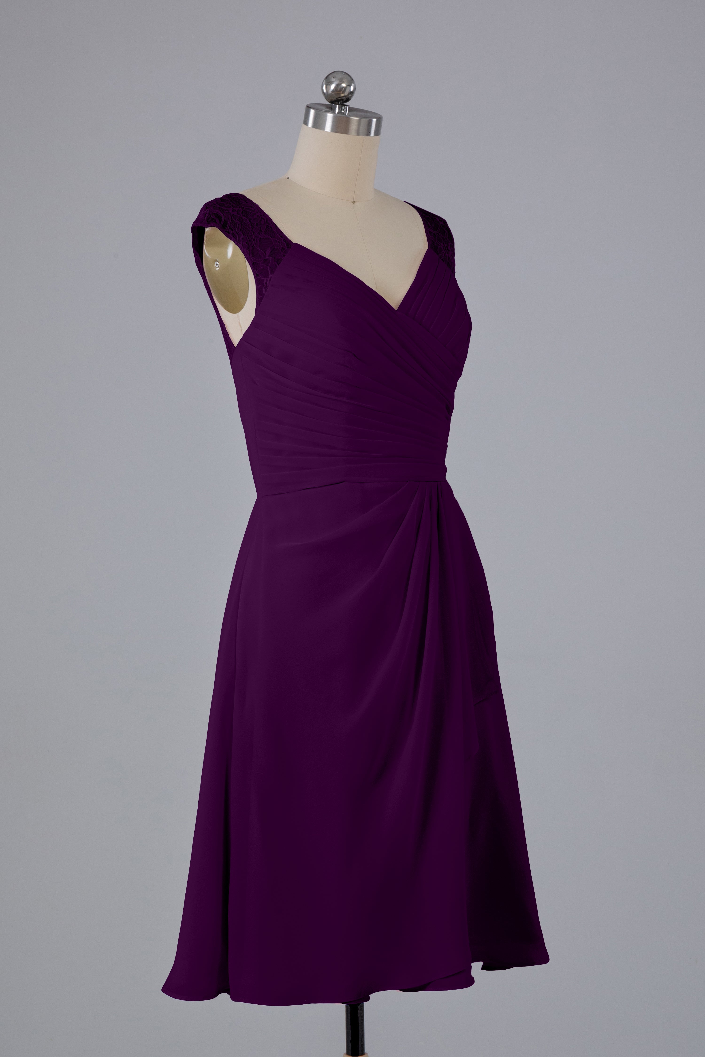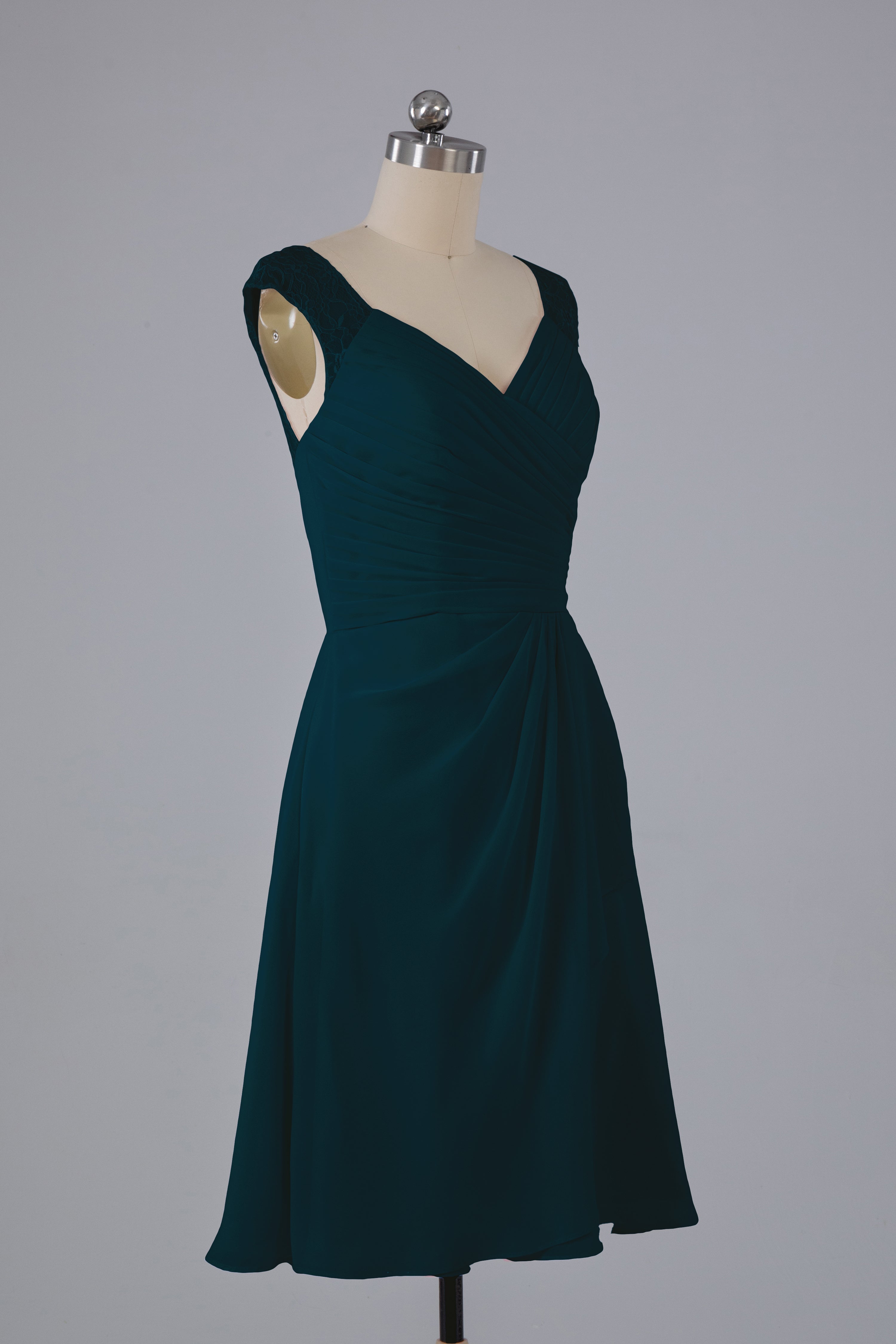Discover timeless elegance with our Simple Knee Length V-Neck Chiffon Bridesmaid Dresses. Made with soft chiffon material and a flattering V-neck, these dresses are perfect for any wedding party. Their simple design allows for versatile styling and ensures all bridesmaids will feel comfortable and beautiful.
