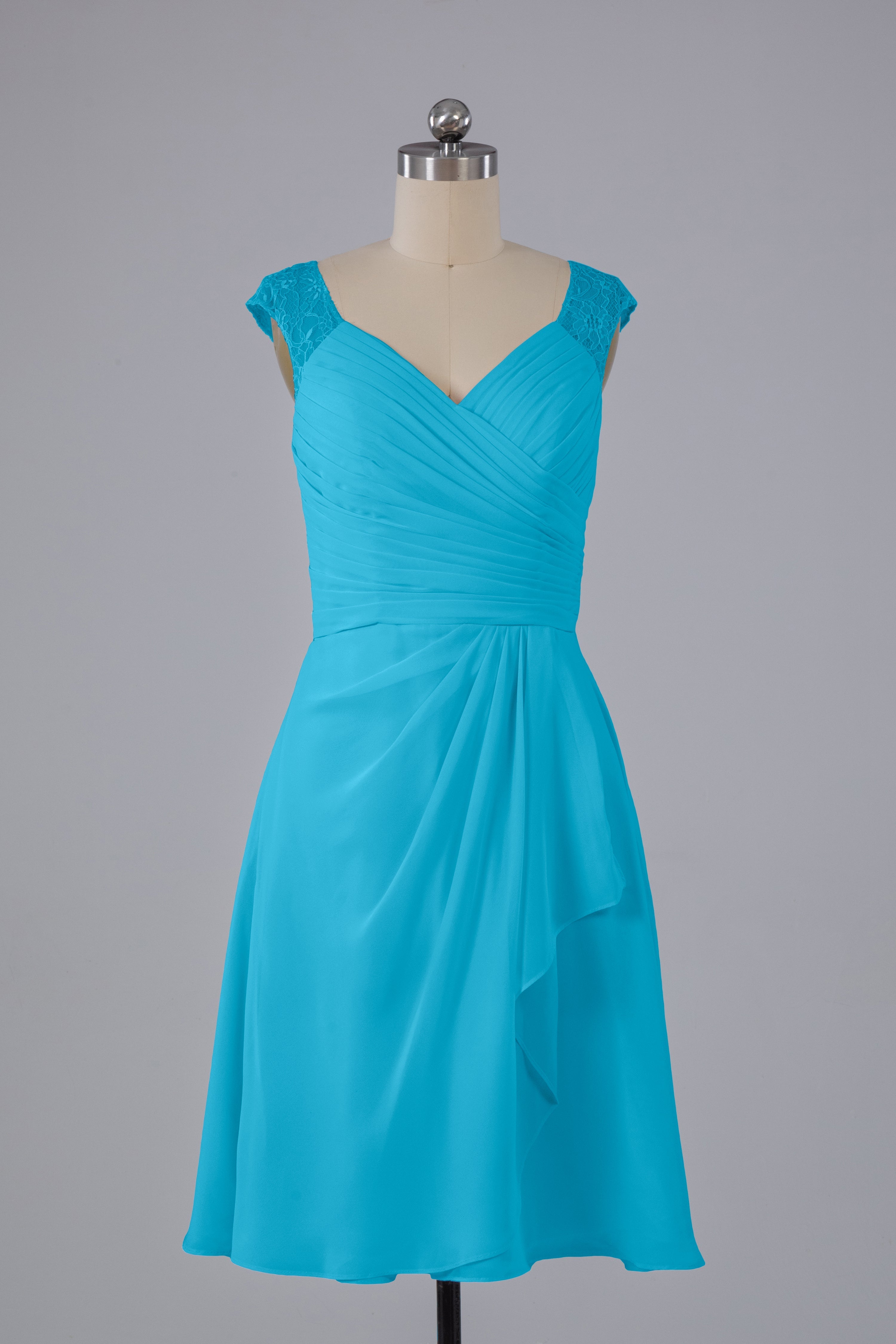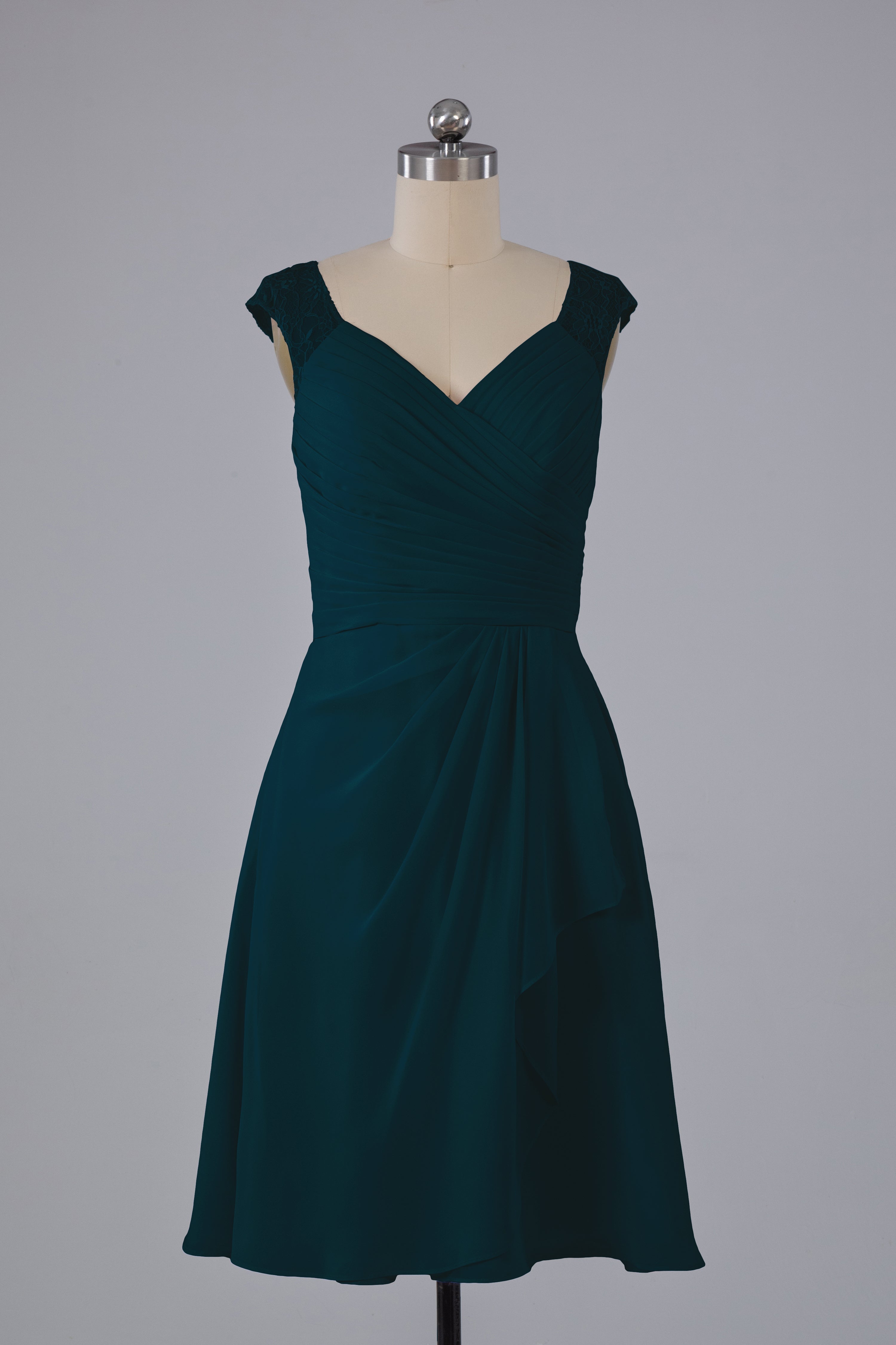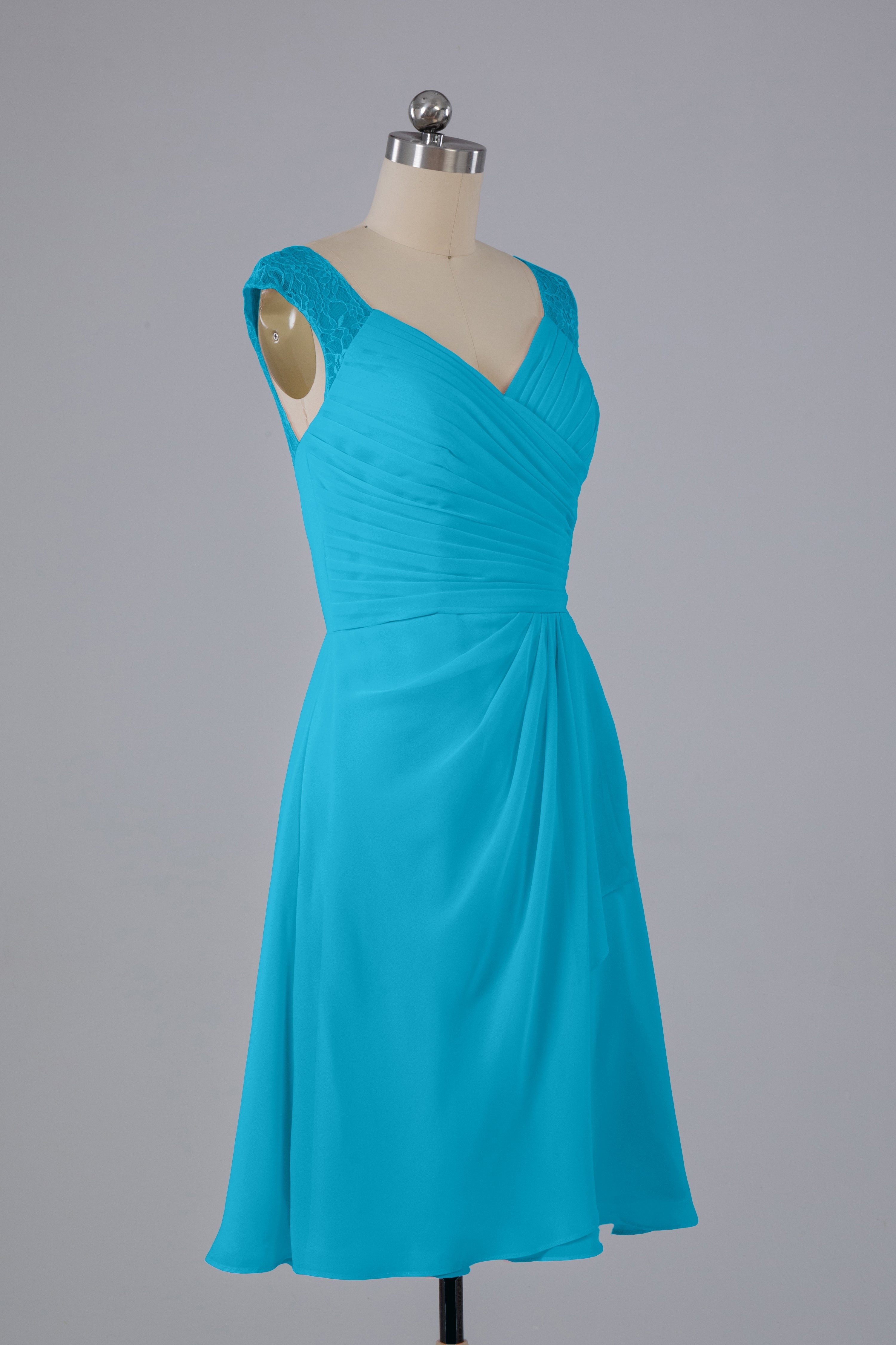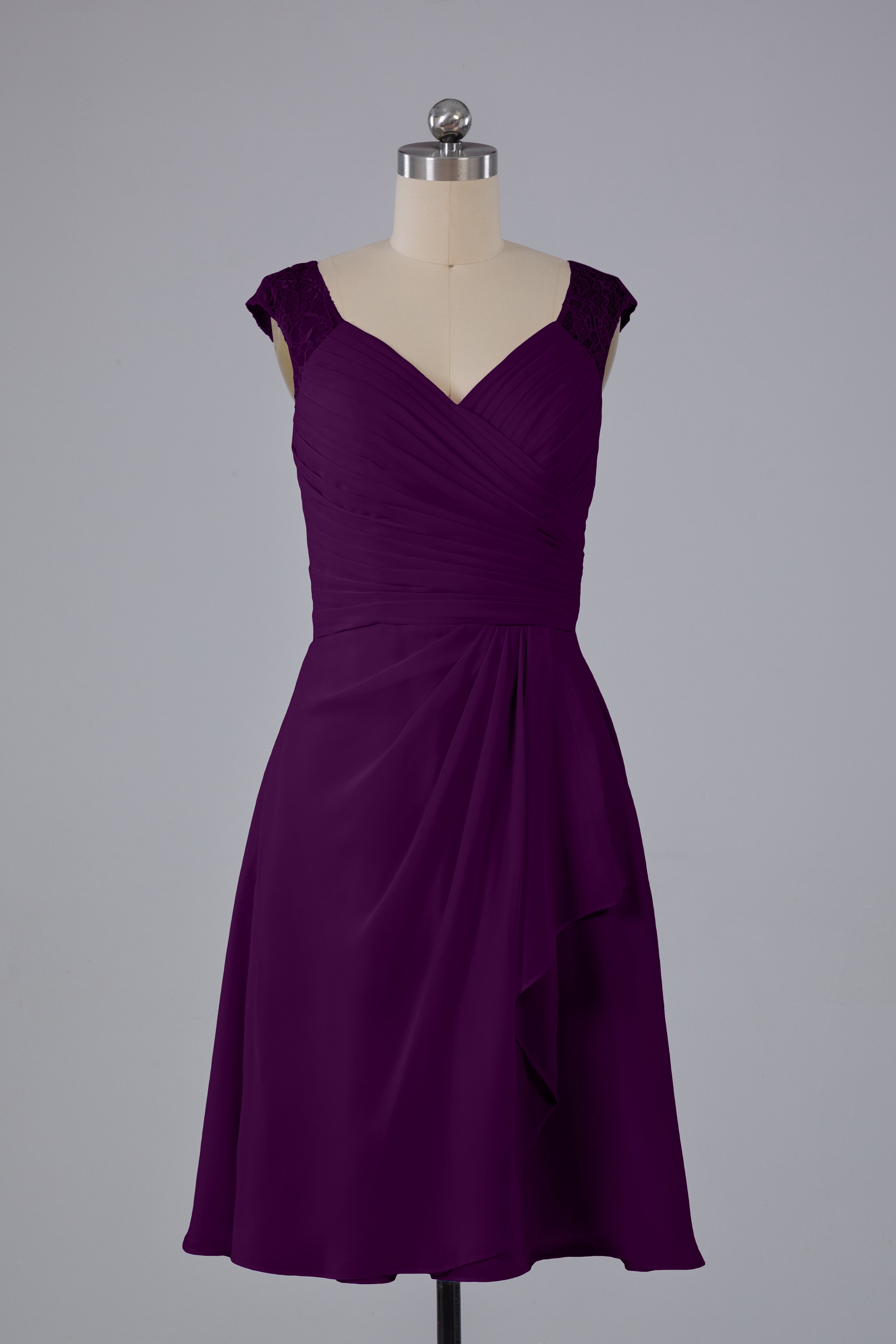 Discover timeless elegance with our Simple Knee Length V-Neck Chiffon Bridesmaid Dresses. Made with soft chiffon material and a flattering V-neck, these dresses are perfect for any wedding party. Their simple design allows for versatile styling and ensures all bridesmaids will feel comfortable and beautiful.