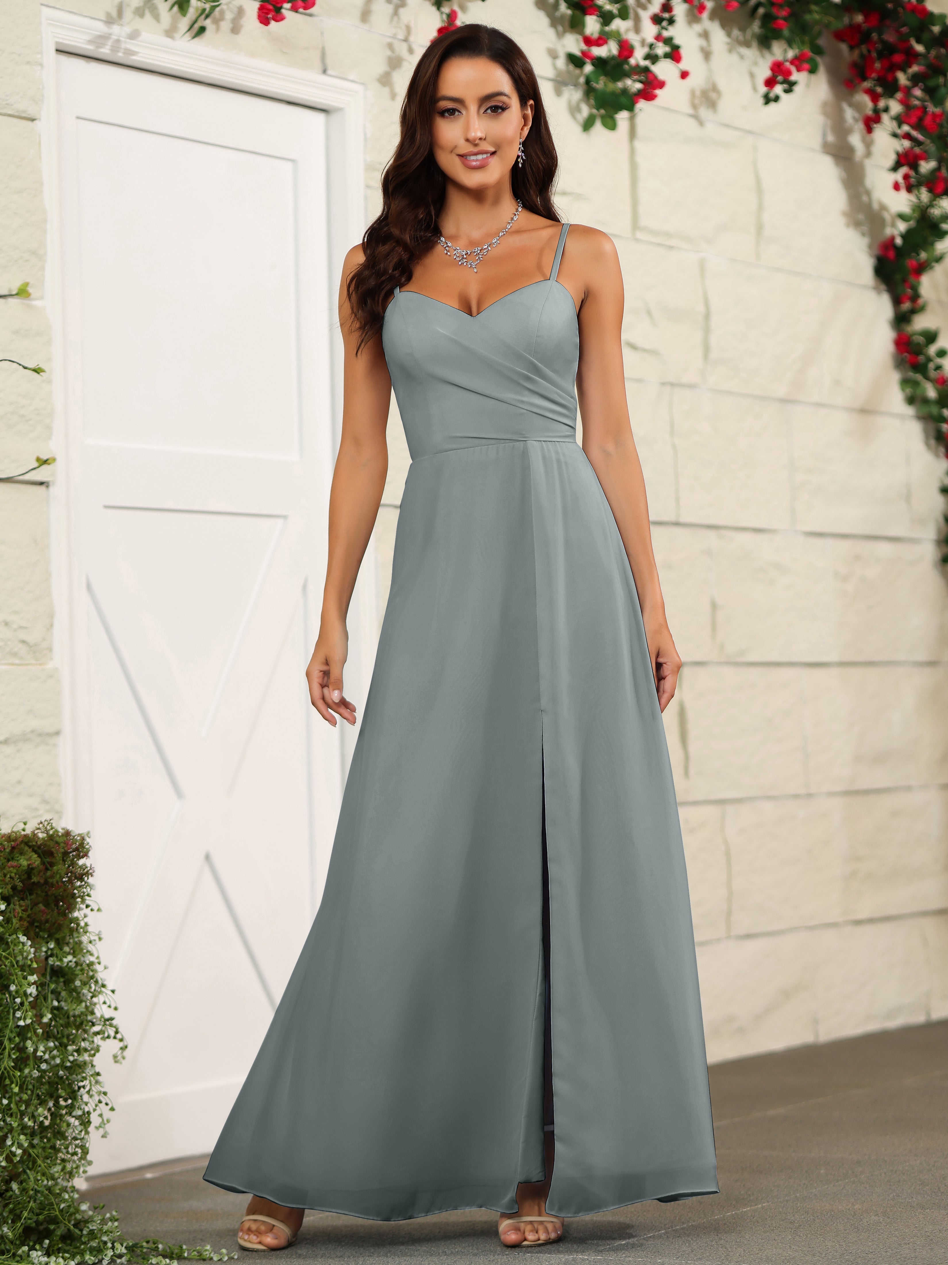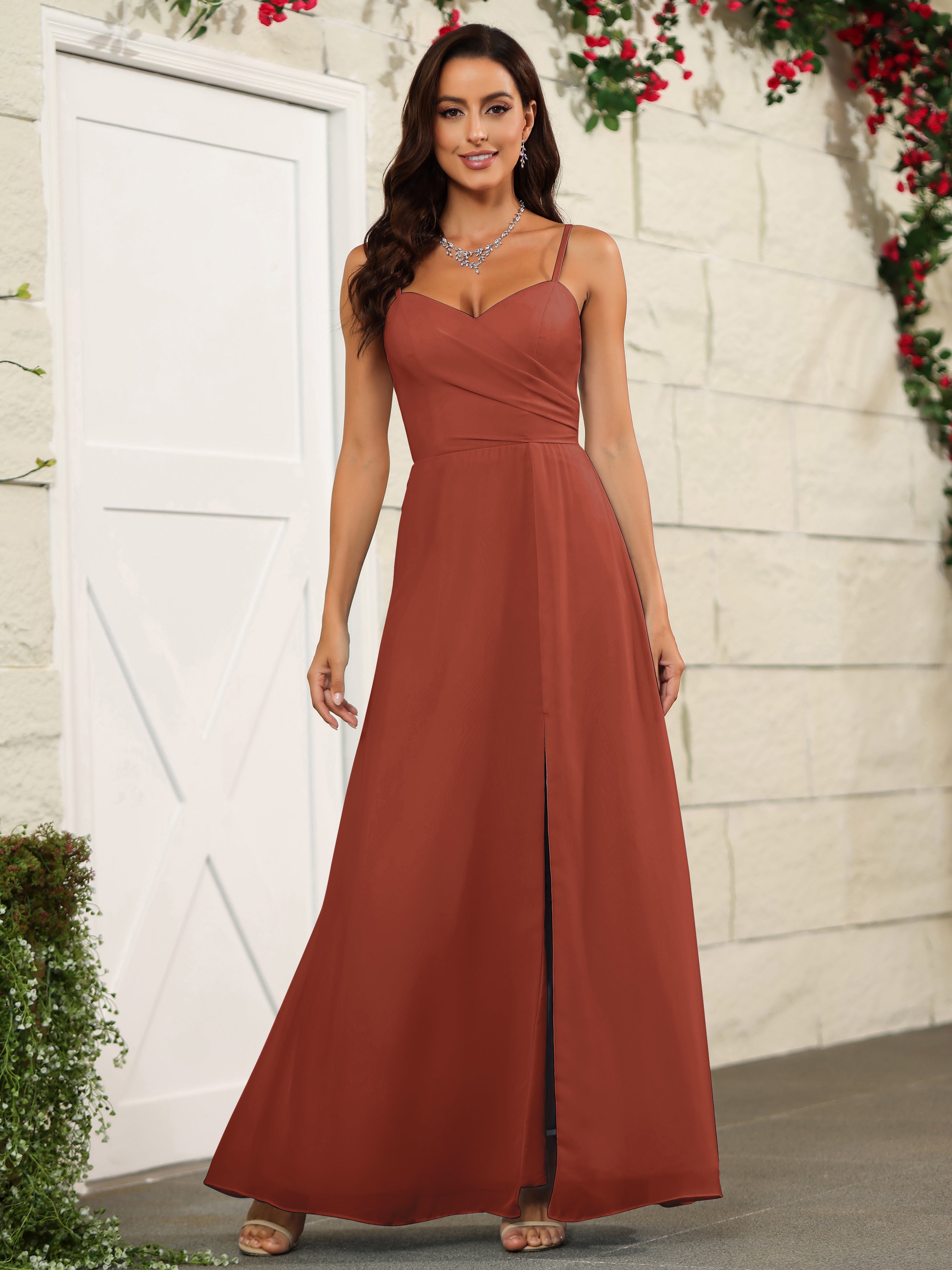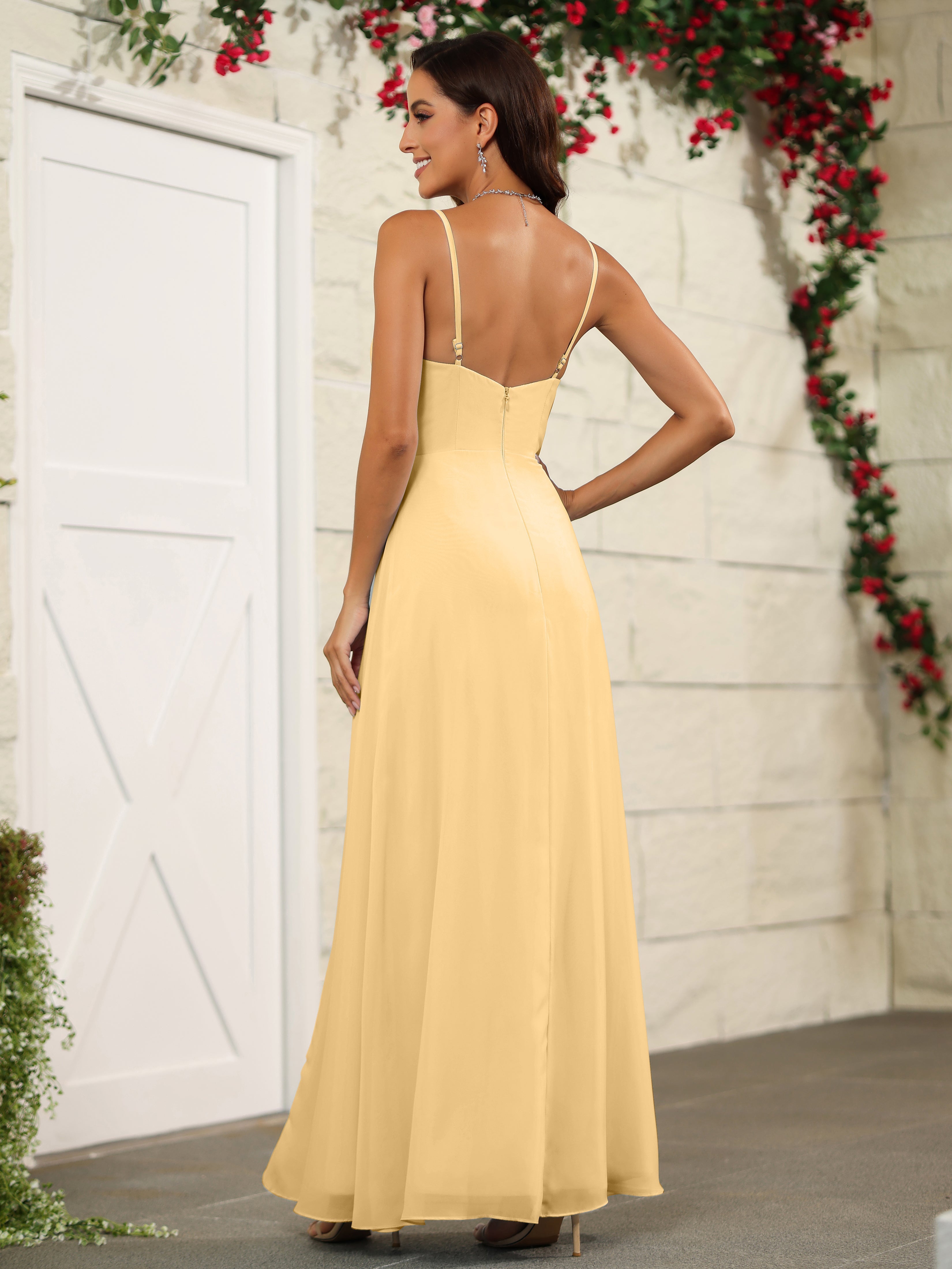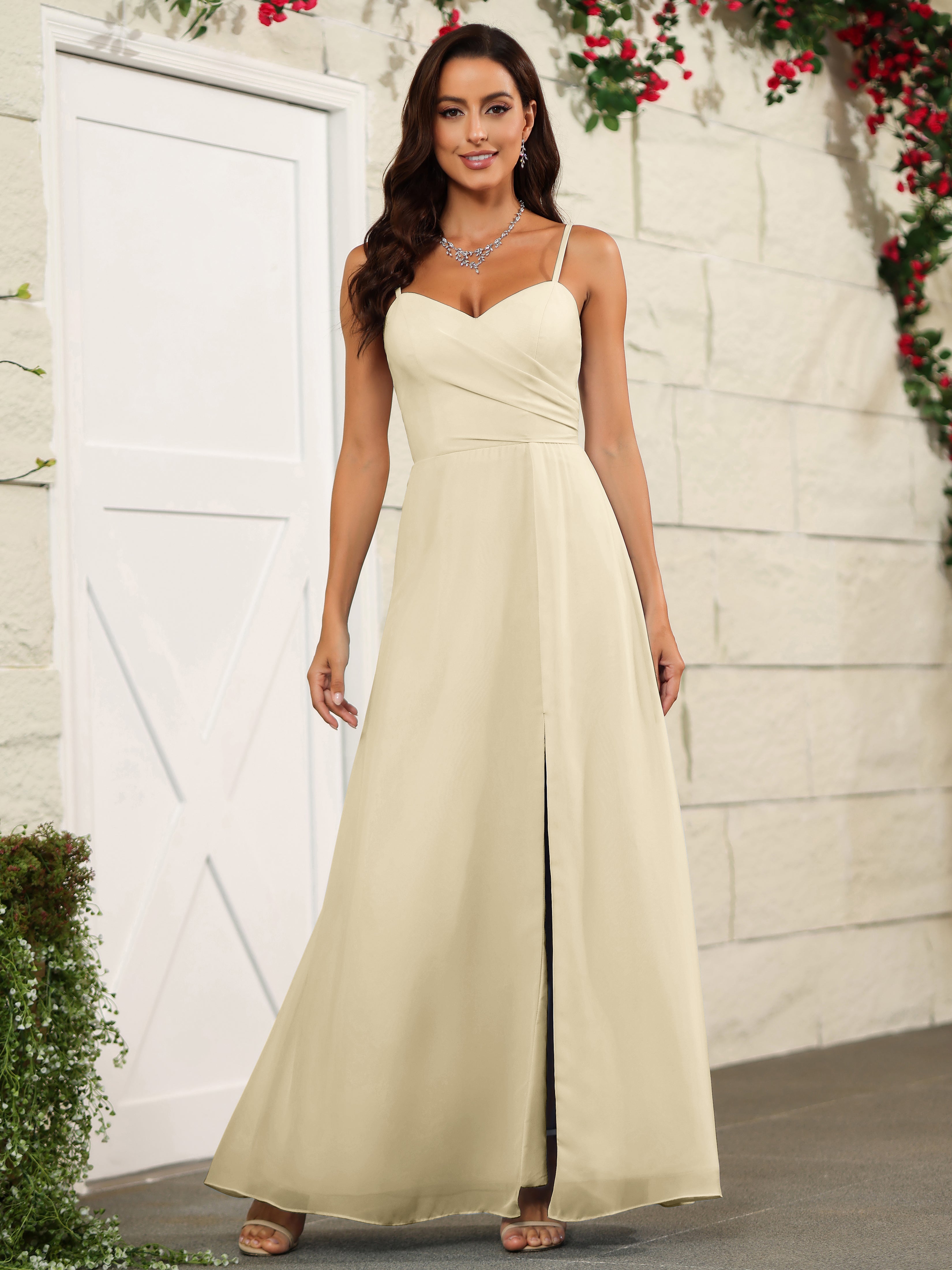 Elevate your bridesmaids' style with our Simple Spaghetti Straps Chiffon Long Bridesmaid Dresses. Crafted with delicate chiffon fabric and featuring a classic spaghetti straps design, these dresses offer a timeless and elegant look. Perfect for any wedding, these dresses will make your bridesmaids stand out while providing them with lightweight and comfortable attire.