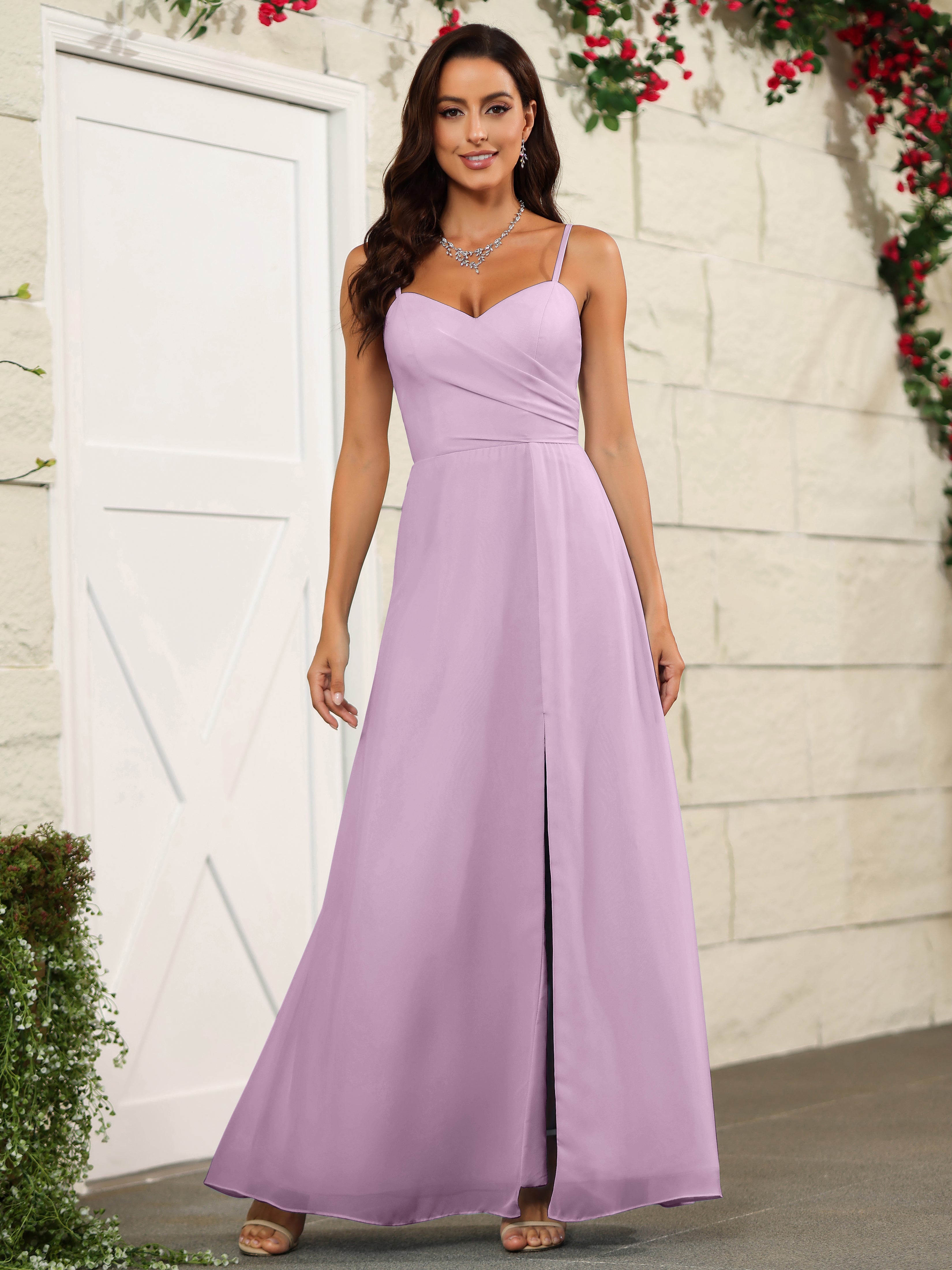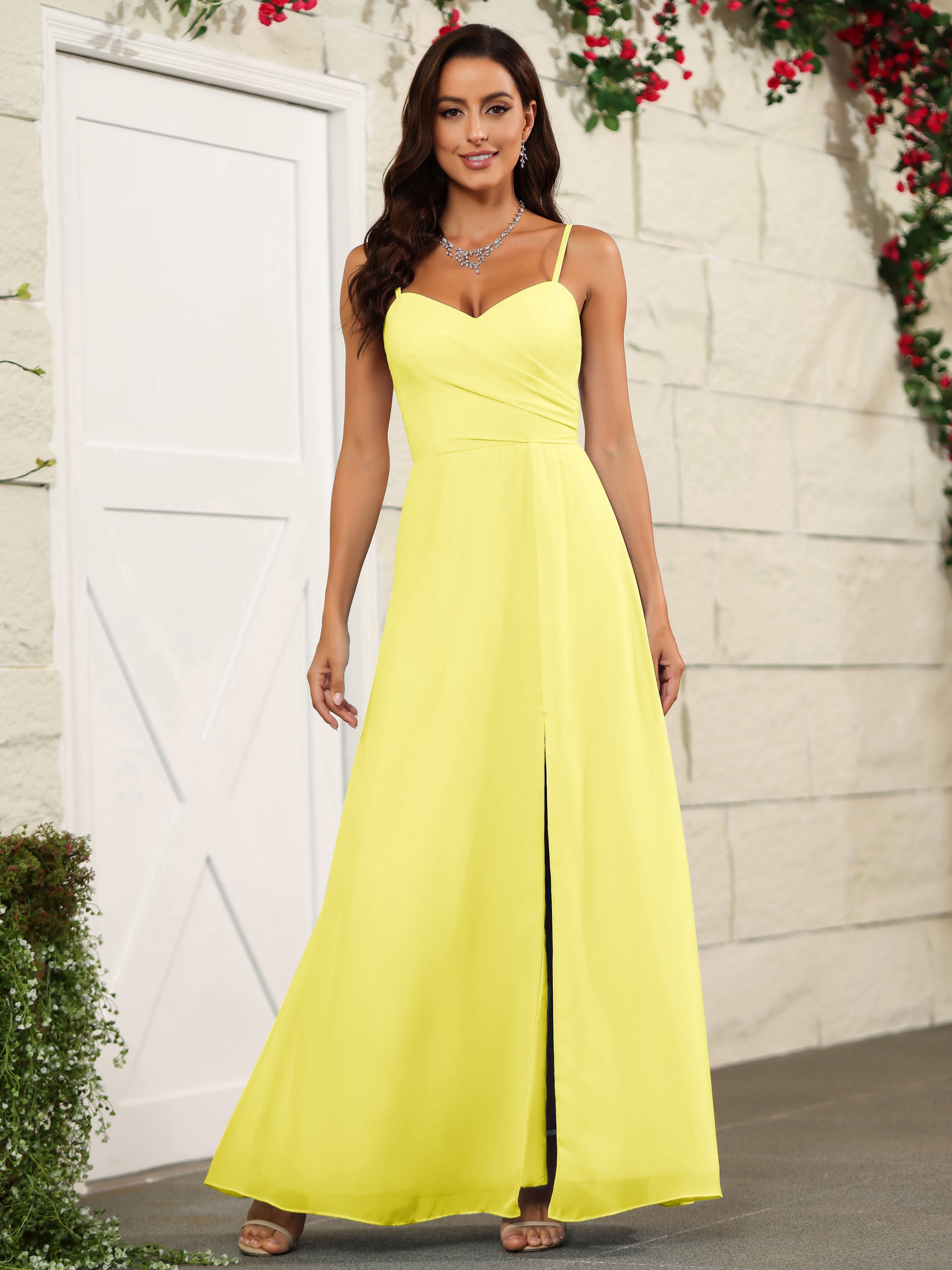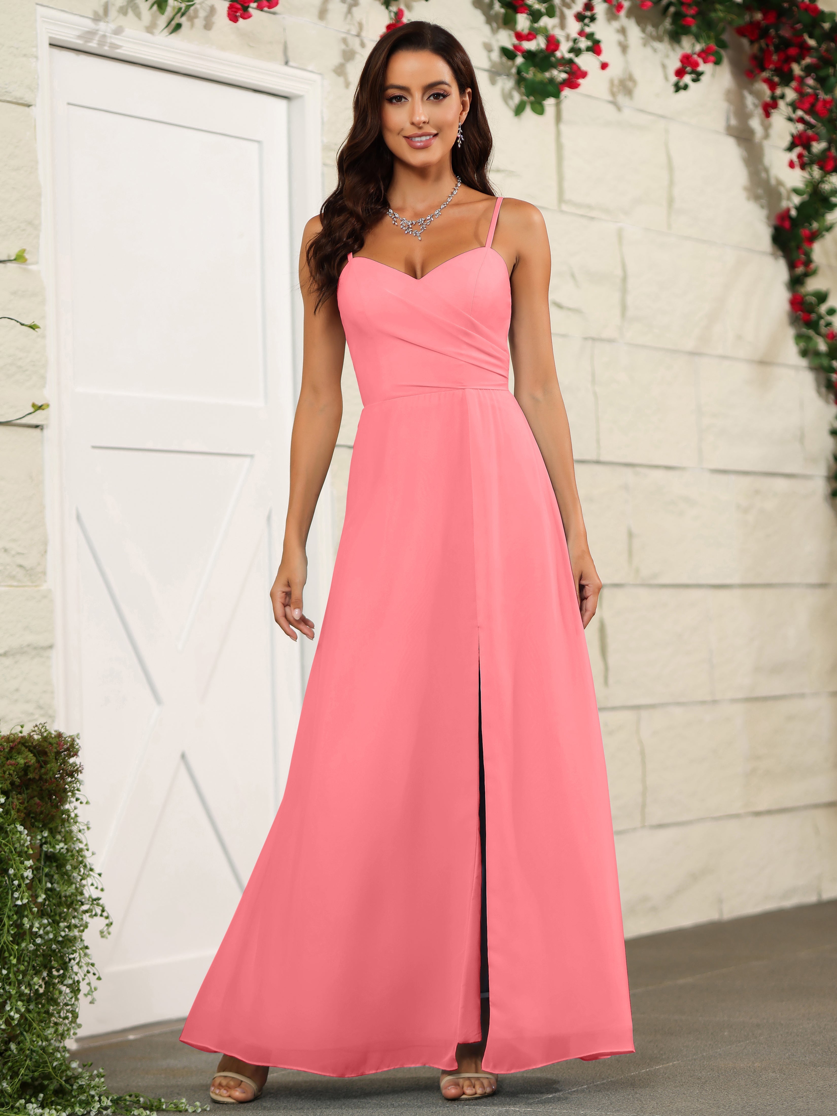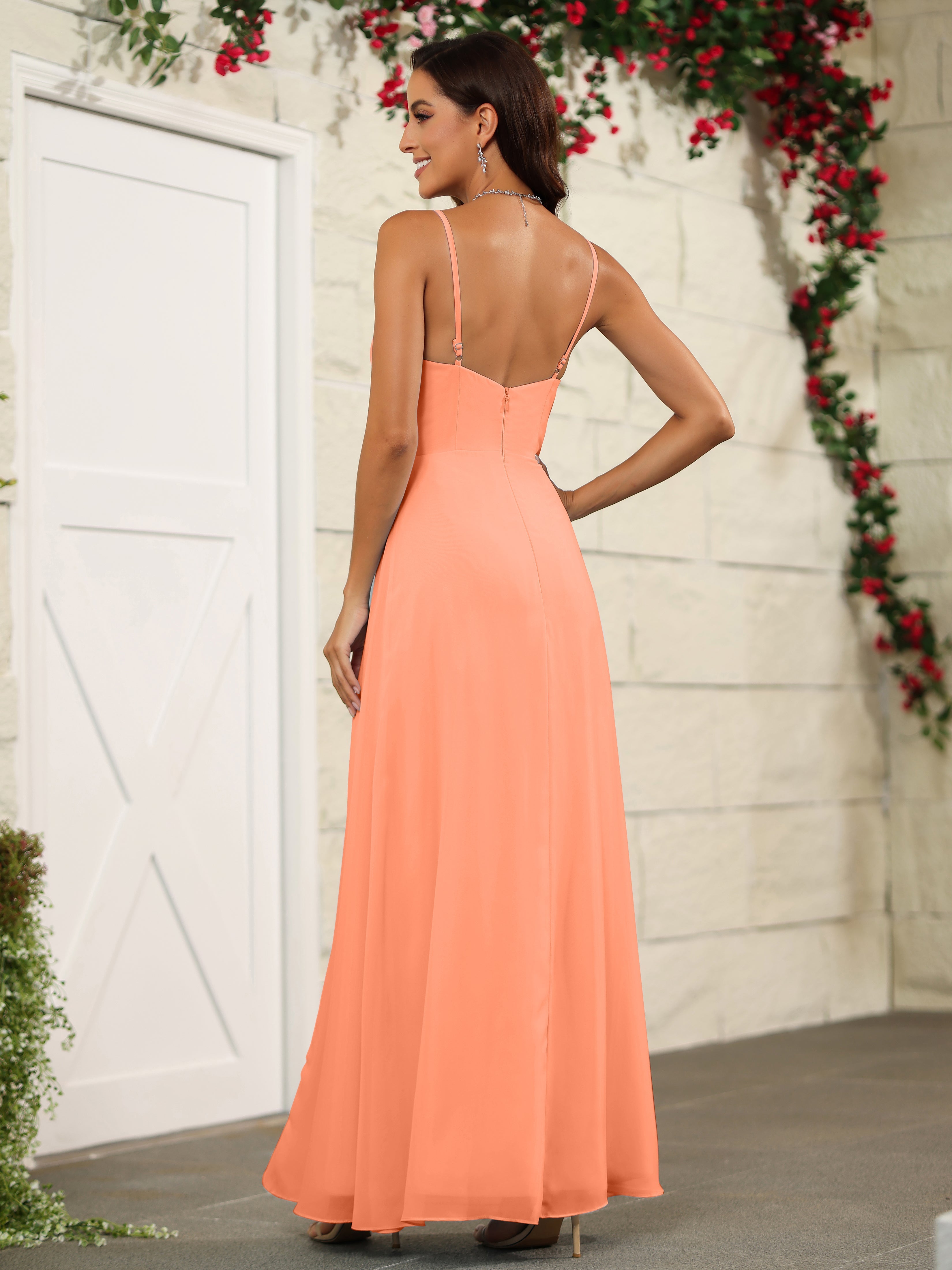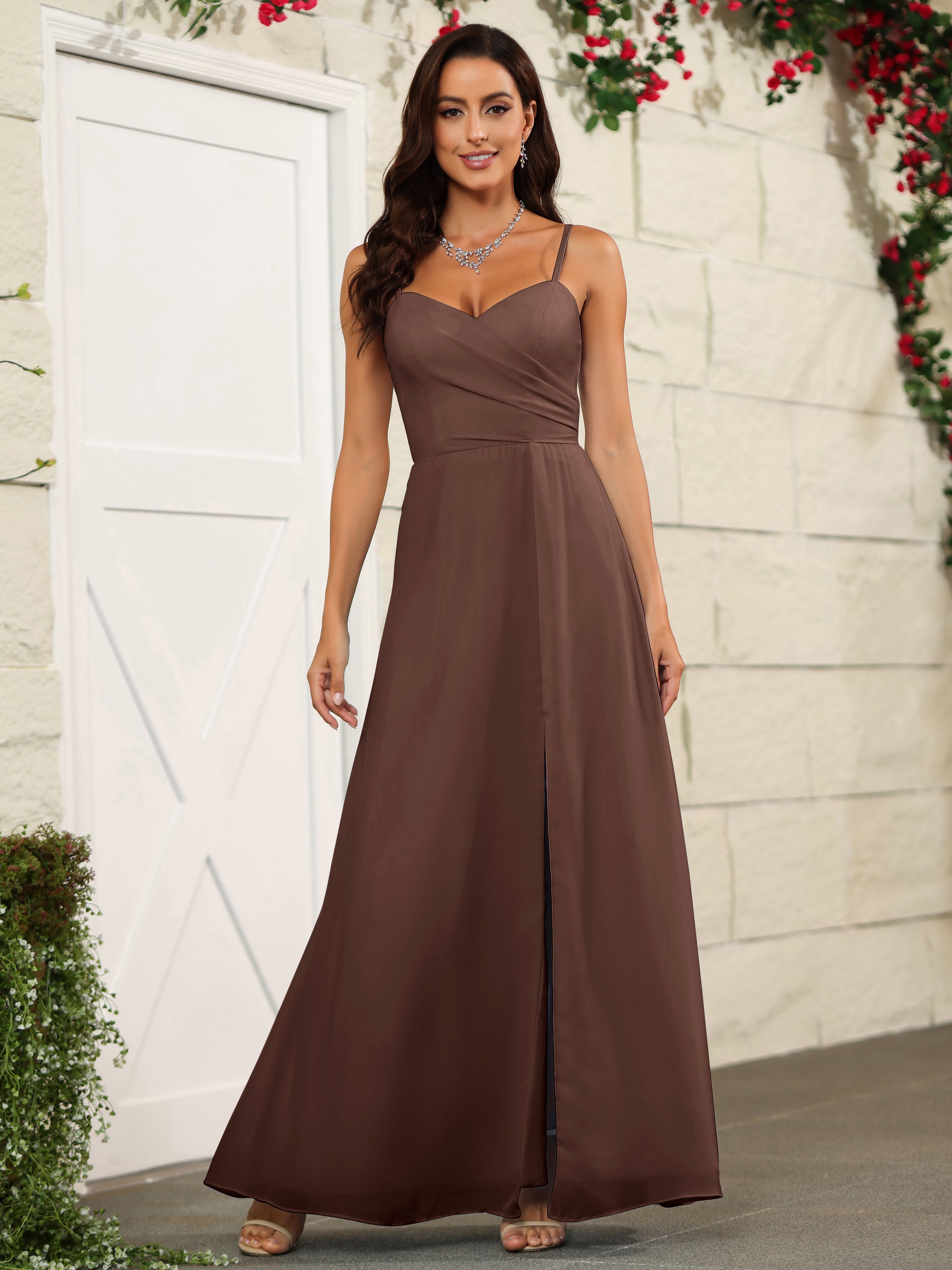 Elevate your bridesmaids' style with our Simple Spaghetti Straps Chiffon Long Bridesmaid Dresses. Crafted with delicate chiffon fabric and featuring a classic spaghetti straps design, these dresses offer a timeless and elegant look. Perfect for any wedding, these dresses will make your bridesmaids stand out while providing them with lightweight and comfortable attire.