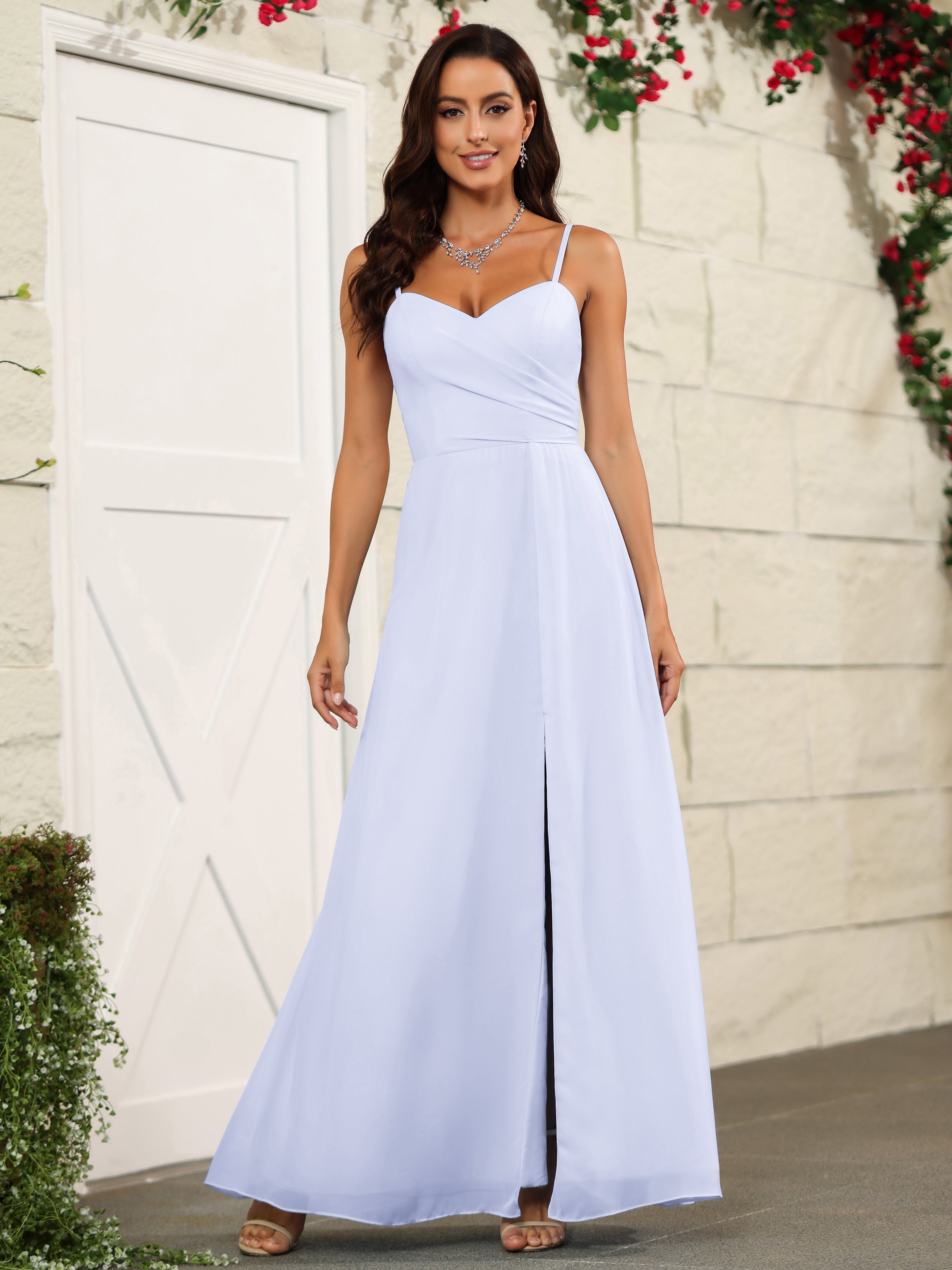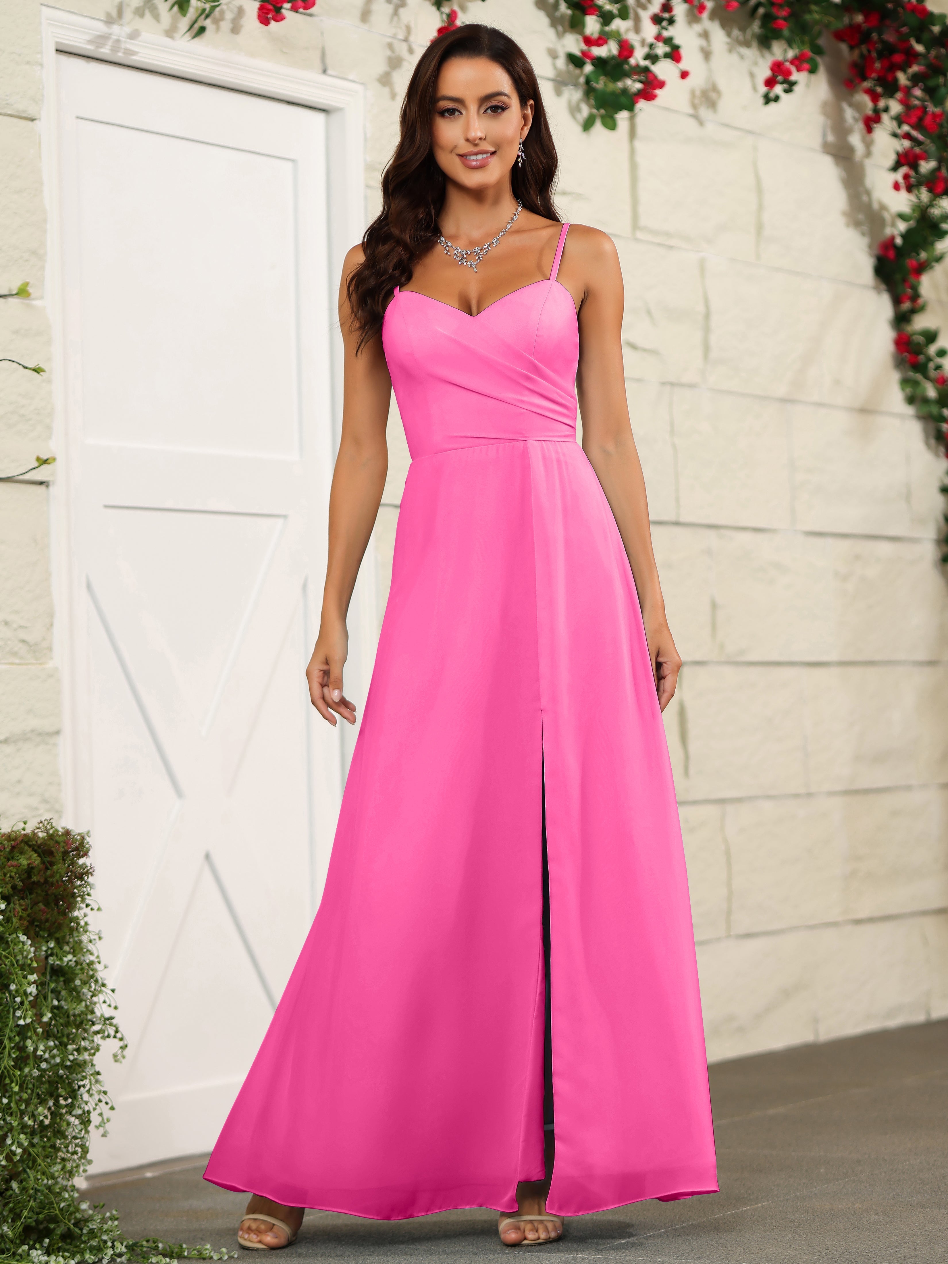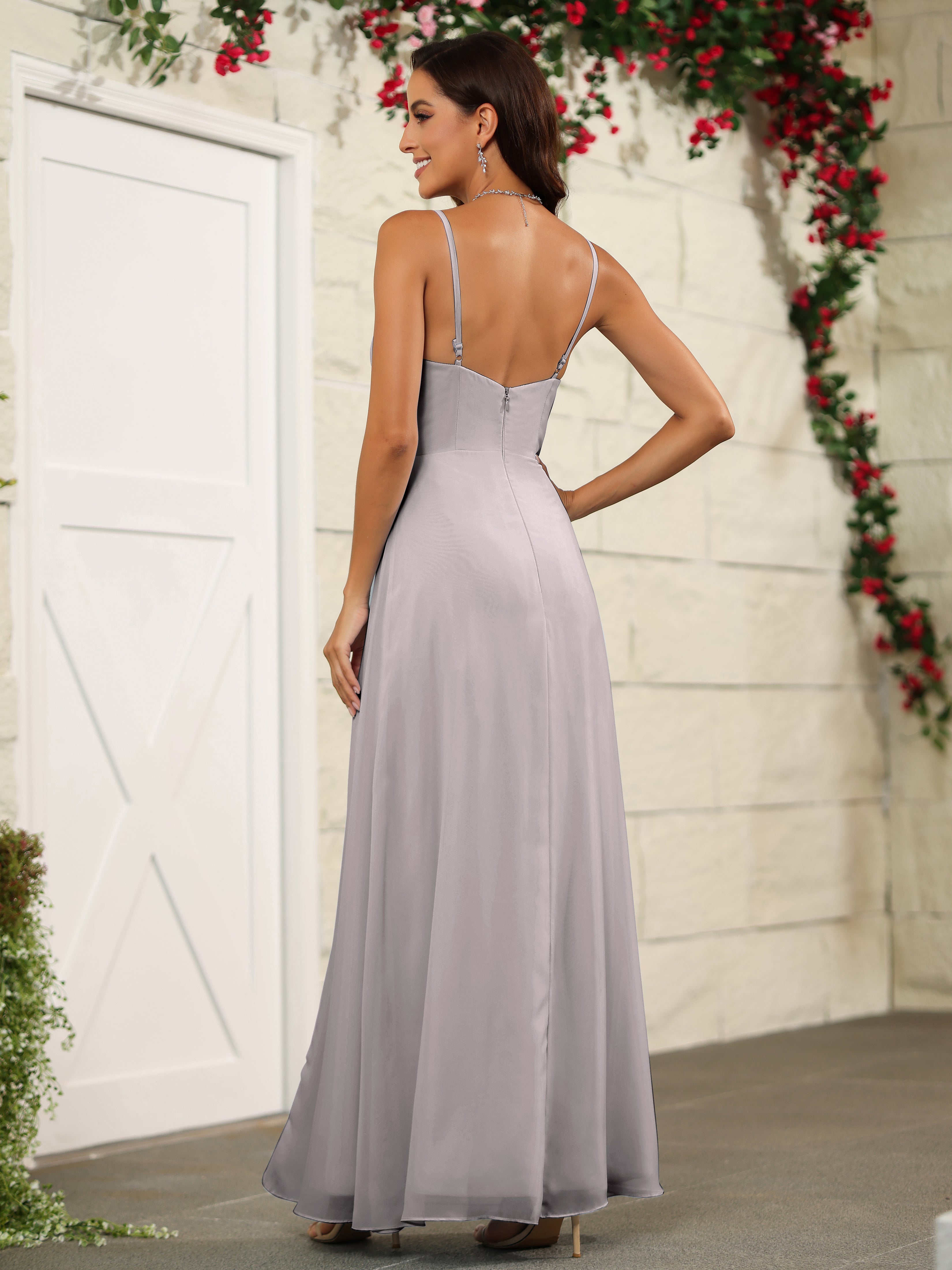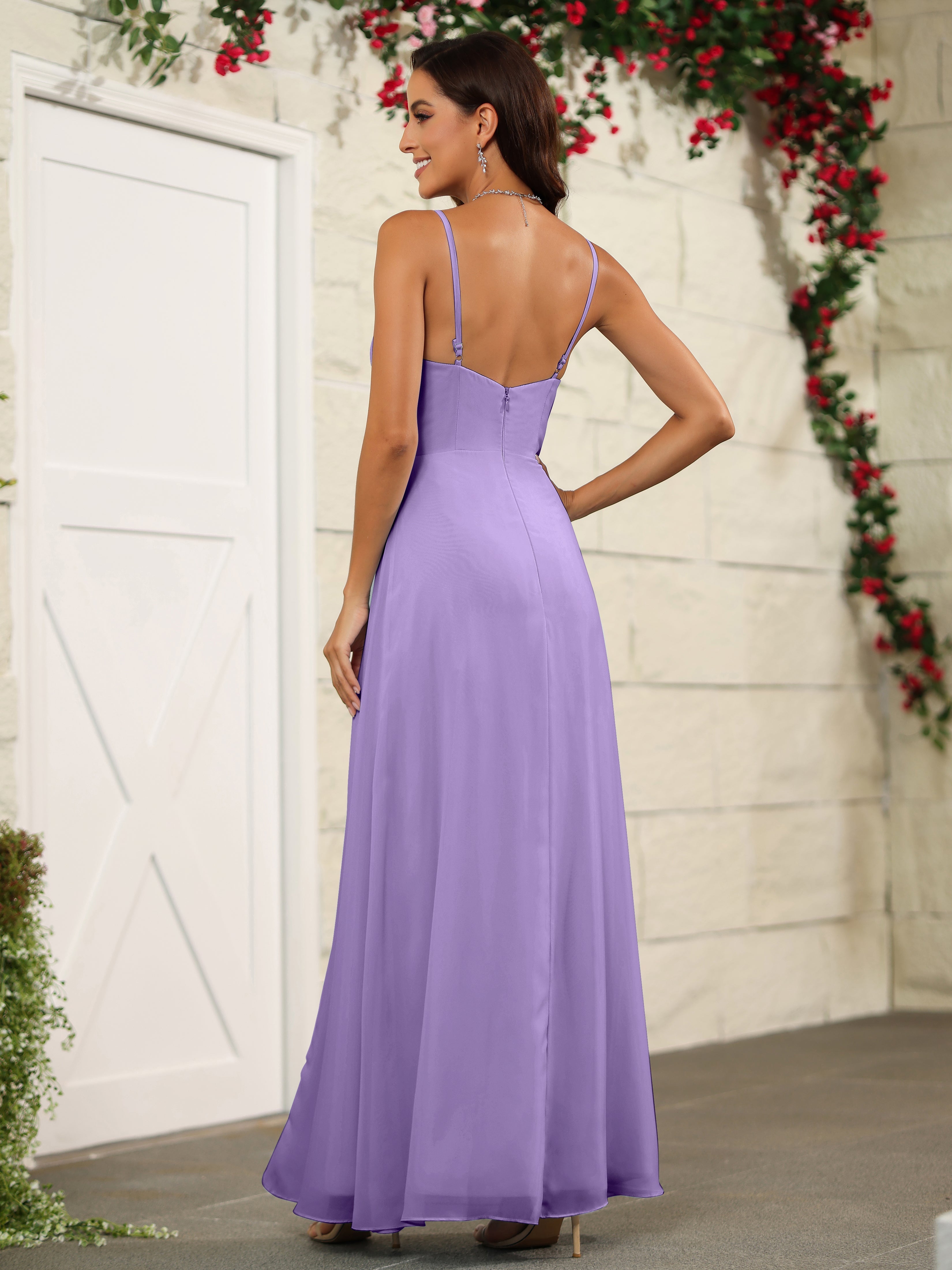 Elevate your bridesmaids' style with our Simple Spaghetti Straps Chiffon Long Bridesmaid Dresses. Crafted with delicate chiffon fabric and featuring a classic spaghetti straps design, these dresses offer a timeless and elegant look. Perfect for any wedding, these dresses will make your bridesmaids stand out while providing them with lightweight and comfortable attire.