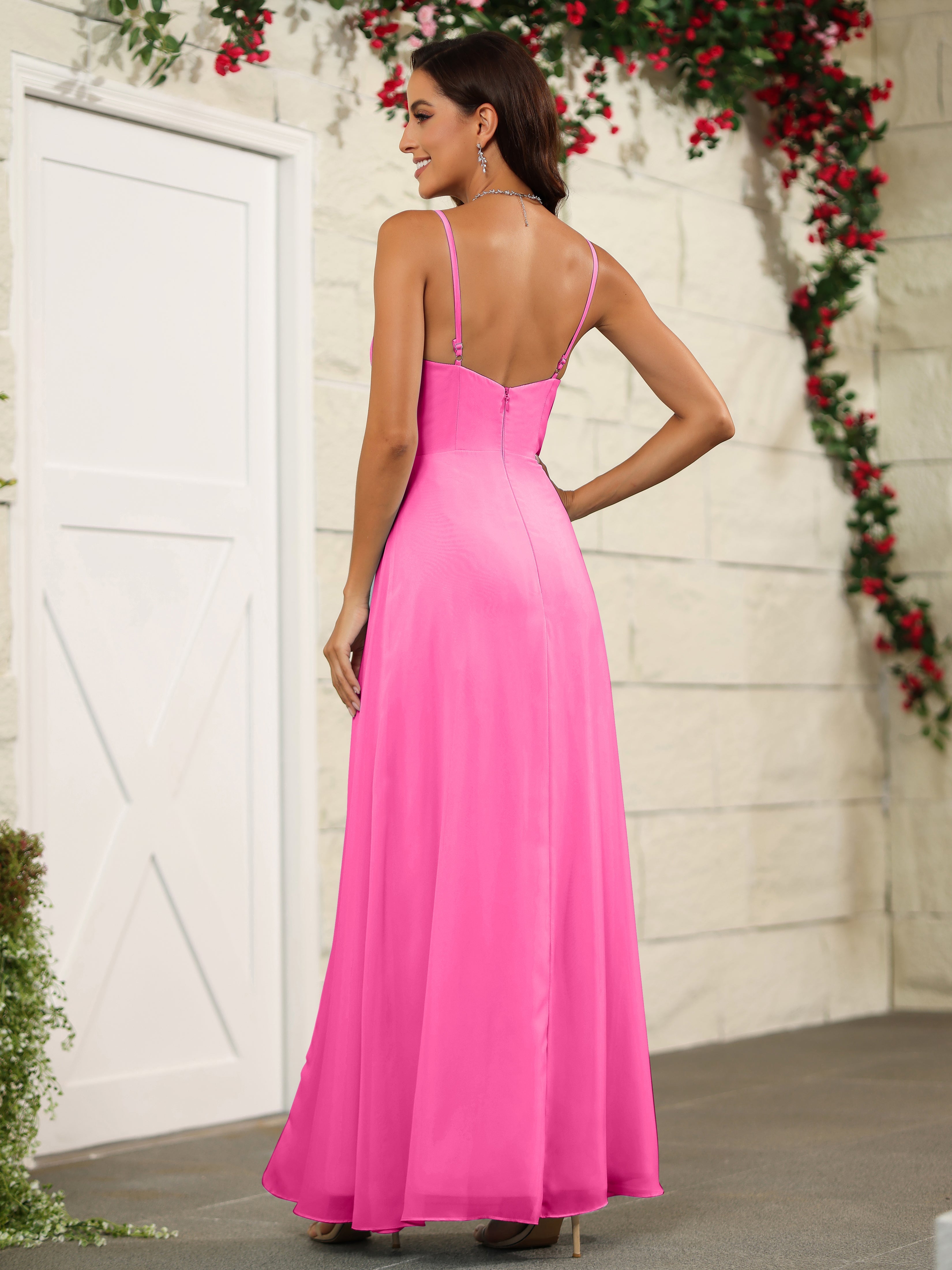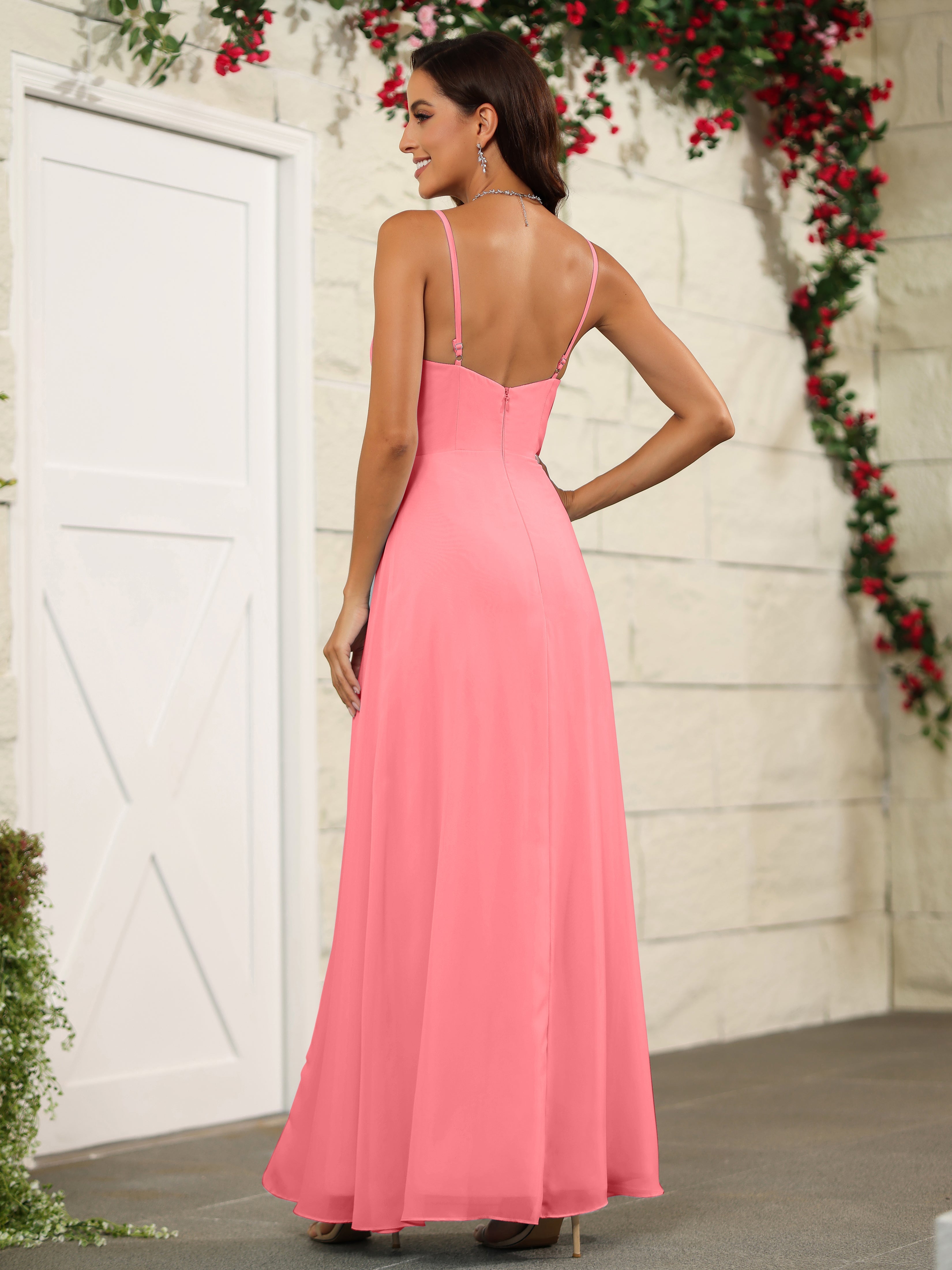 Simple Spaghetti Straps Chiffon Long Bridesmaid Dresses