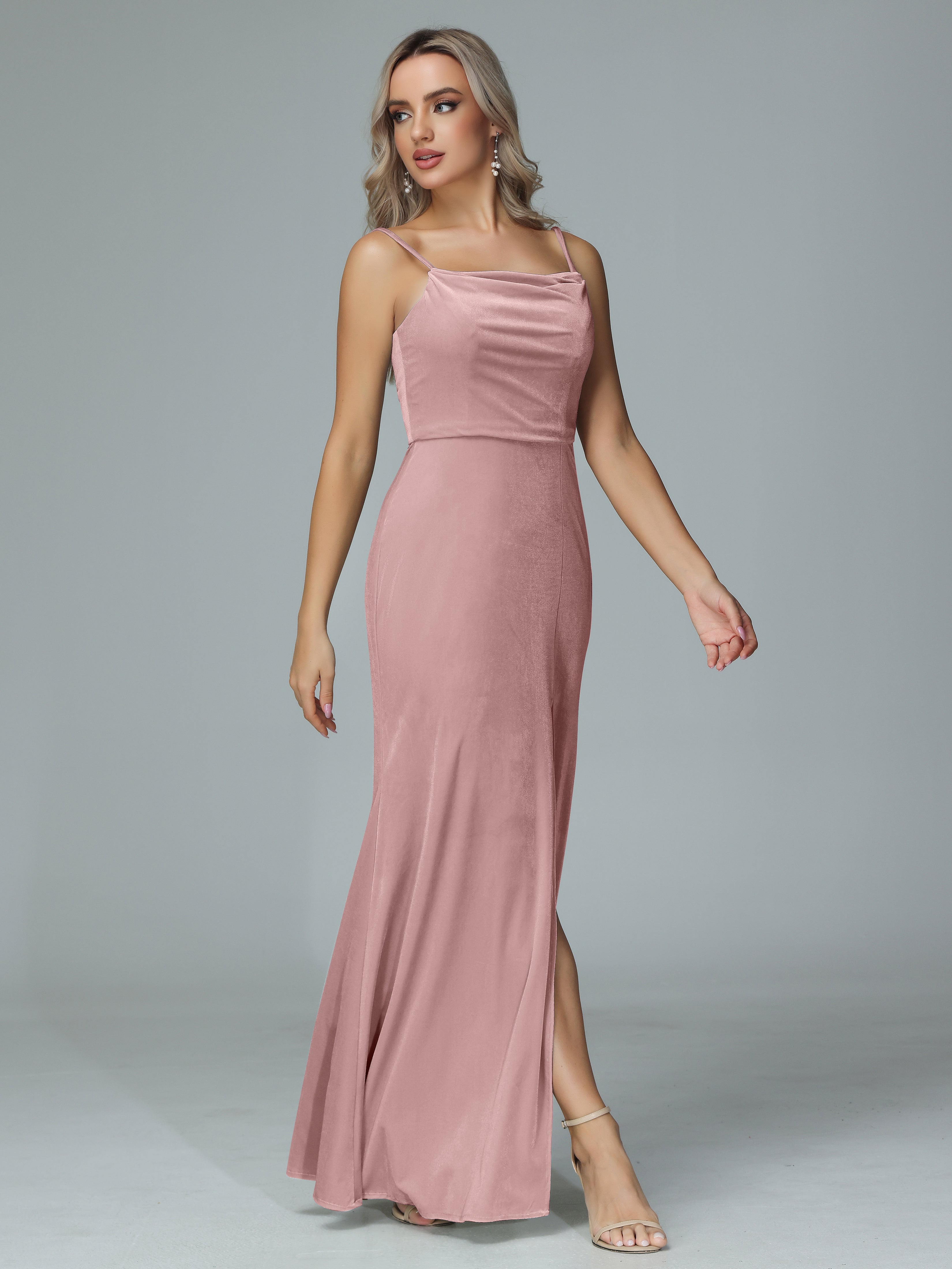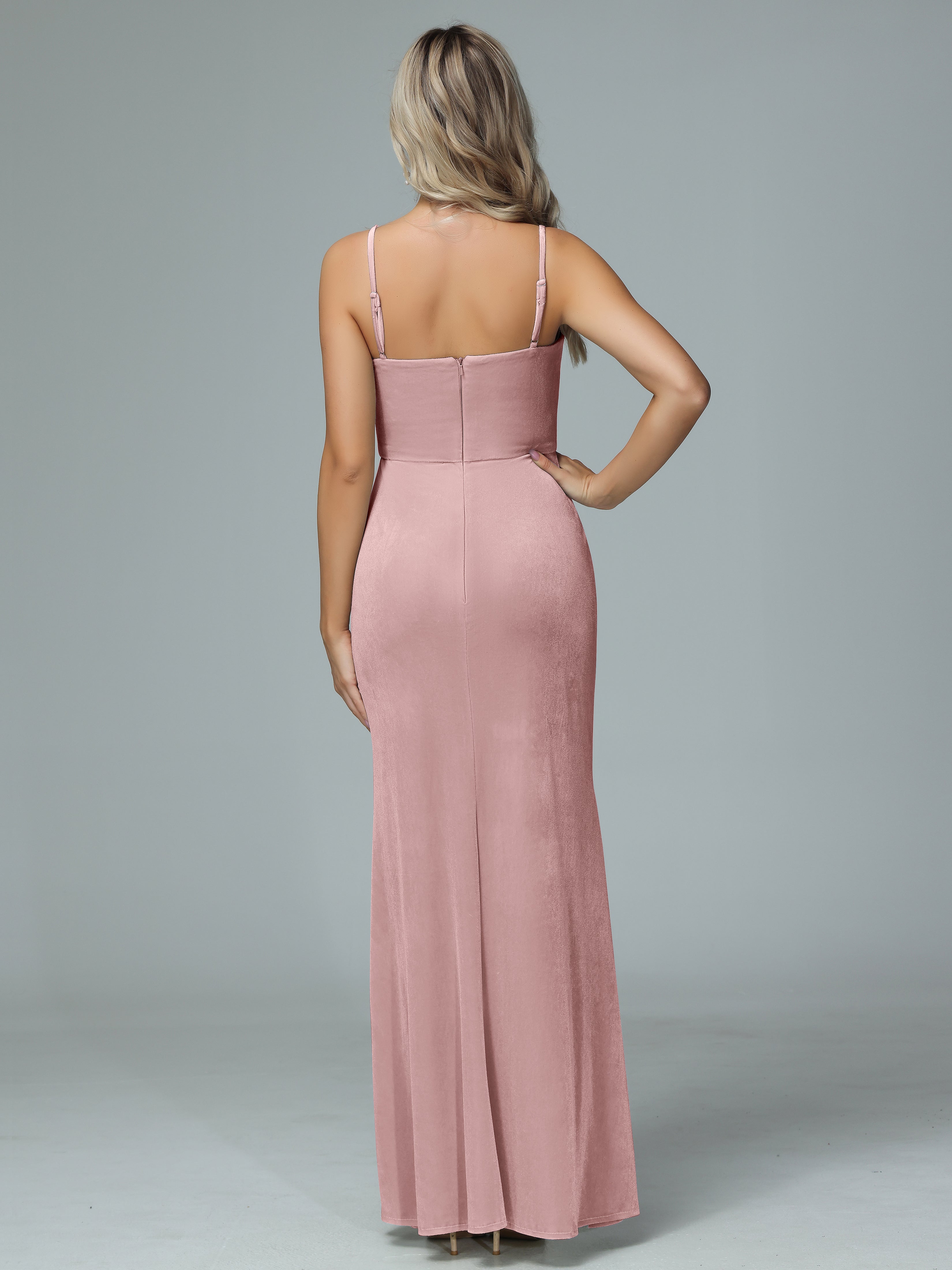 Spaghetti Straps Velvet Bridesmaid Dresses with Slit