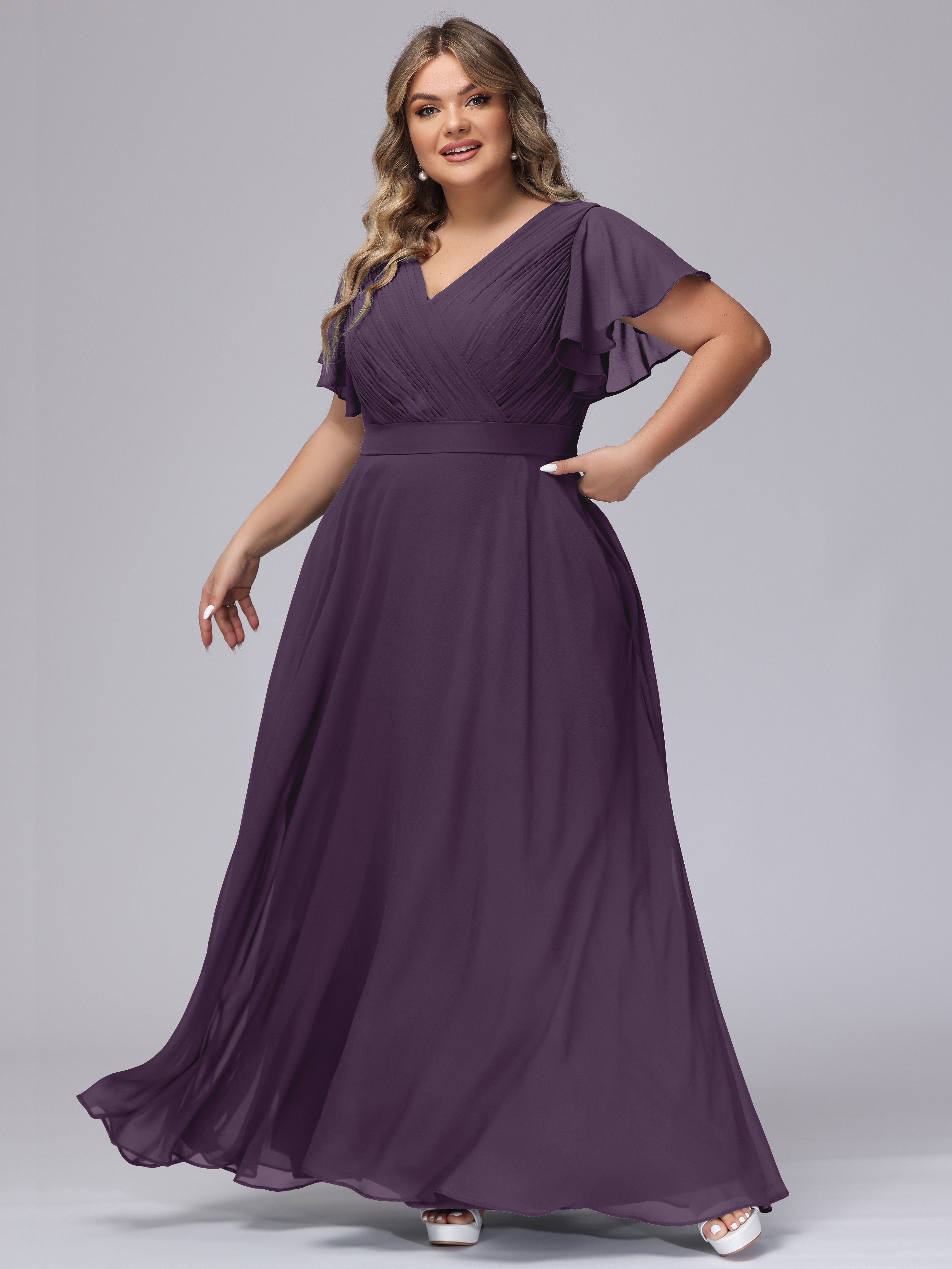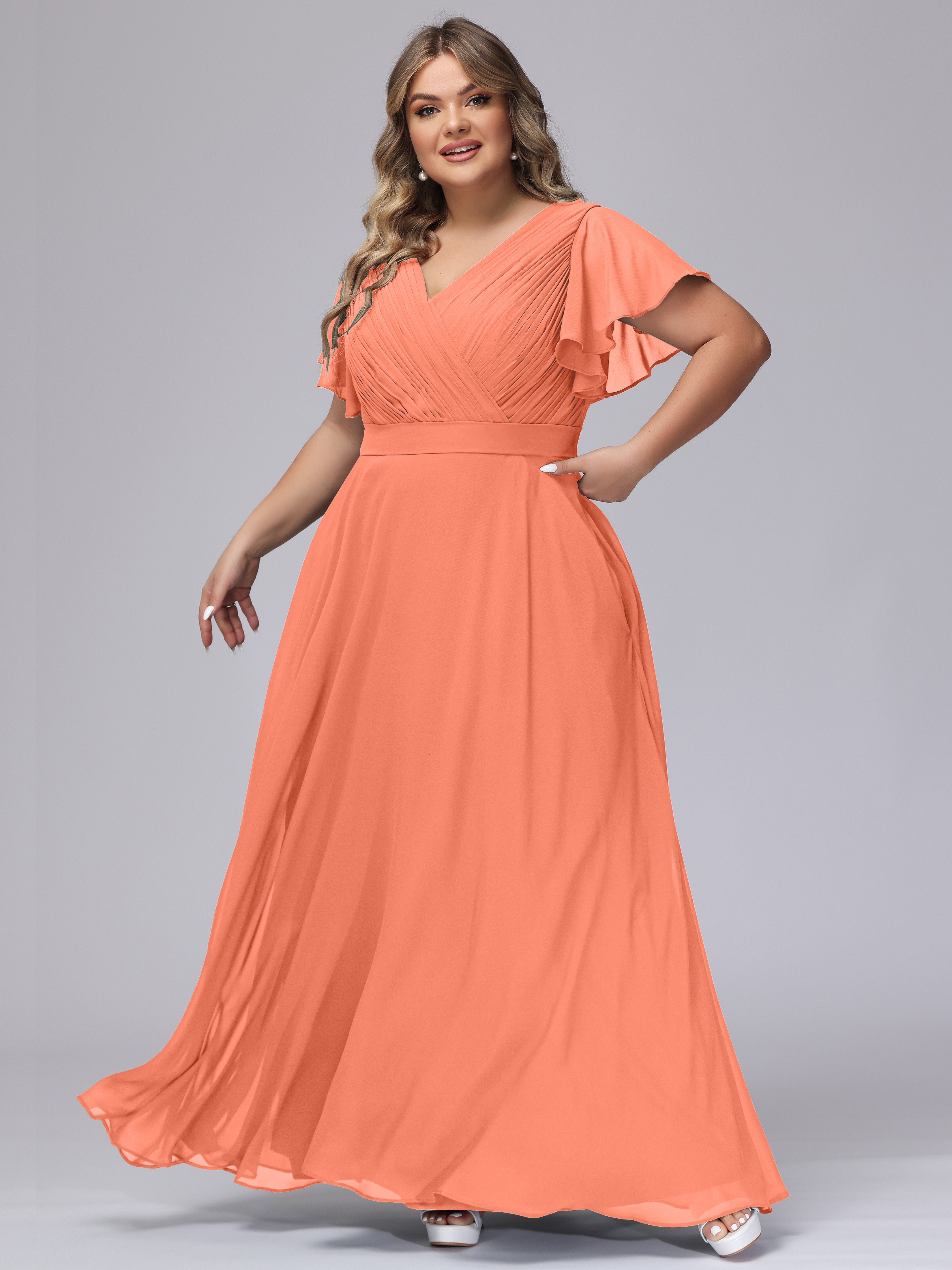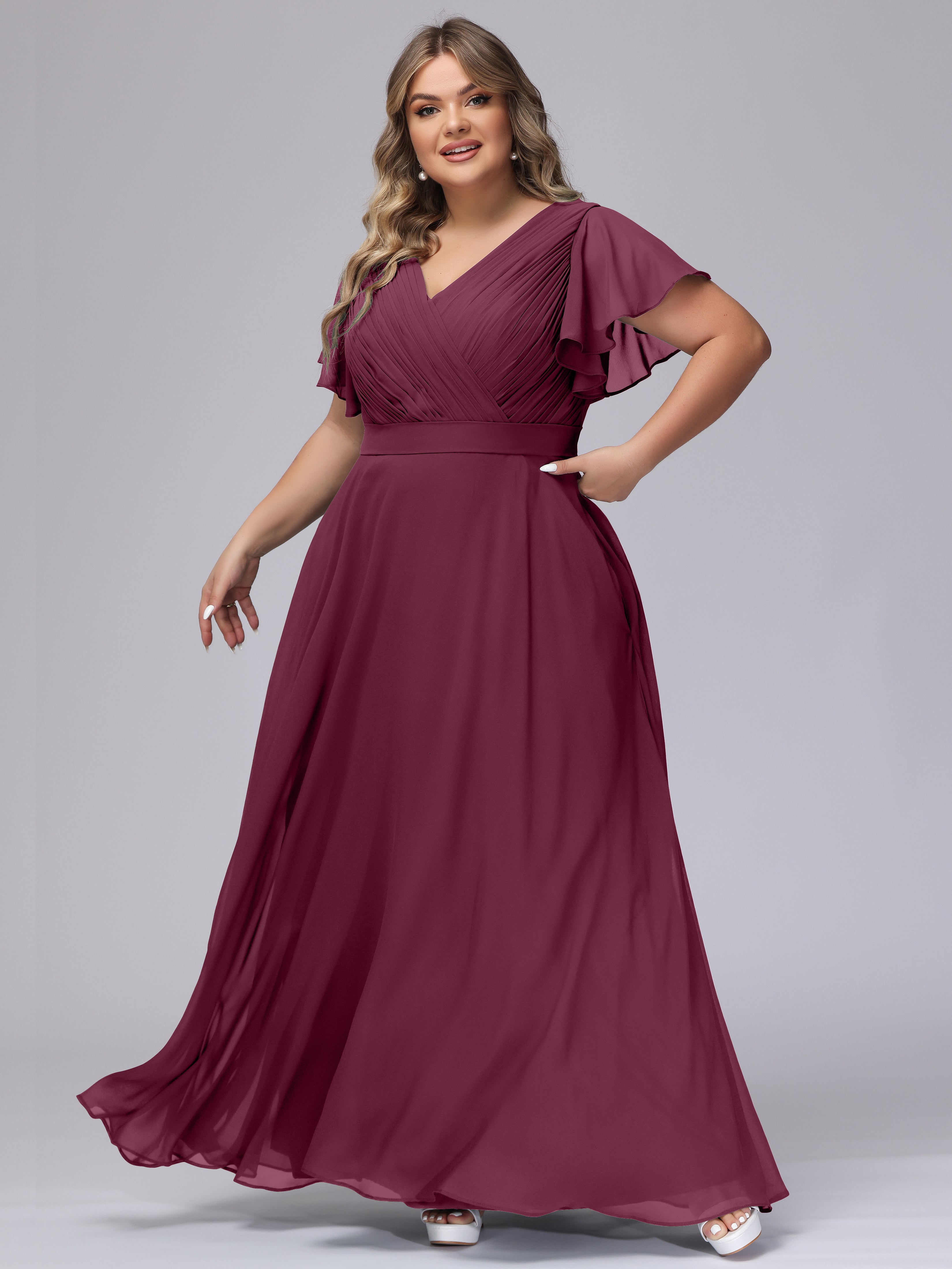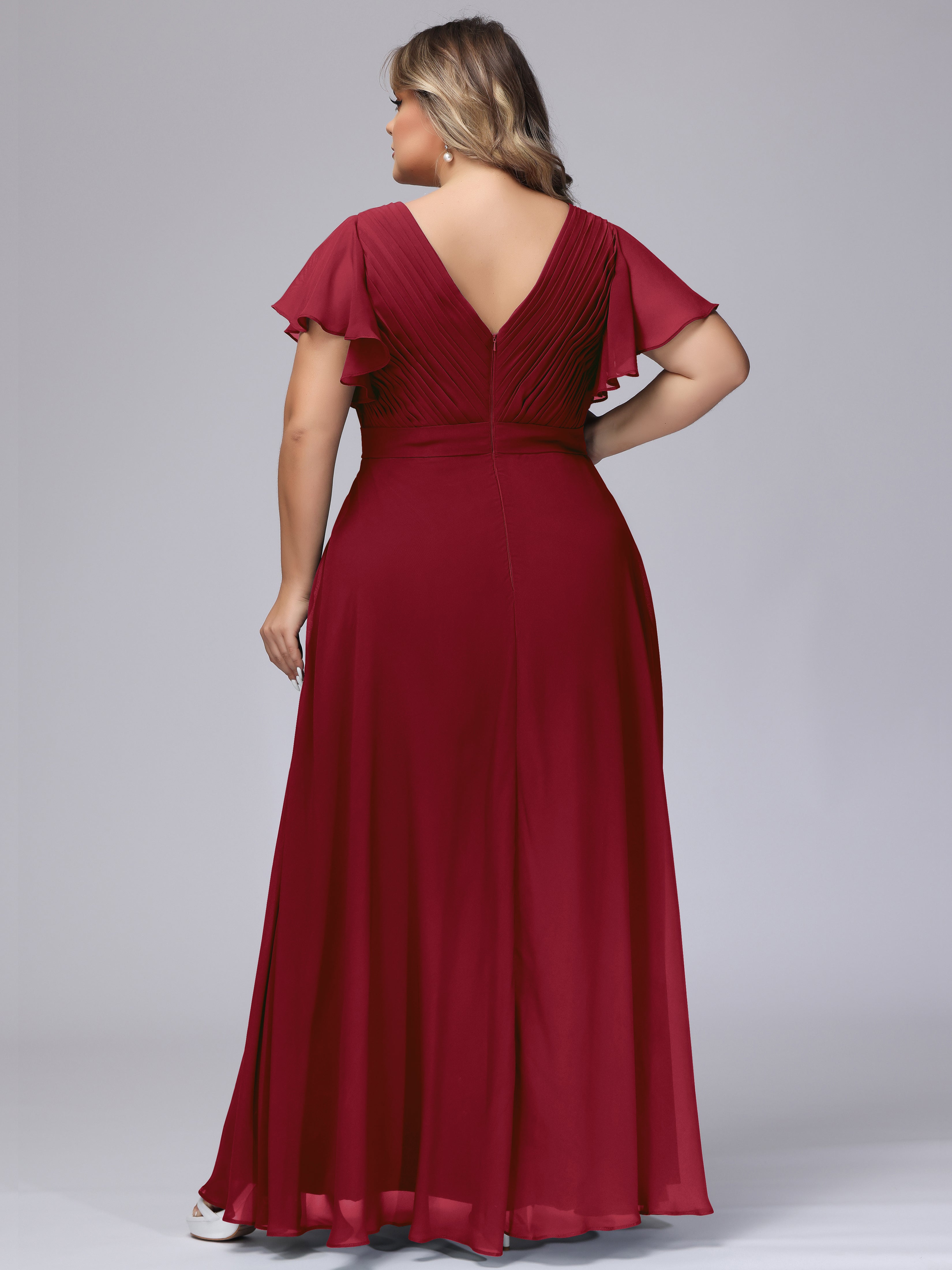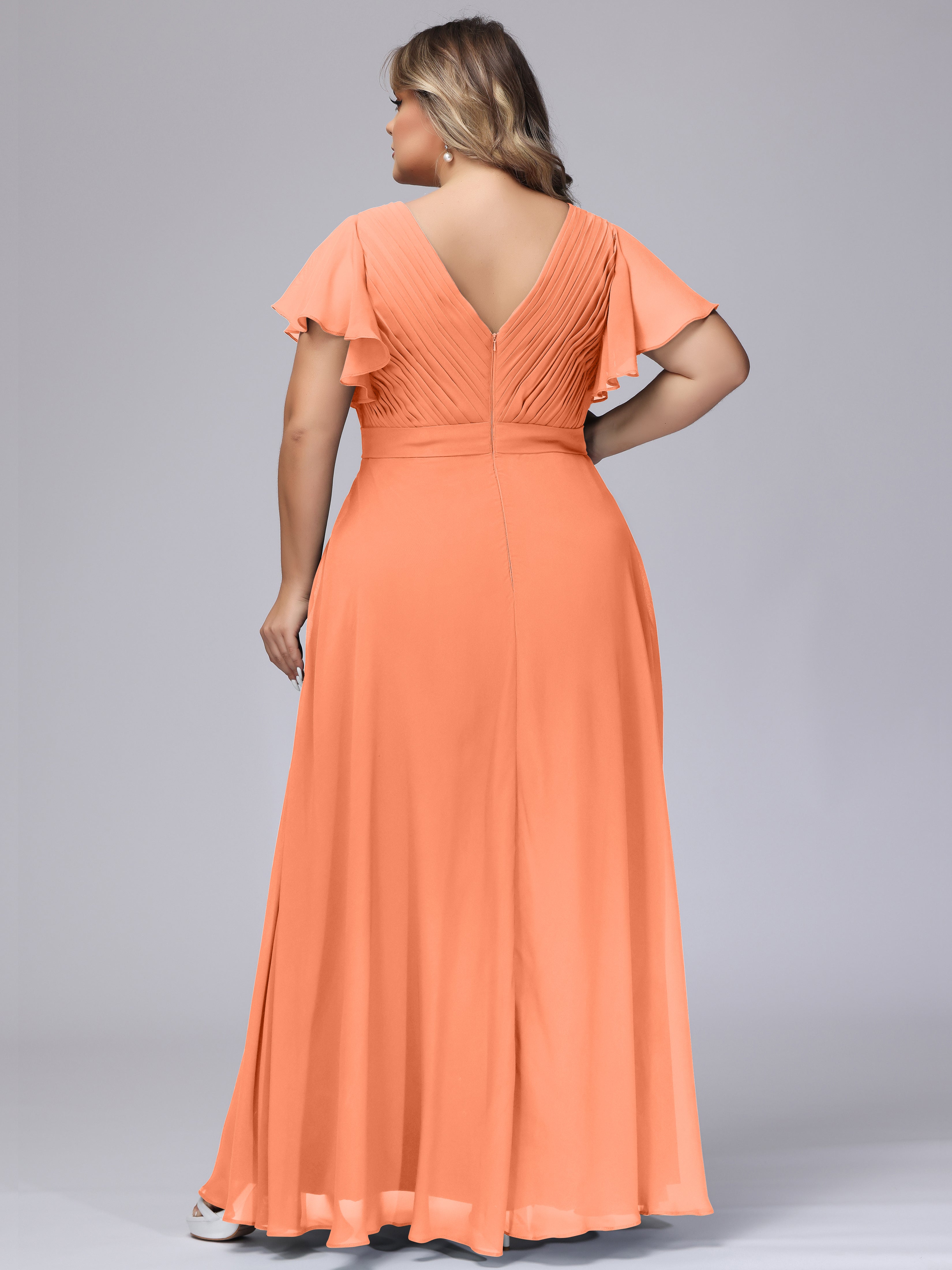 Elegant V-neck Ruffle Sleeves Empire Plus Size Bridesmaid Dress