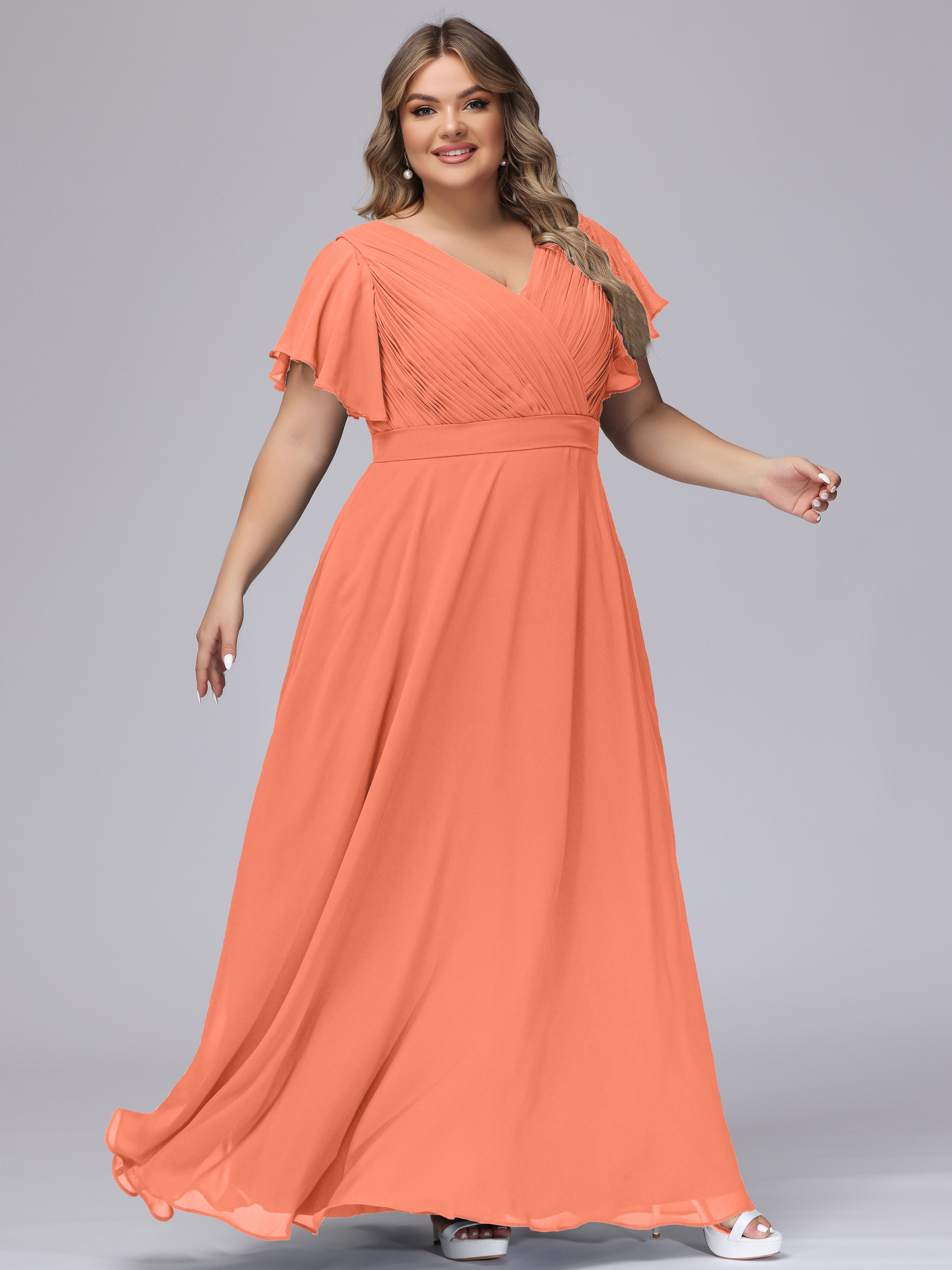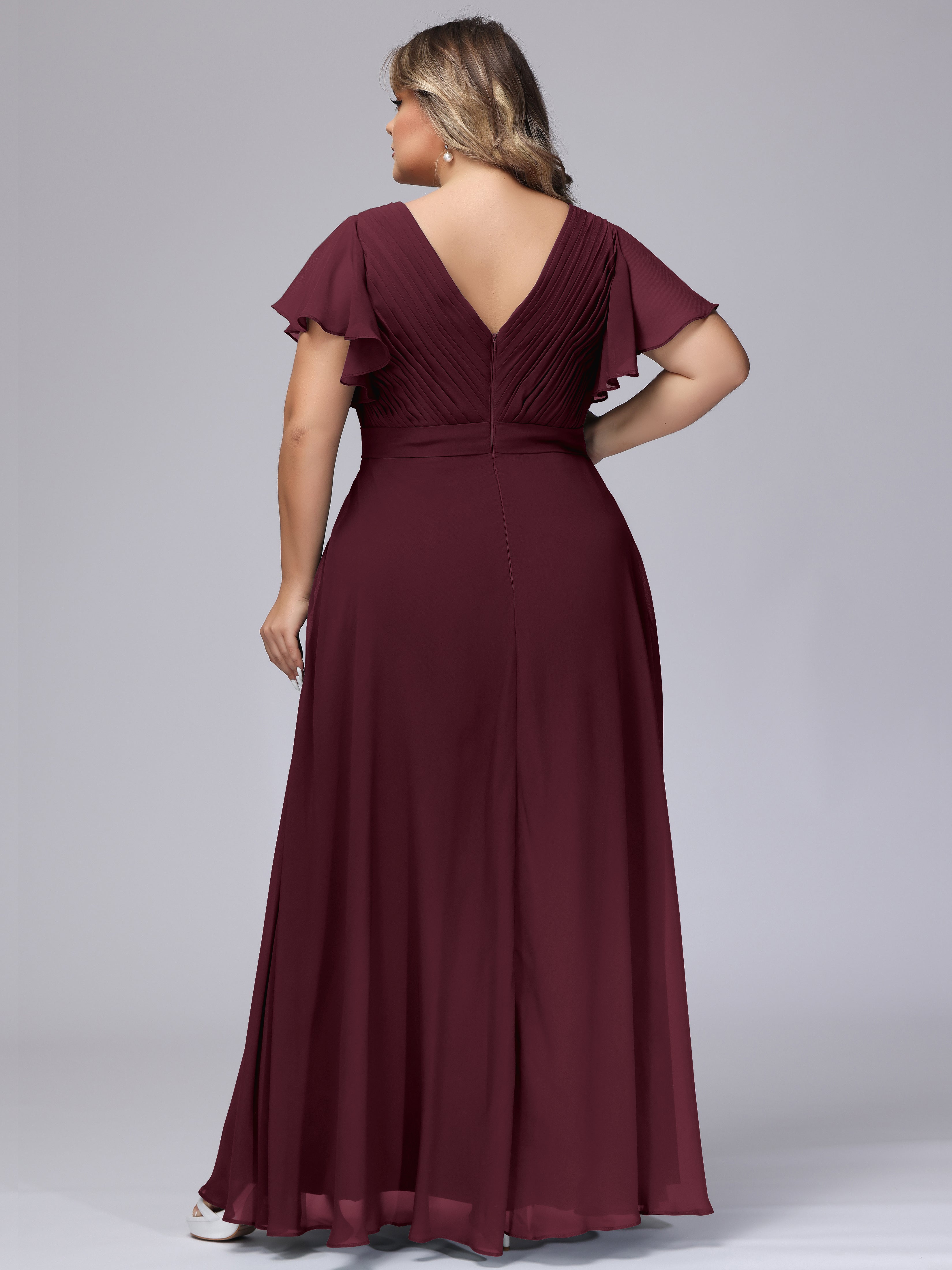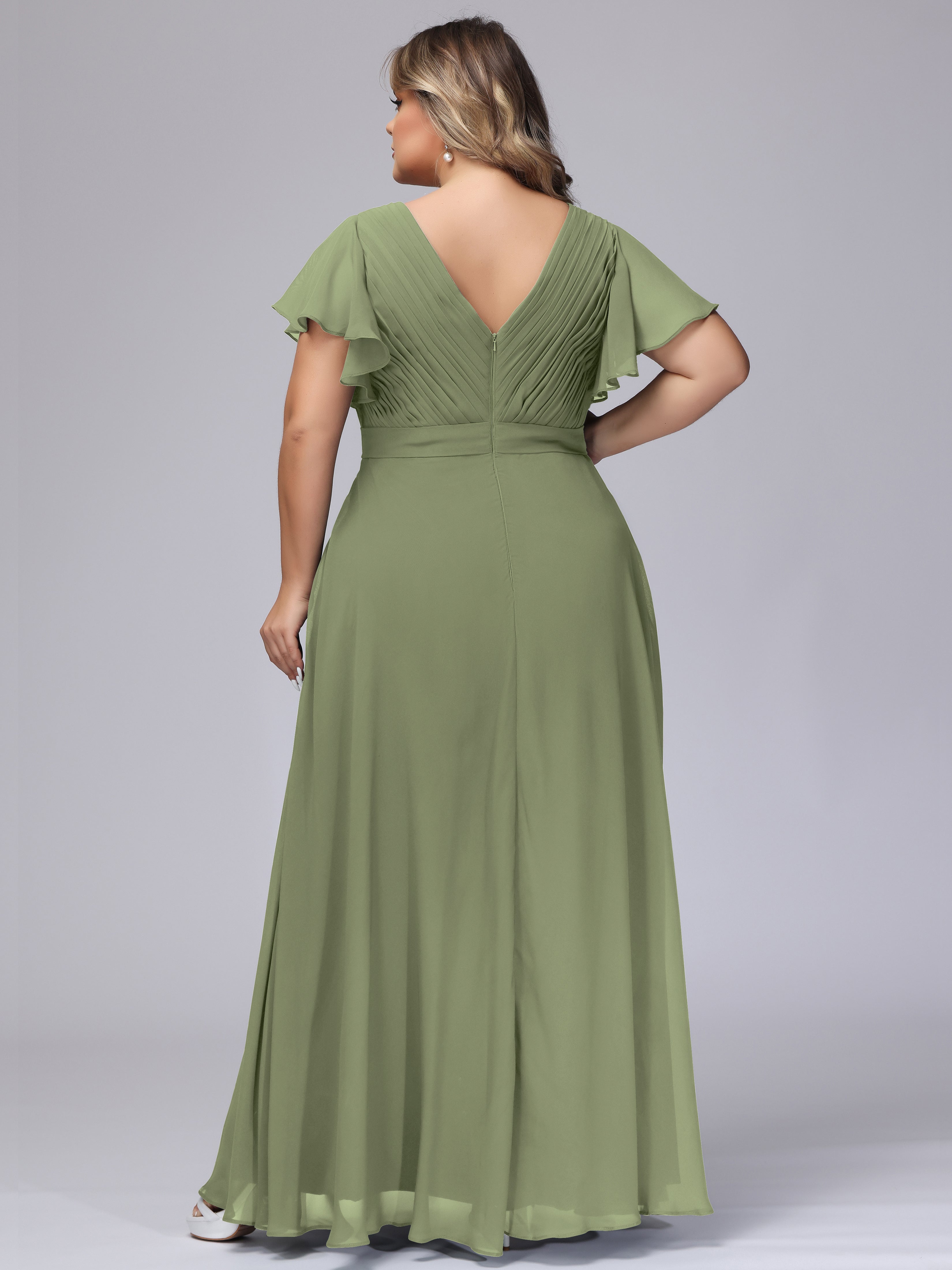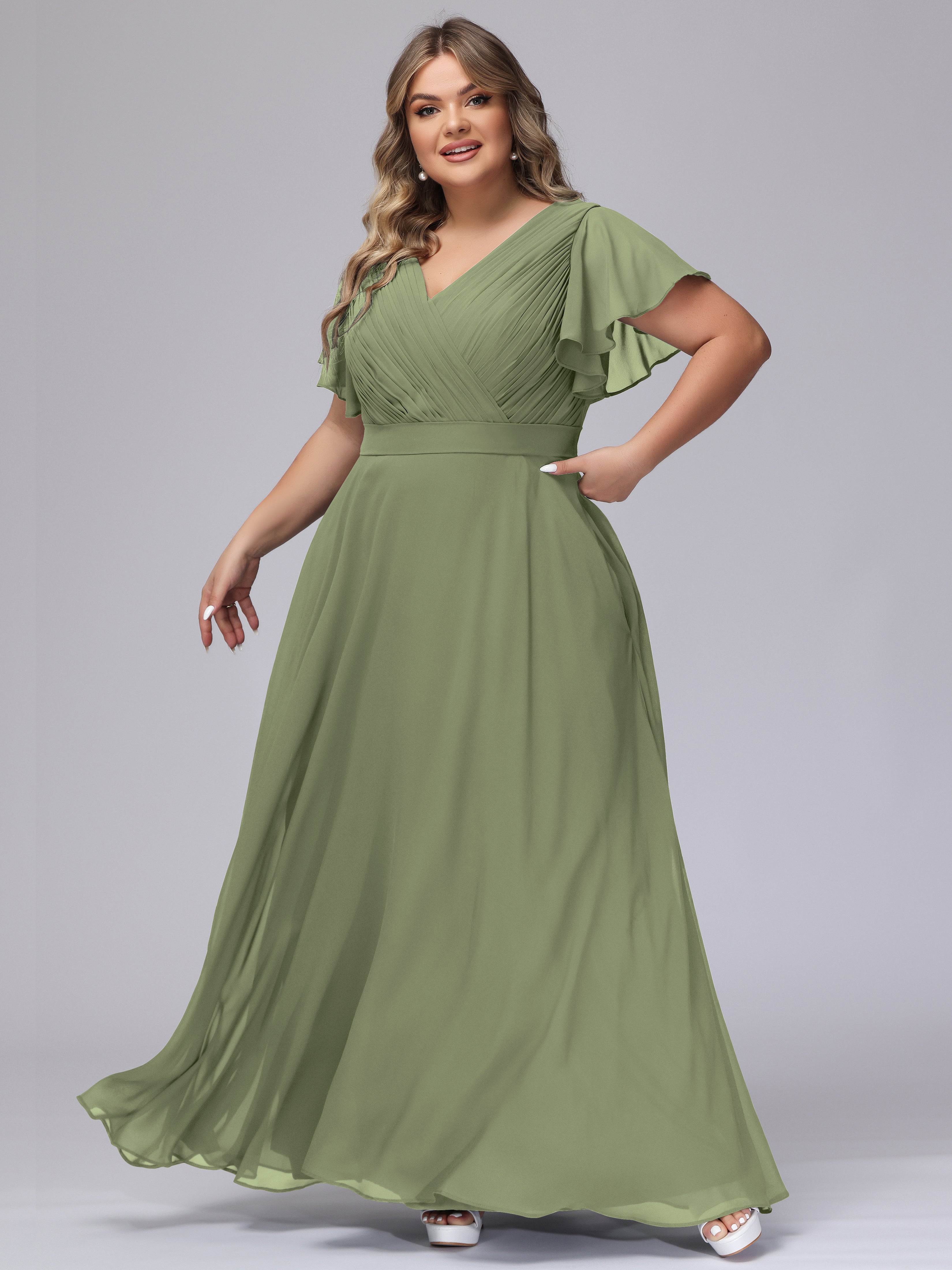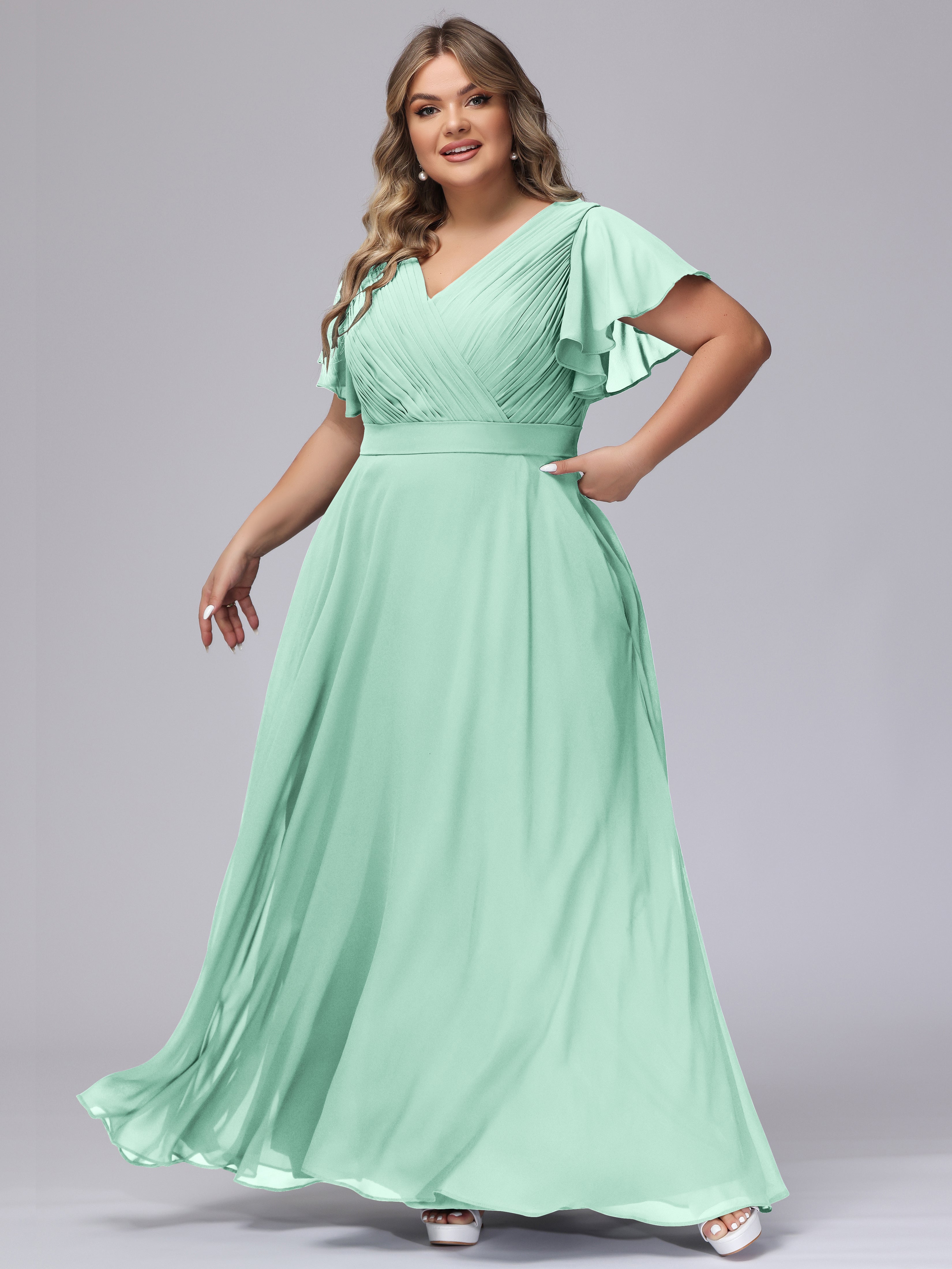 Elegant V-neck Ruffle Sleeves Empire Plus Size Bridesmaid Dress