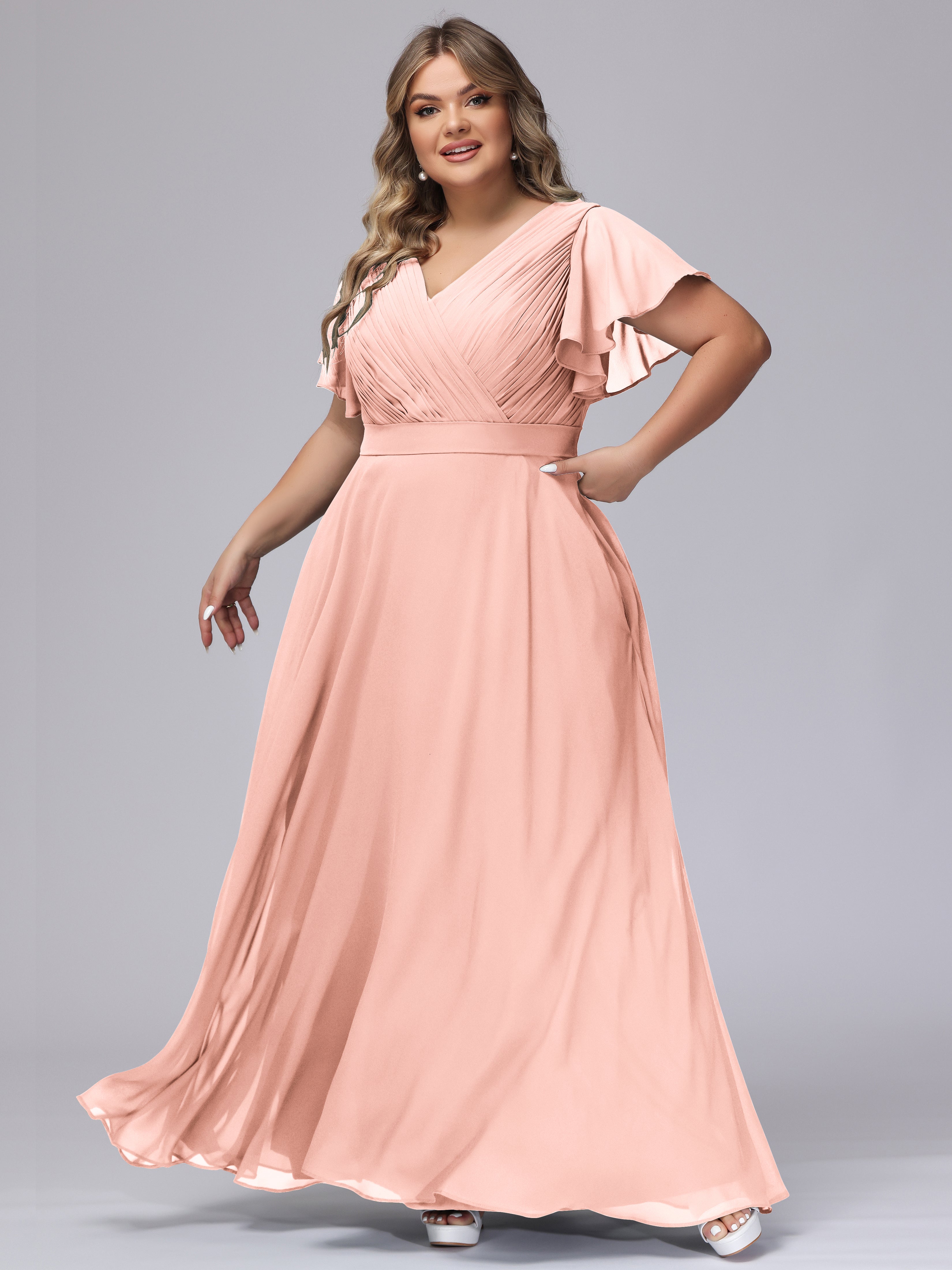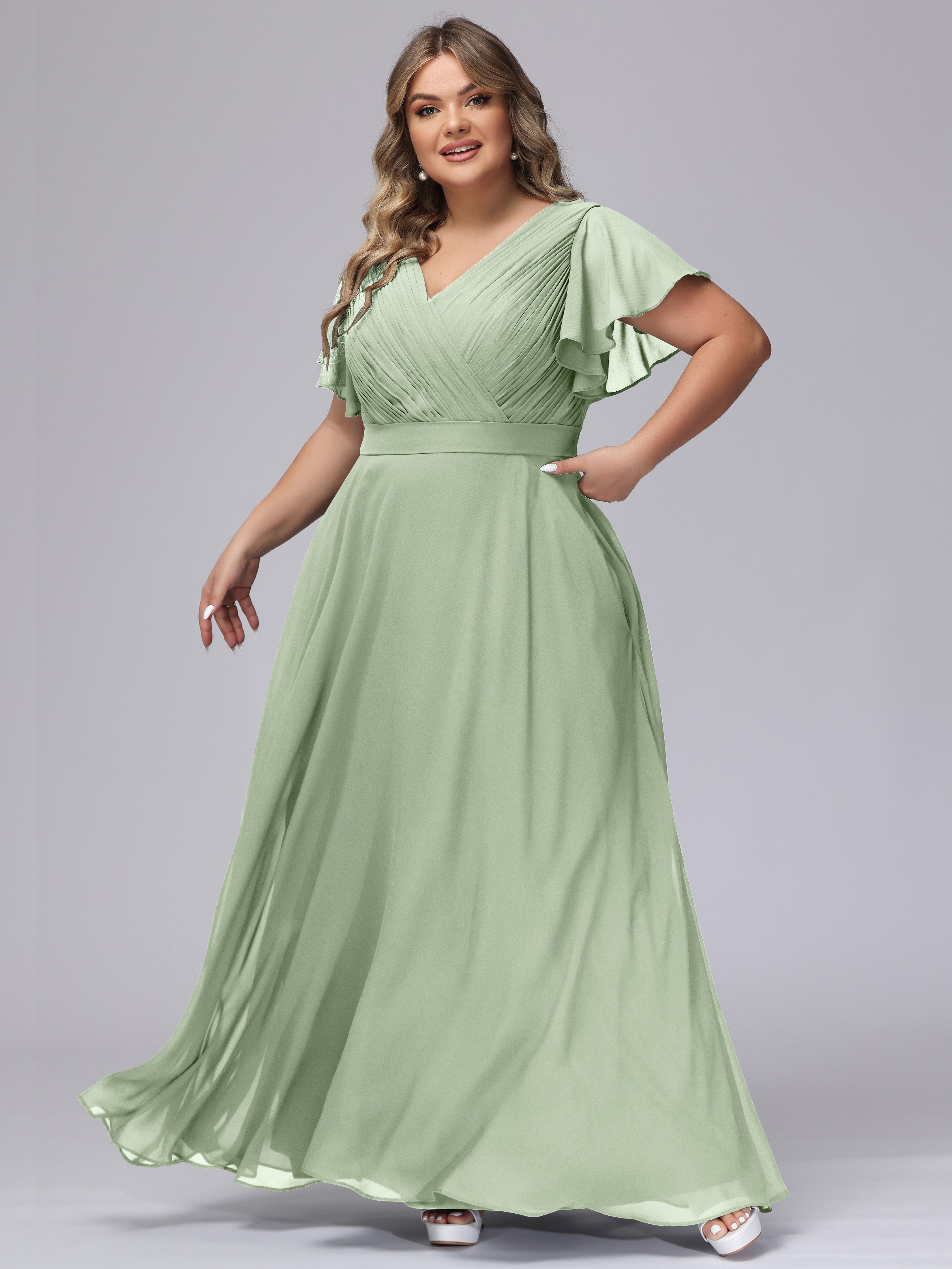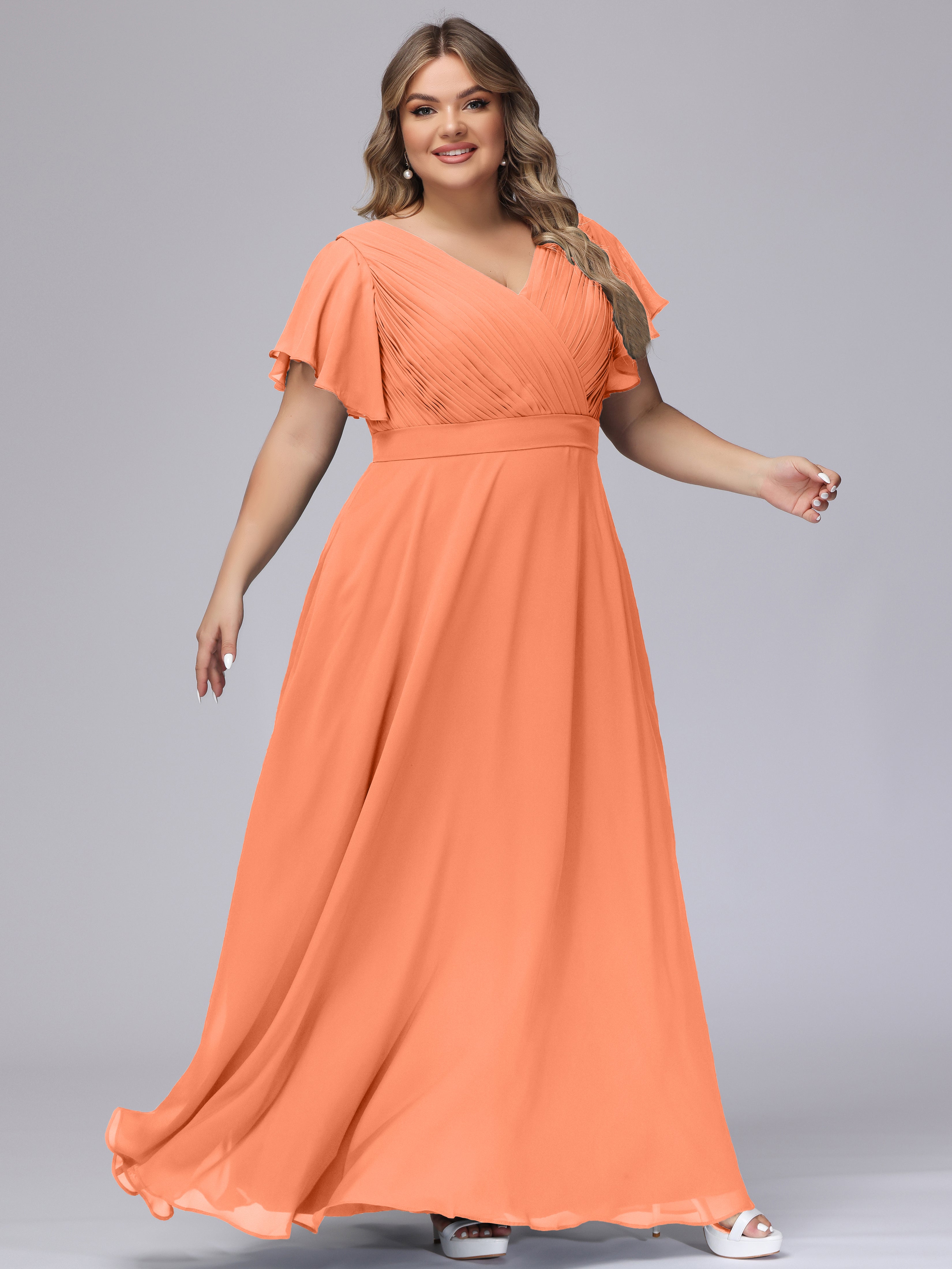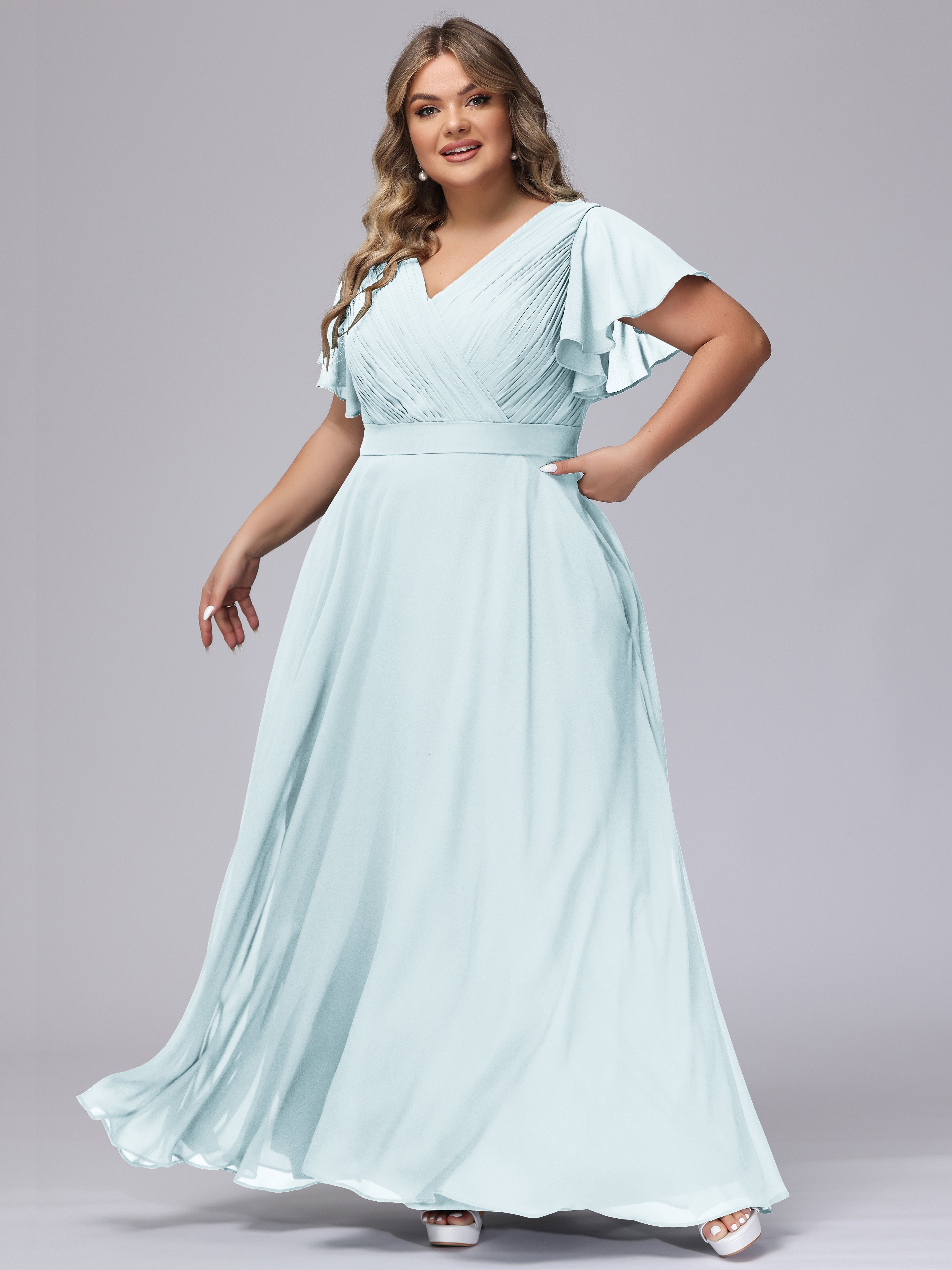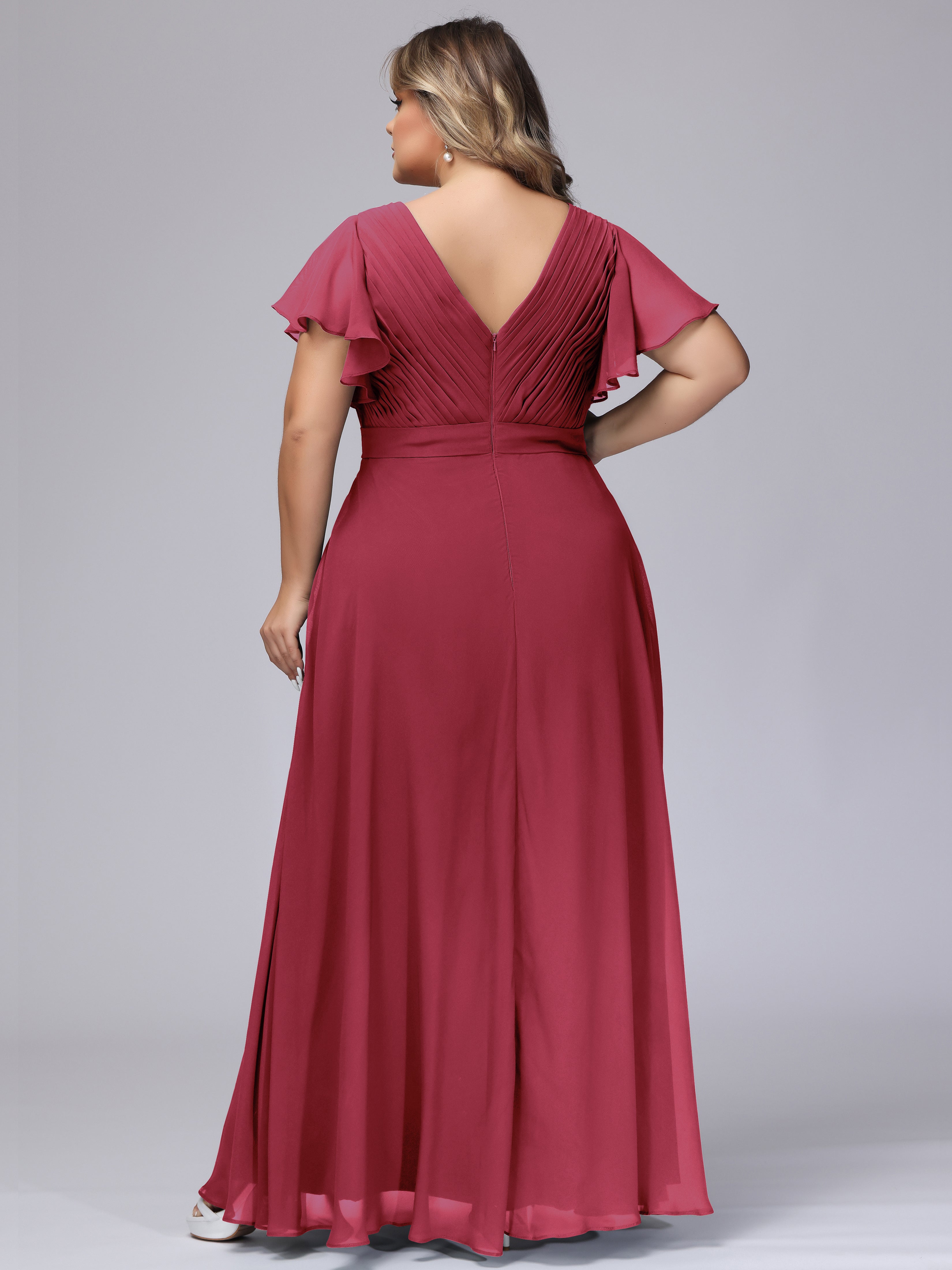 Elegant V-neck Ruffle Sleeves Empire Plus Size Bridesmaid Dress