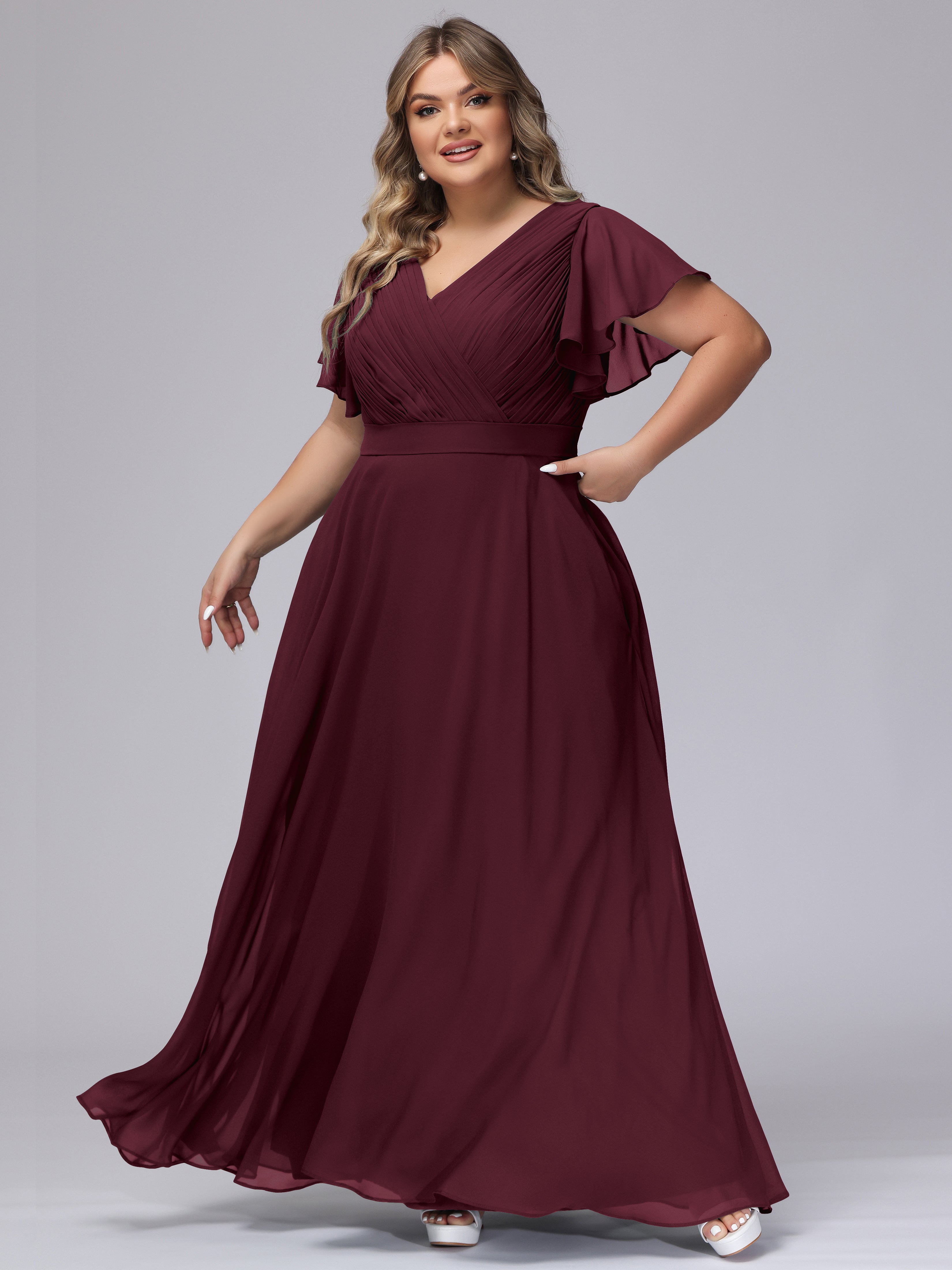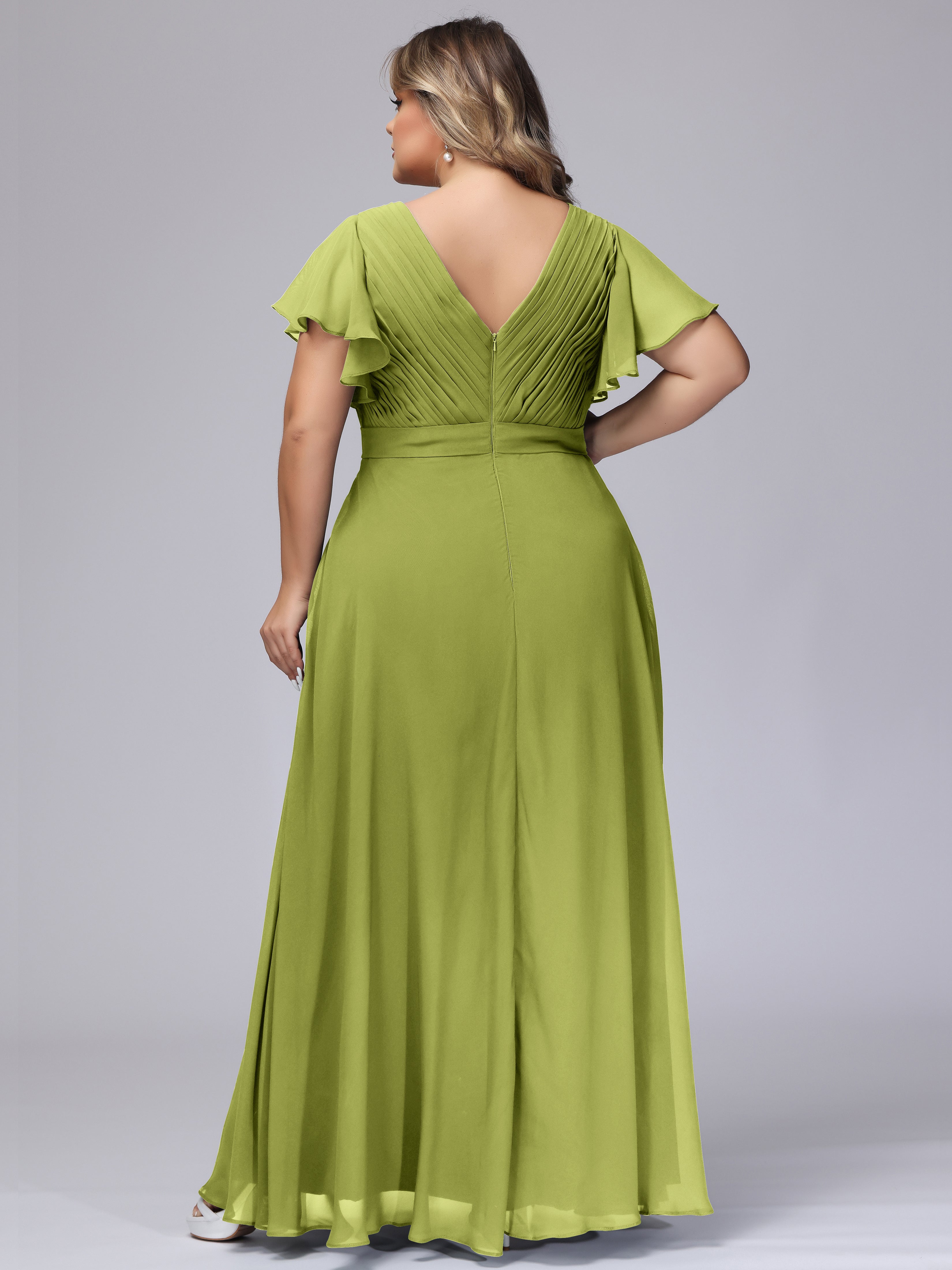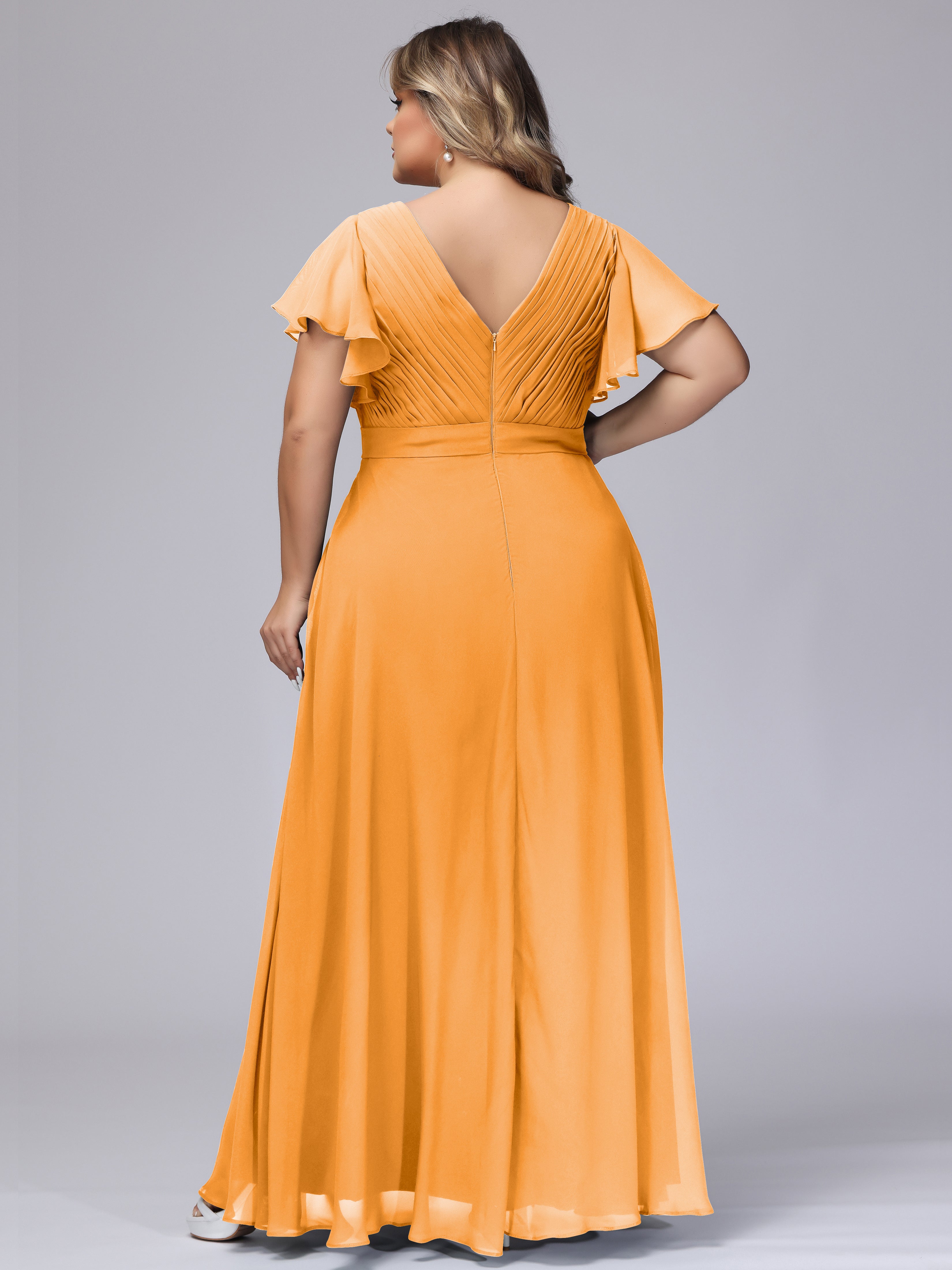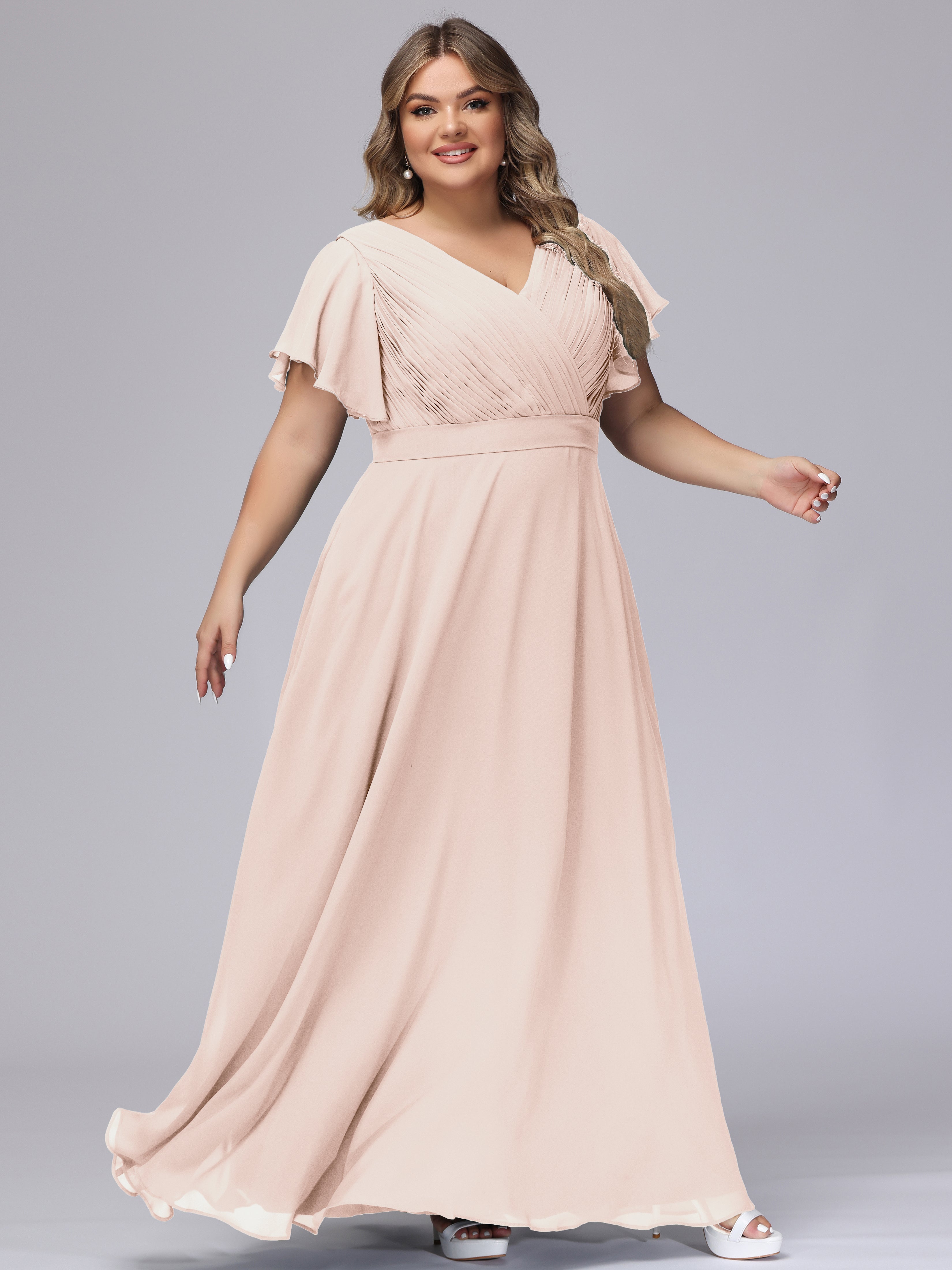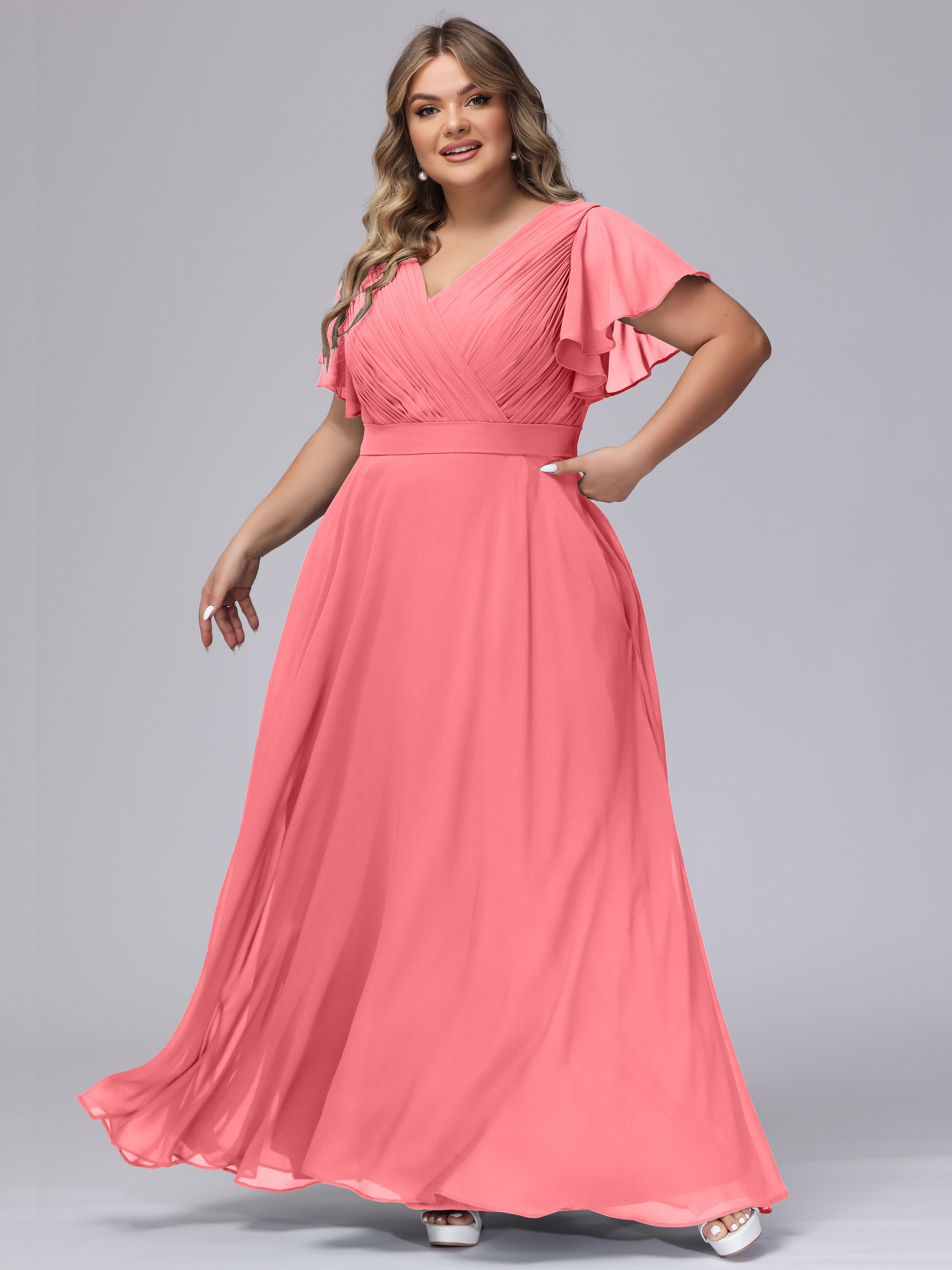 Elegant V-neck Ruffle Sleeves Empire Plus Size Bridesmaid Dress