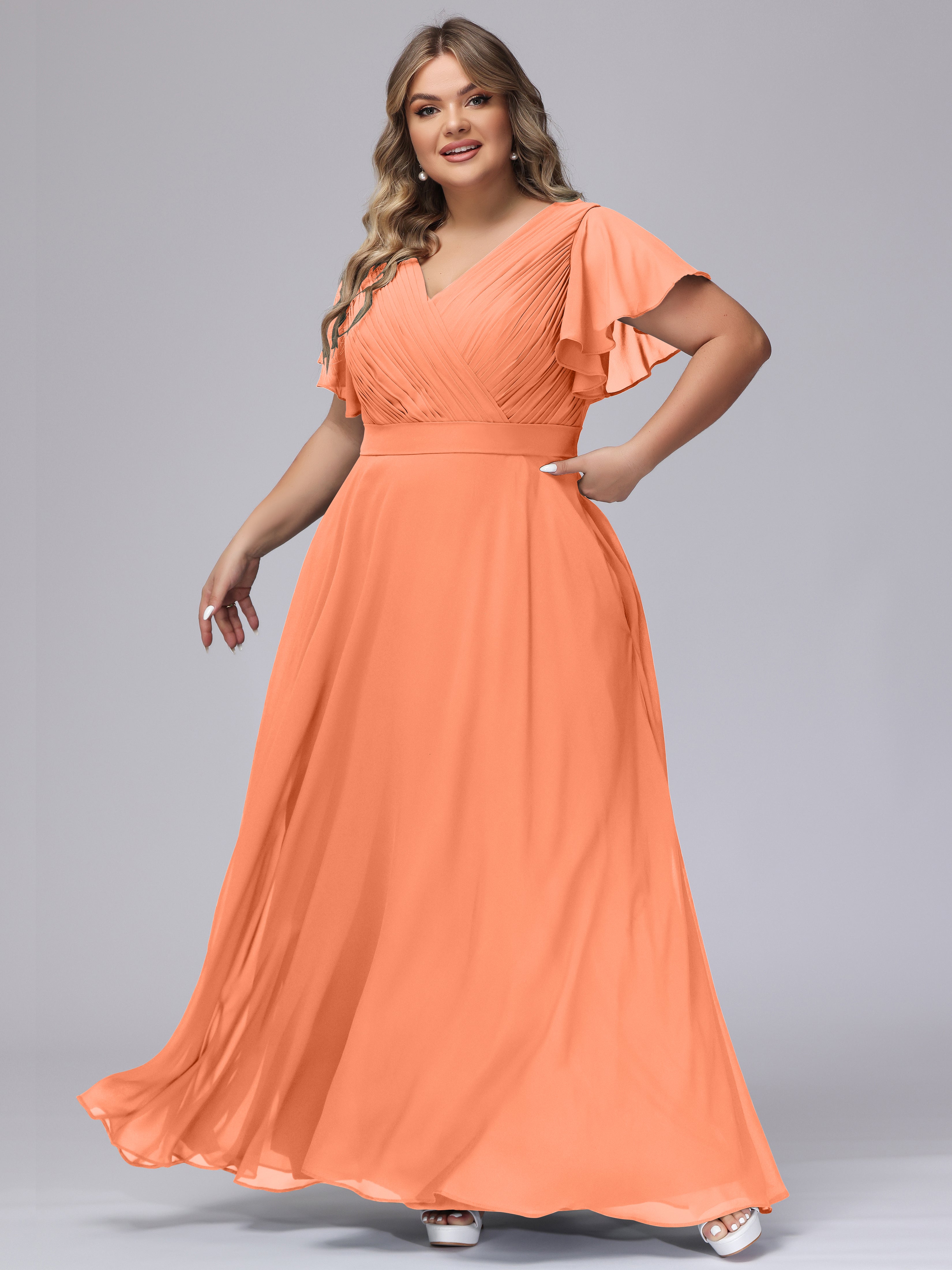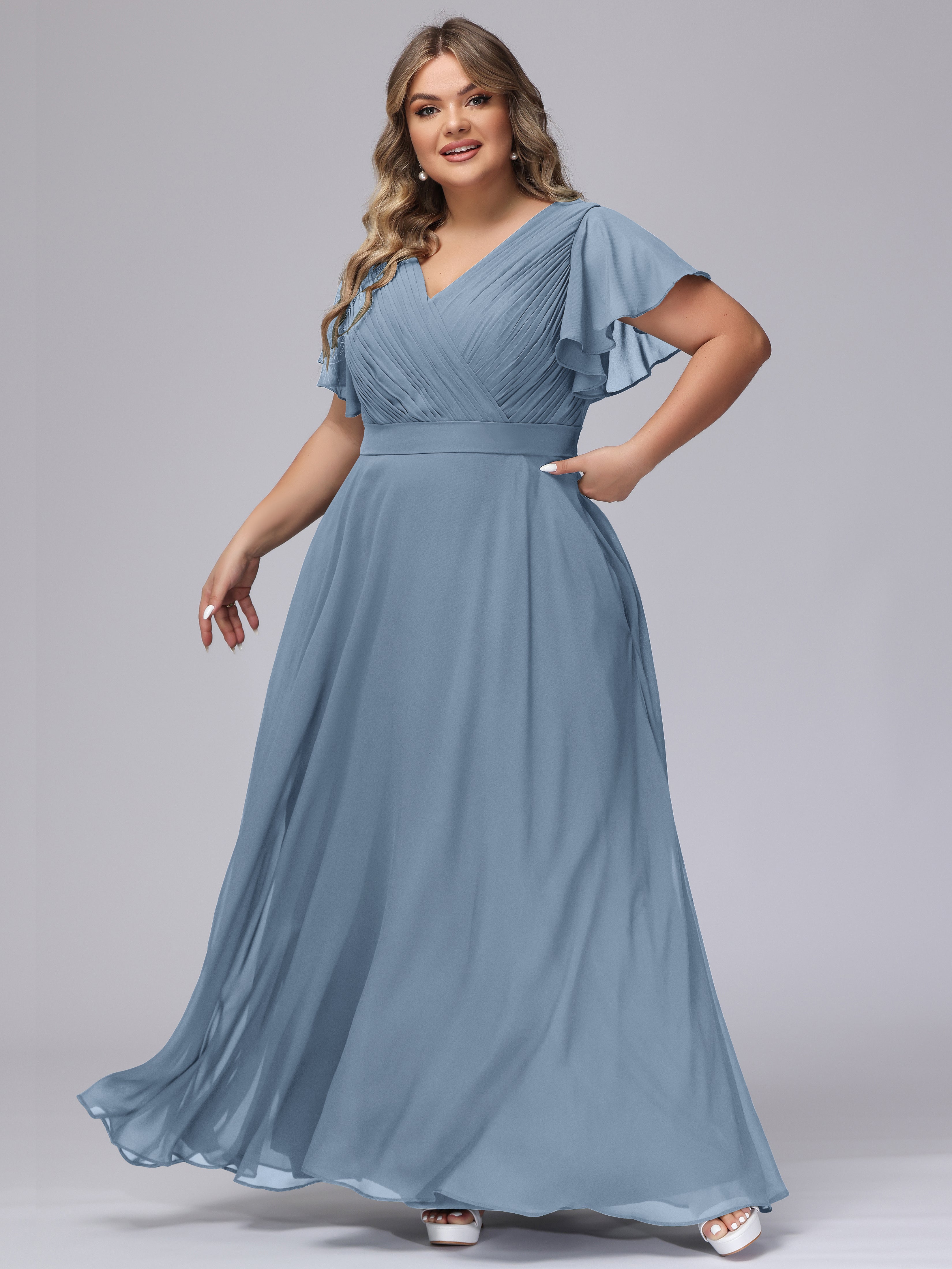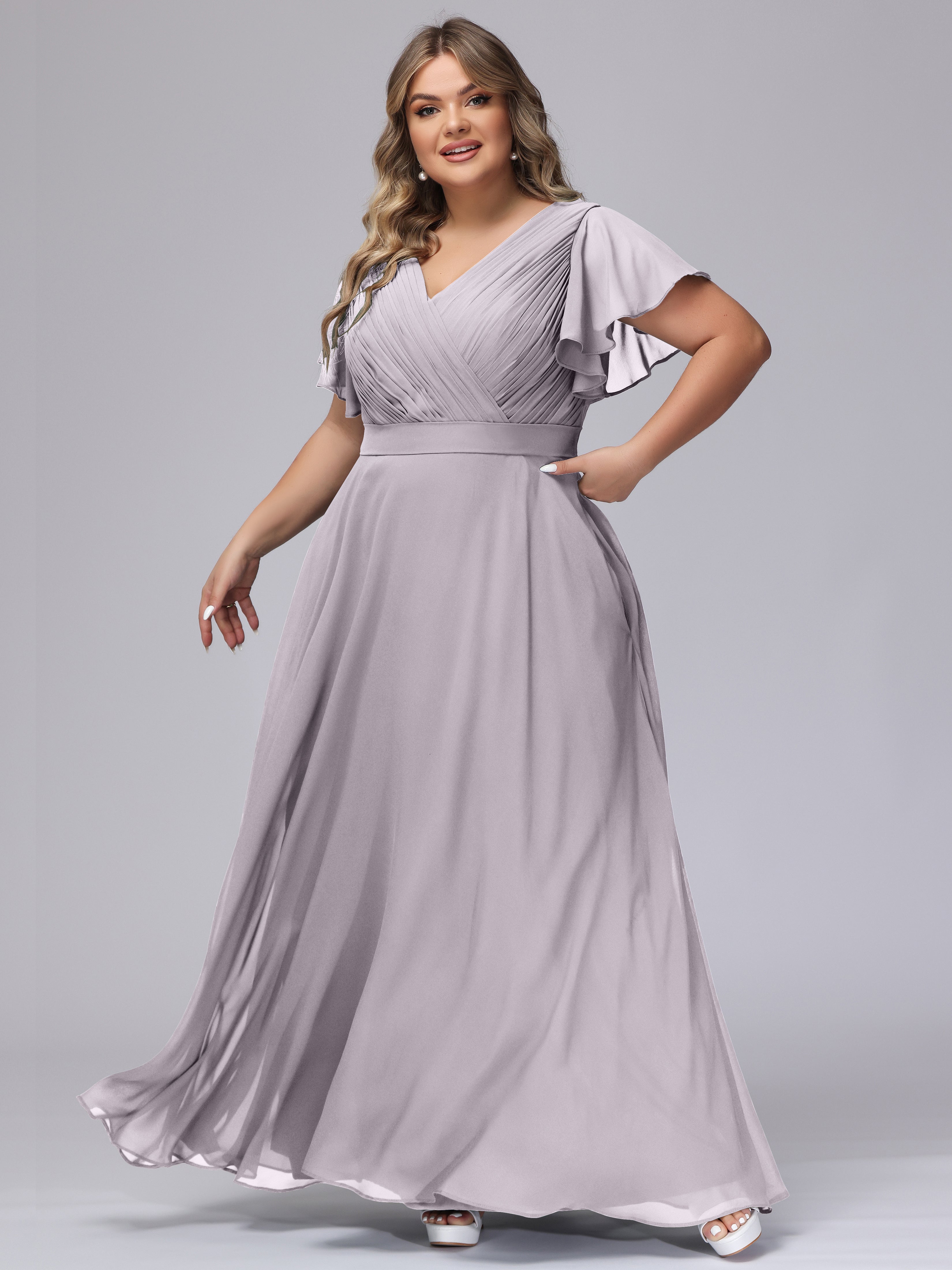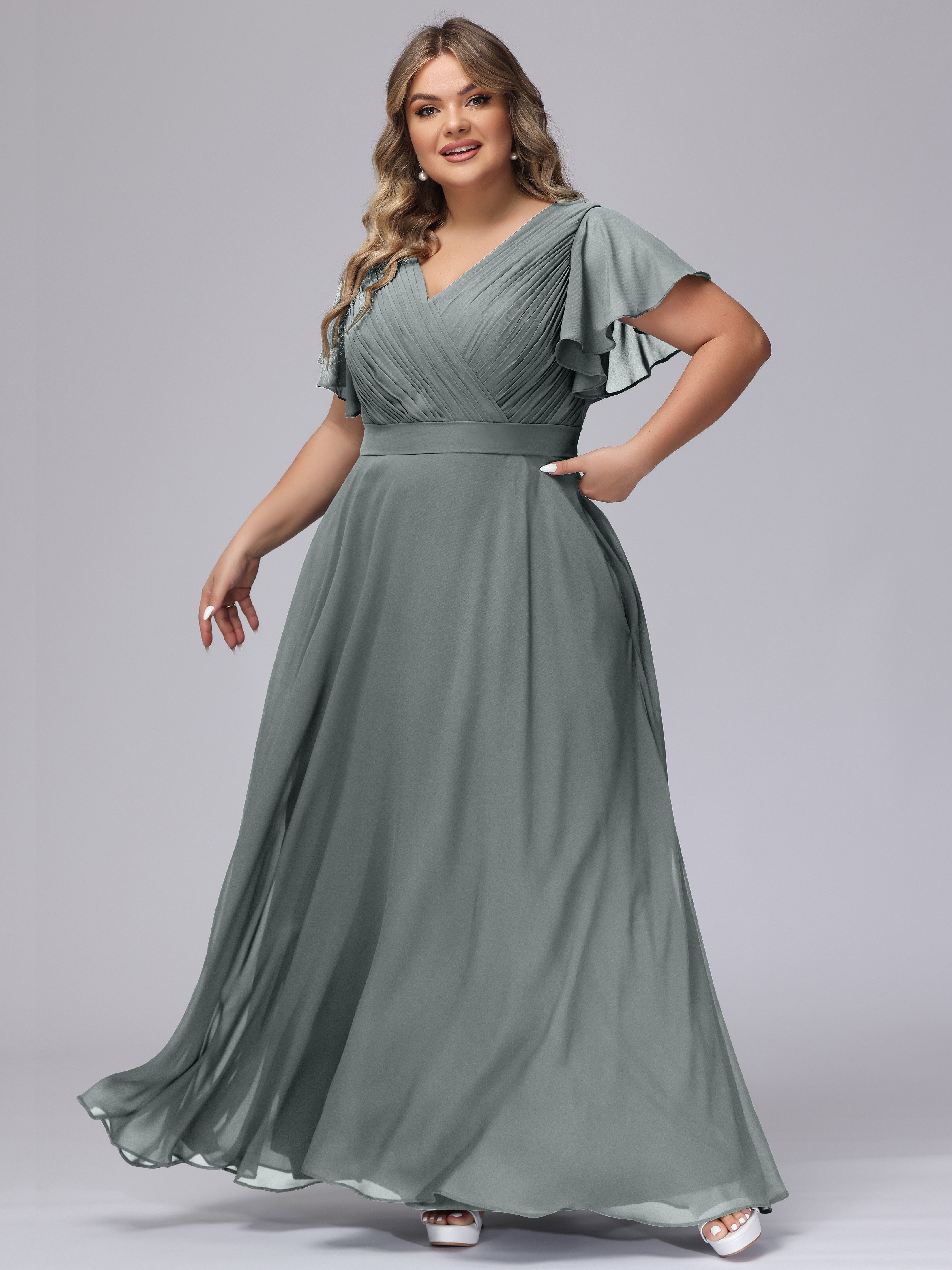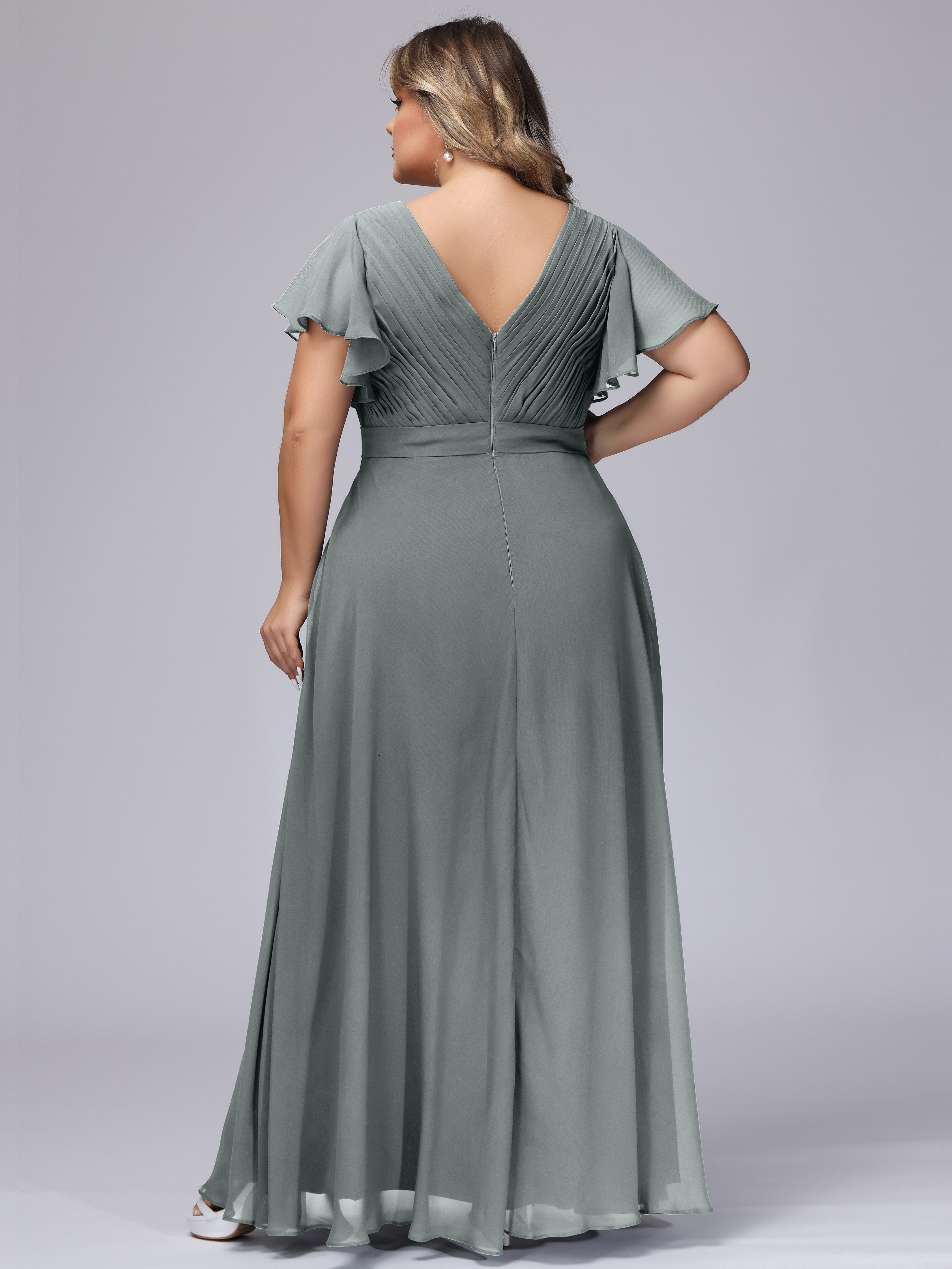 Elegant V-neck Ruffle Sleeves Empire Plus Size Bridesmaid Dress