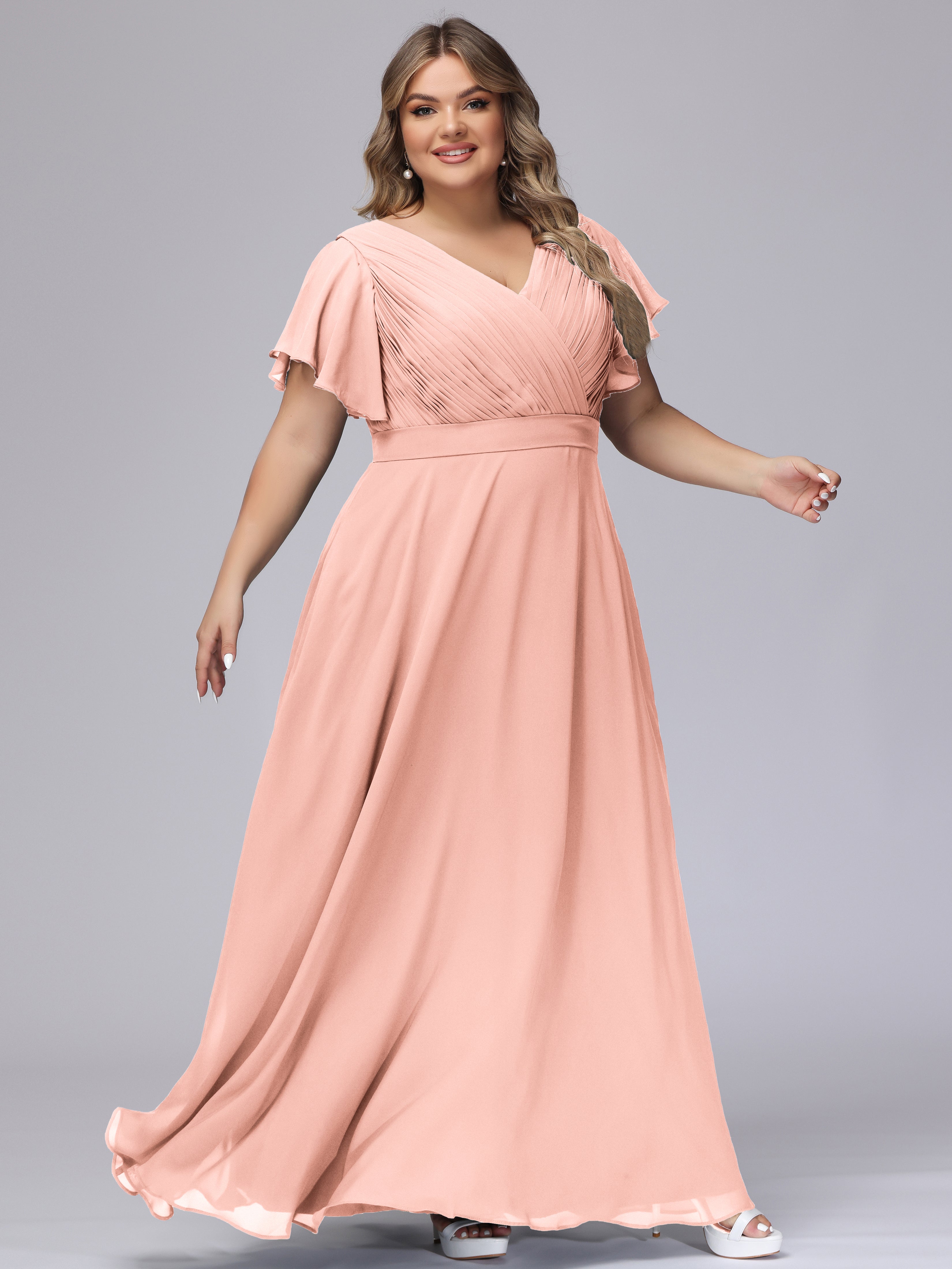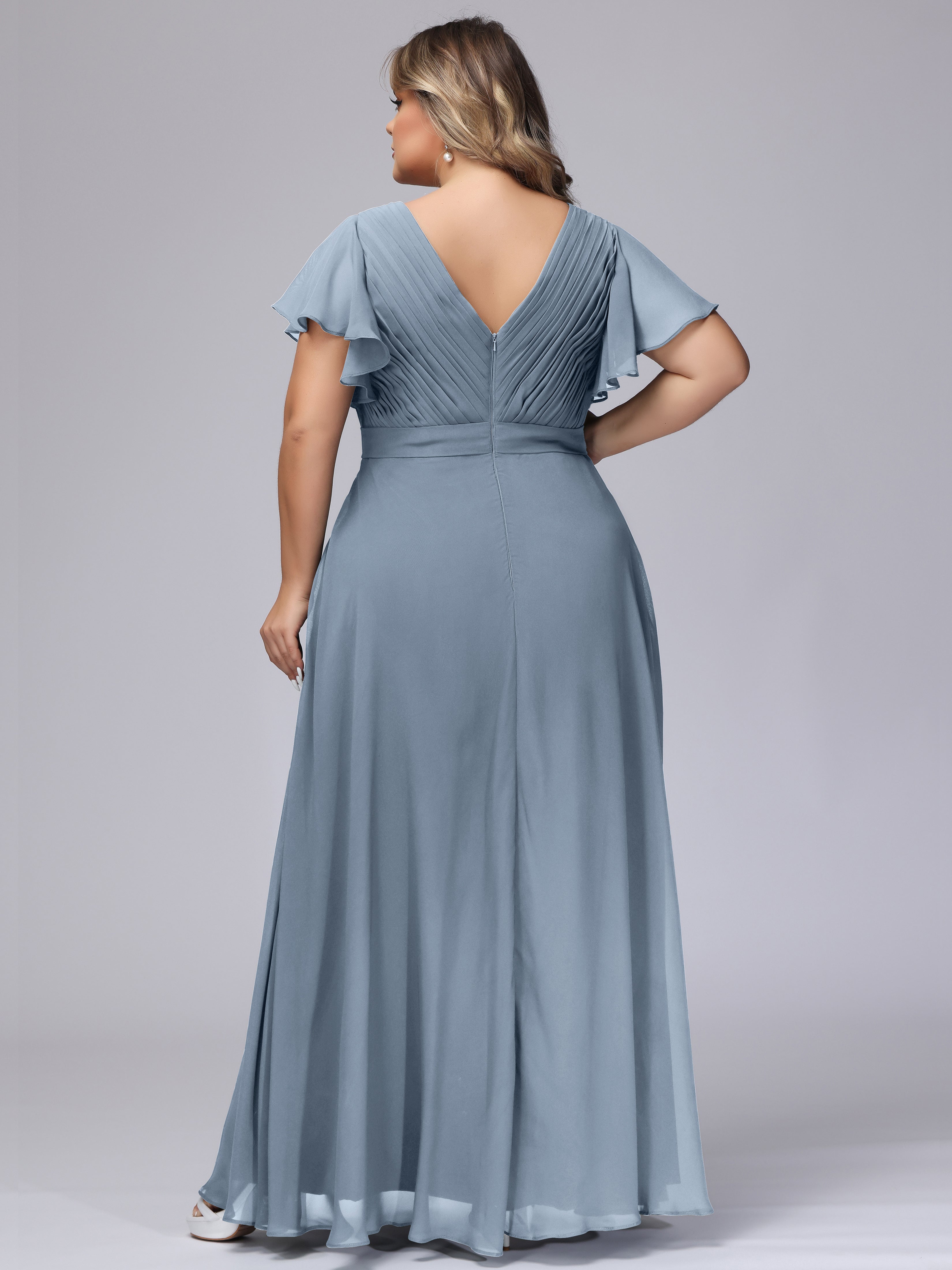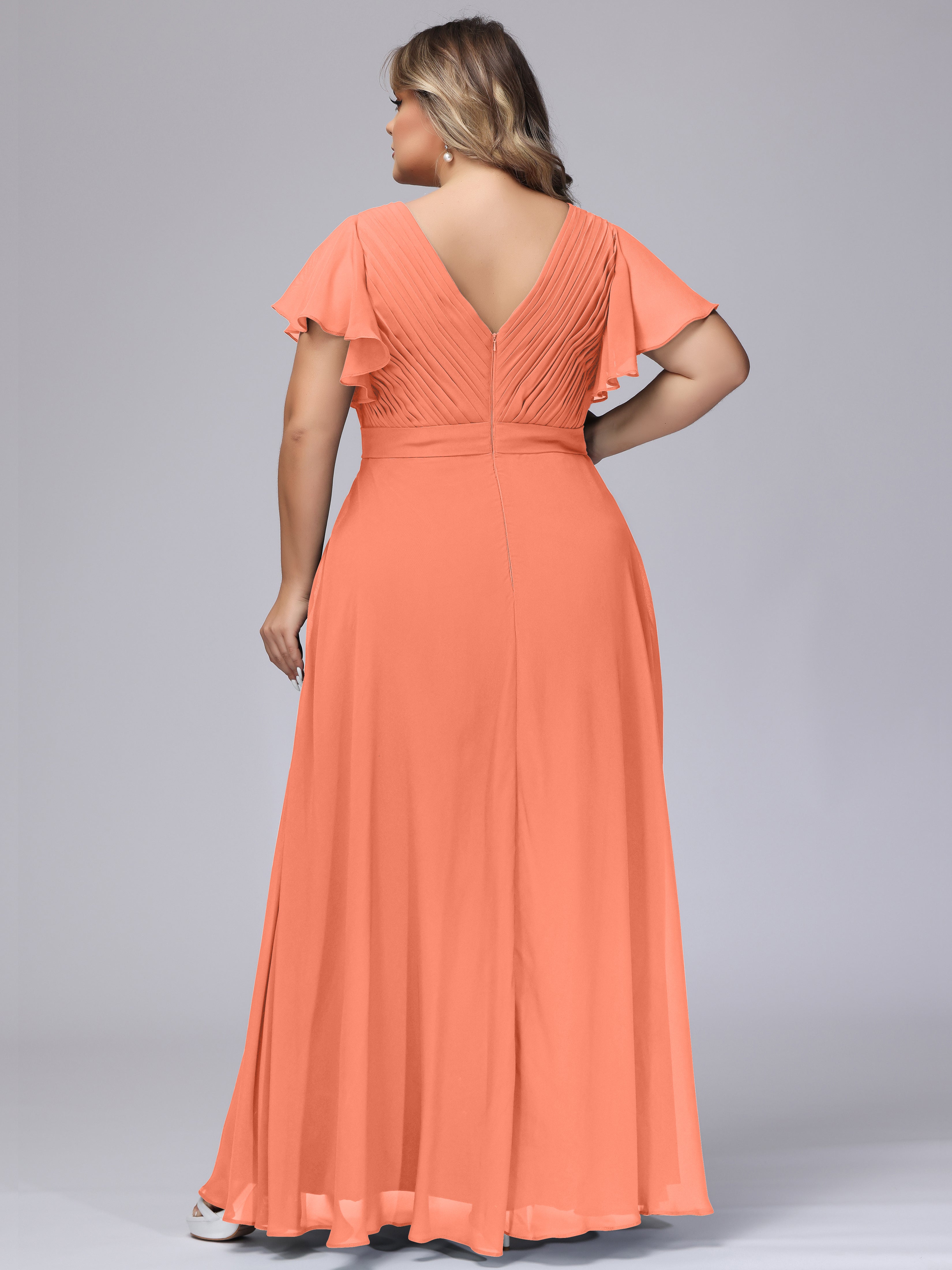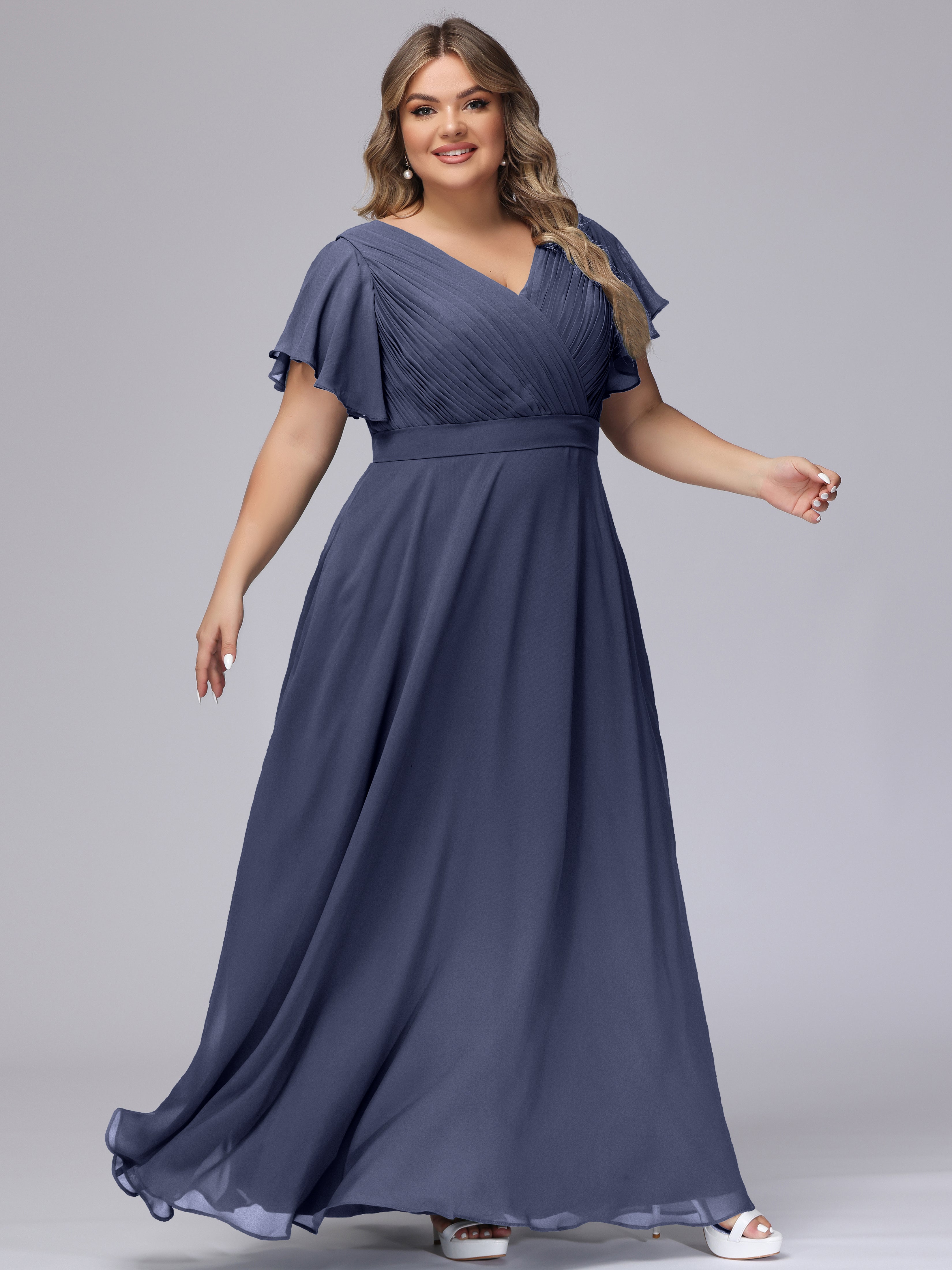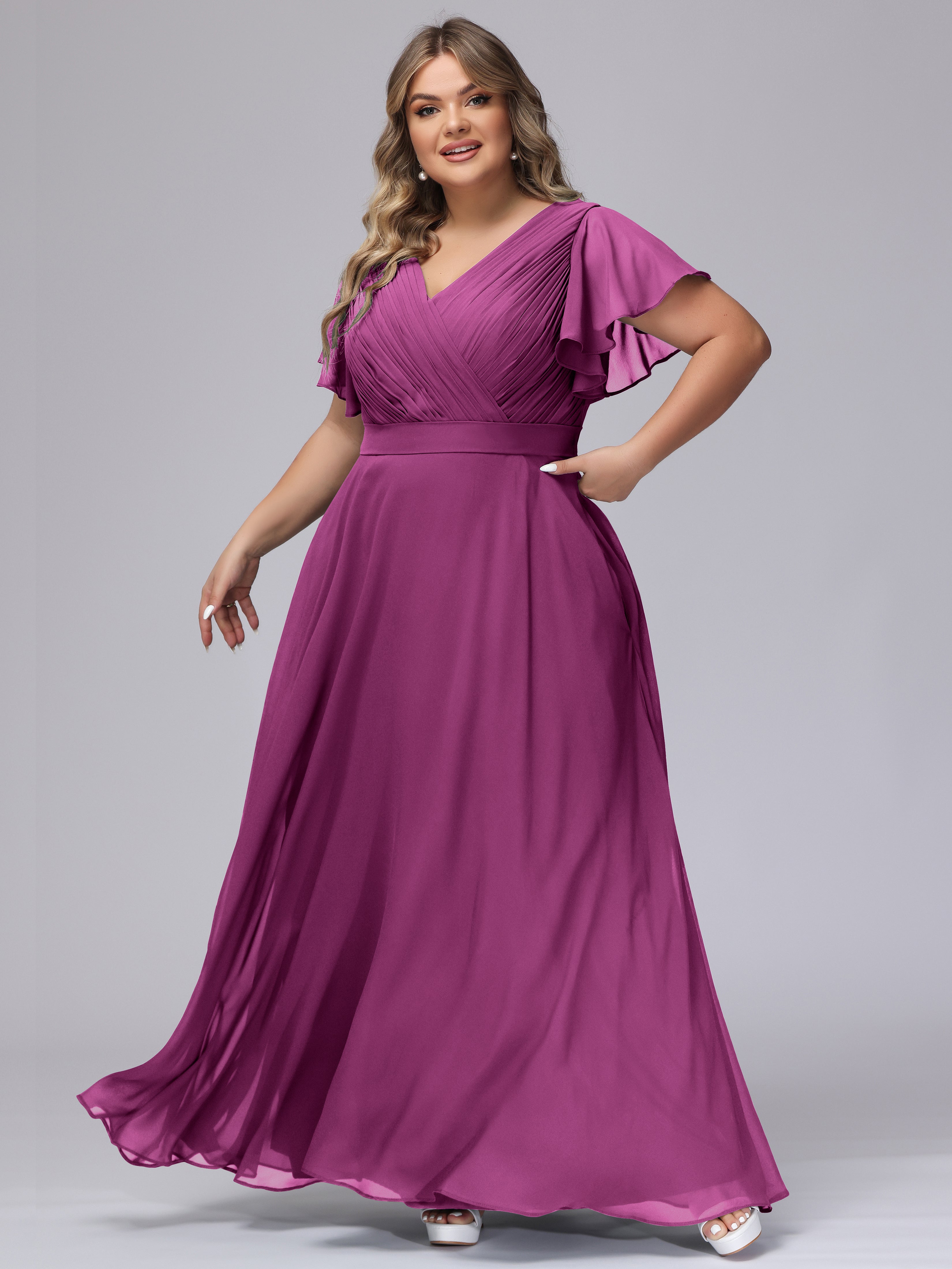 Elegant V-neck Ruffle Sleeves Empire Plus Size Bridesmaid Dress