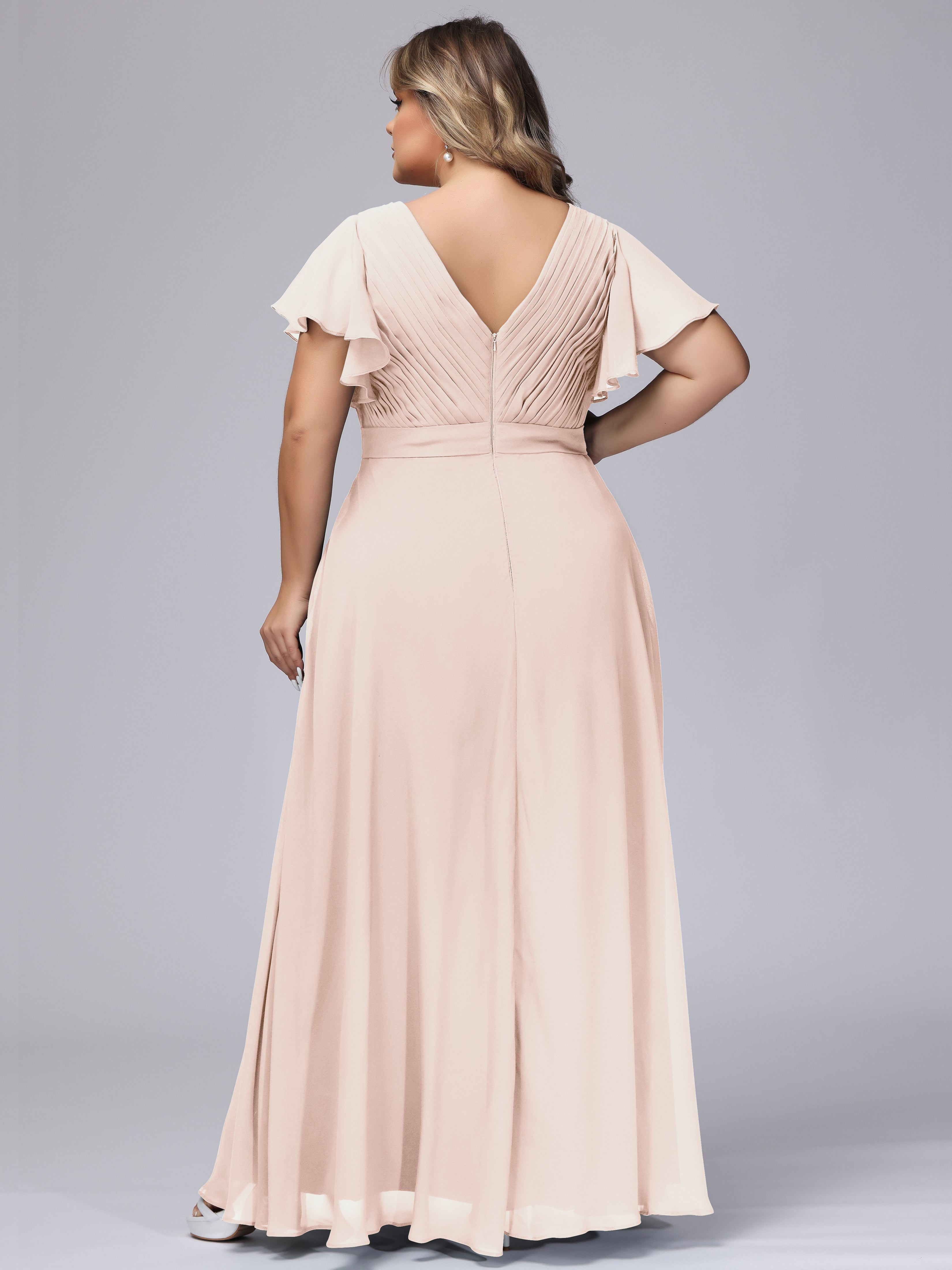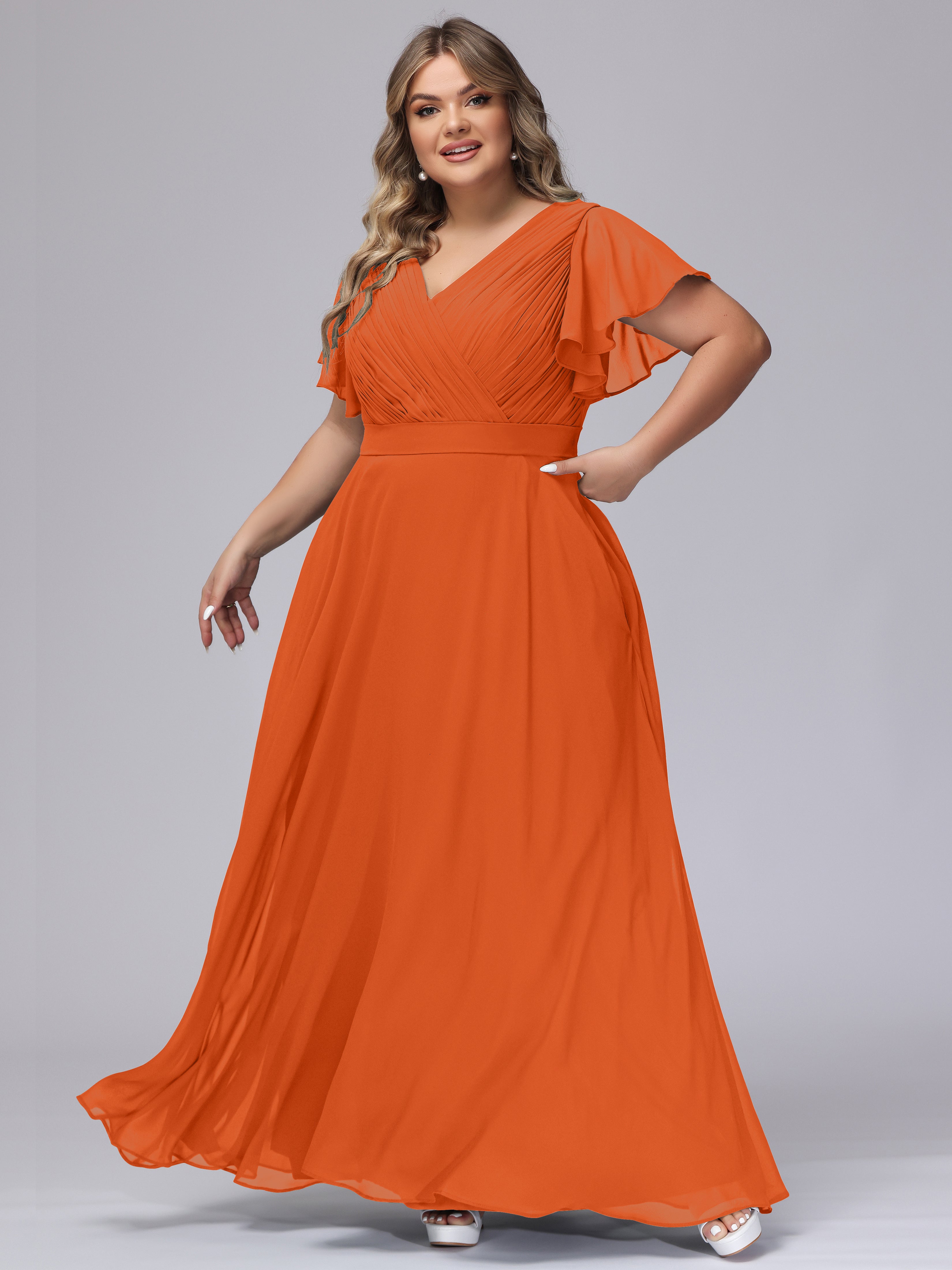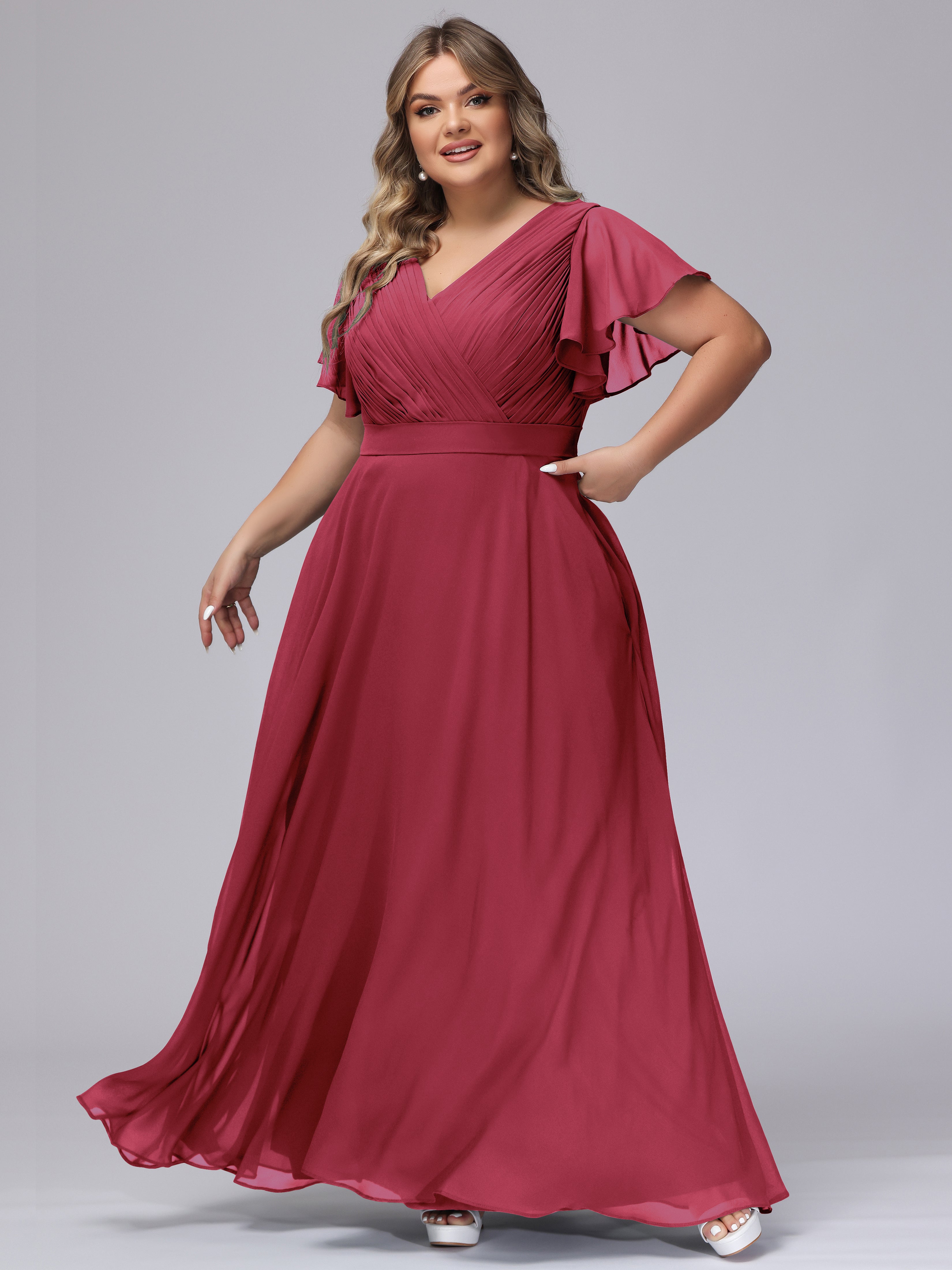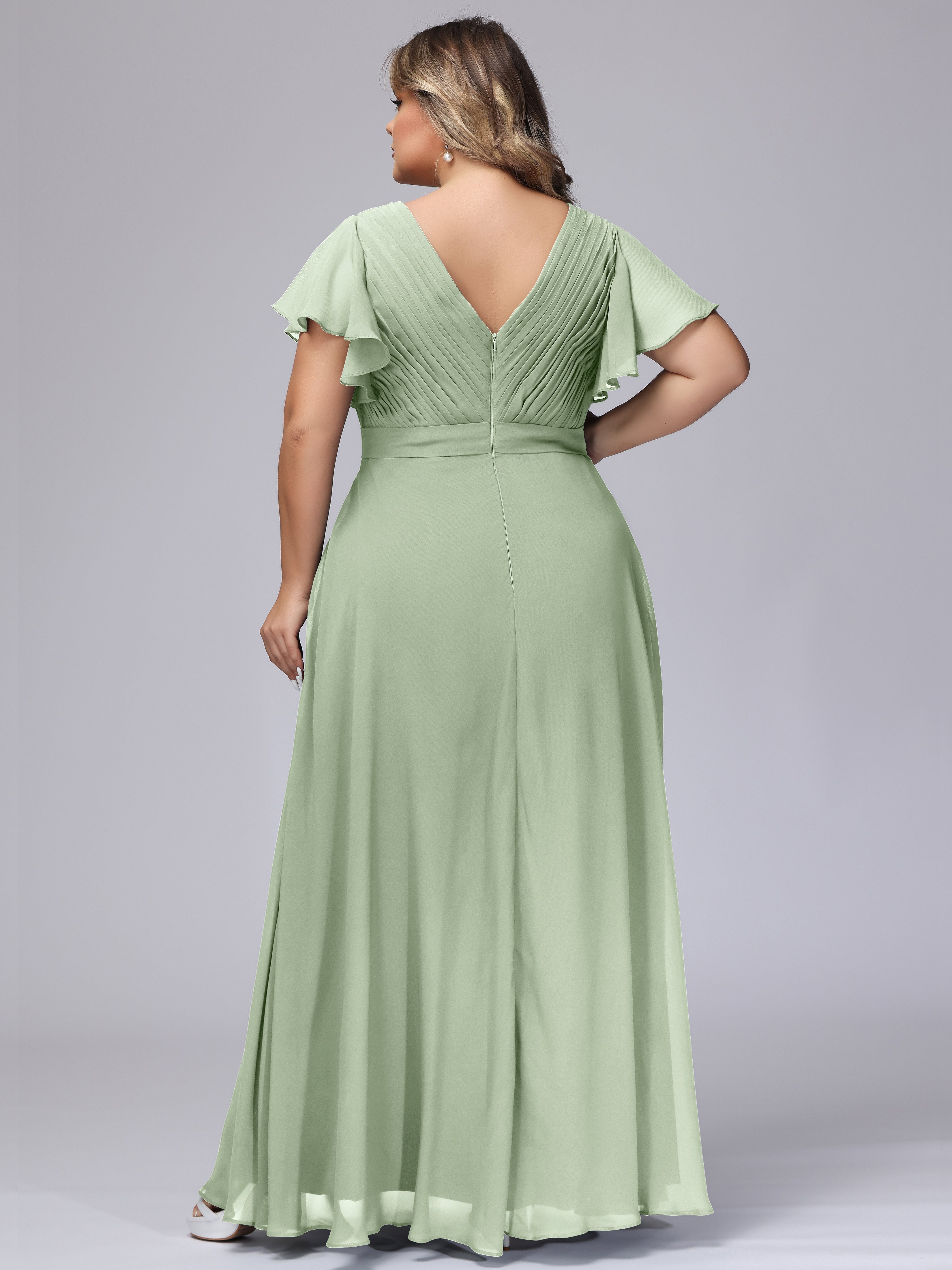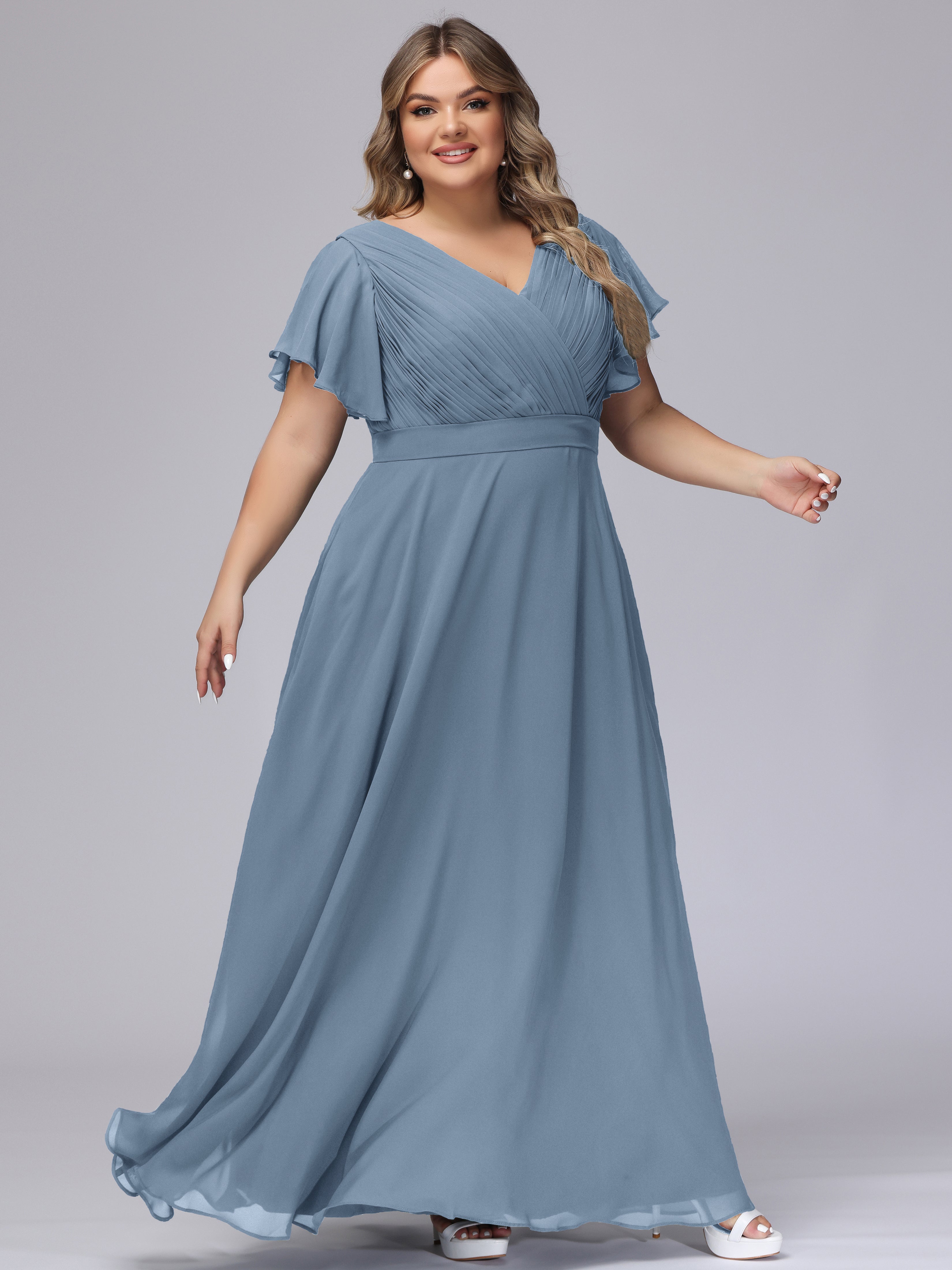 Elegant V-neck Ruffle Sleeves Empire Plus Size Bridesmaid Dress