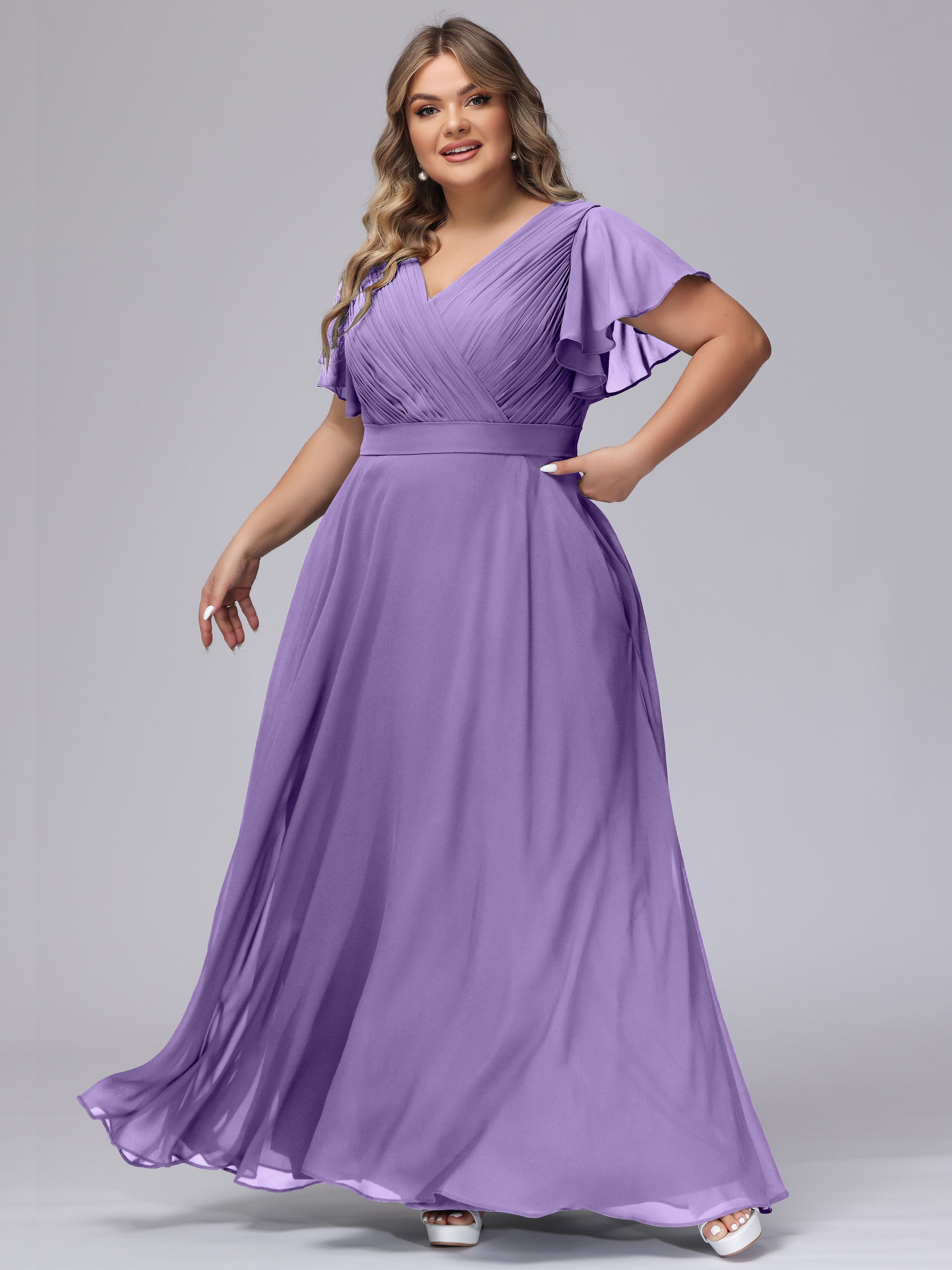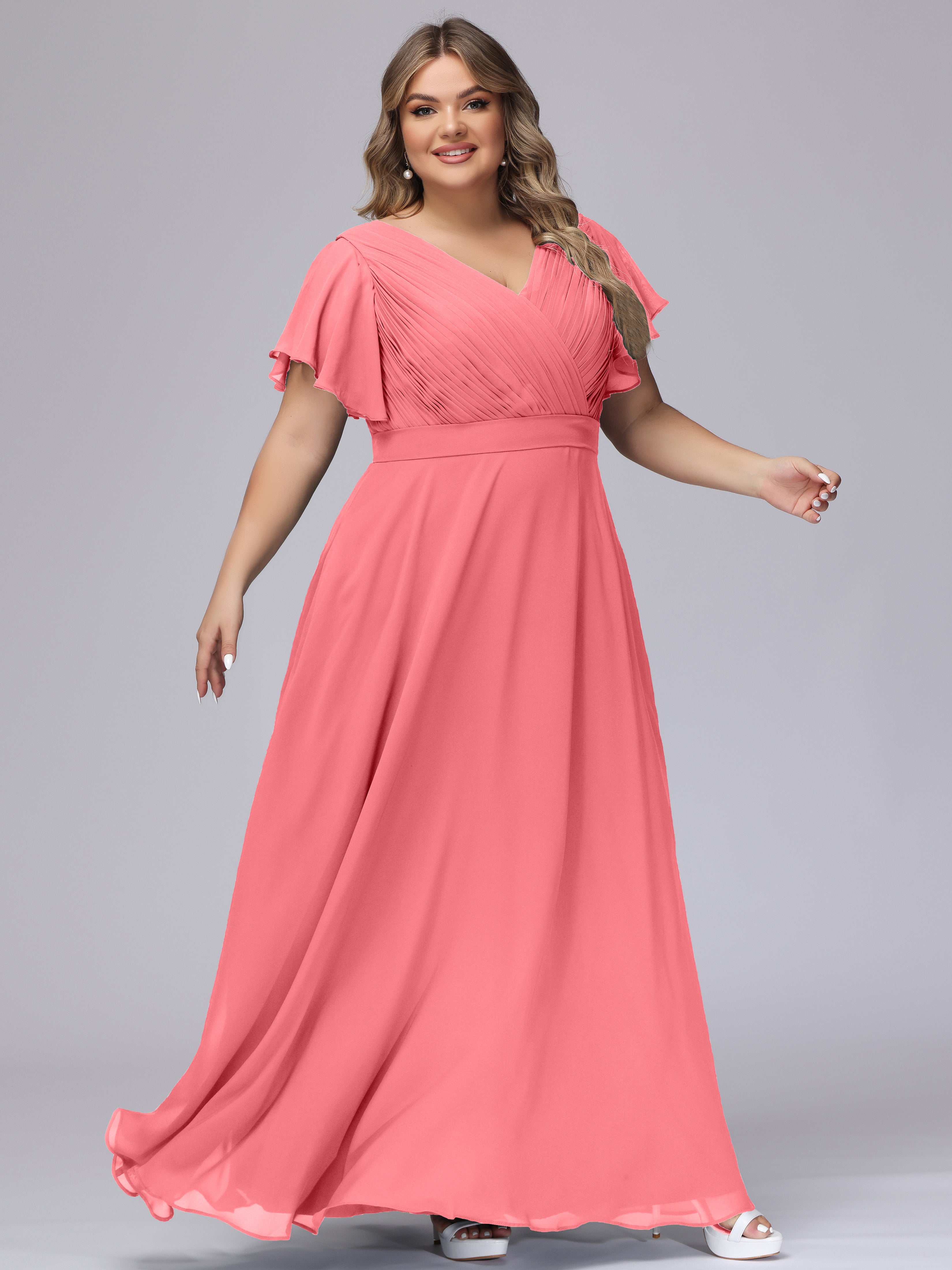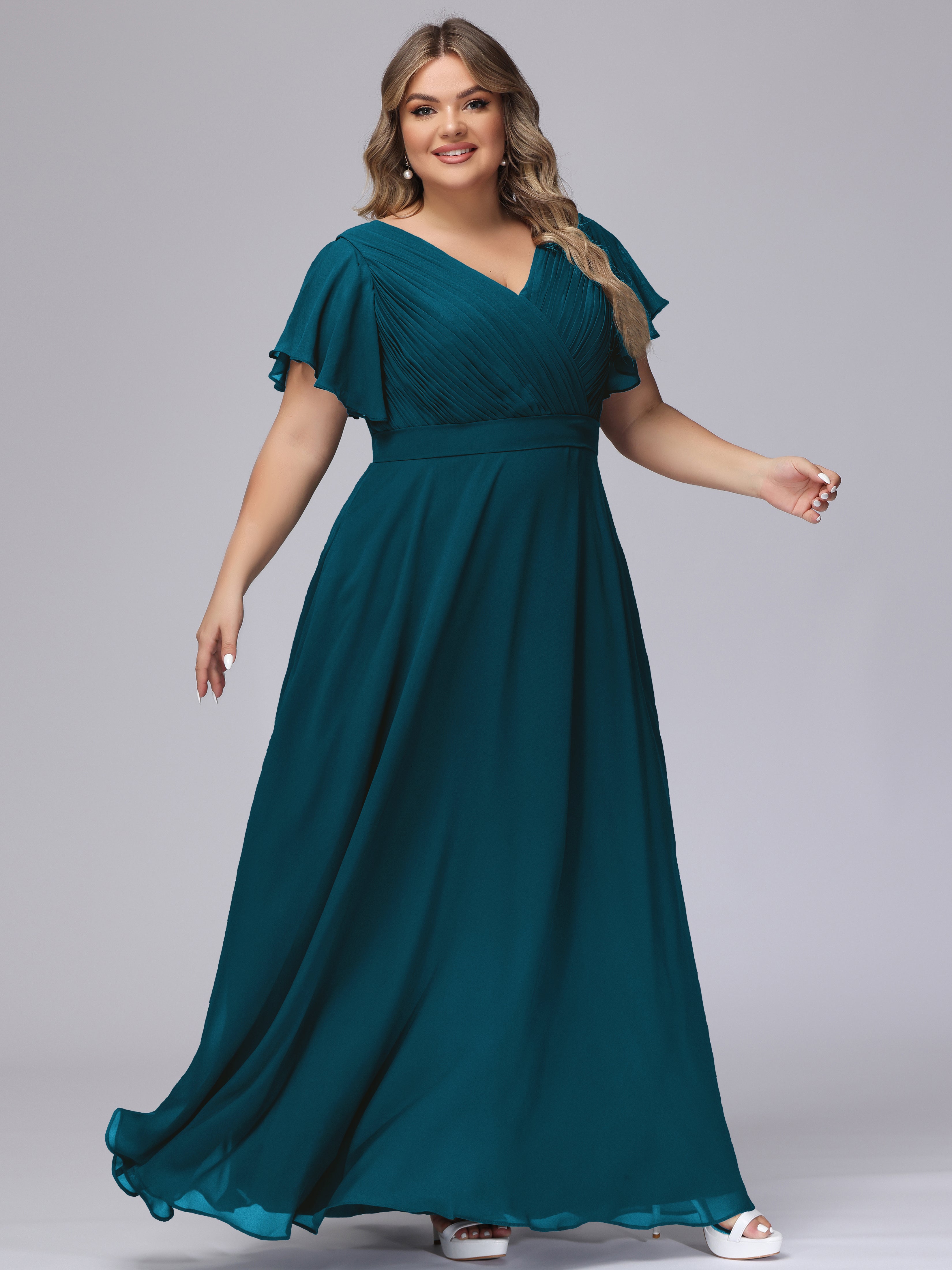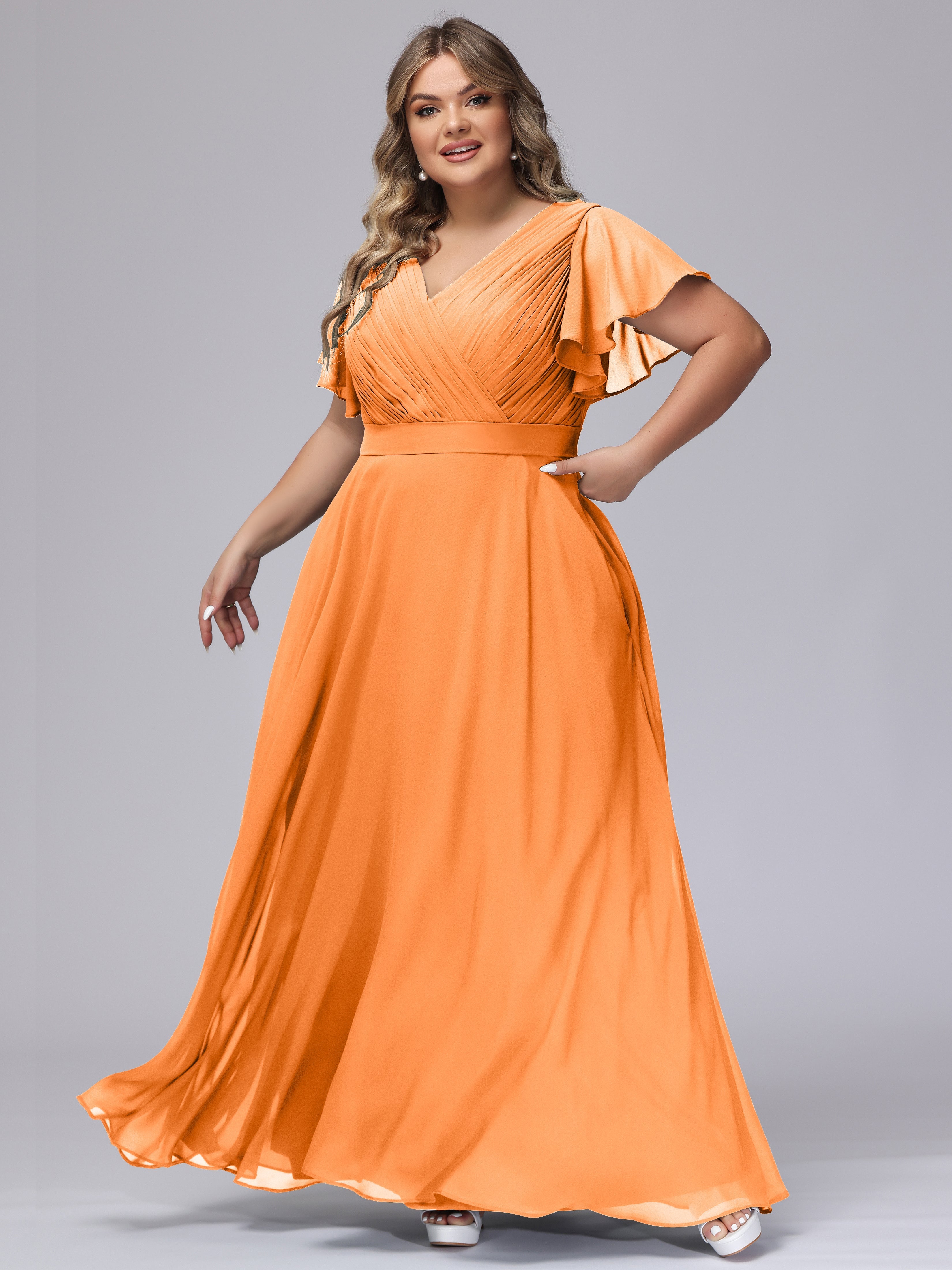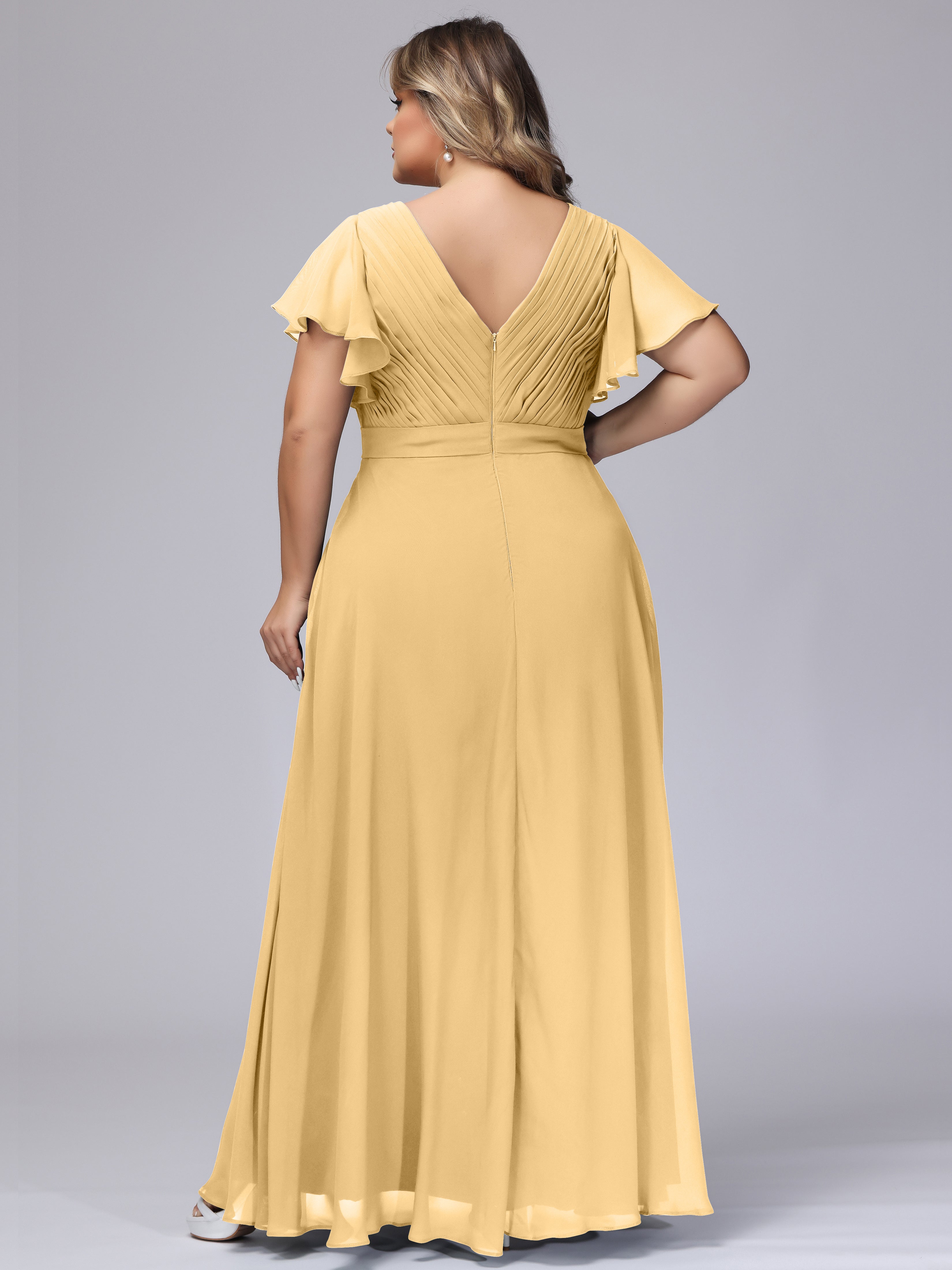 Elegant V-neck Ruffle Sleeves Empire Plus Size Bridesmaid Dress
