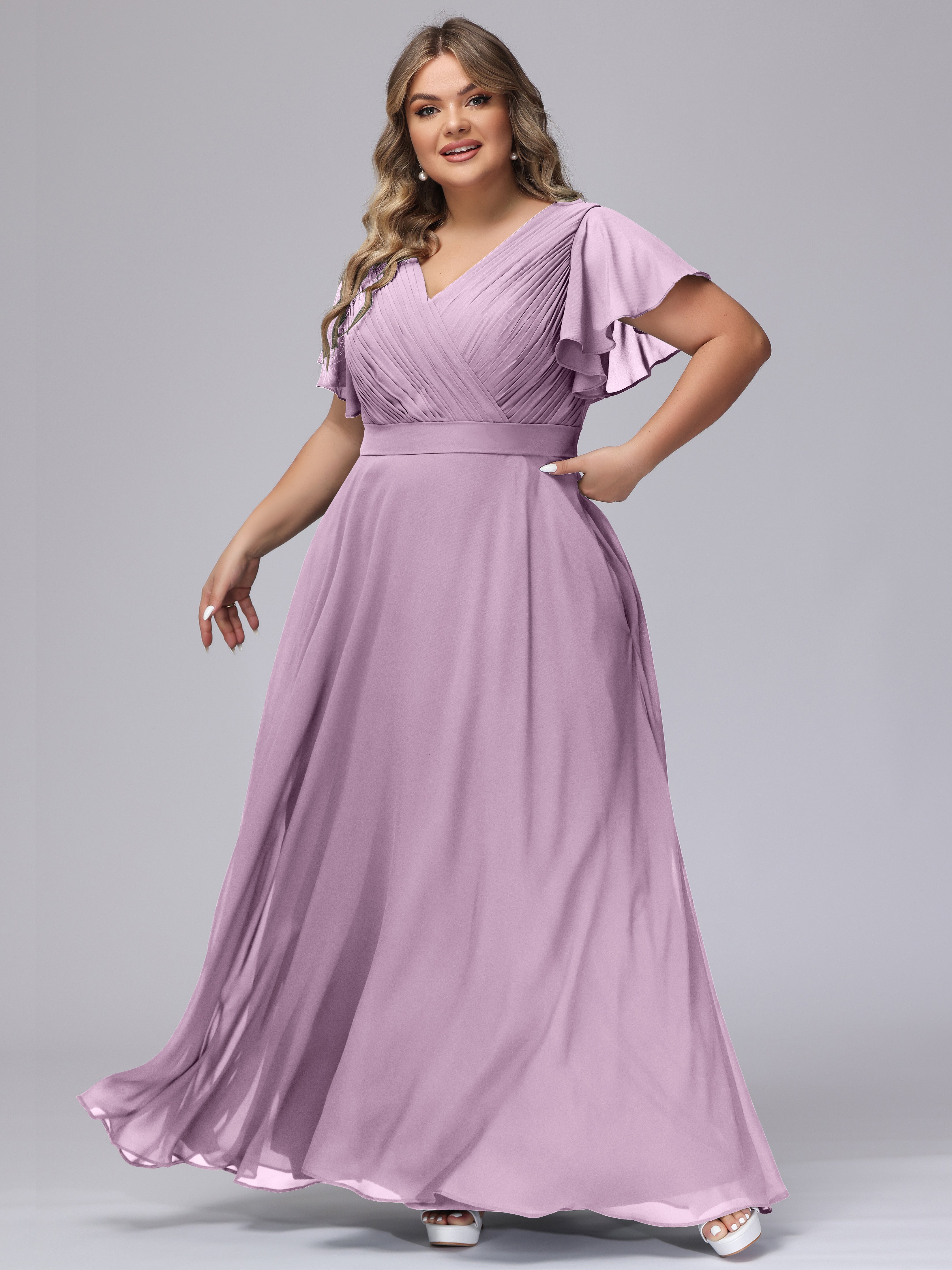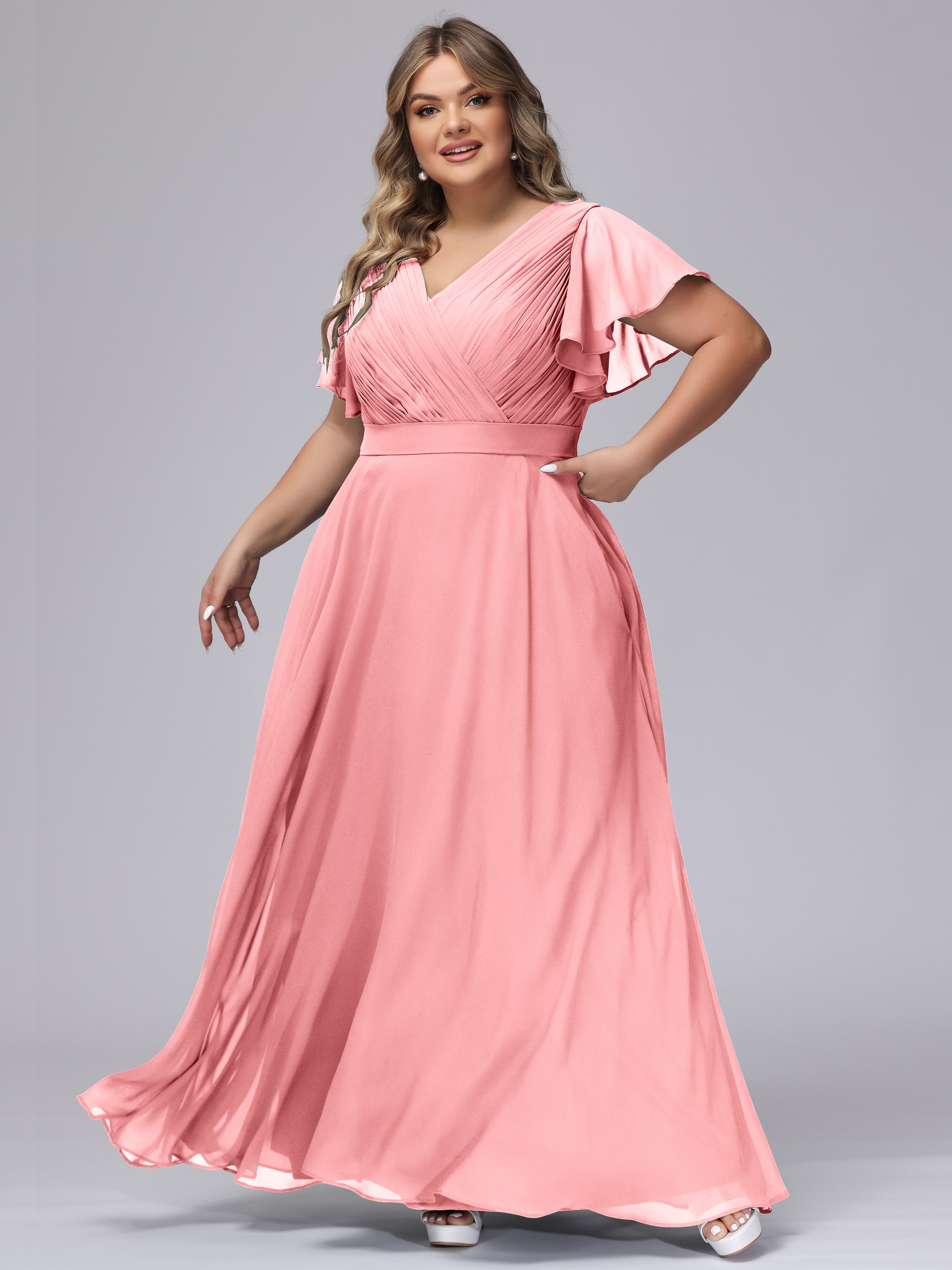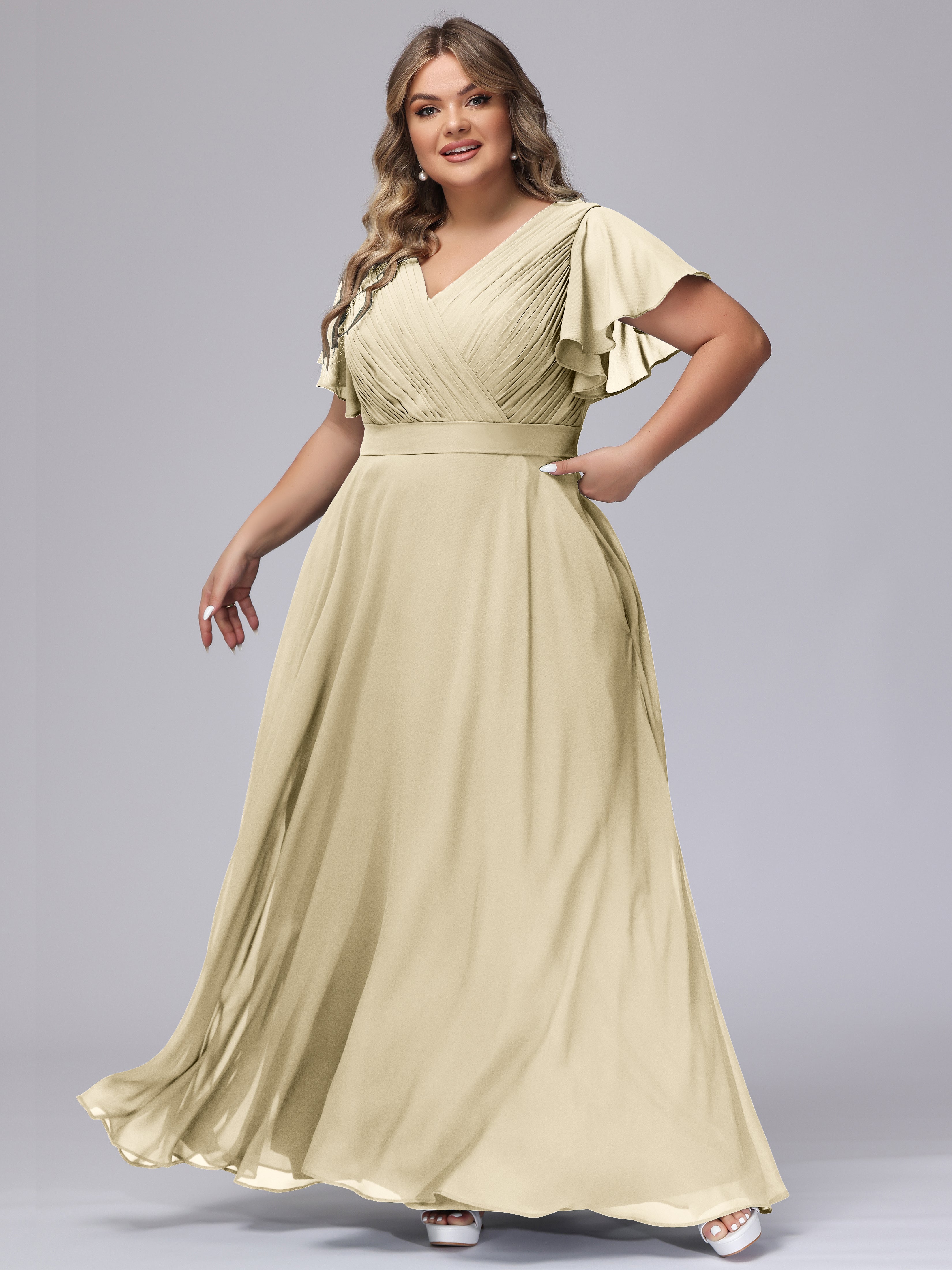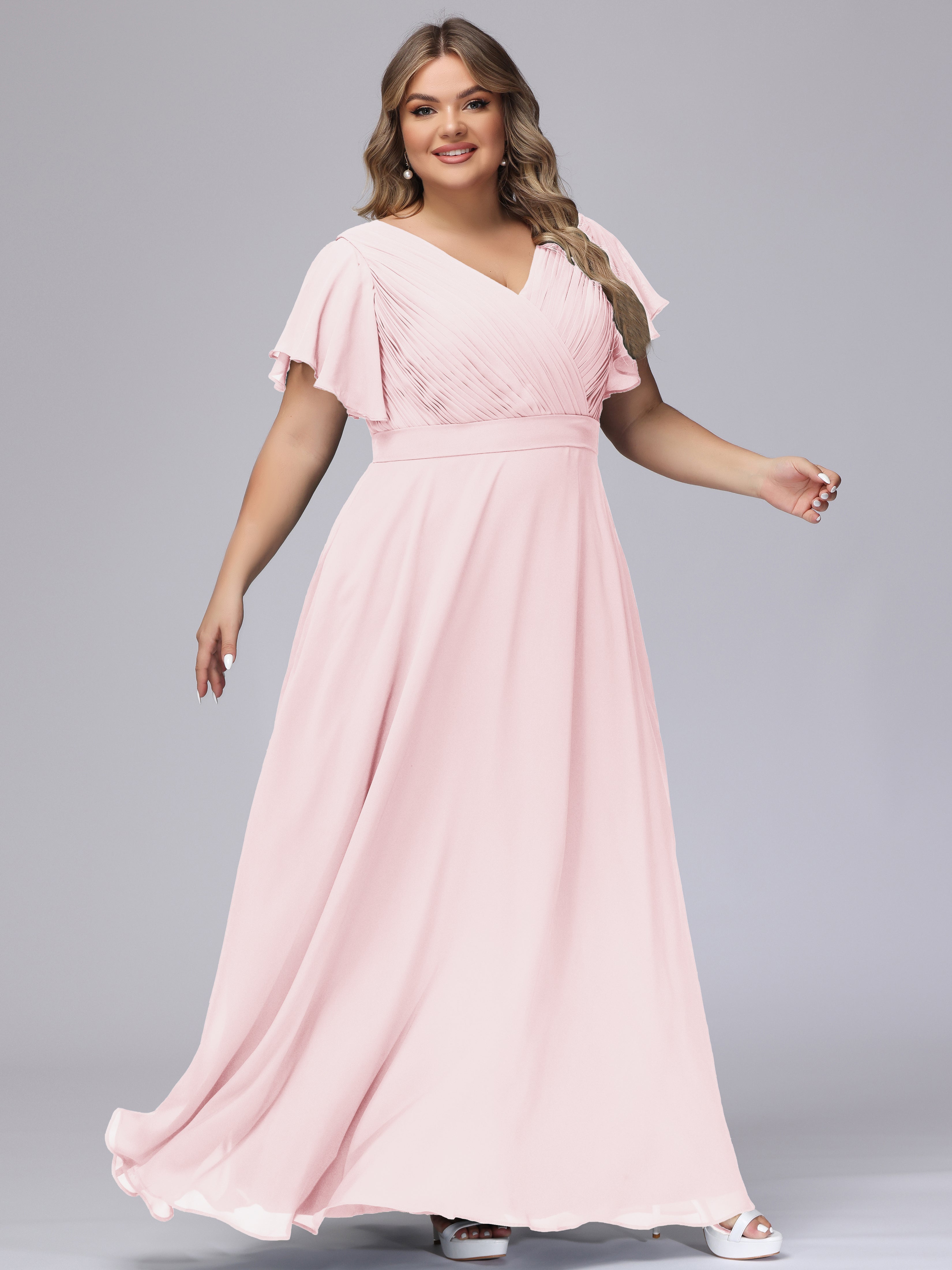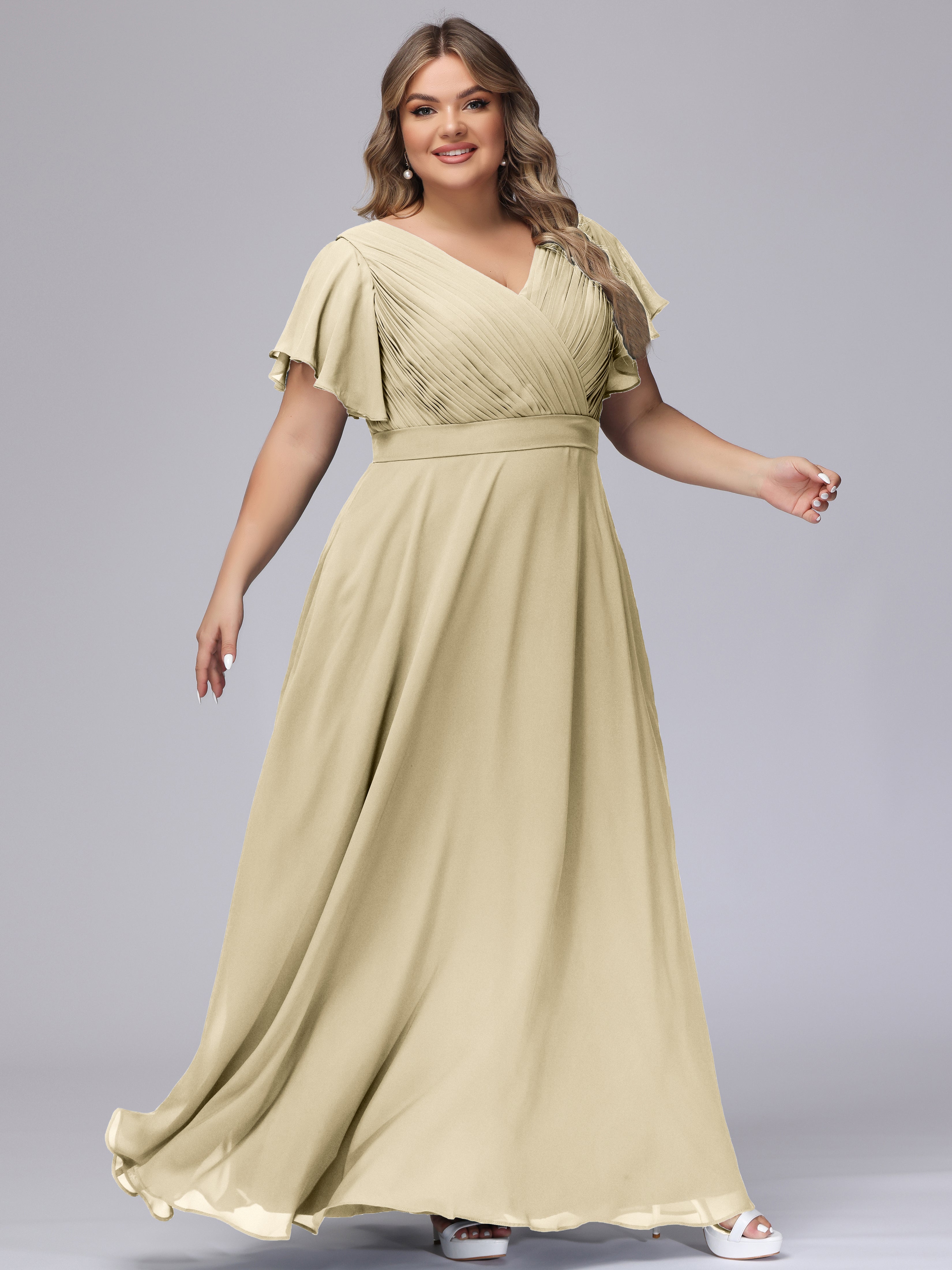 Elegant V-neck Ruffle Sleeves Empire Plus Size Bridesmaid Dress