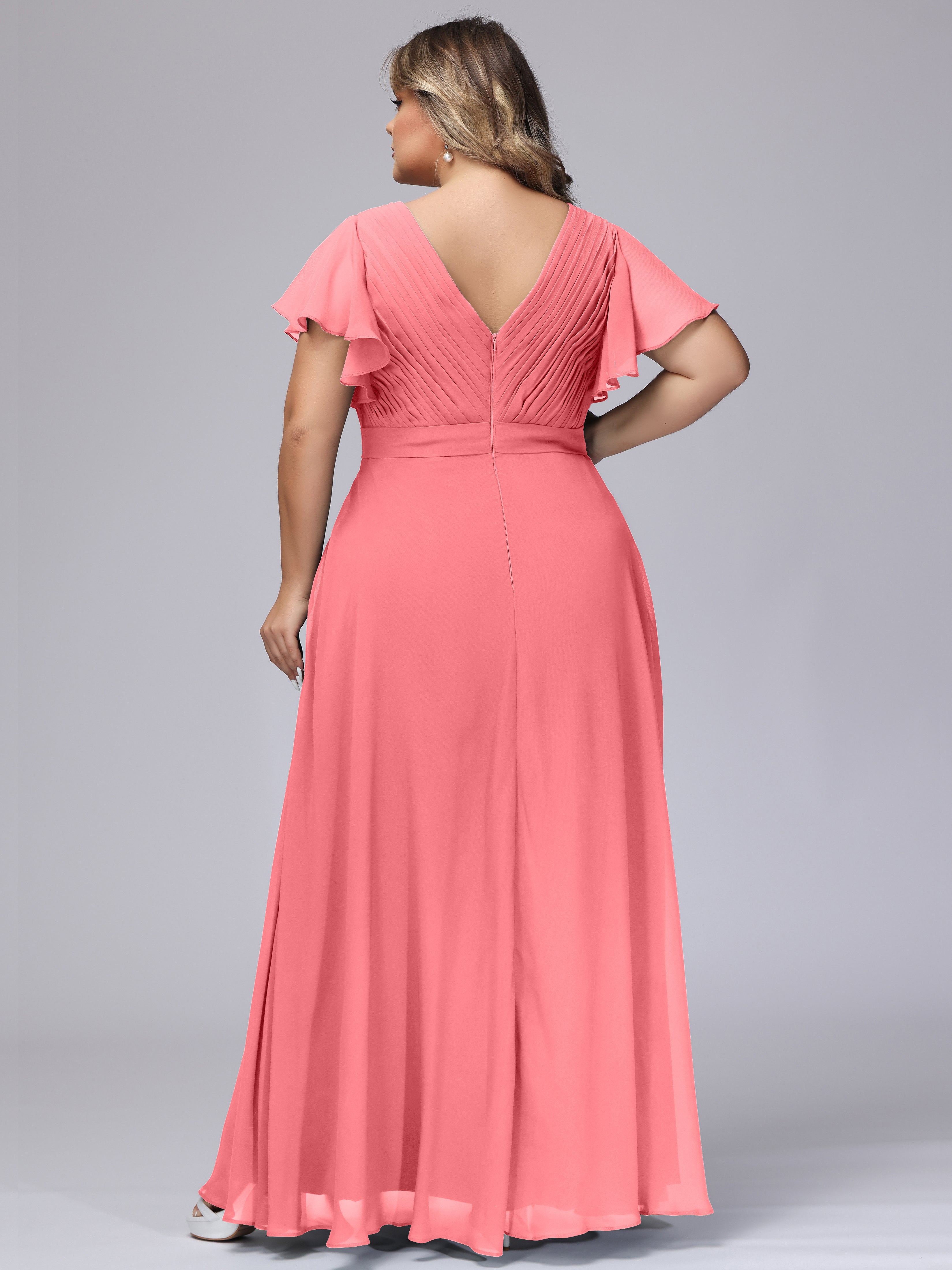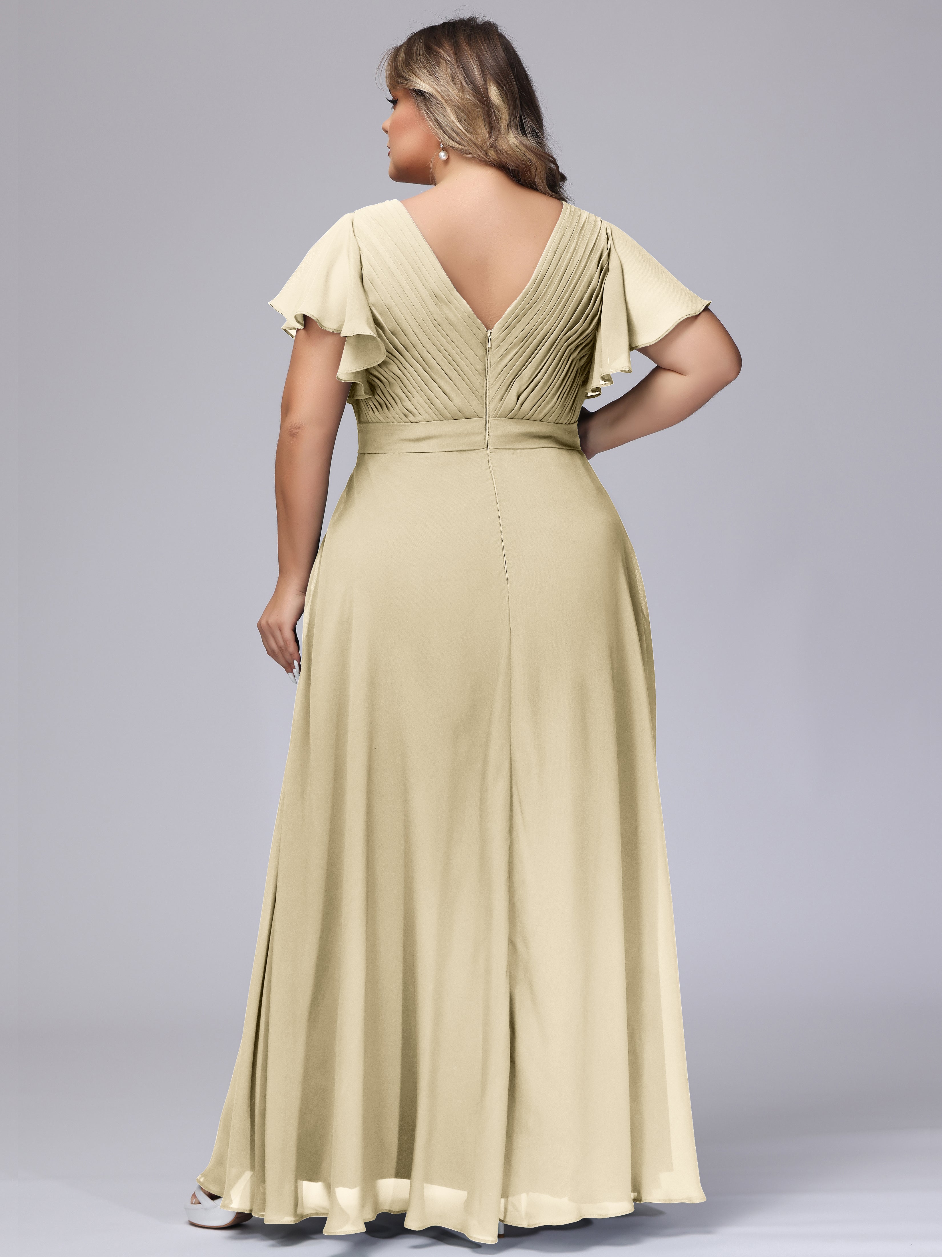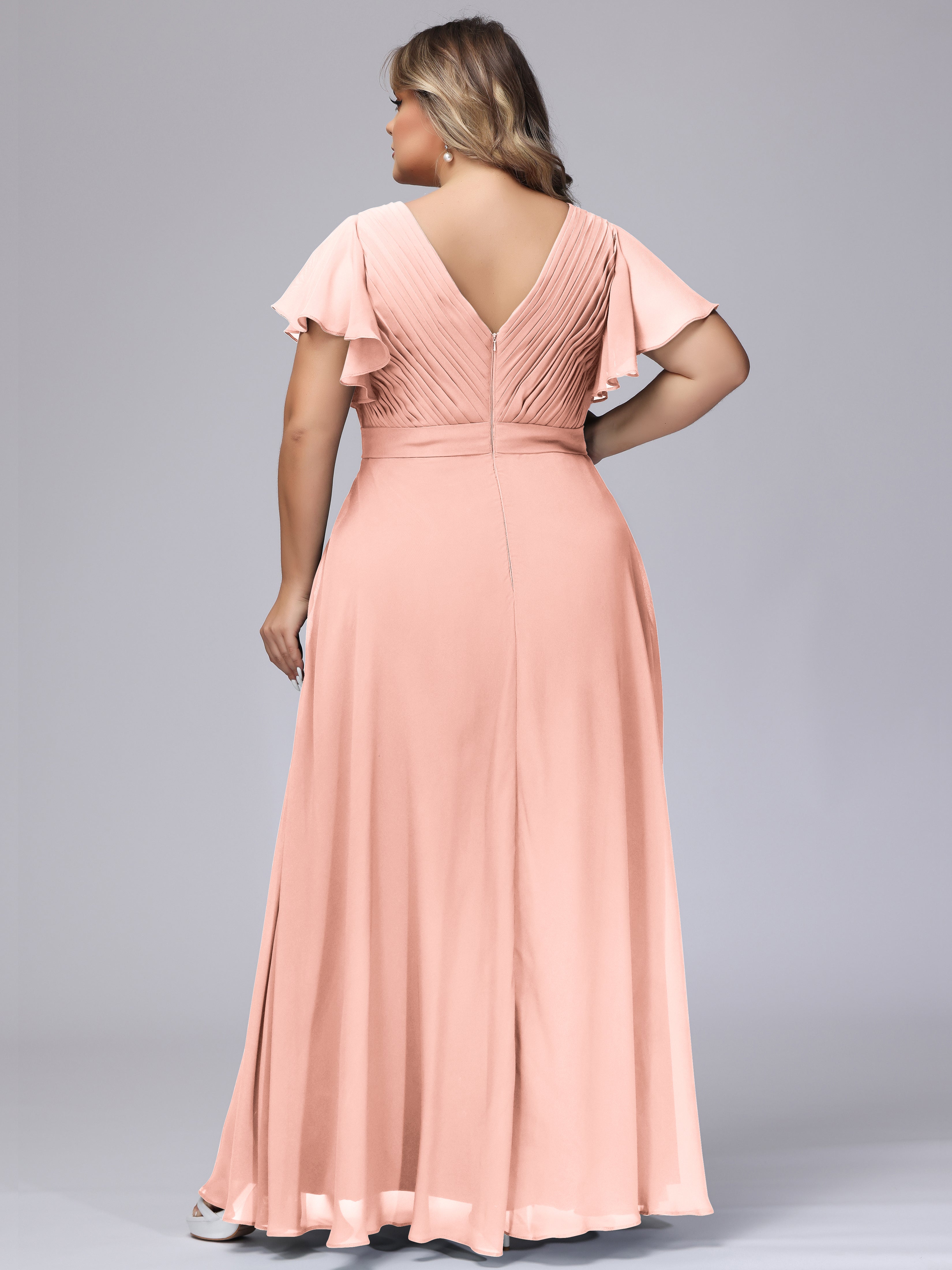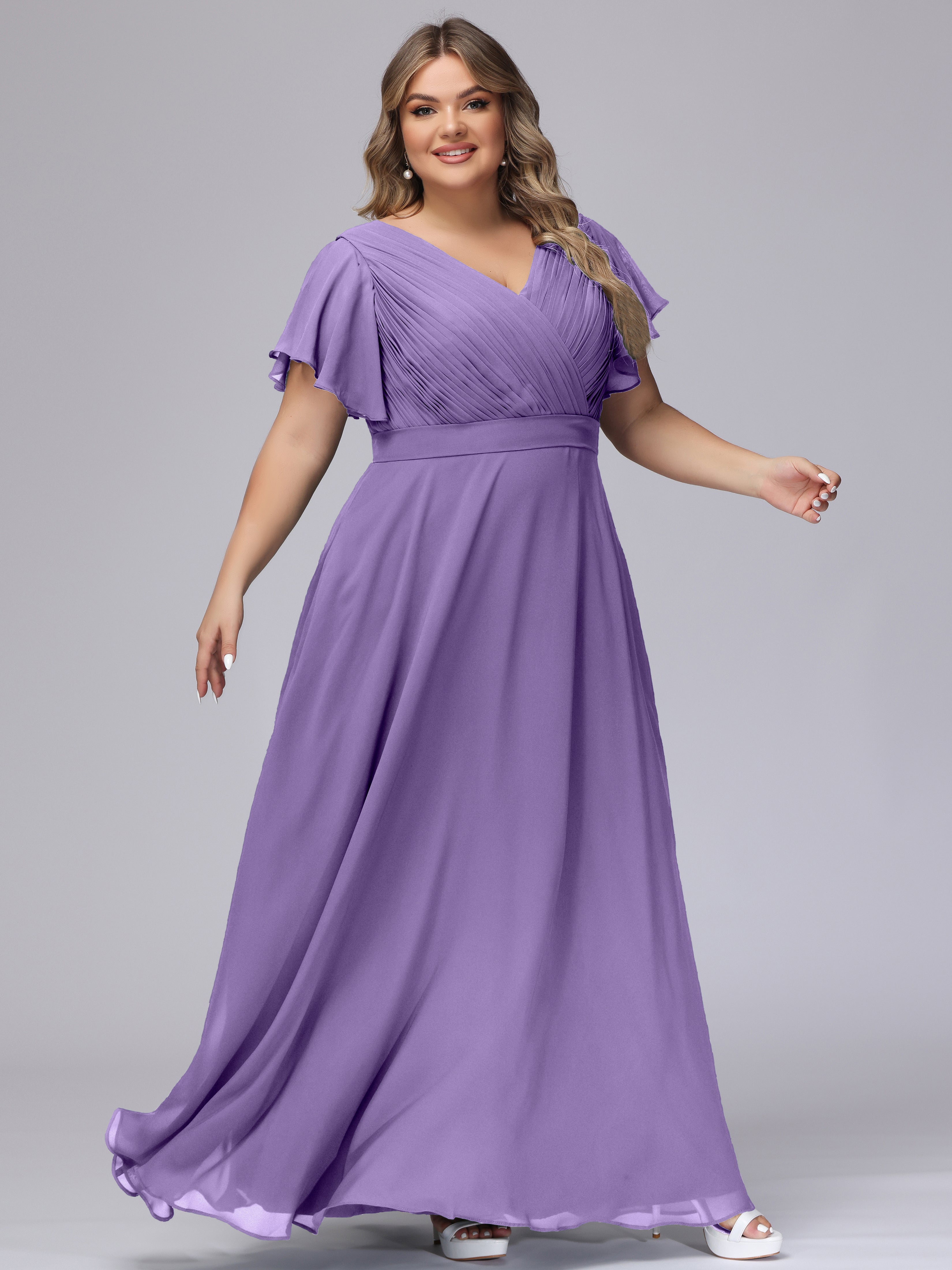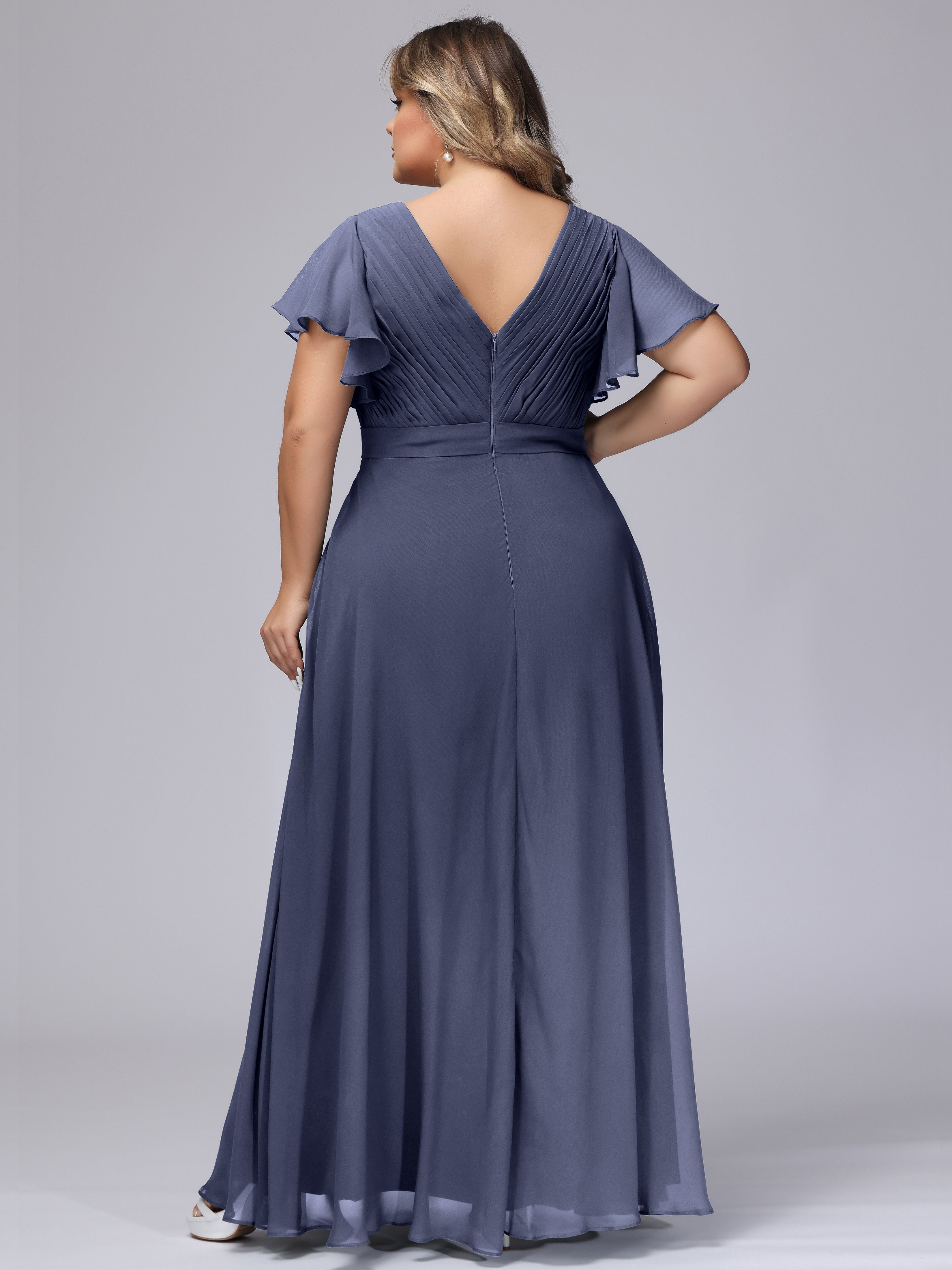 Elegant V-neck Ruffle Sleeves Empire Plus Size Bridesmaid Dress