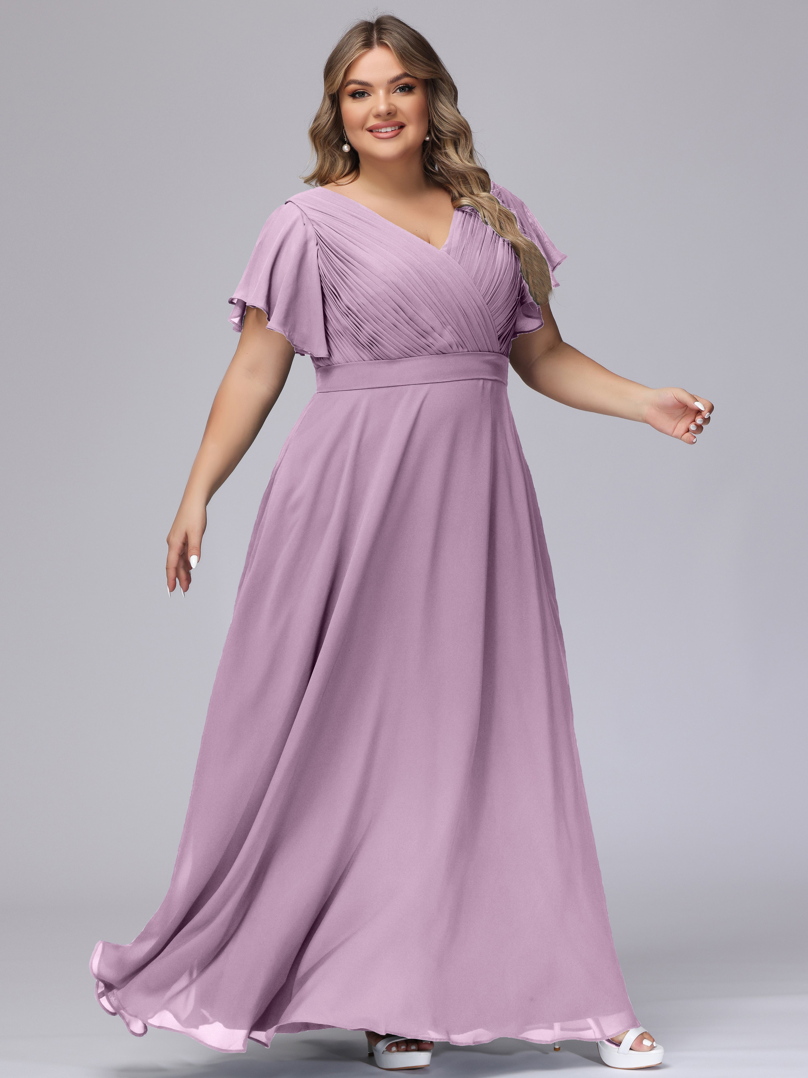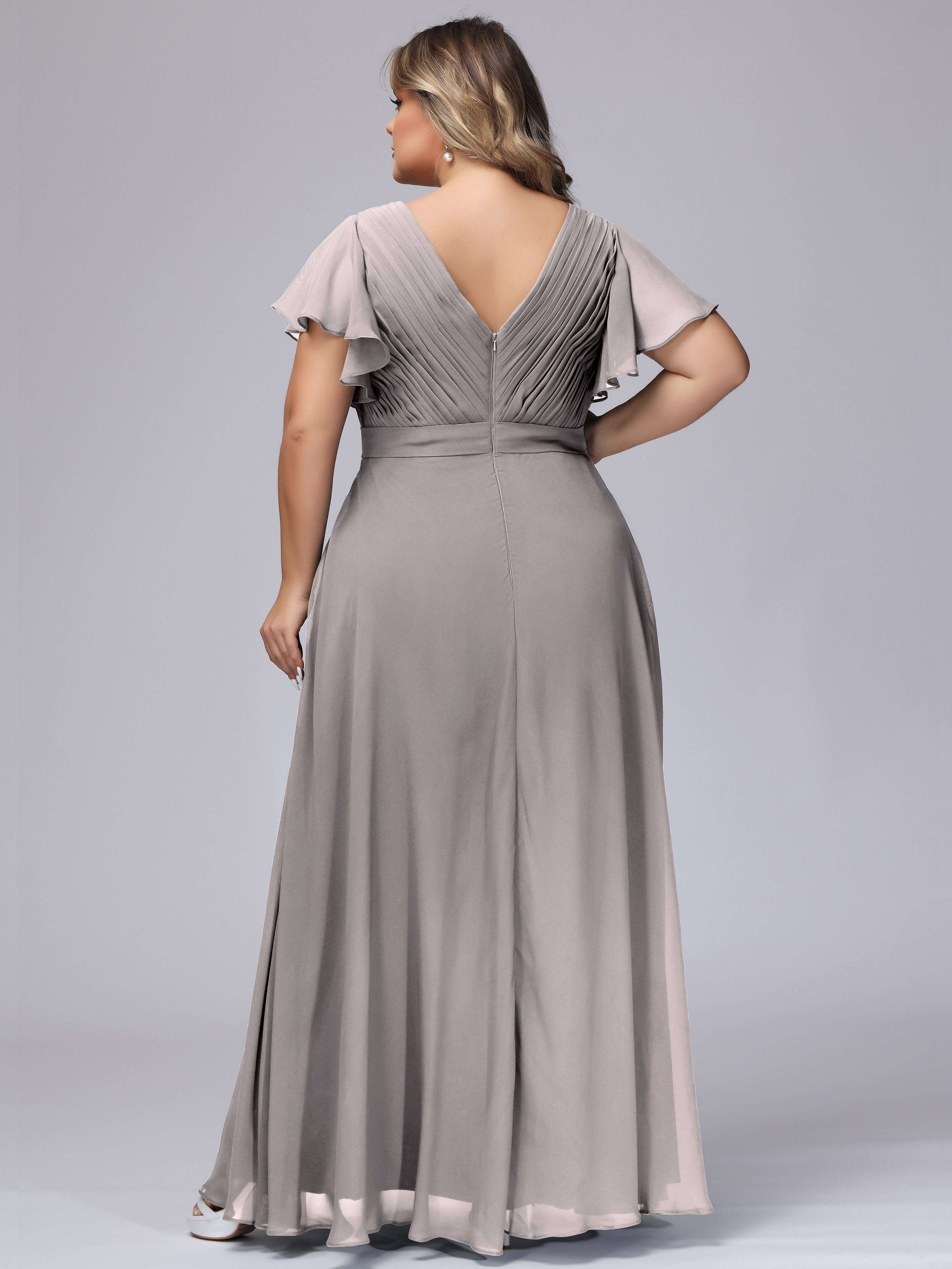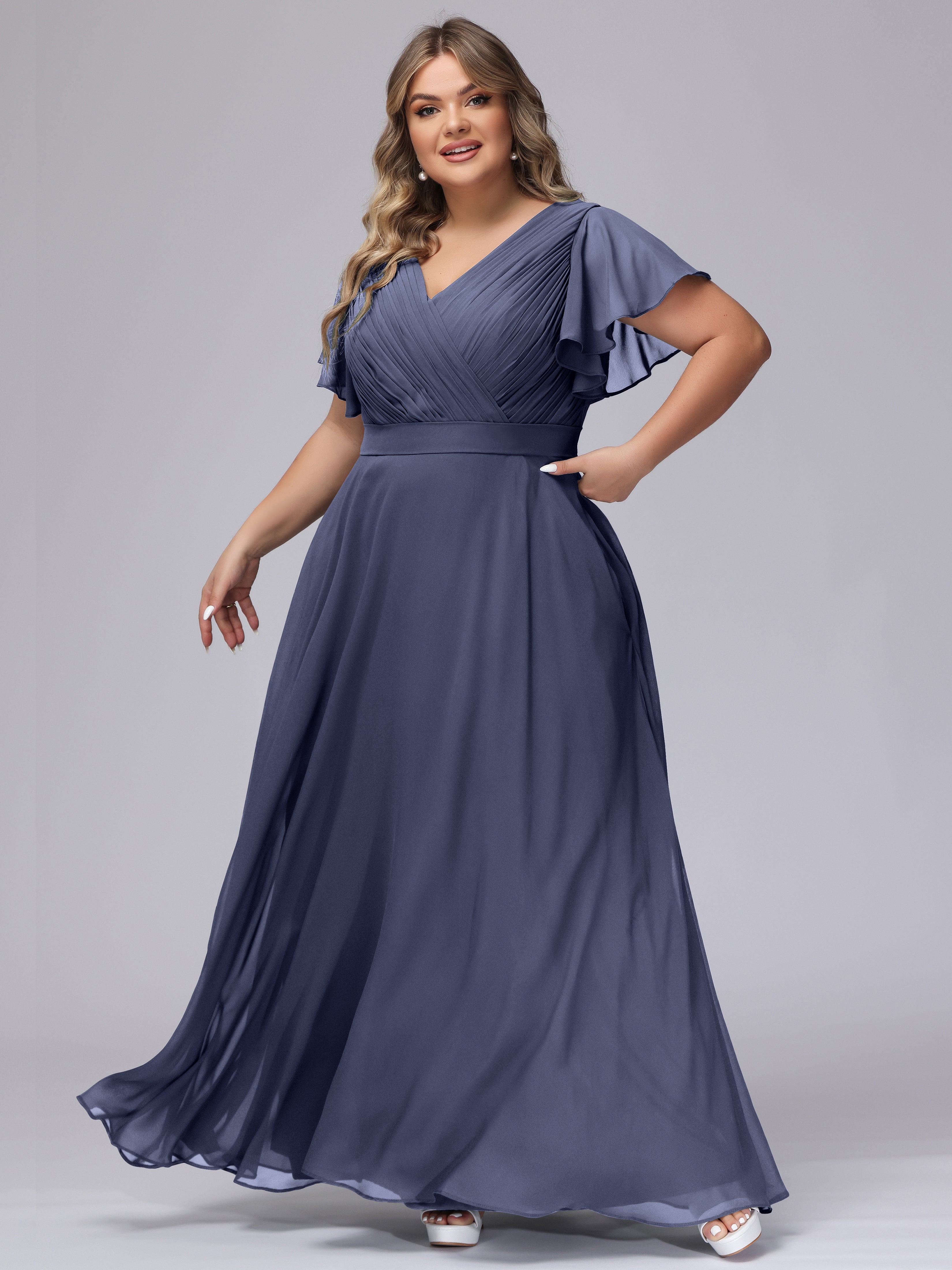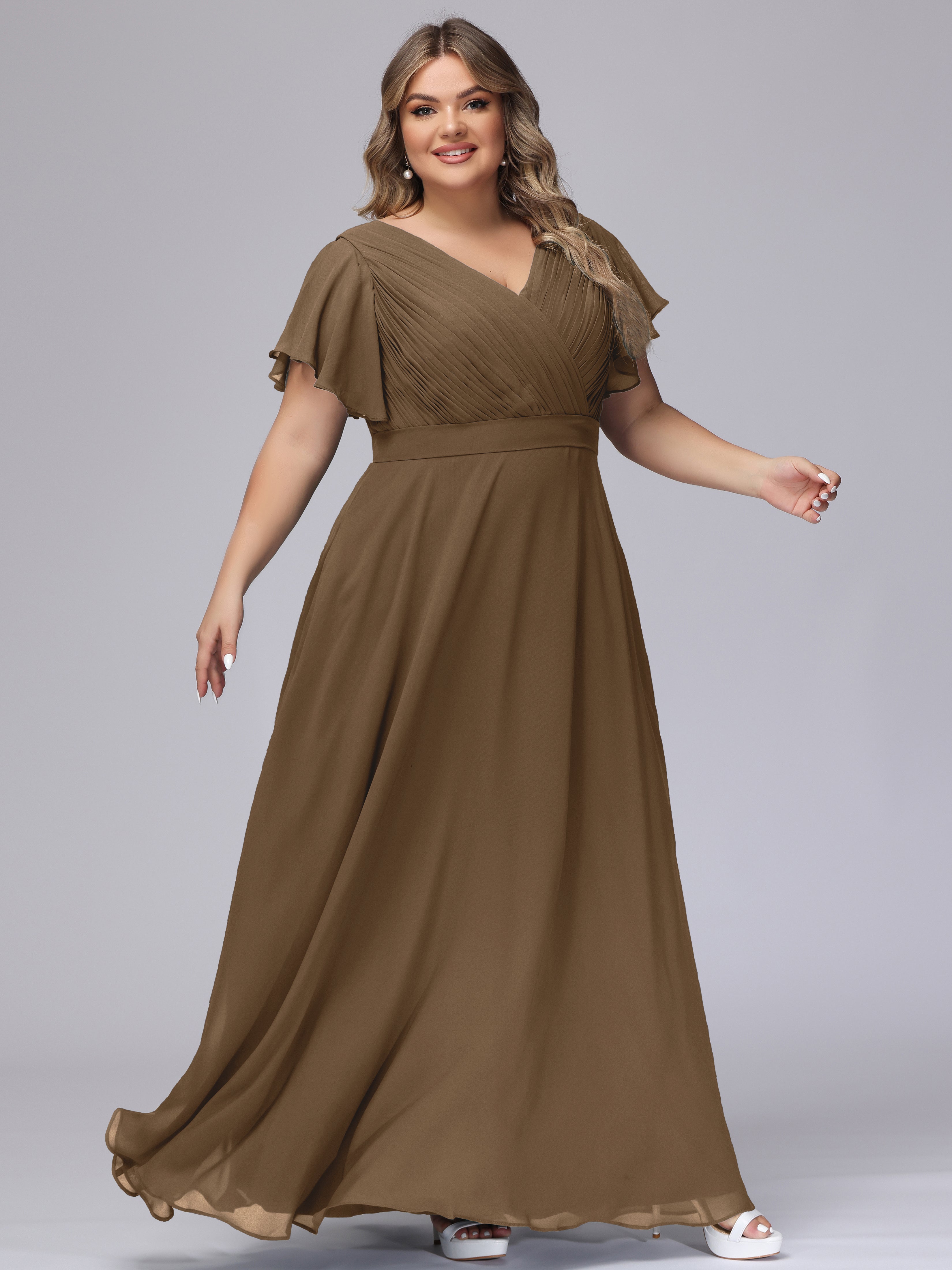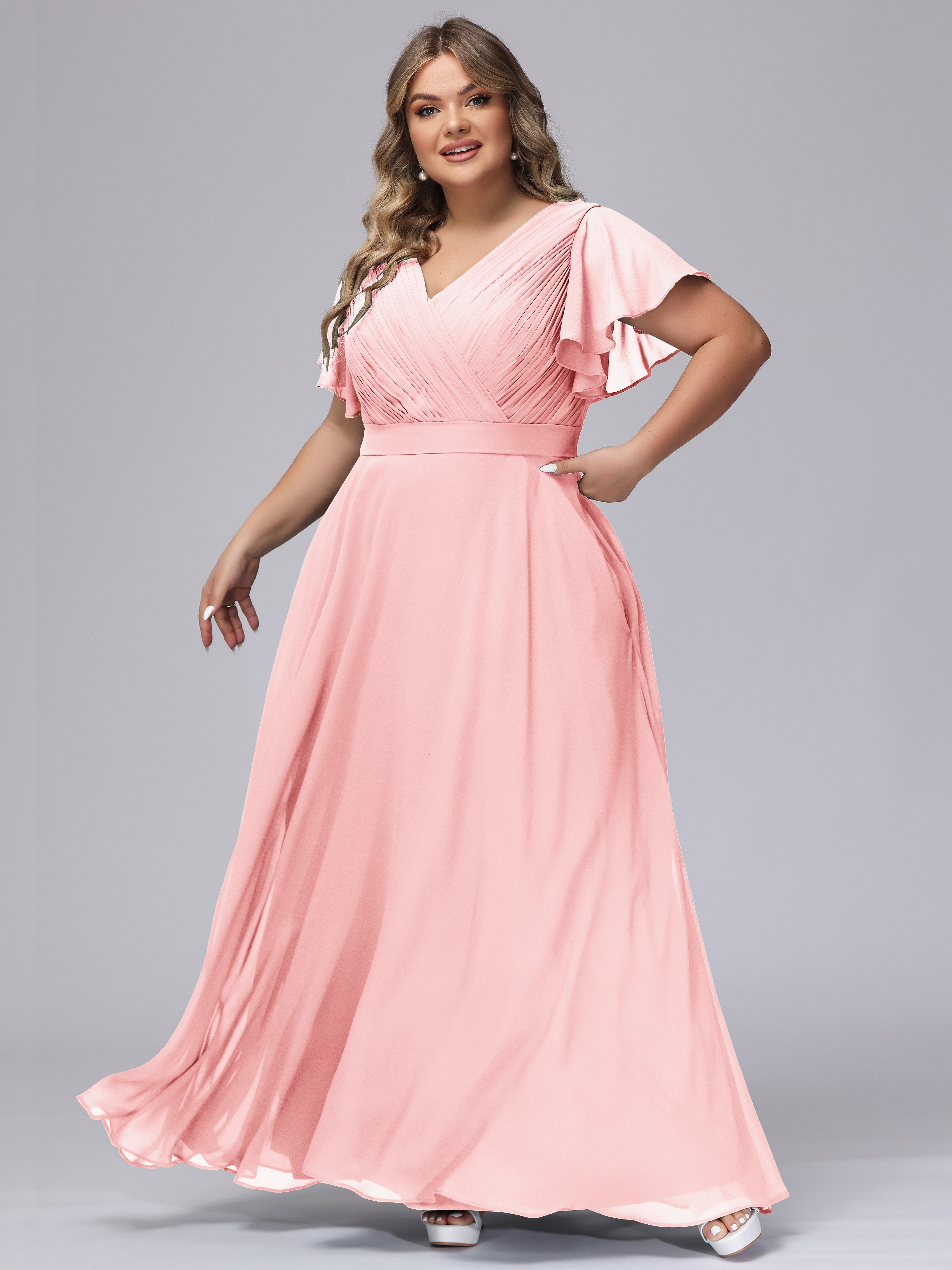Elegant V-neck Ruffle Sleeves Empire Plus Size Bridesmaid Dress
