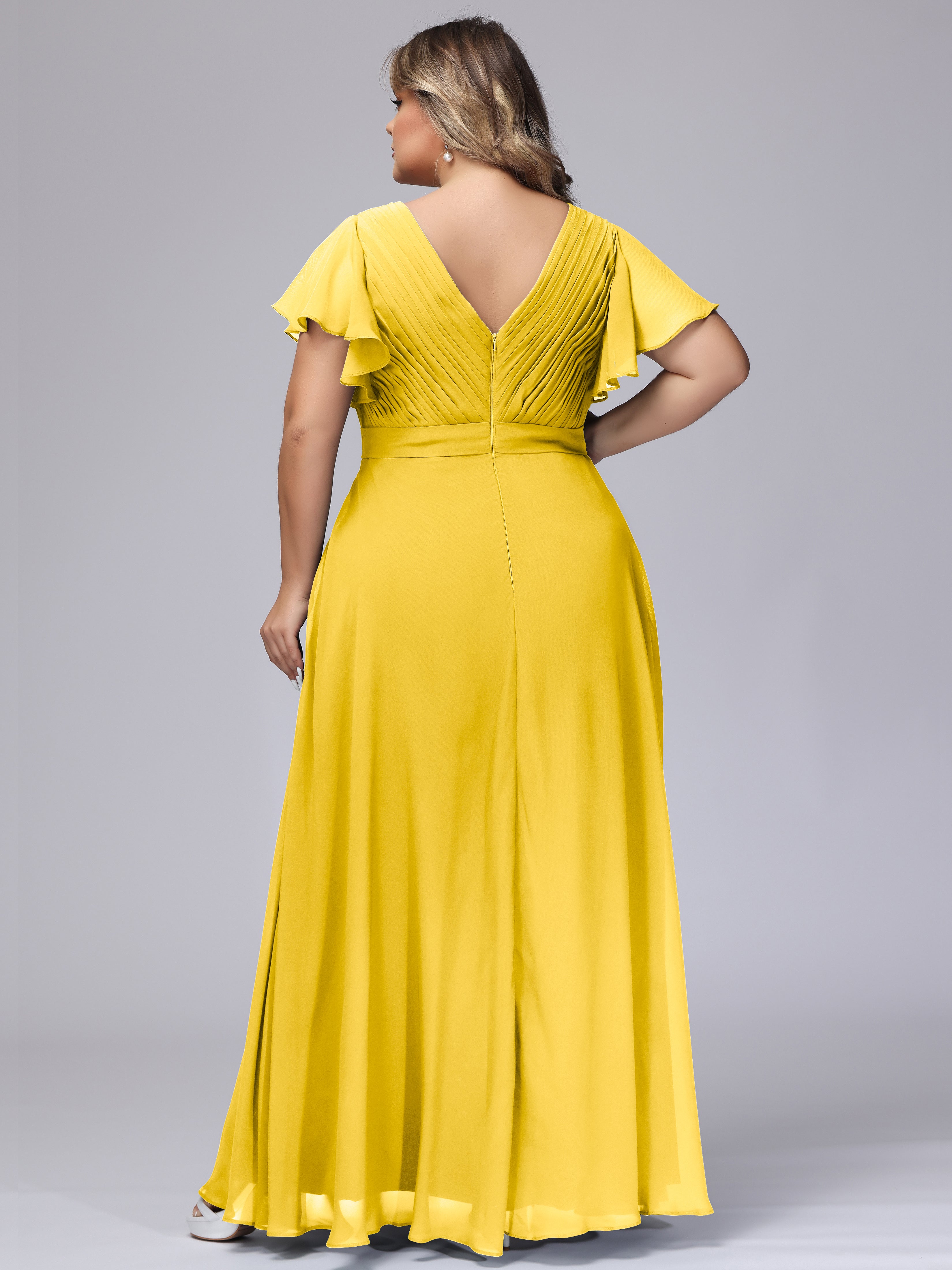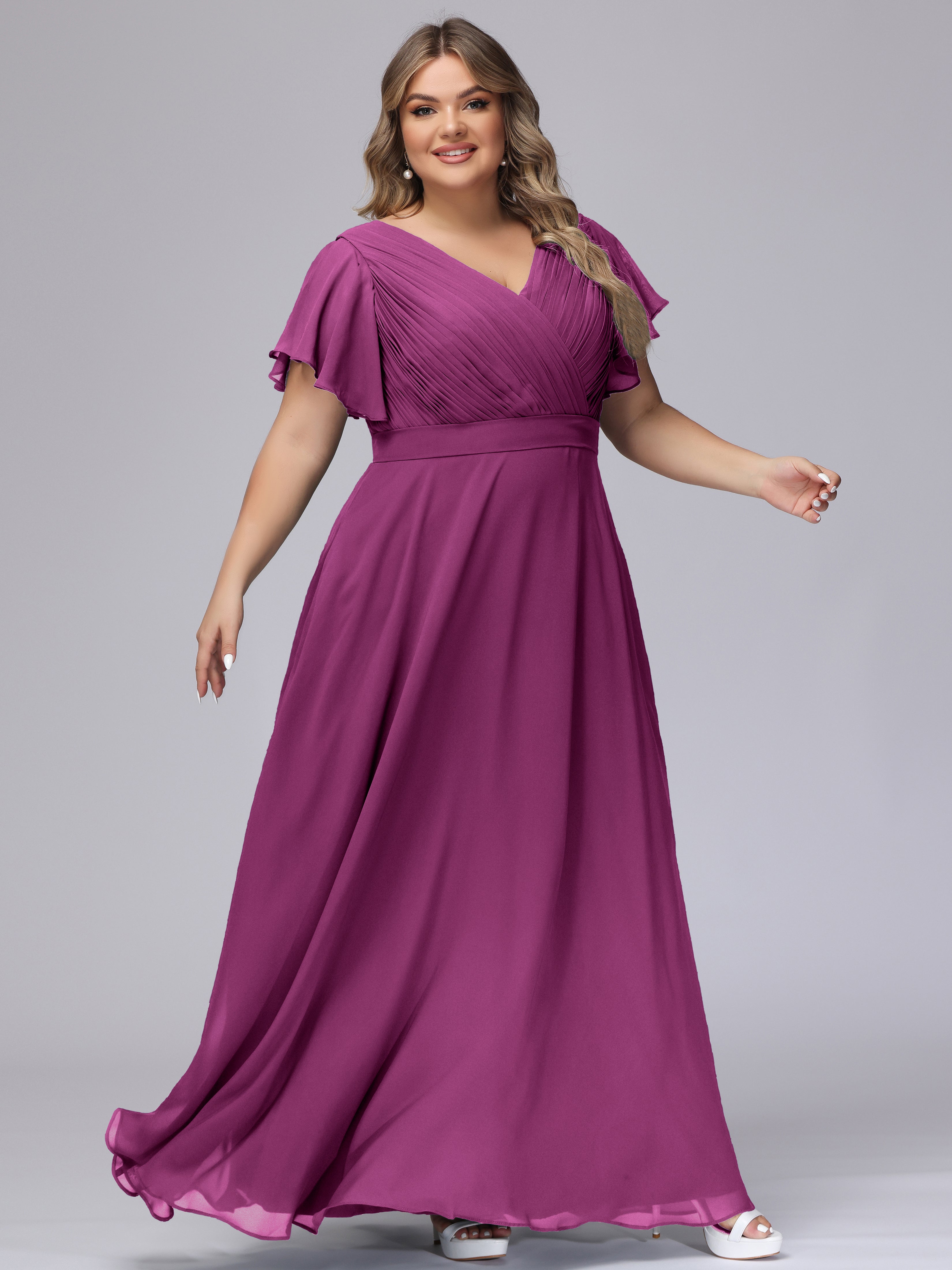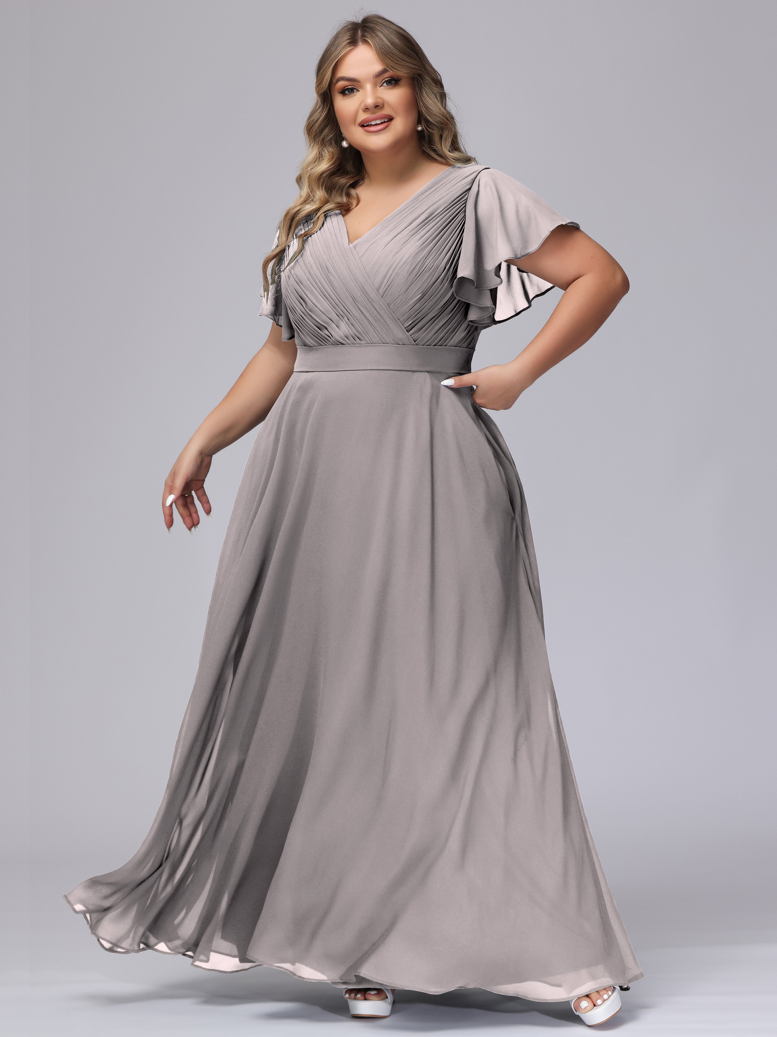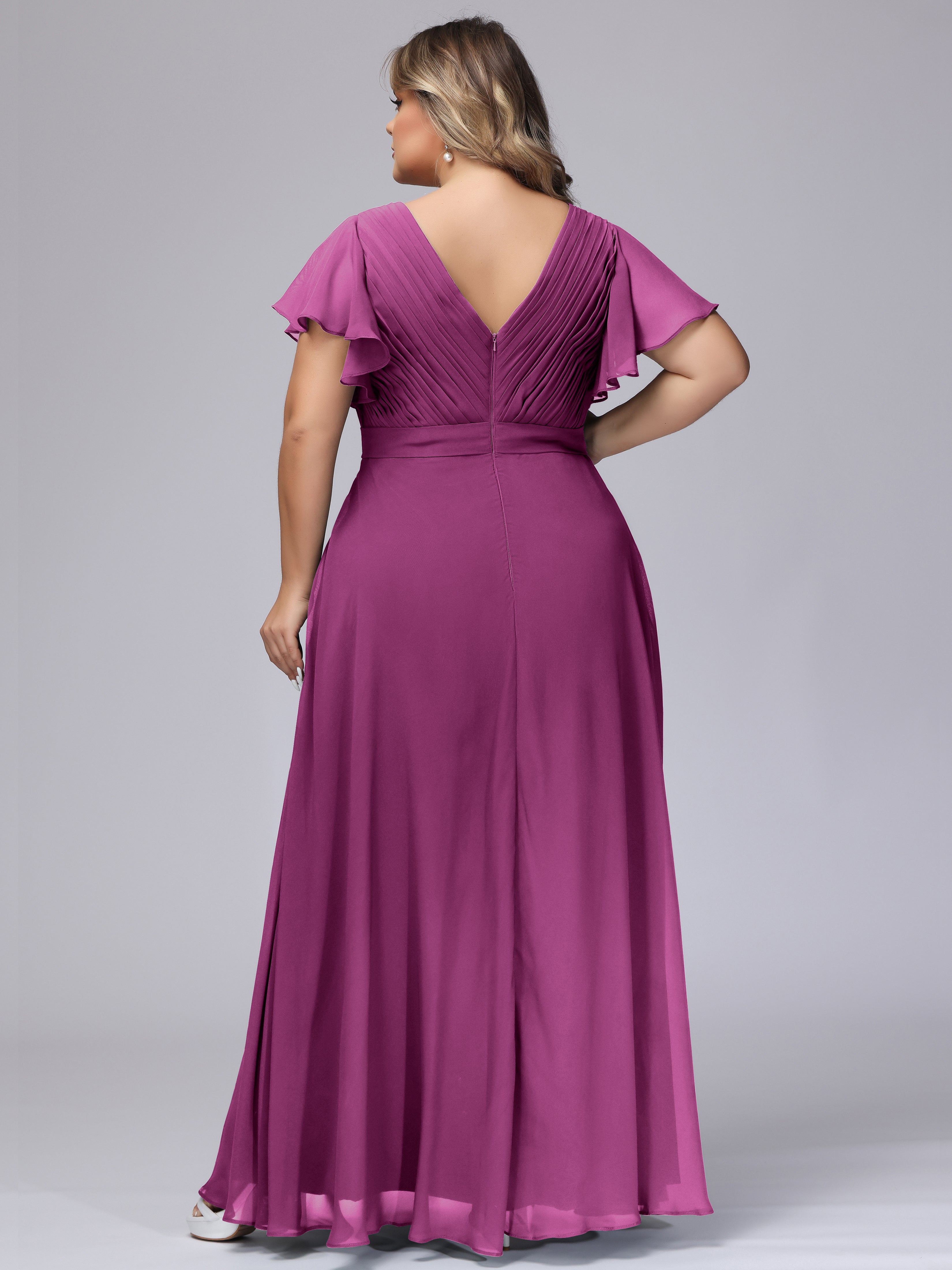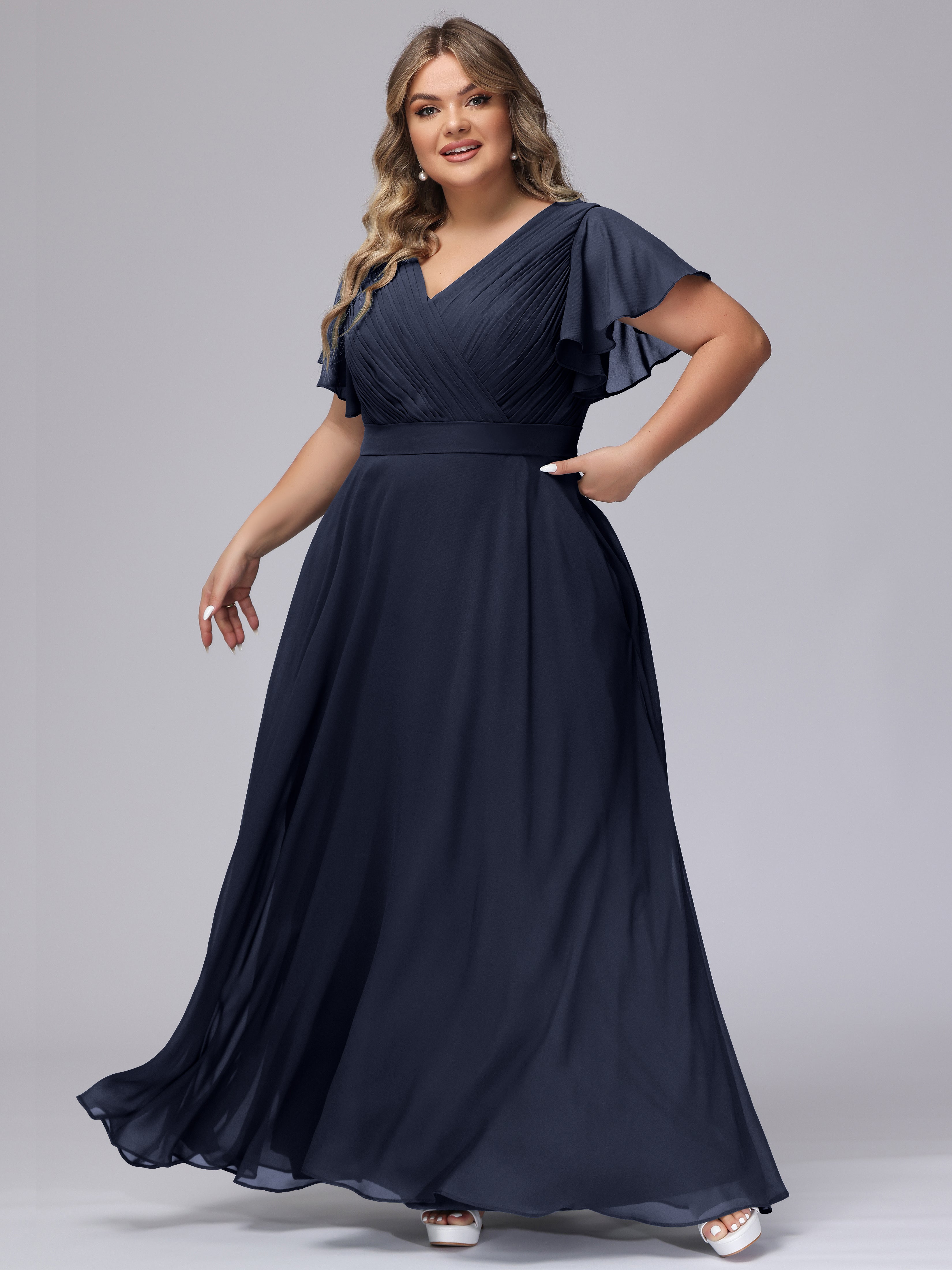 Elegant V-neck Ruffle Sleeves Empire Plus Size Bridesmaid Dress