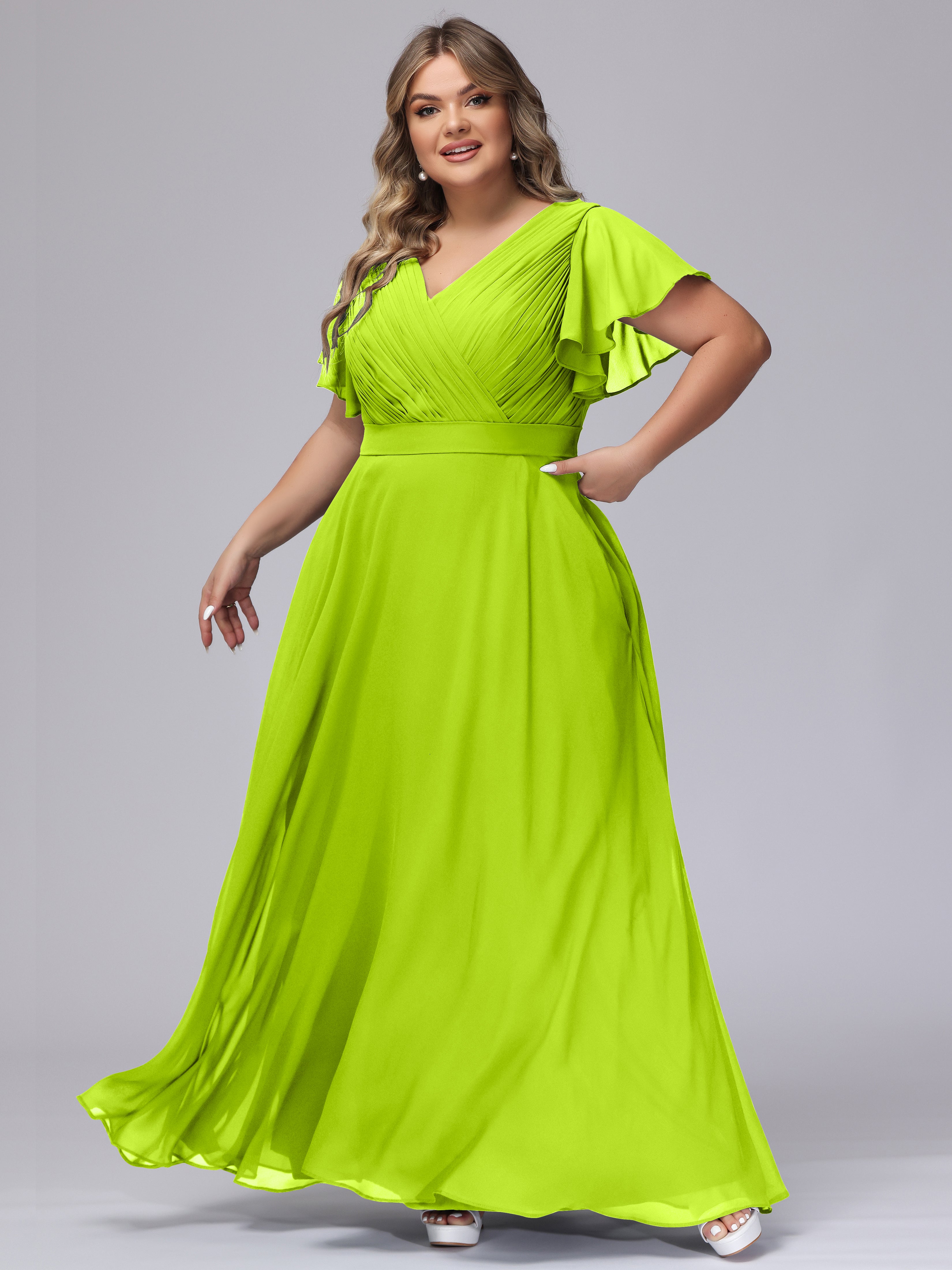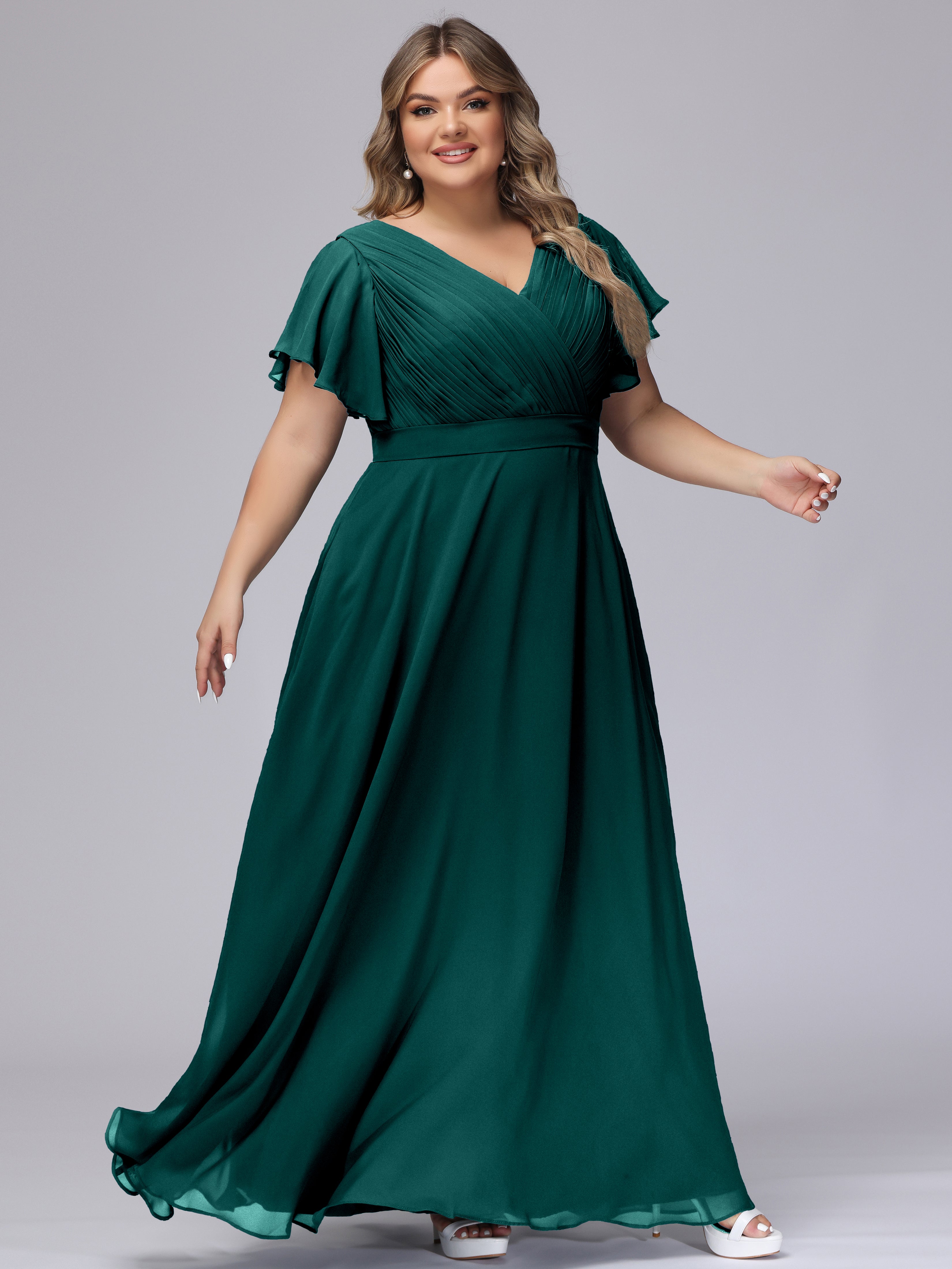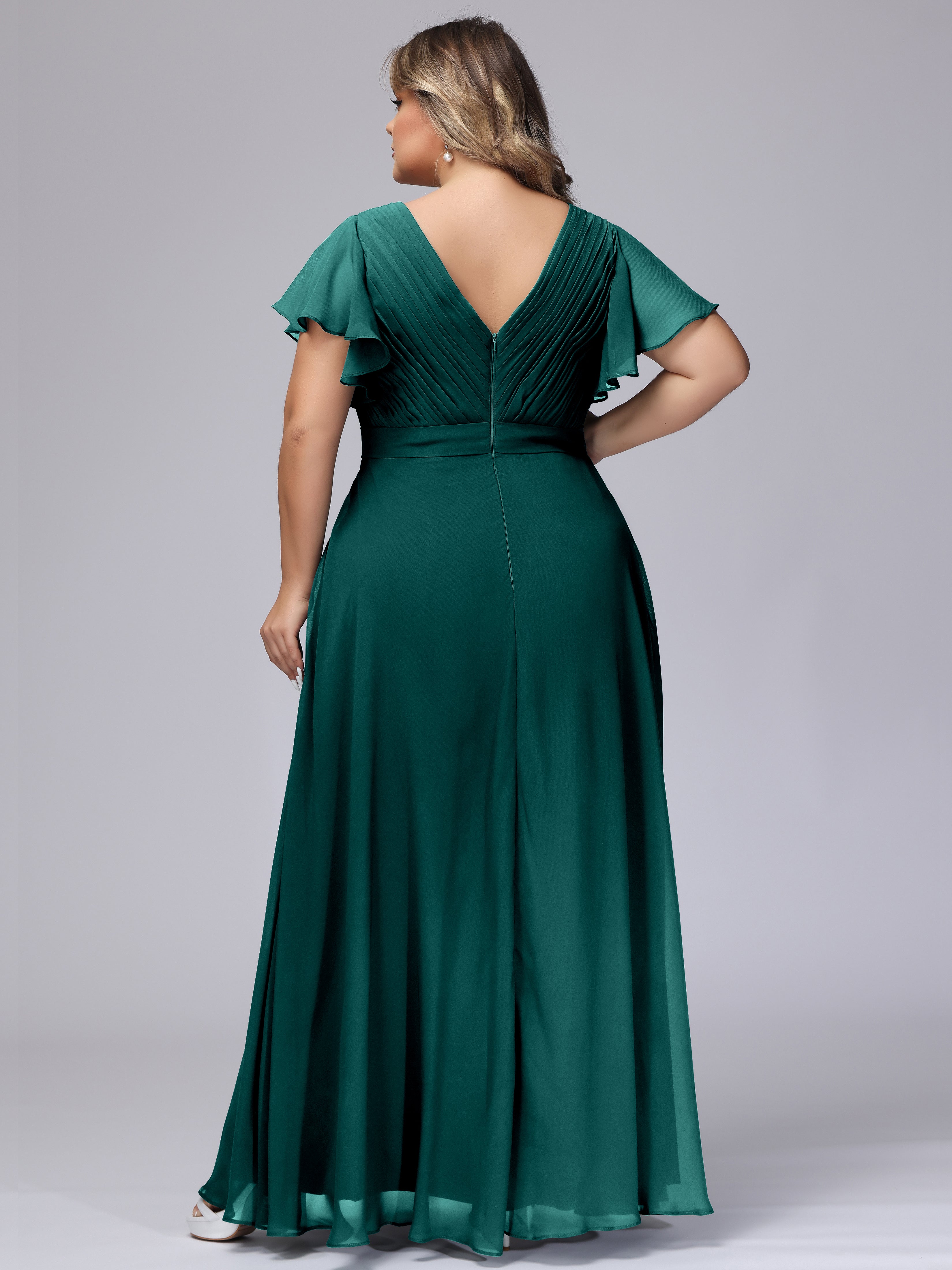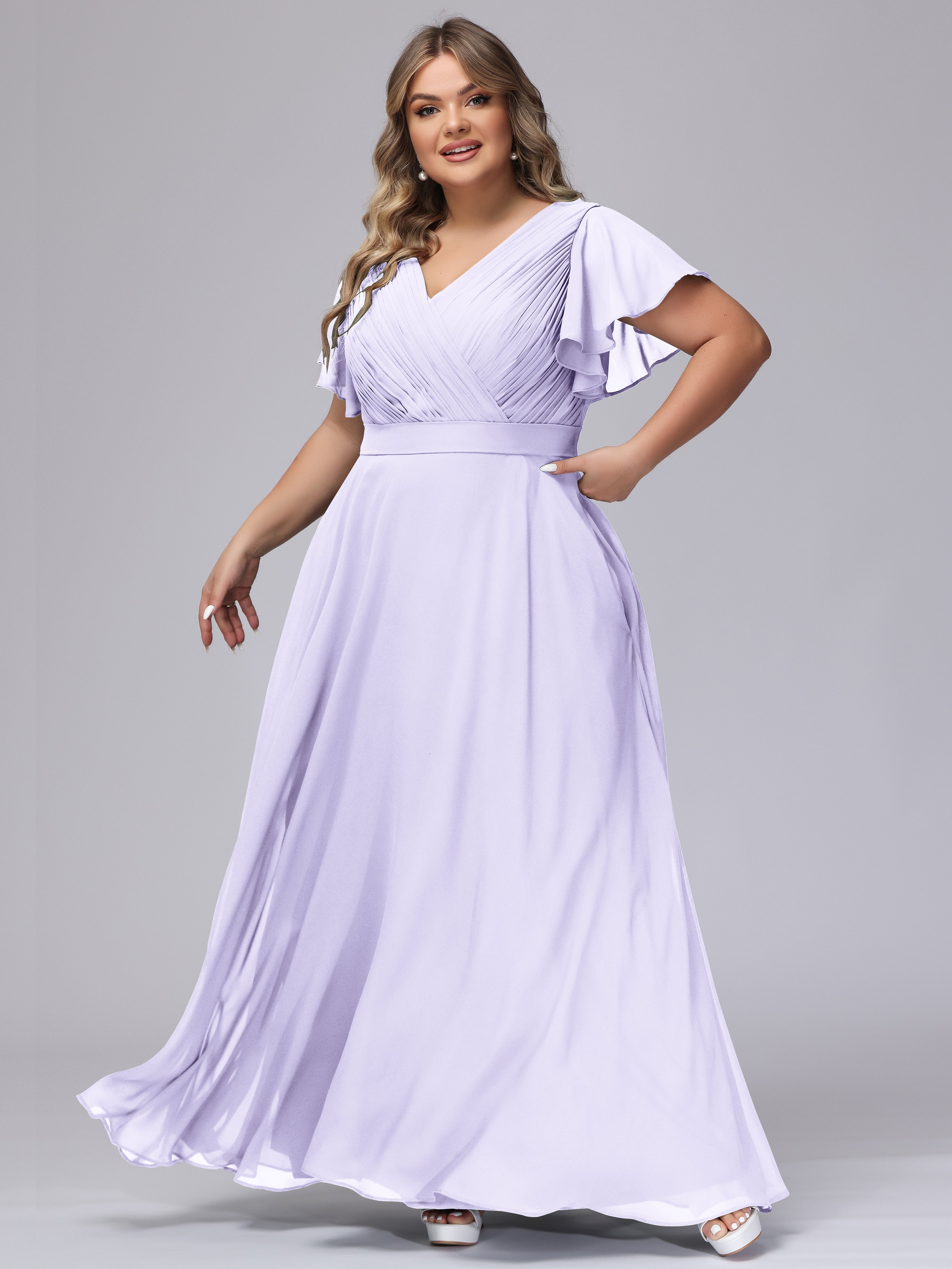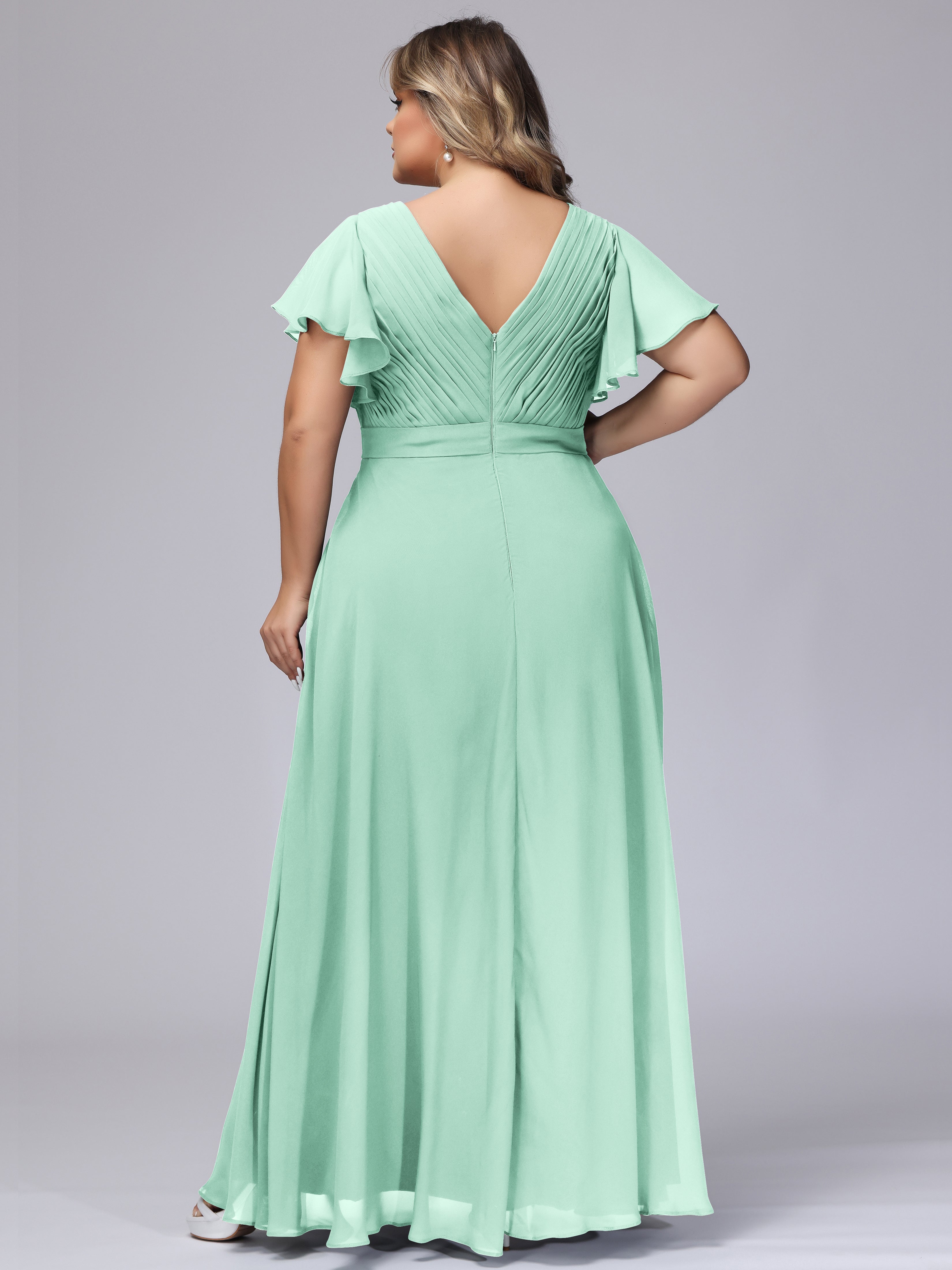 Elegant V-neck Ruffle Sleeves Empire Plus Size Bridesmaid Dress