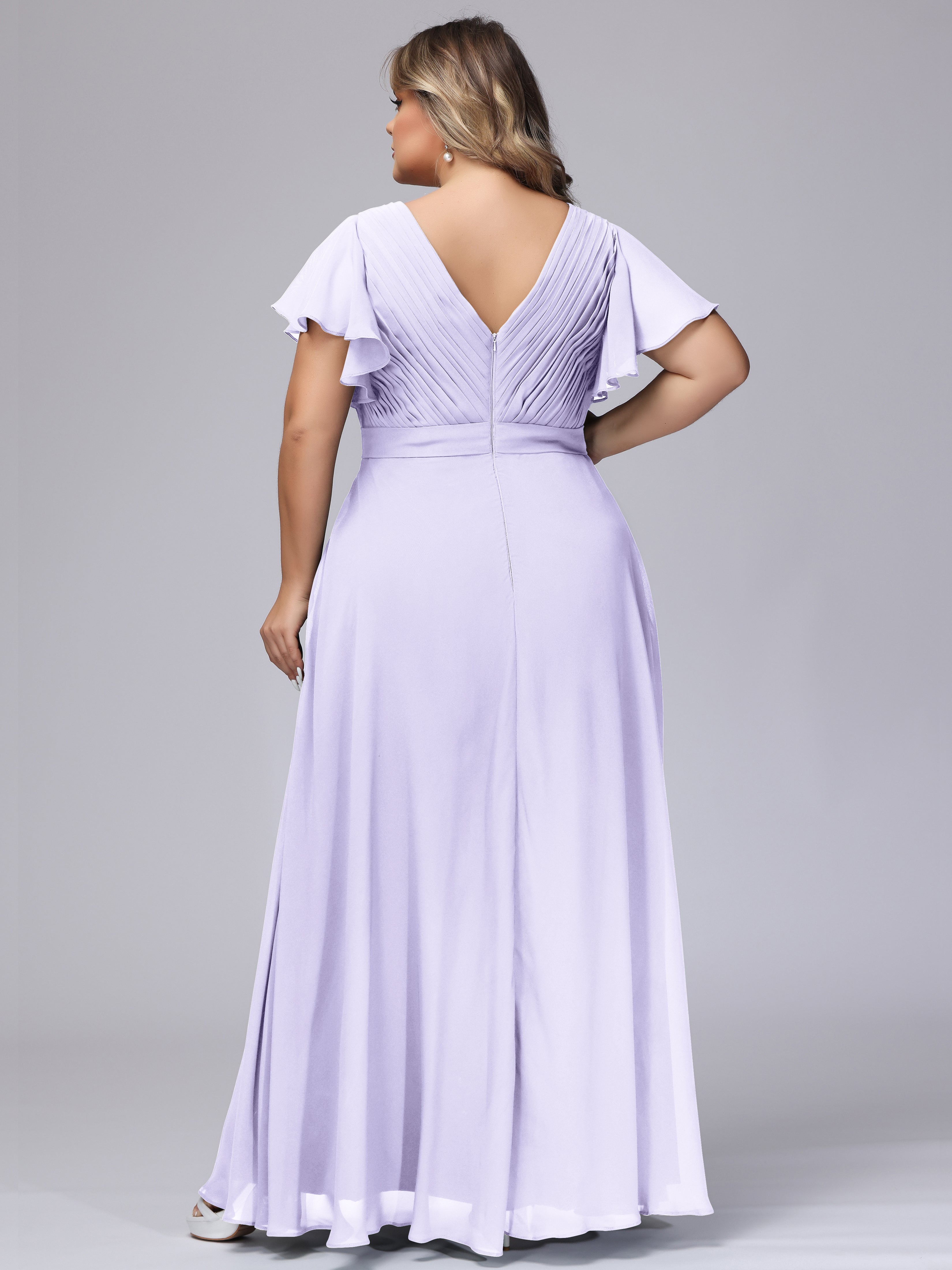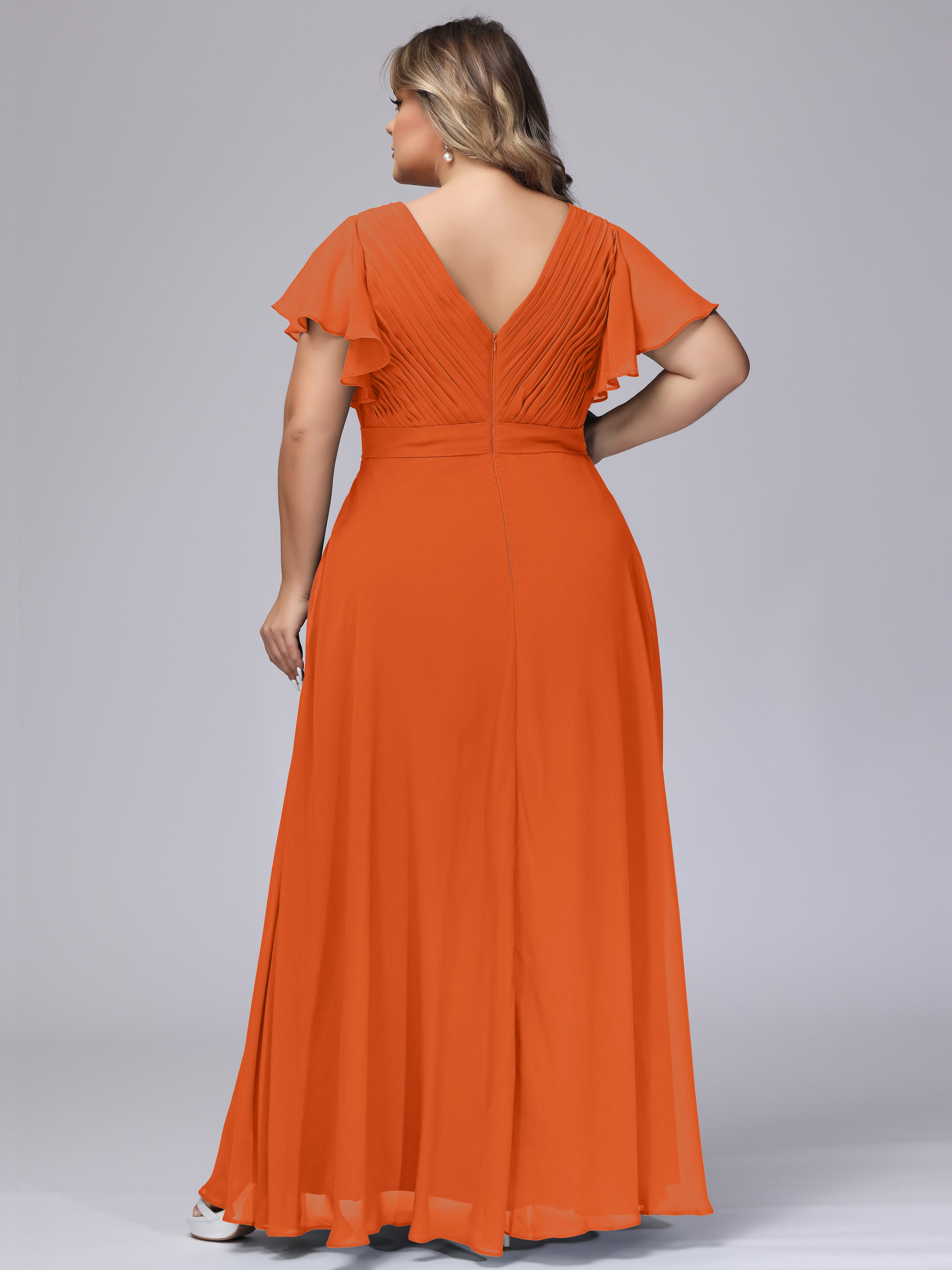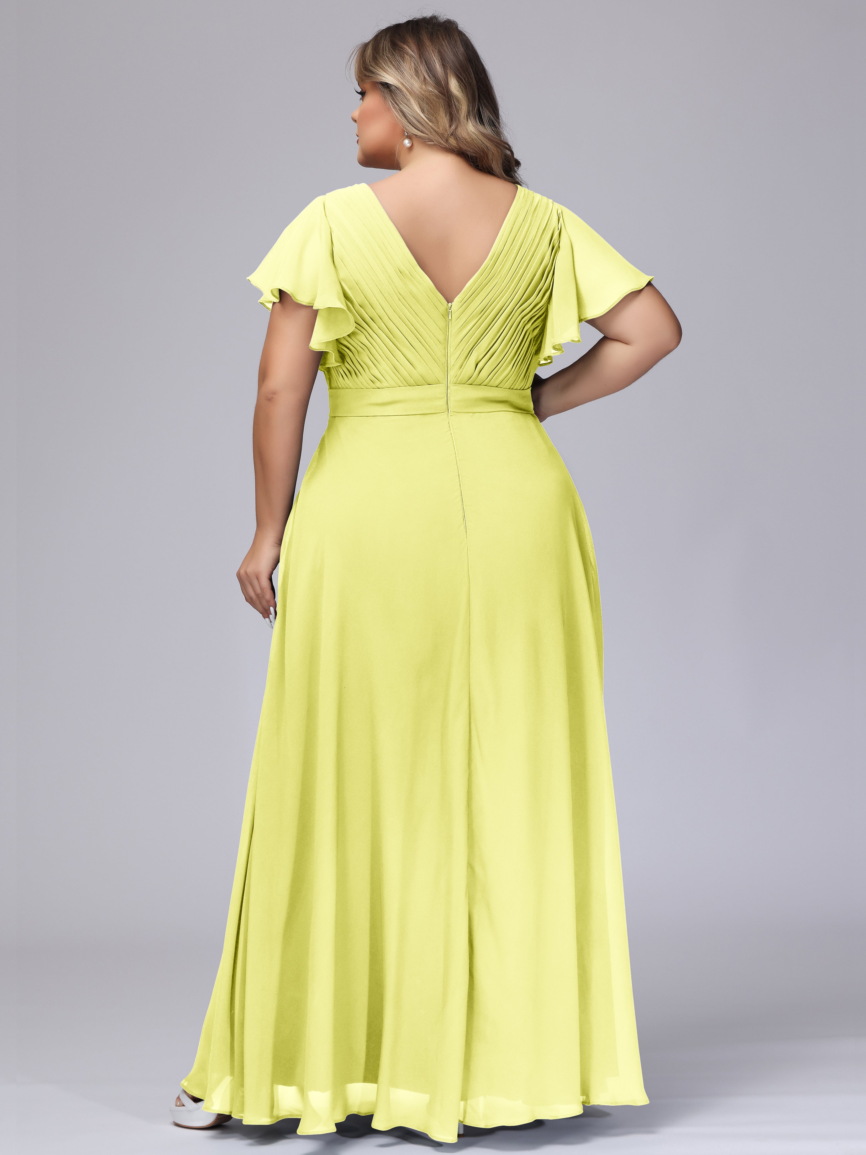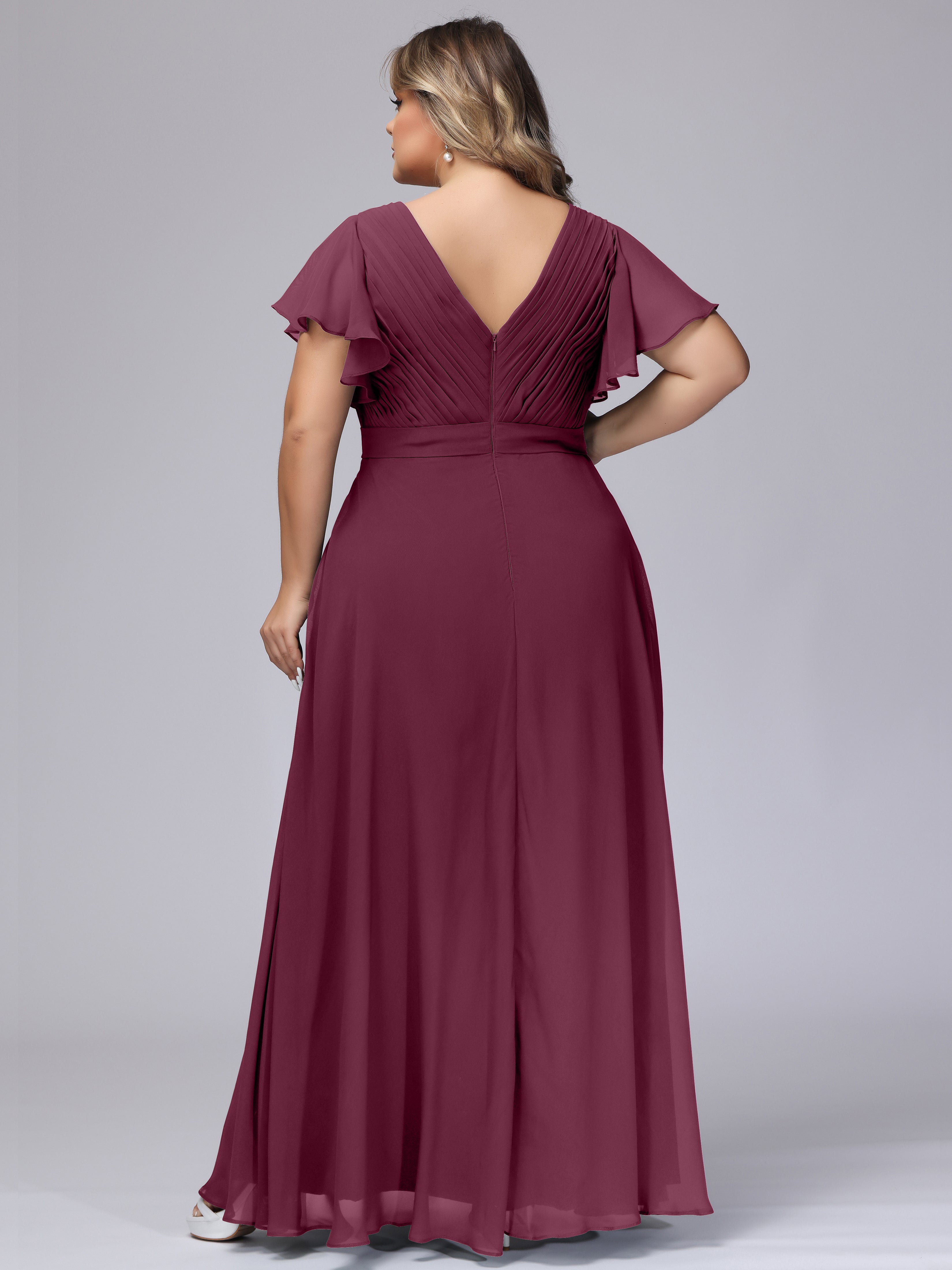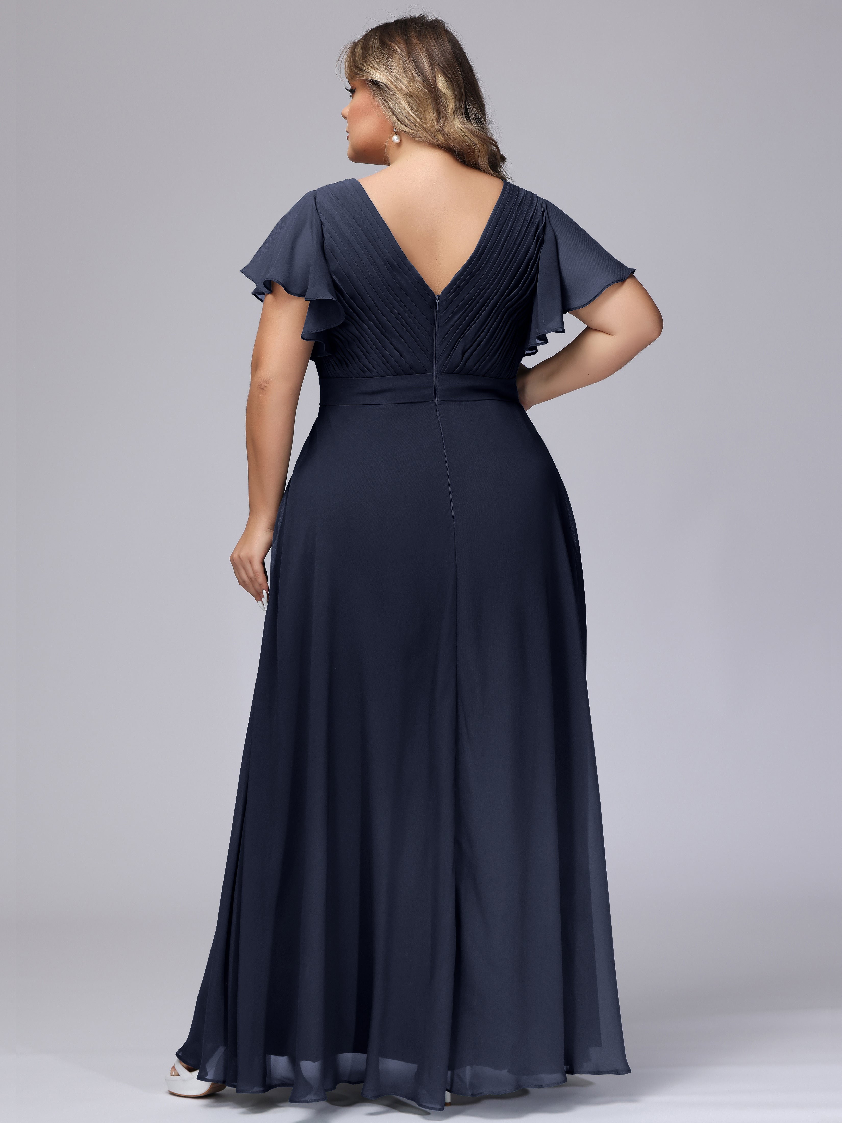 Elegant V-neck Ruffle Sleeves Empire Plus Size Bridesmaid Dress