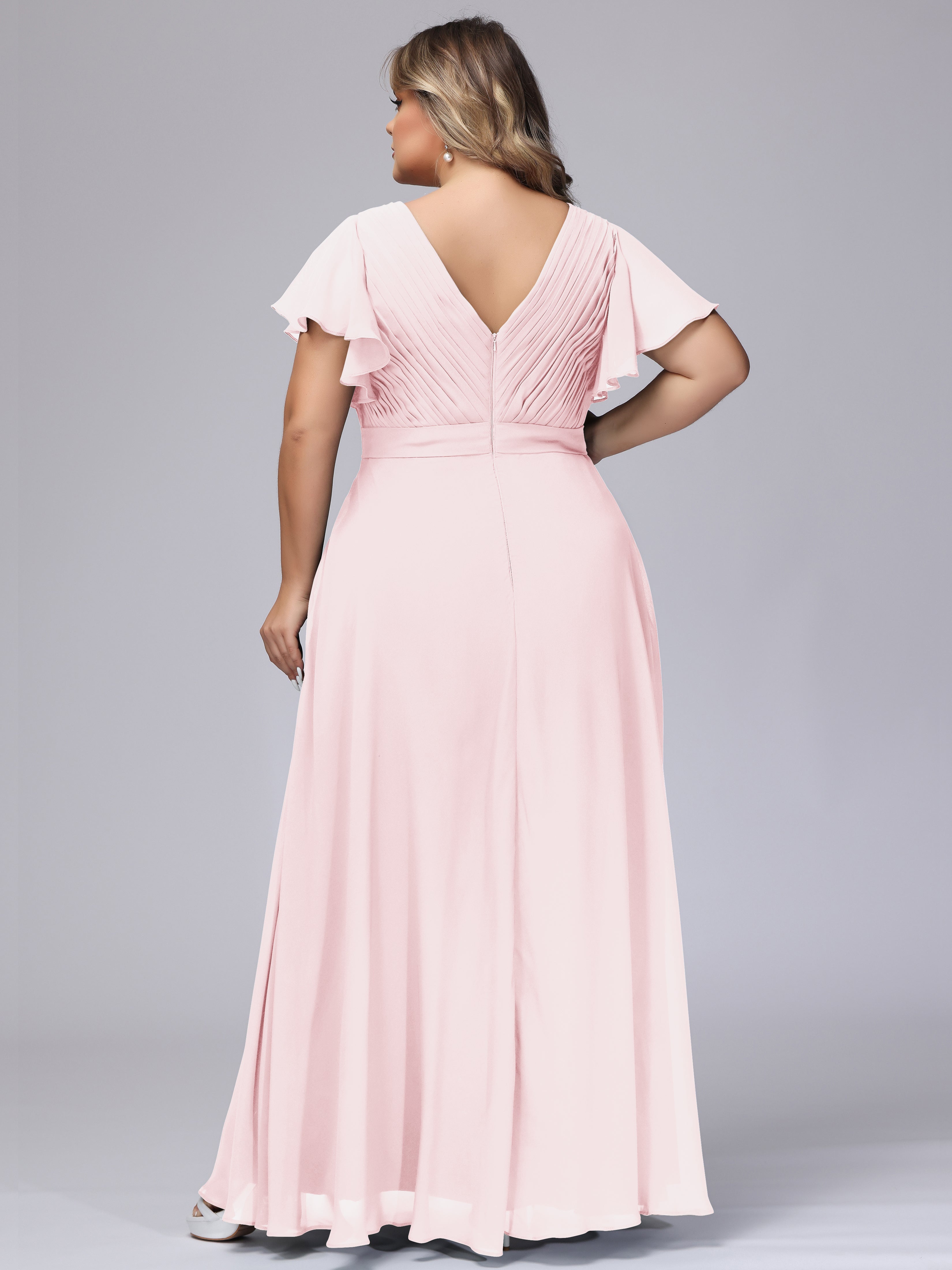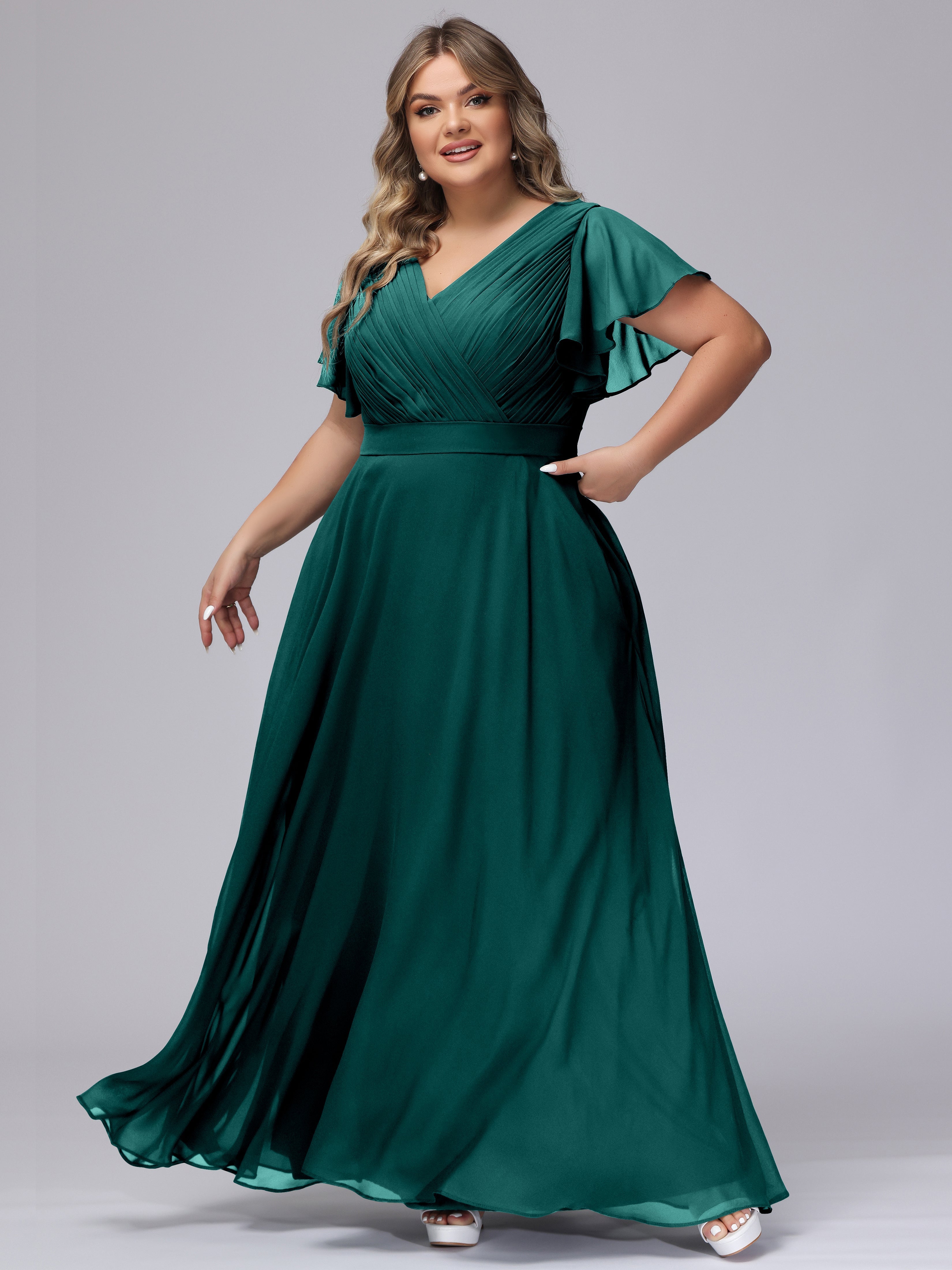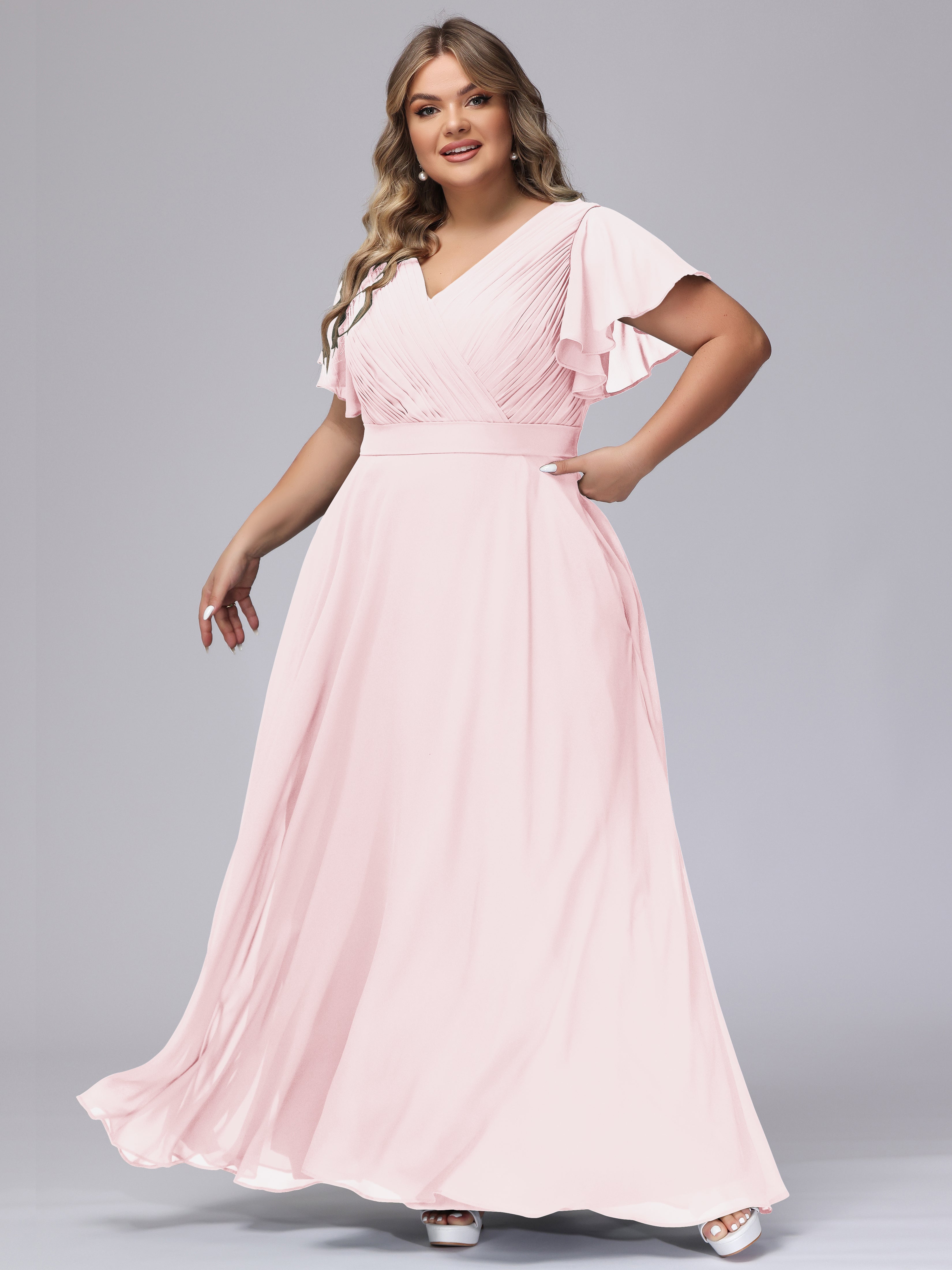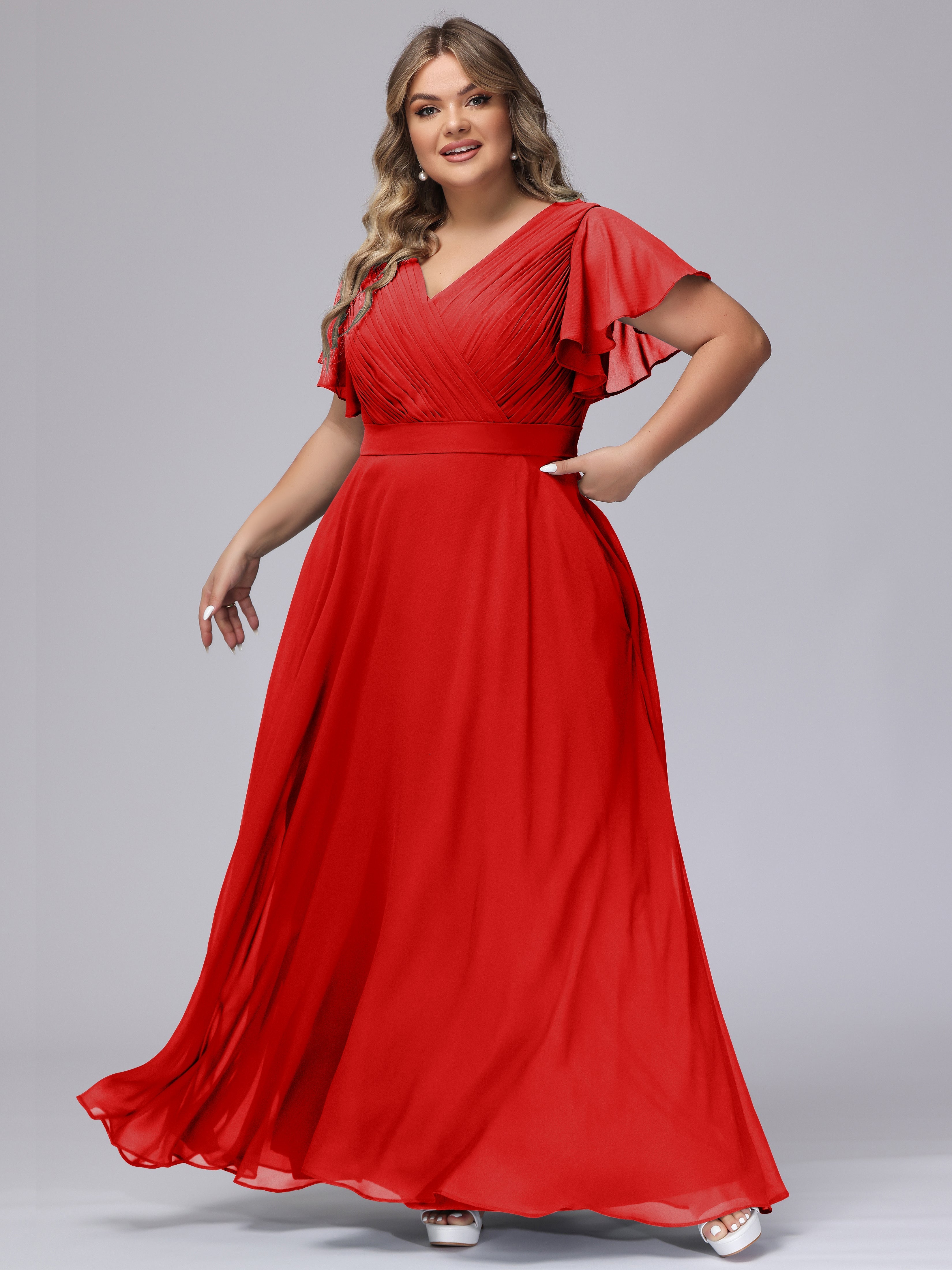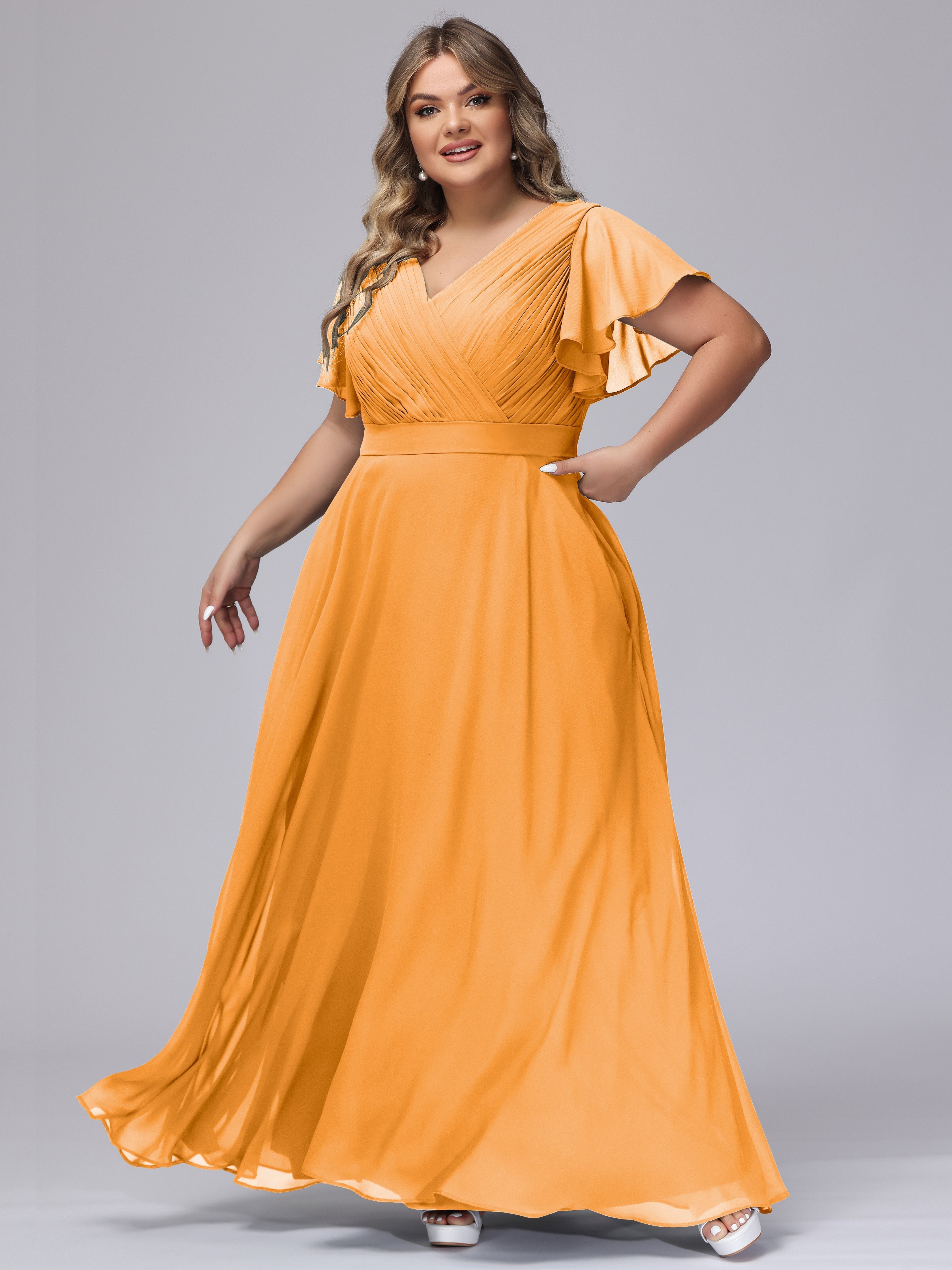 Elegant V-neck Ruffle Sleeves Empire Plus Size Bridesmaid Dress