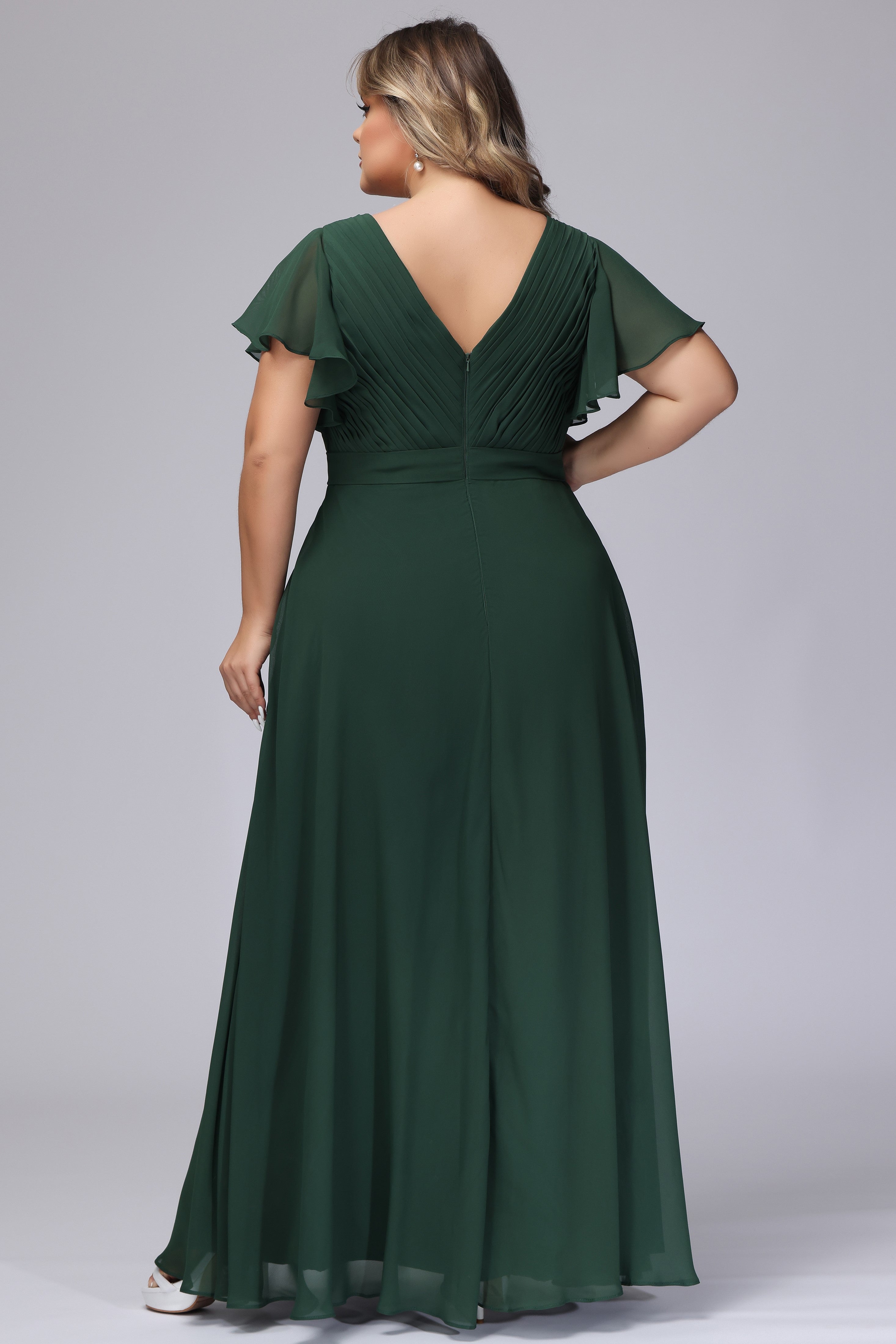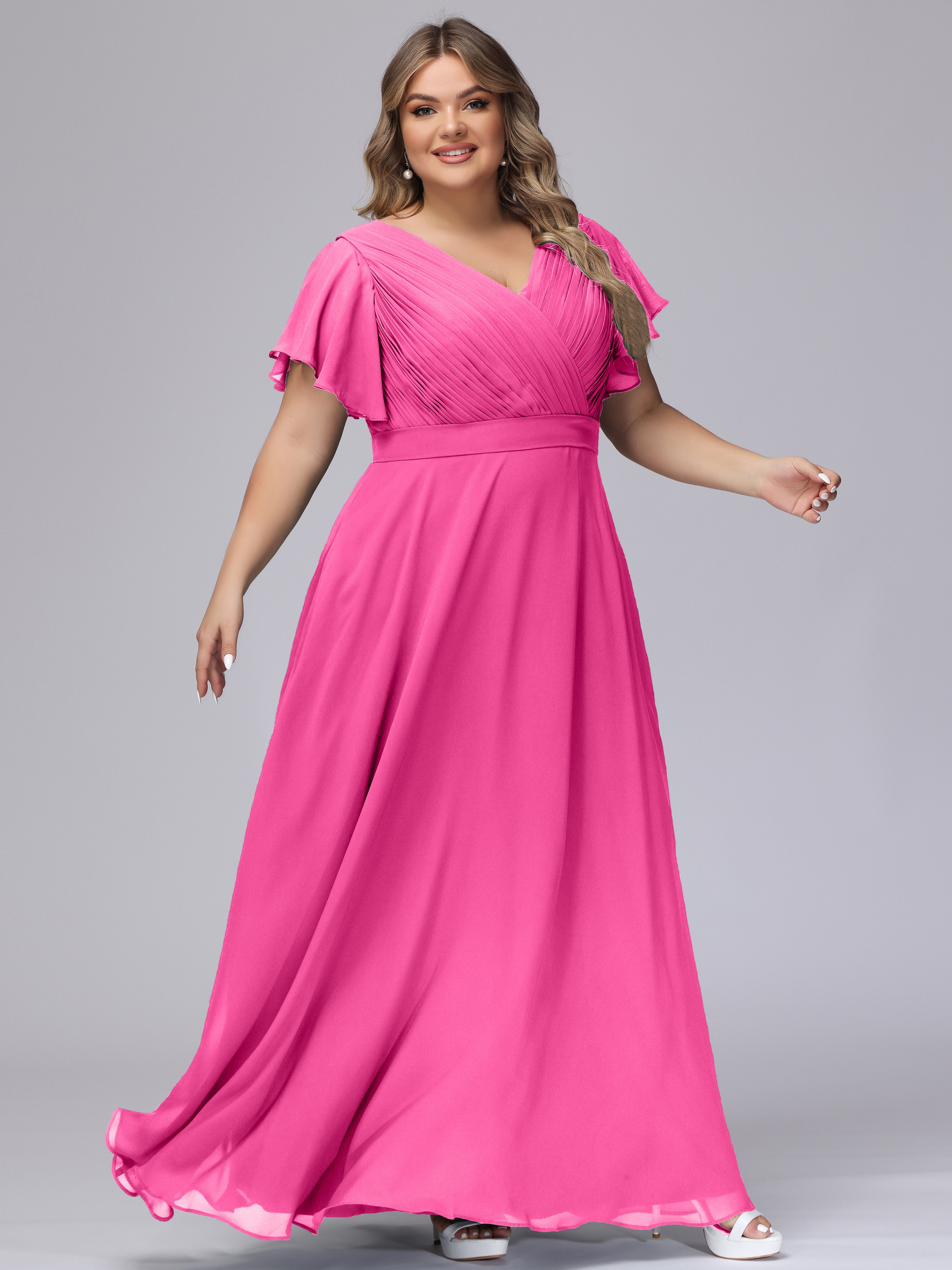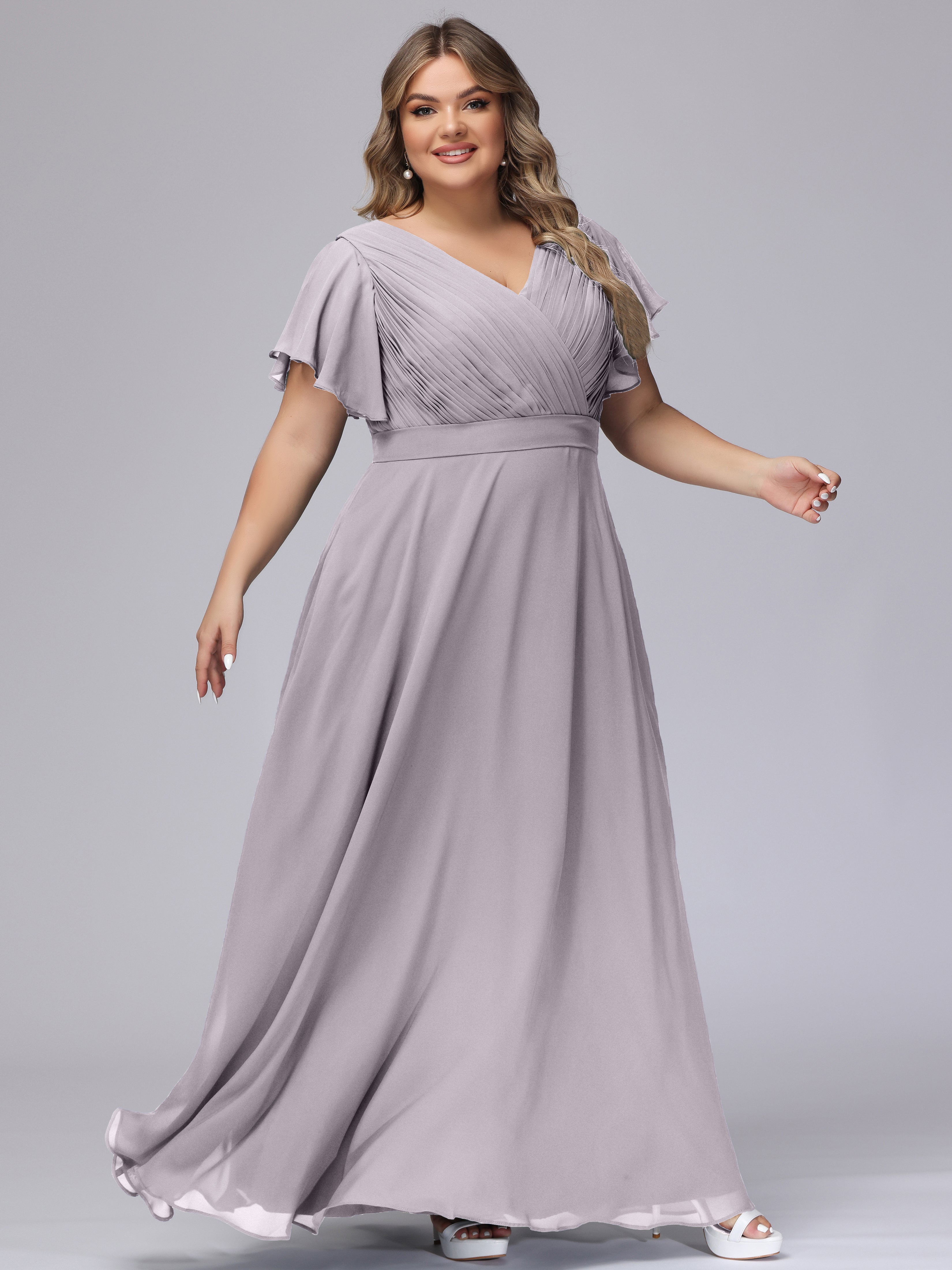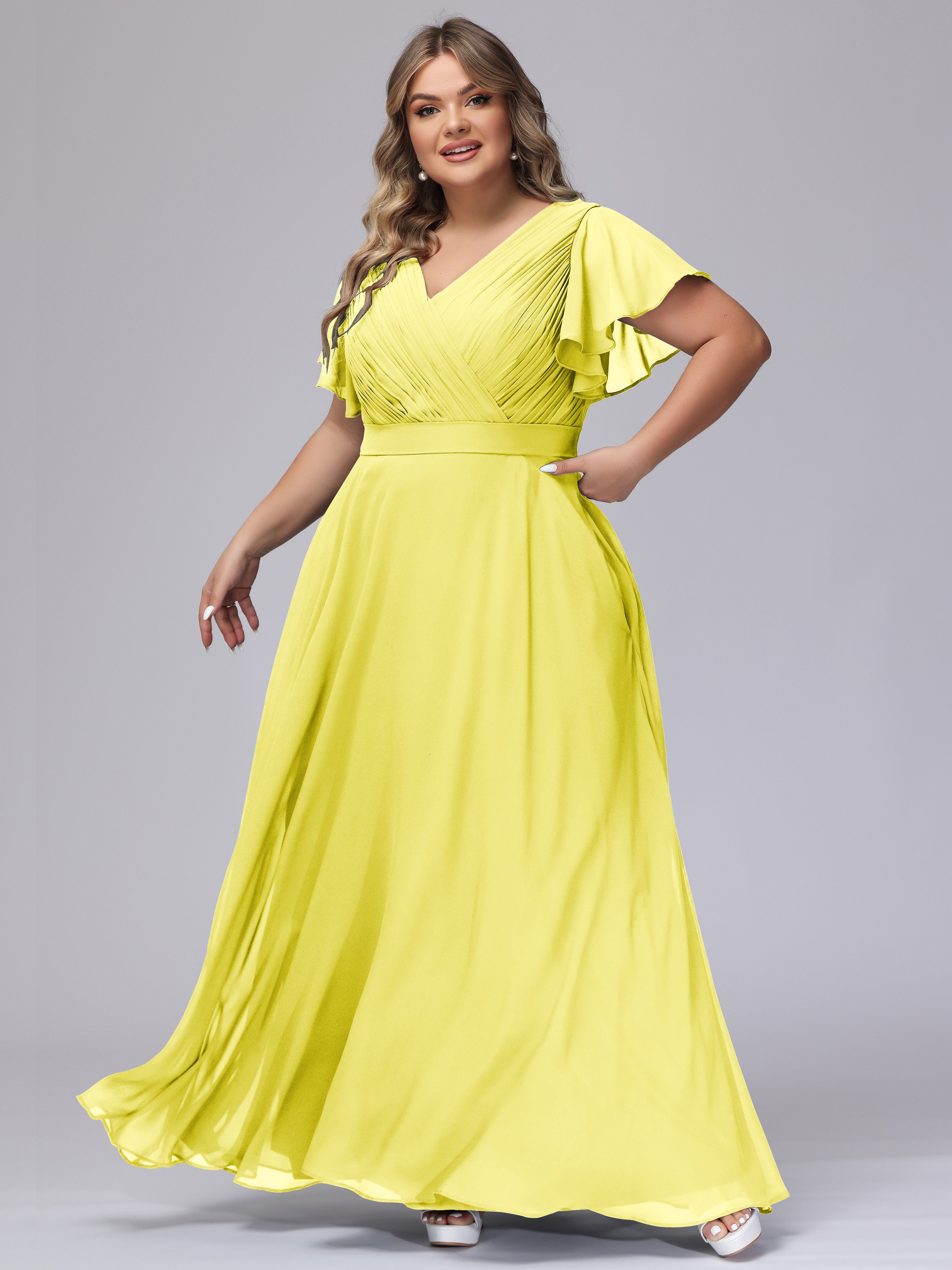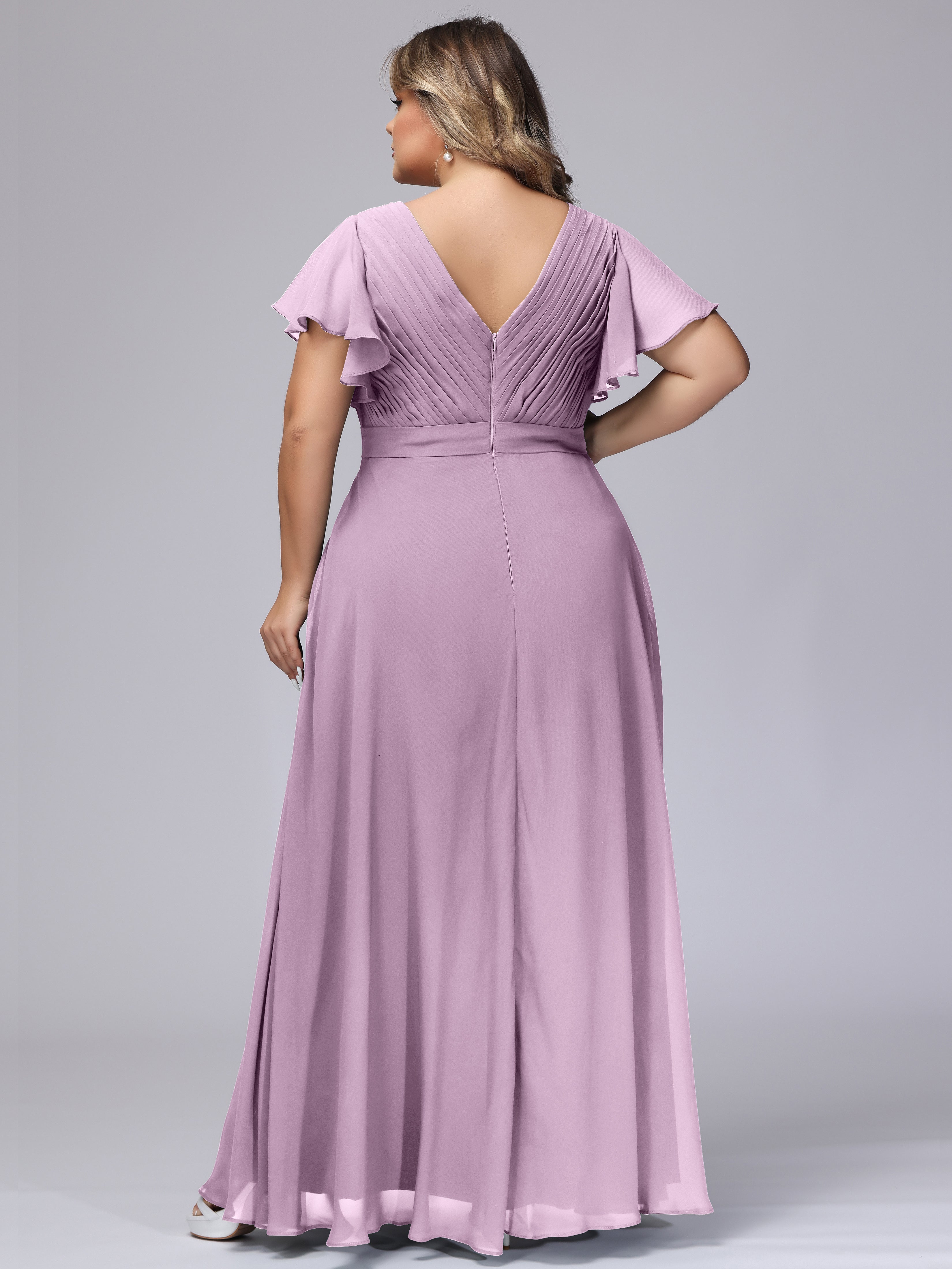 Elegant V-neck Ruffle Sleeves Empire Plus Size Bridesmaid Dress