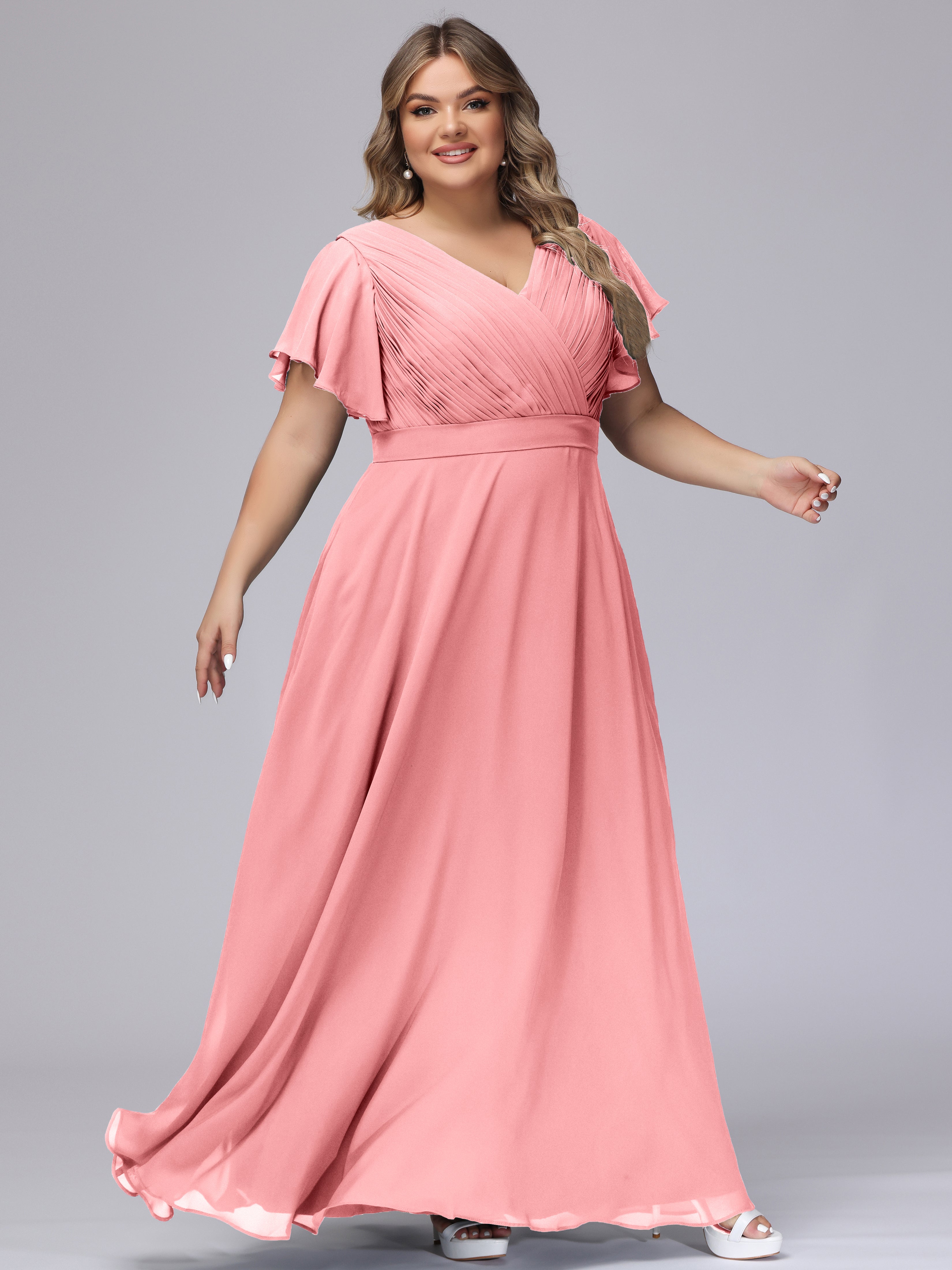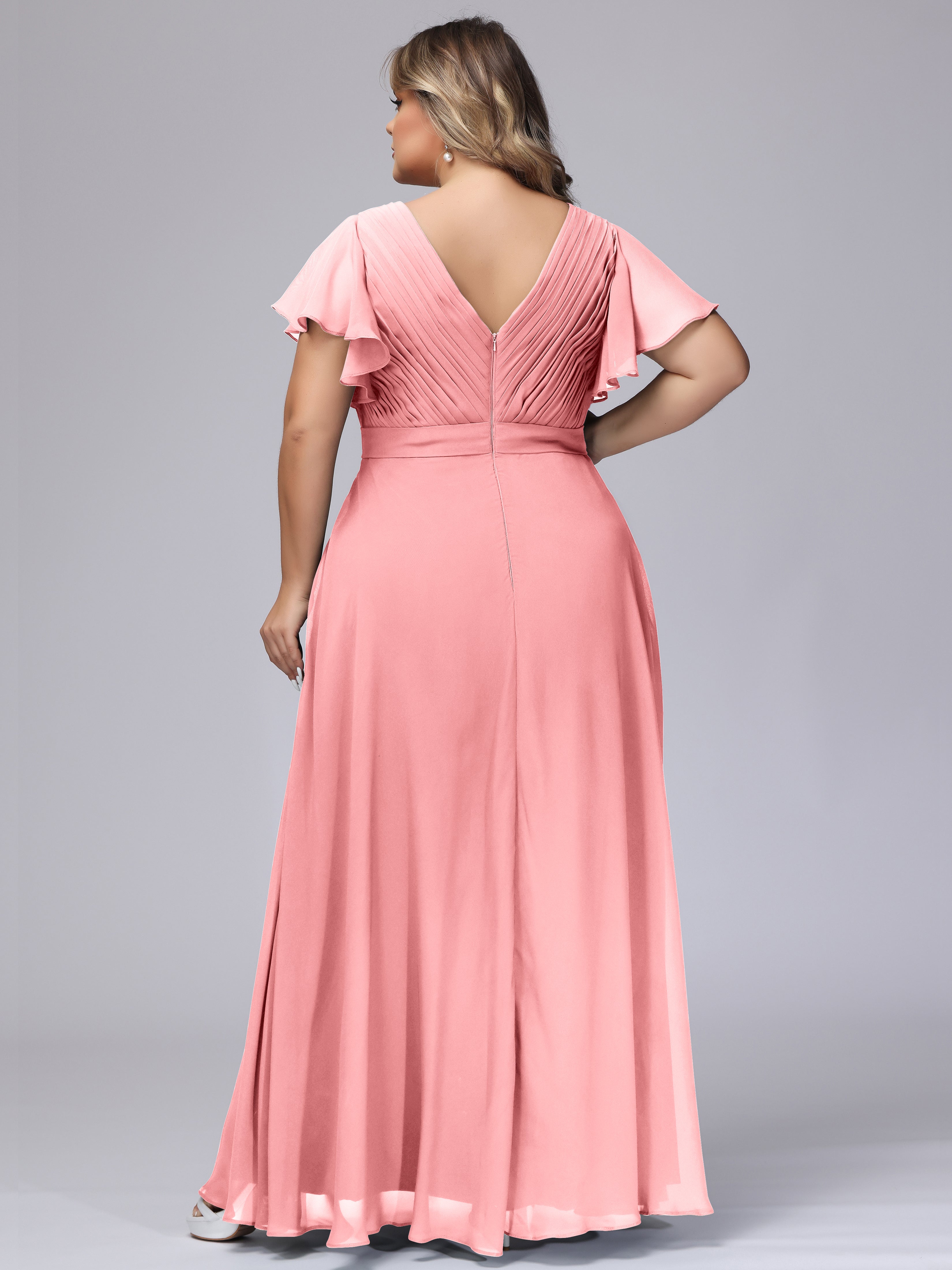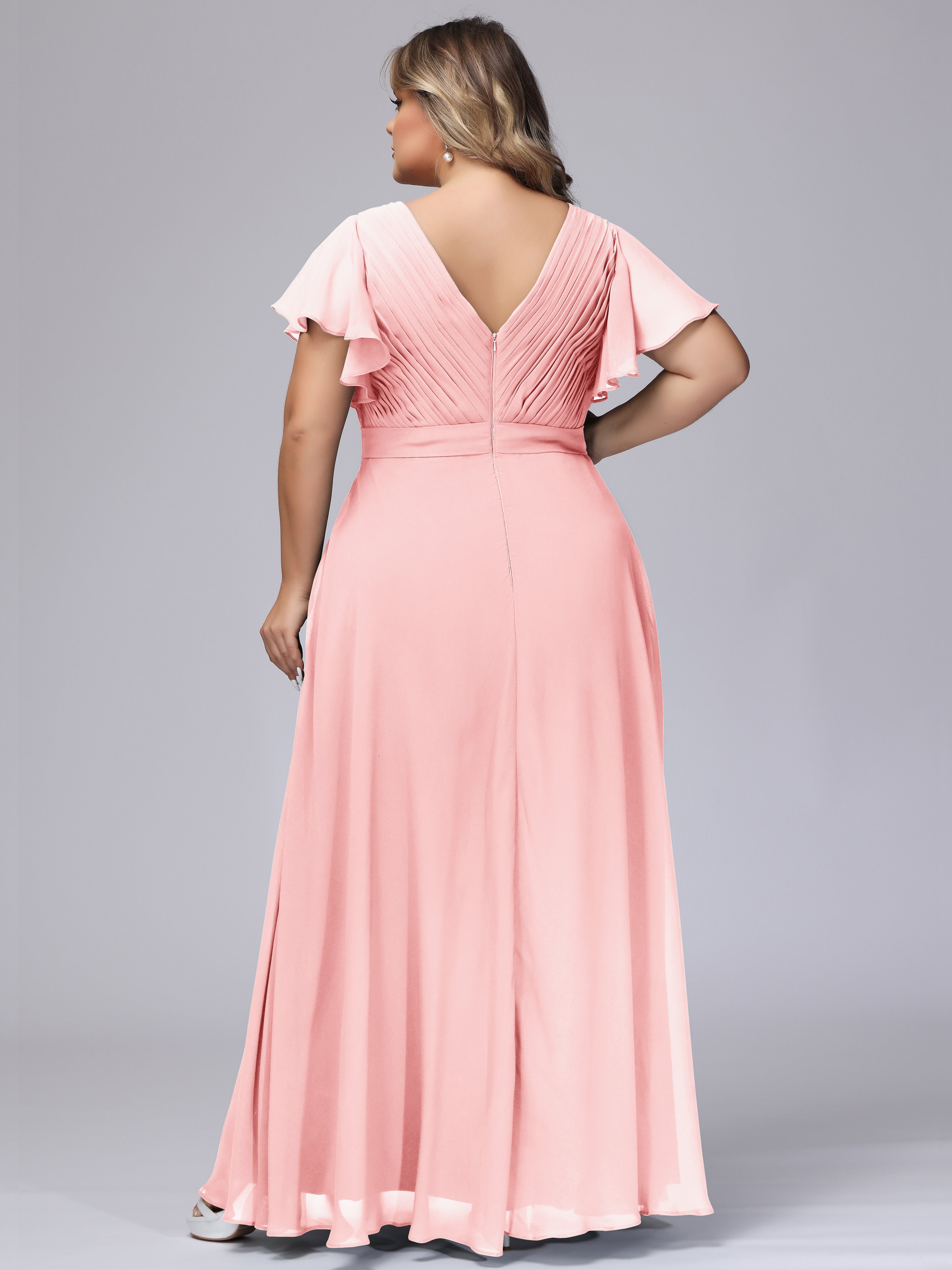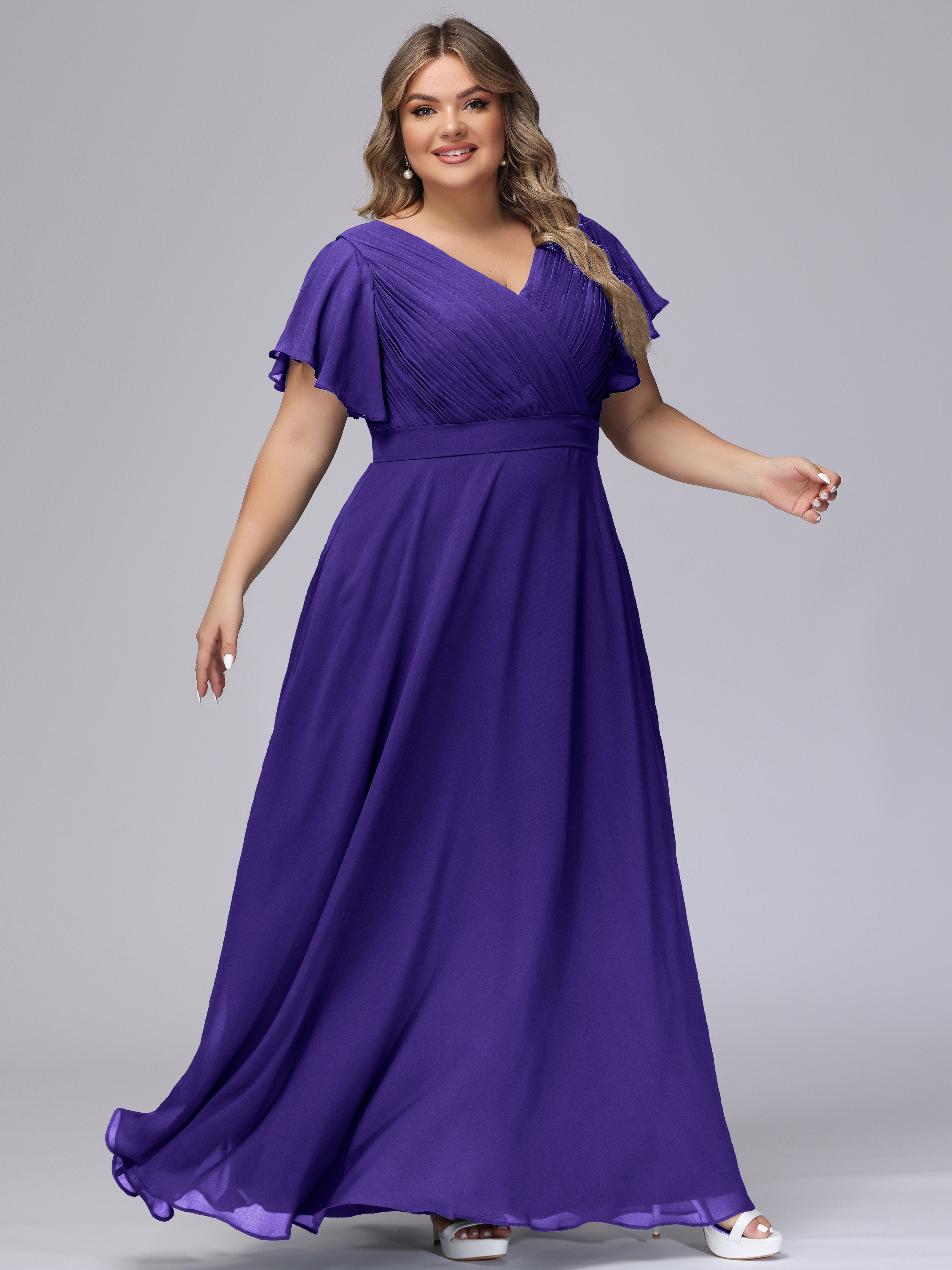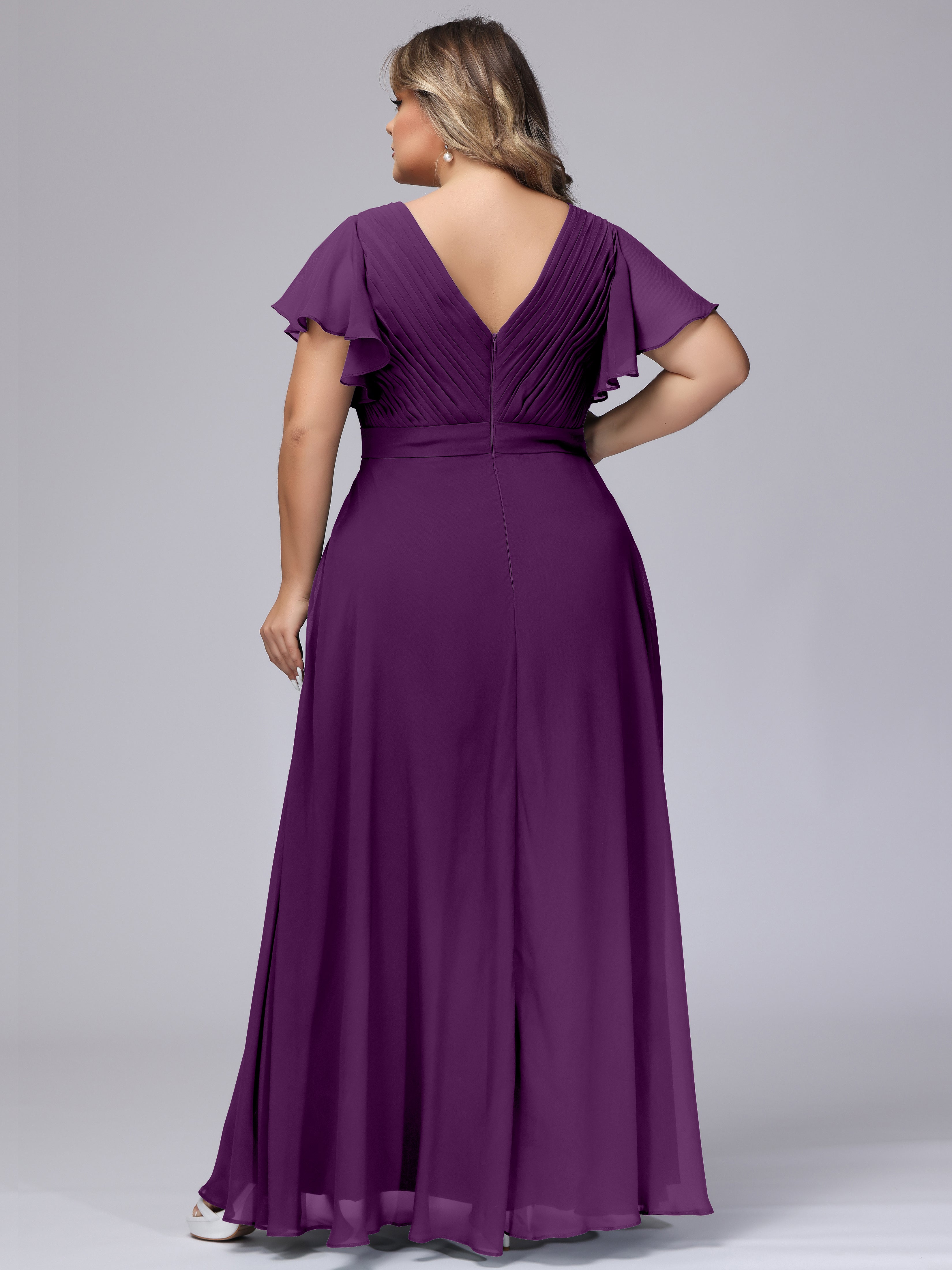 Elegant V-neck Ruffle Sleeves Empire Plus Size Bridesmaid Dress