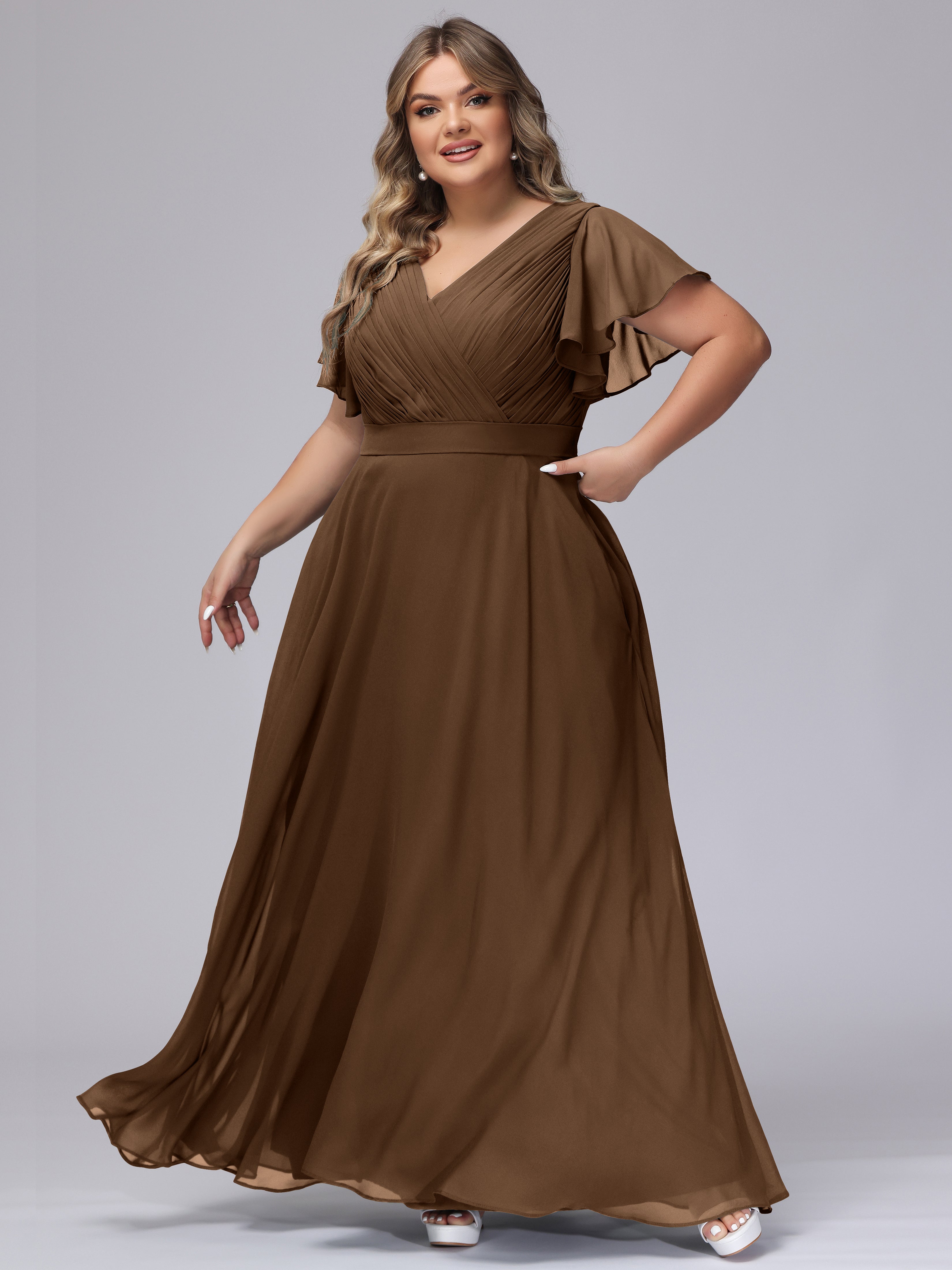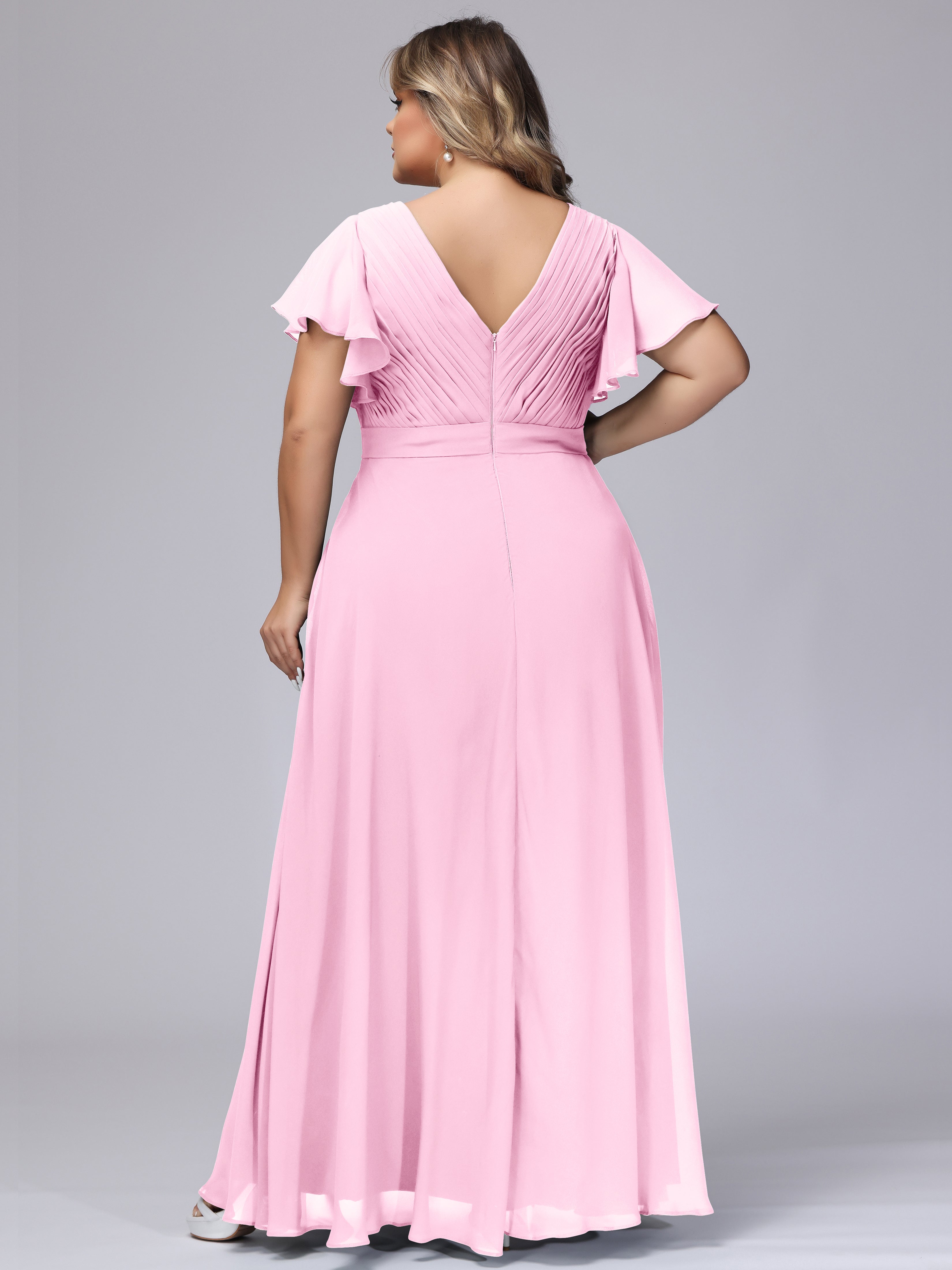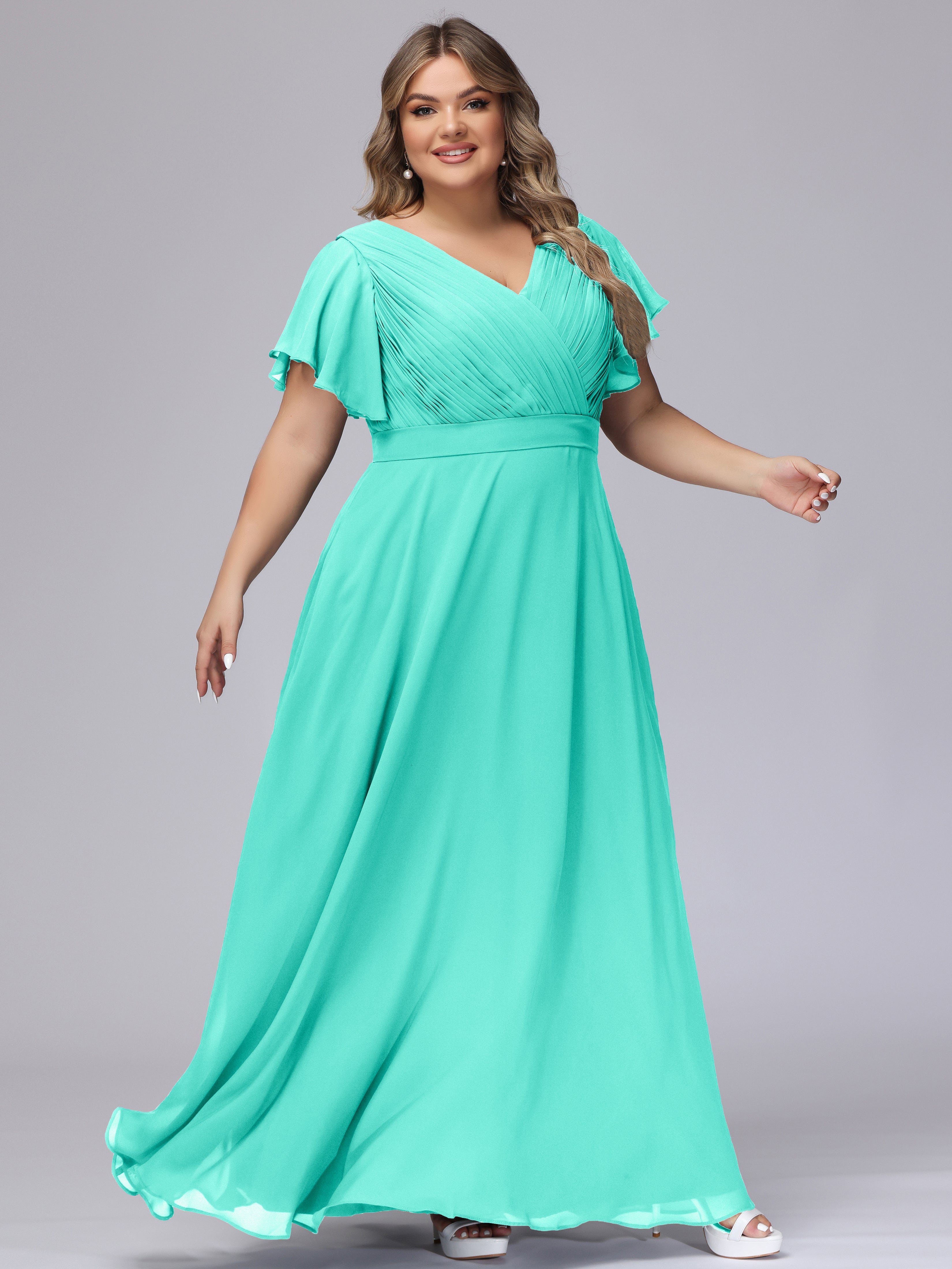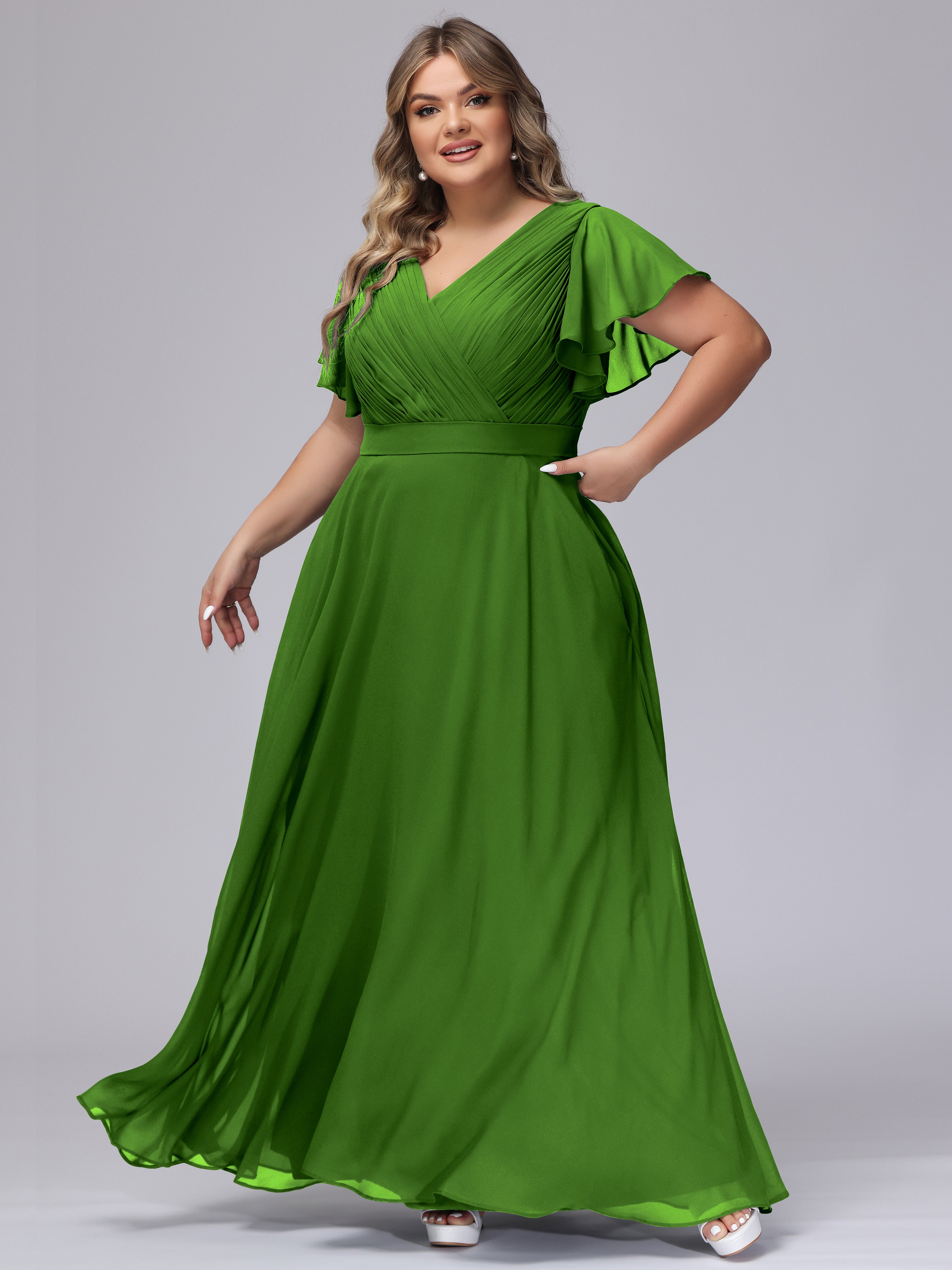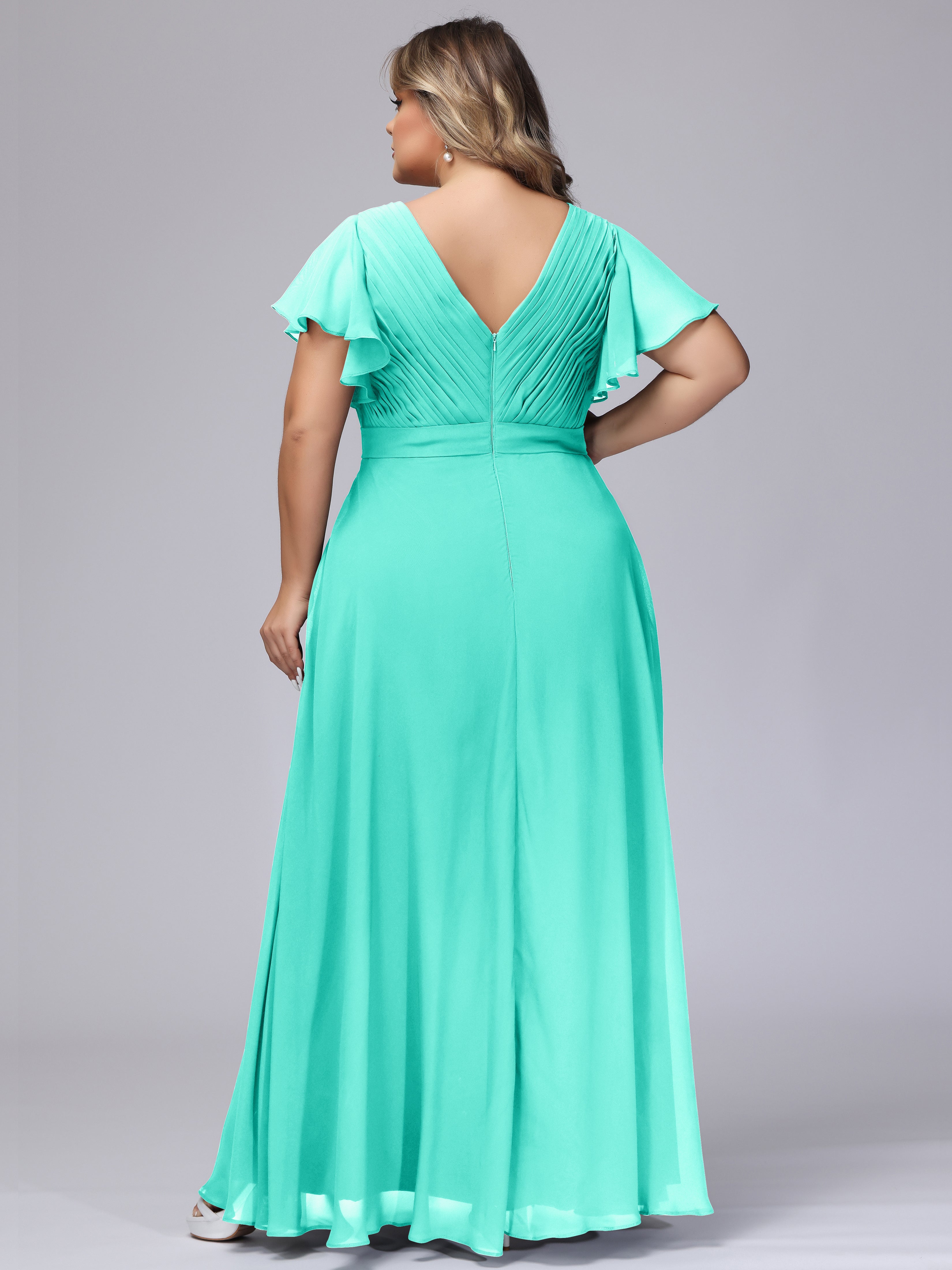 Elegant V-neck Ruffle Sleeves Empire Plus Size Bridesmaid Dress