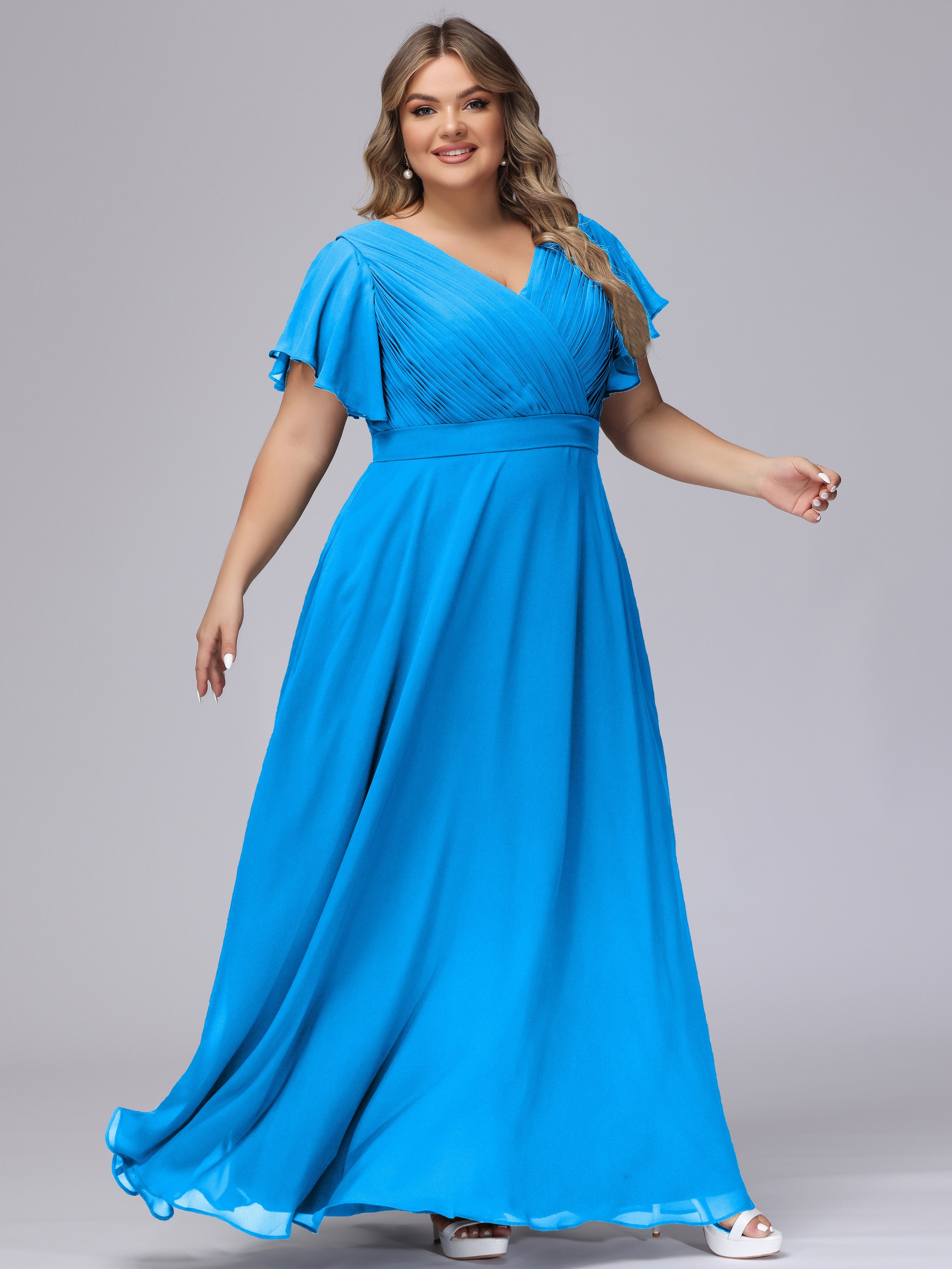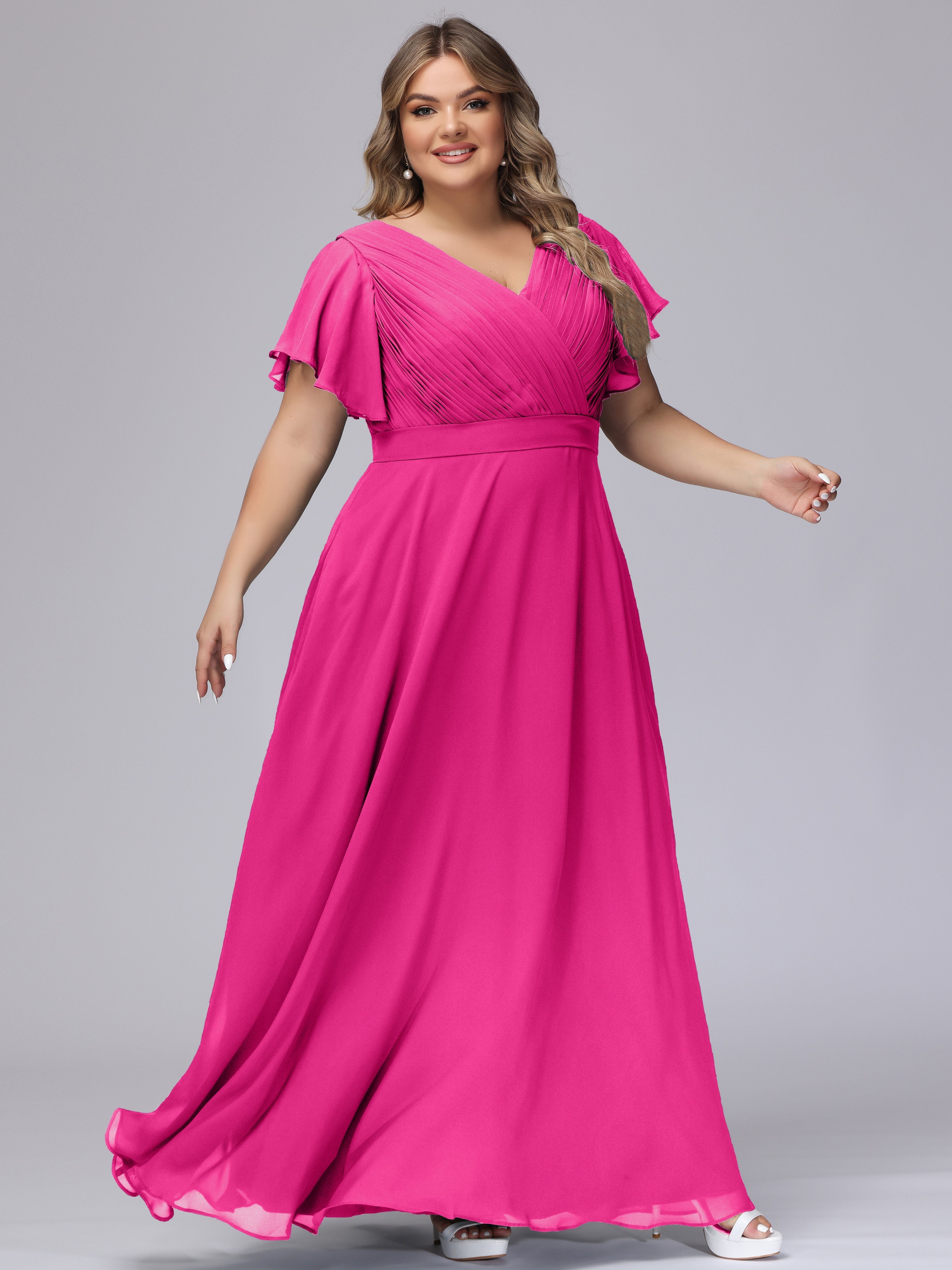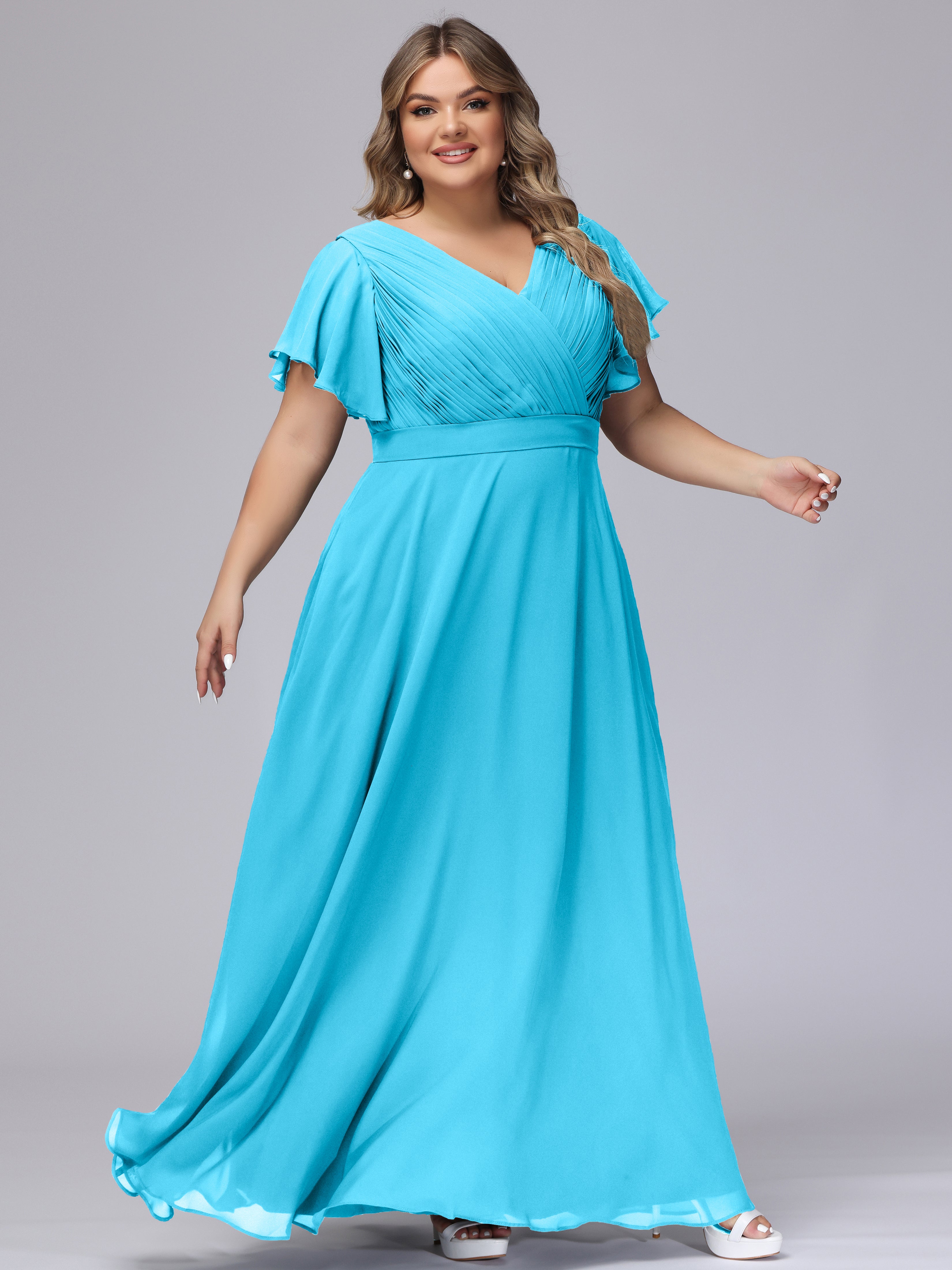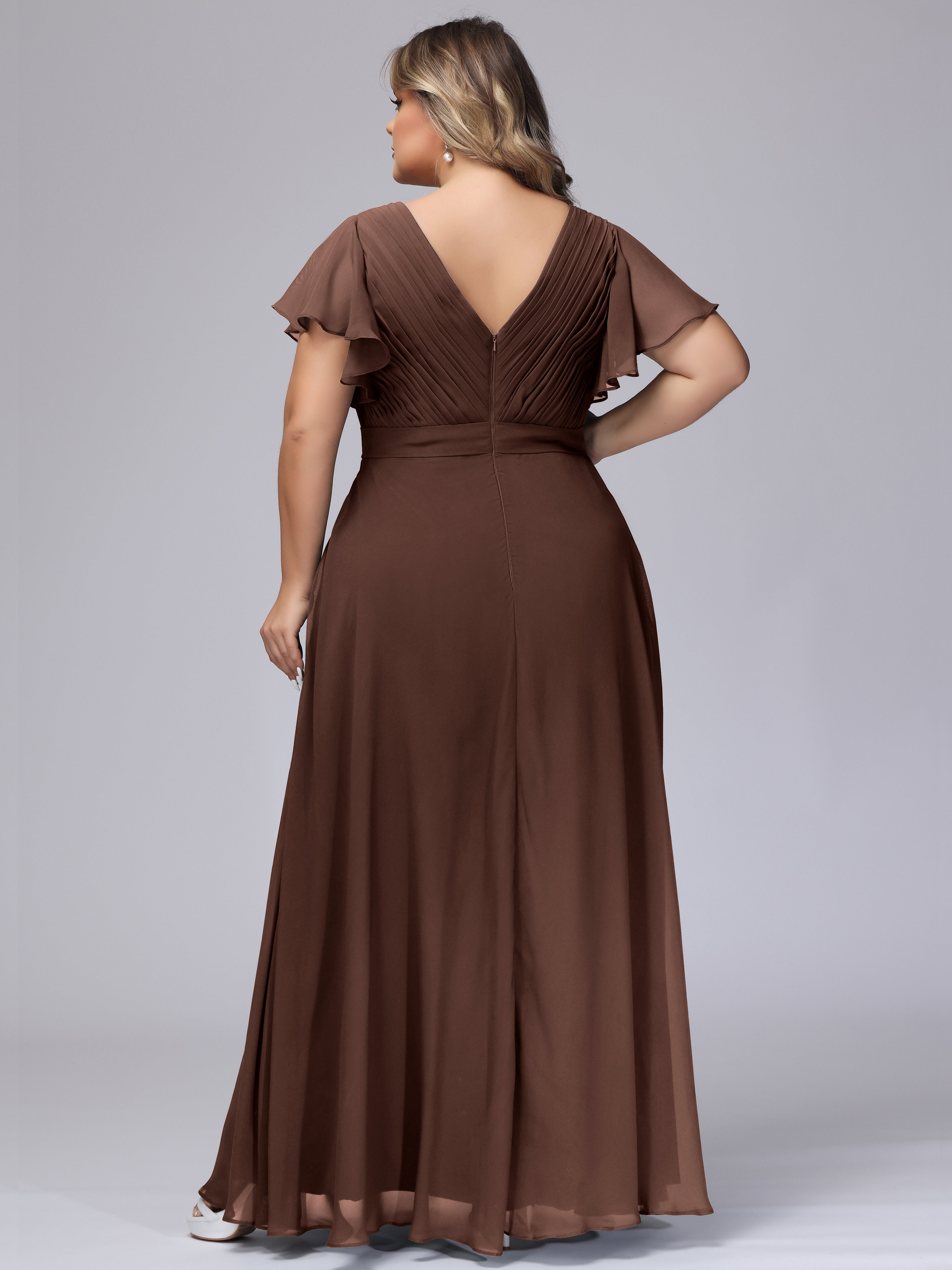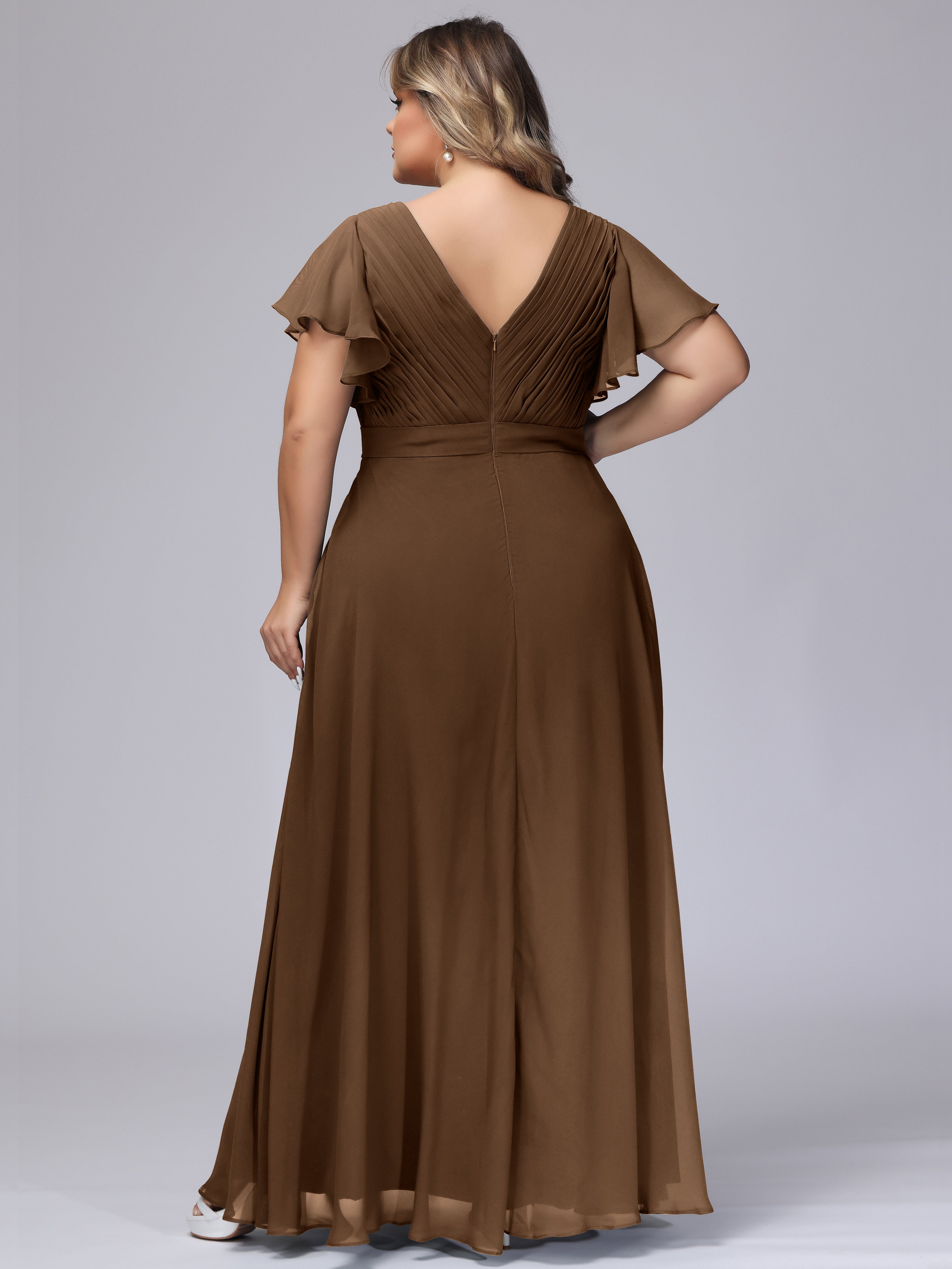 Elegant V-neck Ruffle Sleeves Empire Plus Size Bridesmaid Dress