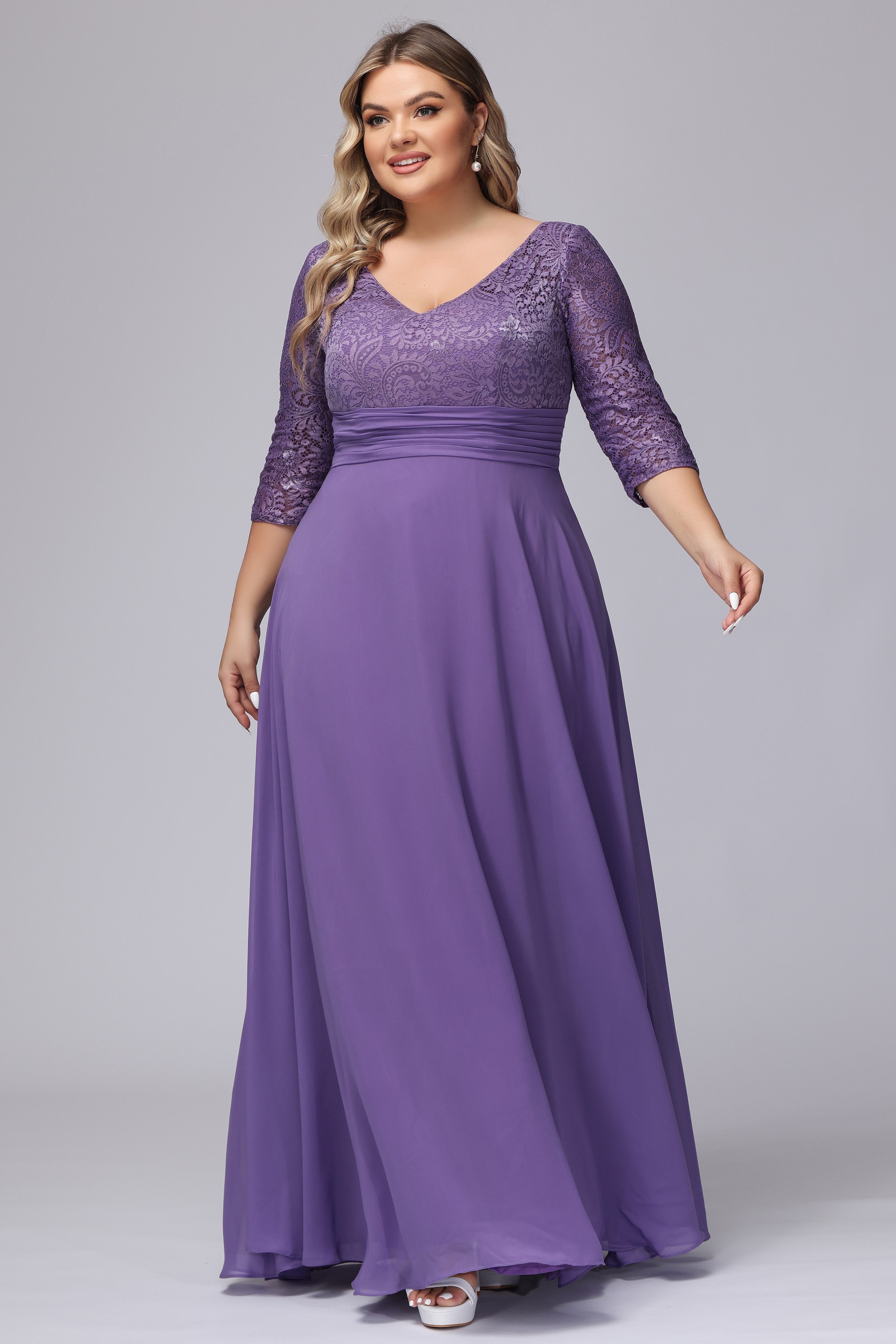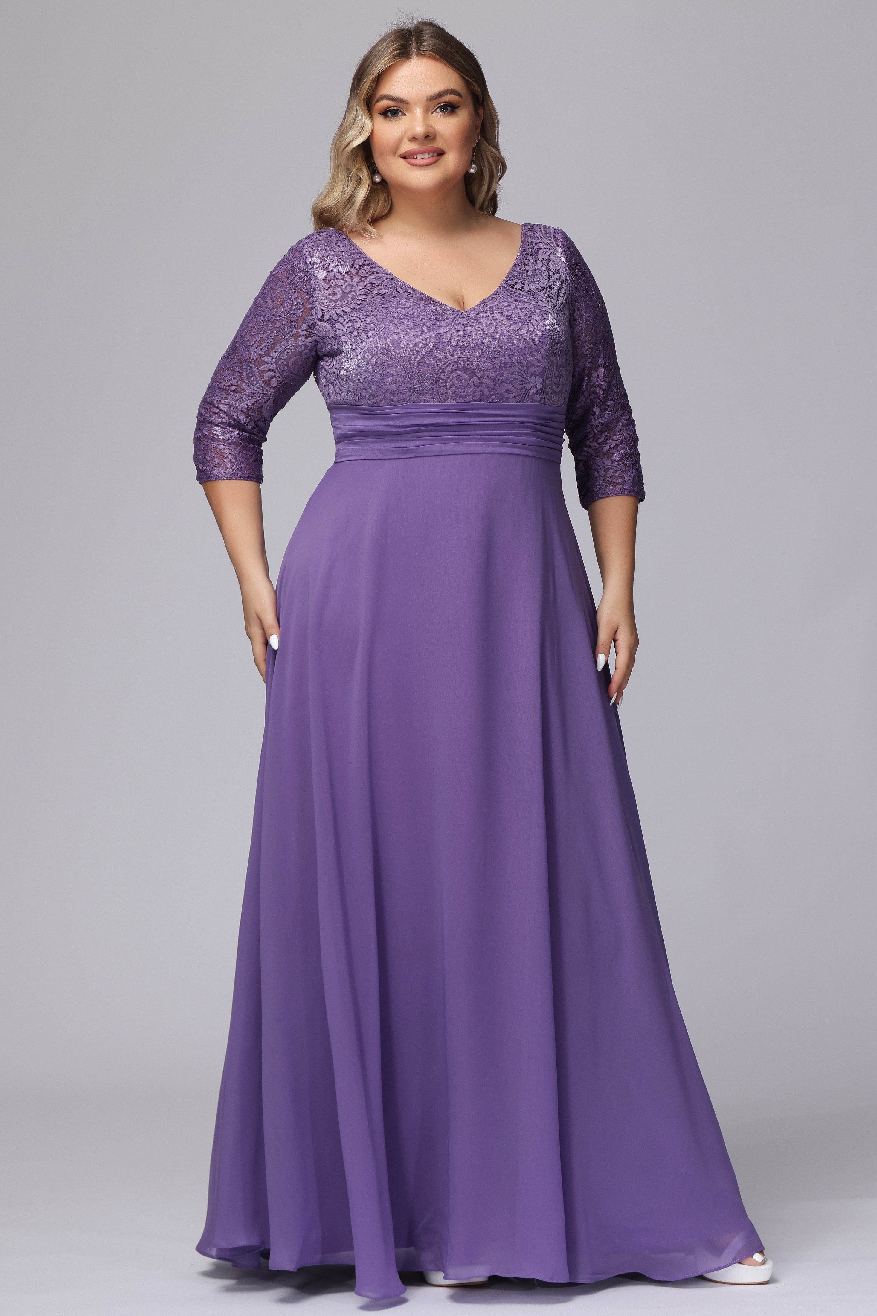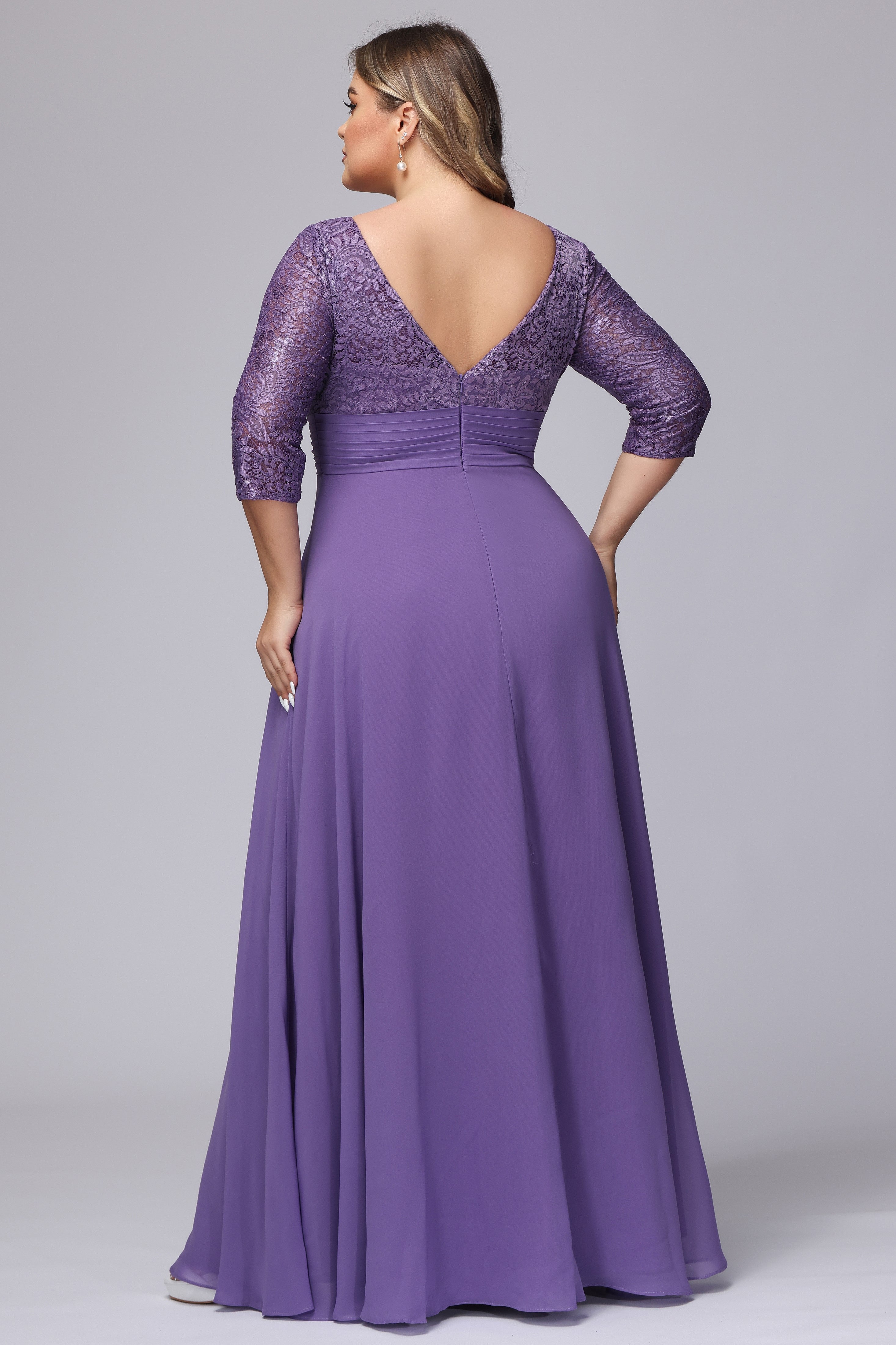 Introducing the Tahiti V-Neck 3/4 Sleeves Lace Chiffon Mother of the Bride Dresses, expertly crafted with beautiful lace and luxurious chiffon fabric. This dress offers a flattering v-neckline, 3/4 sleeves, and a timeless design for mothers of the bride looking for elegance and sophistication.