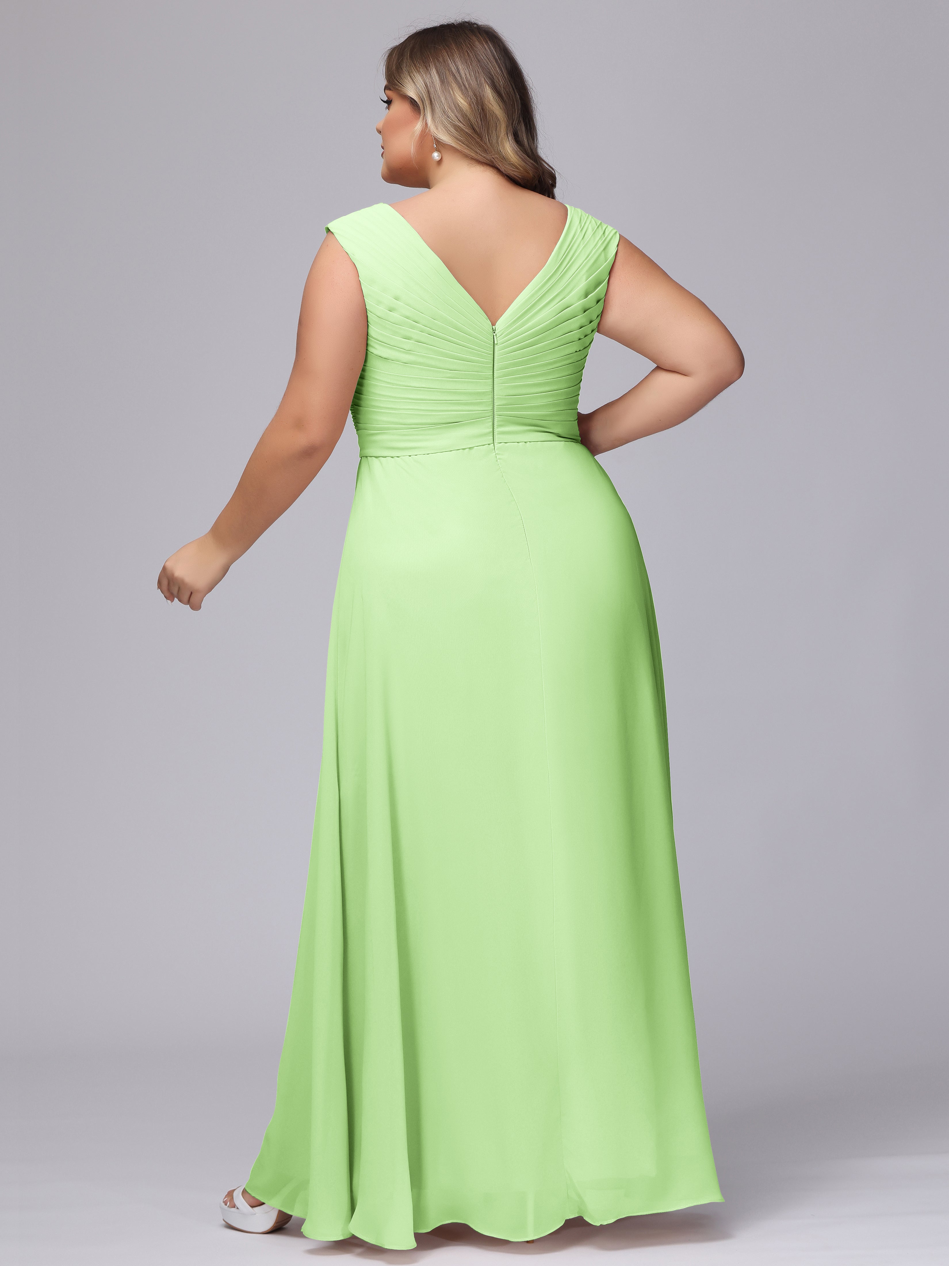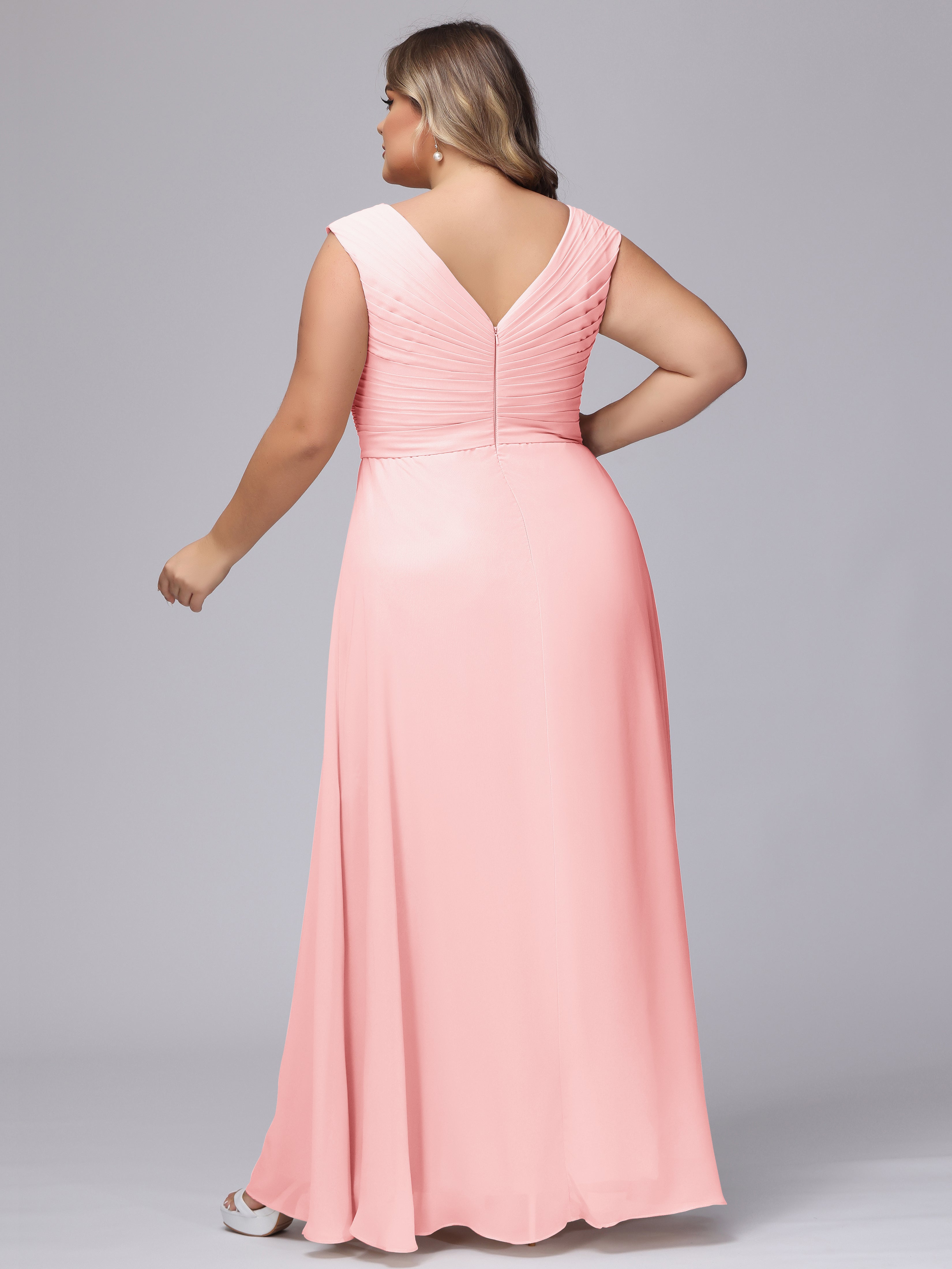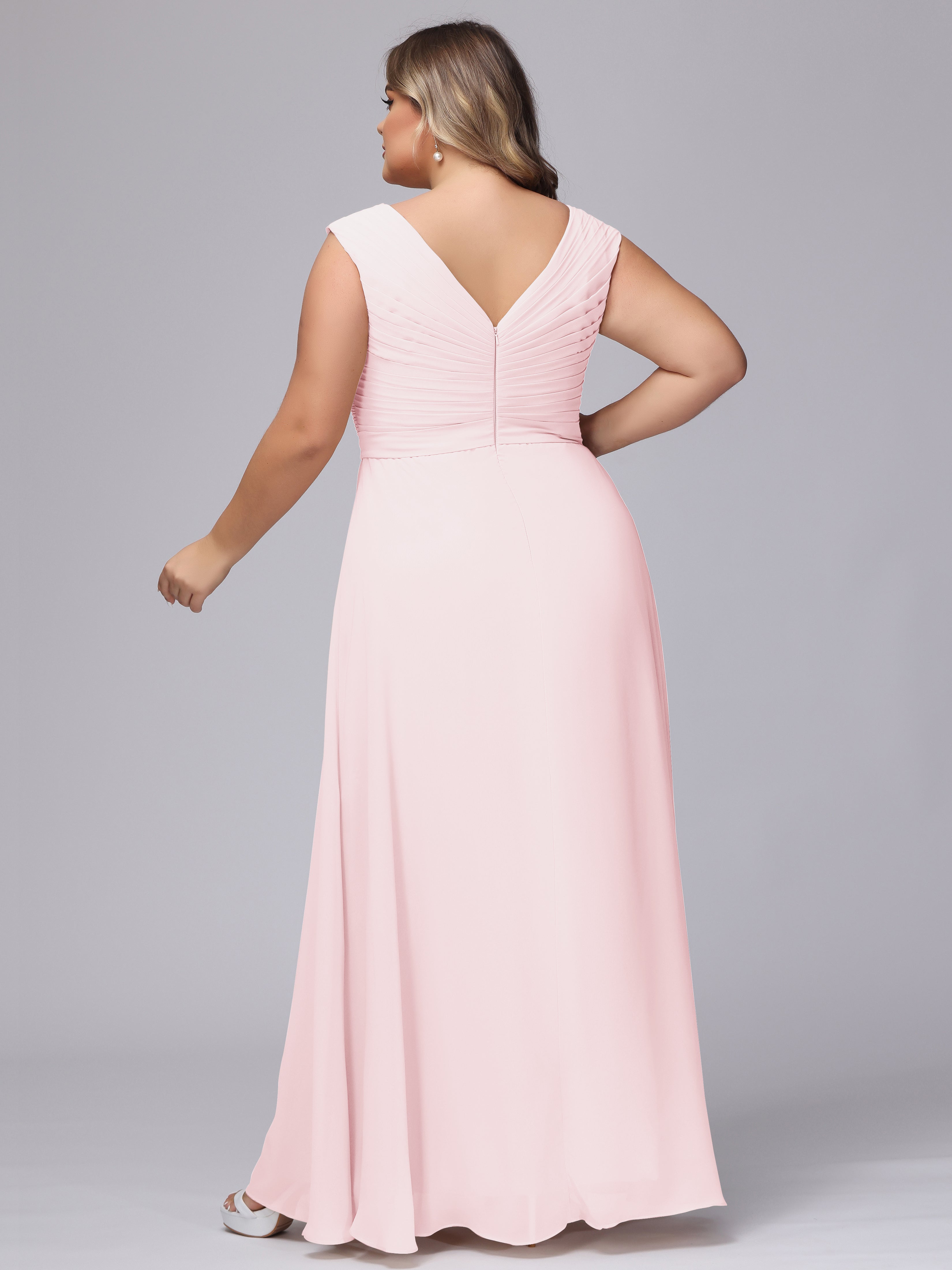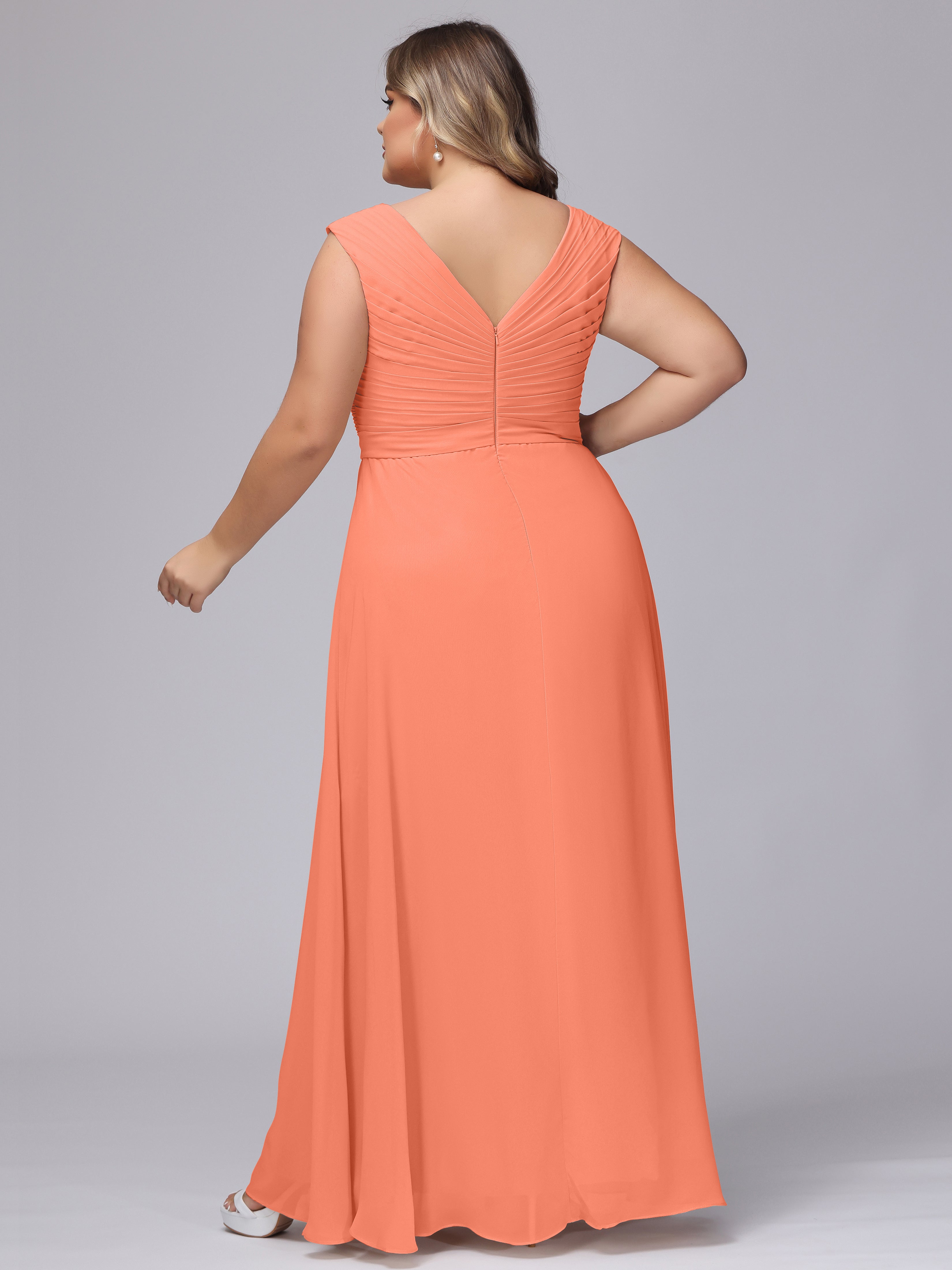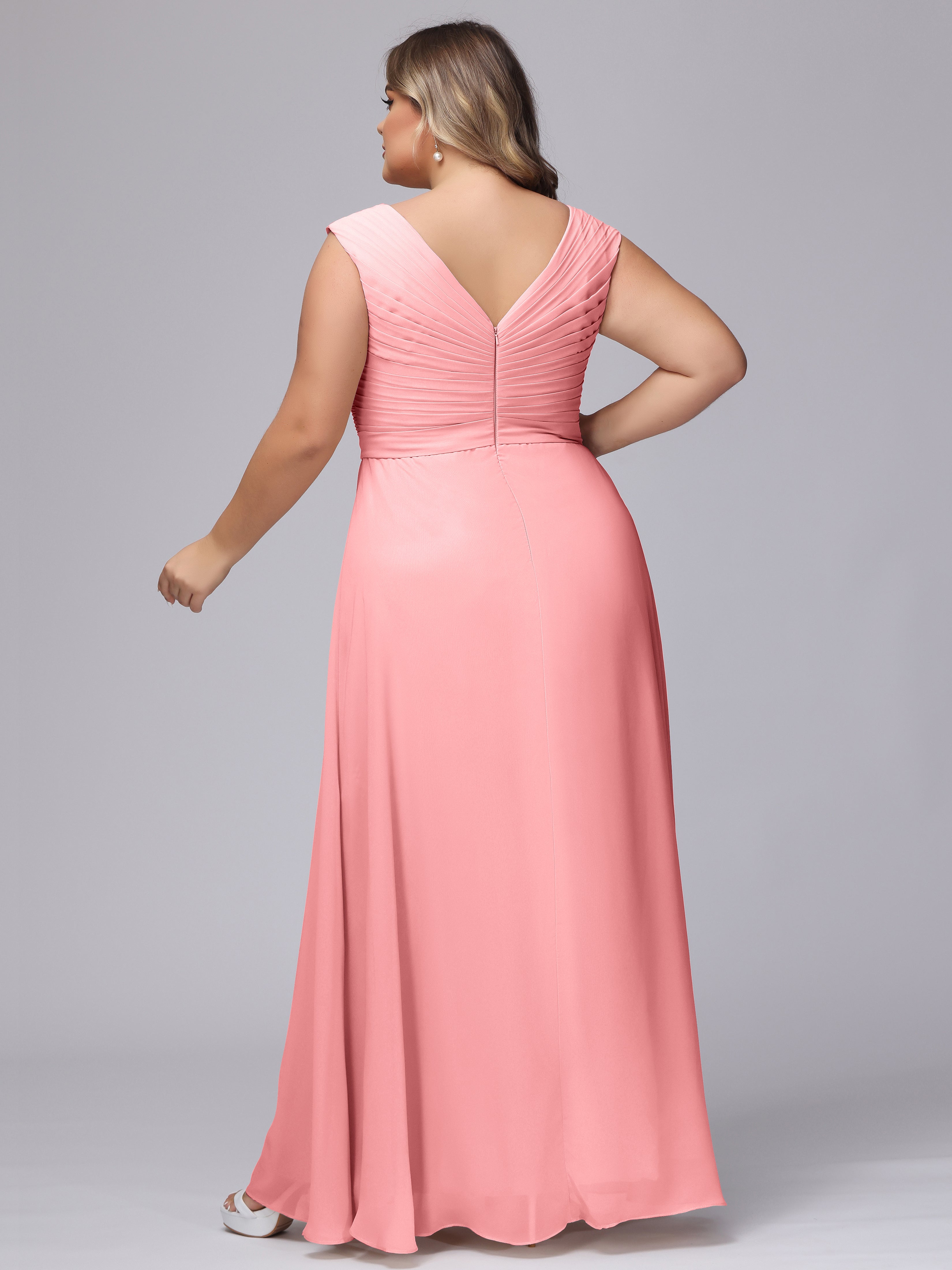 V-Back Plus Size Chiffon Bridesmaid Dress