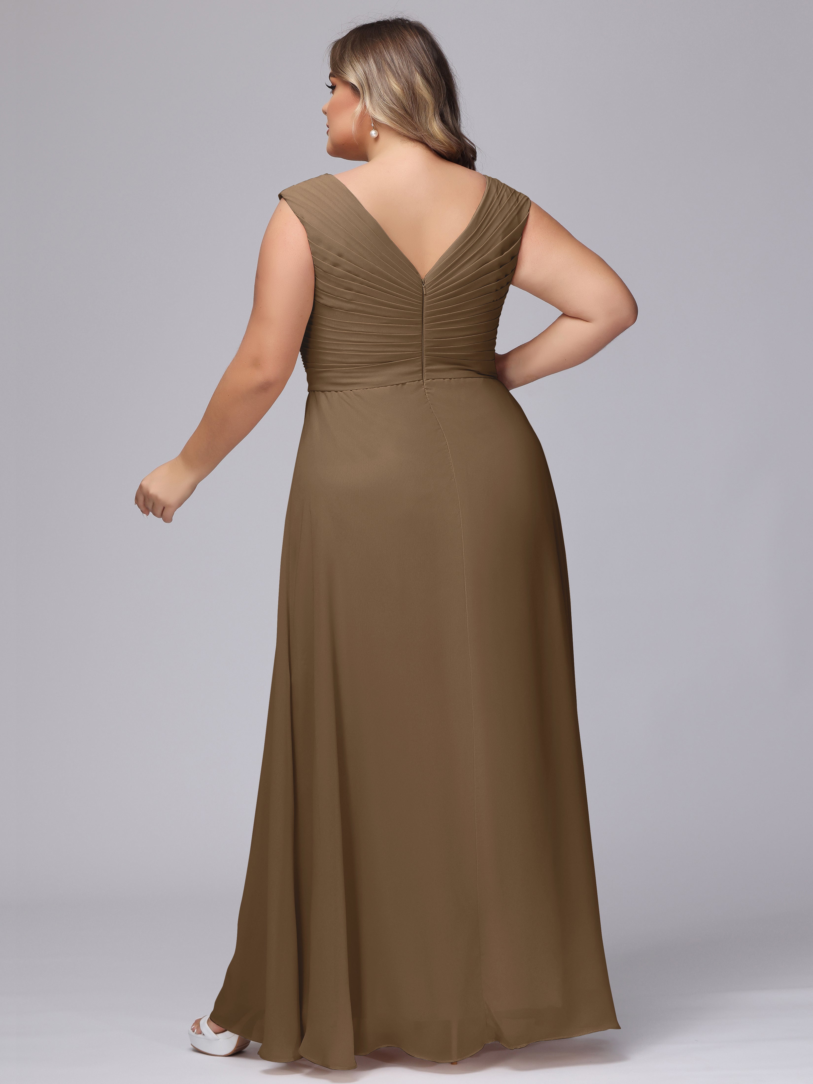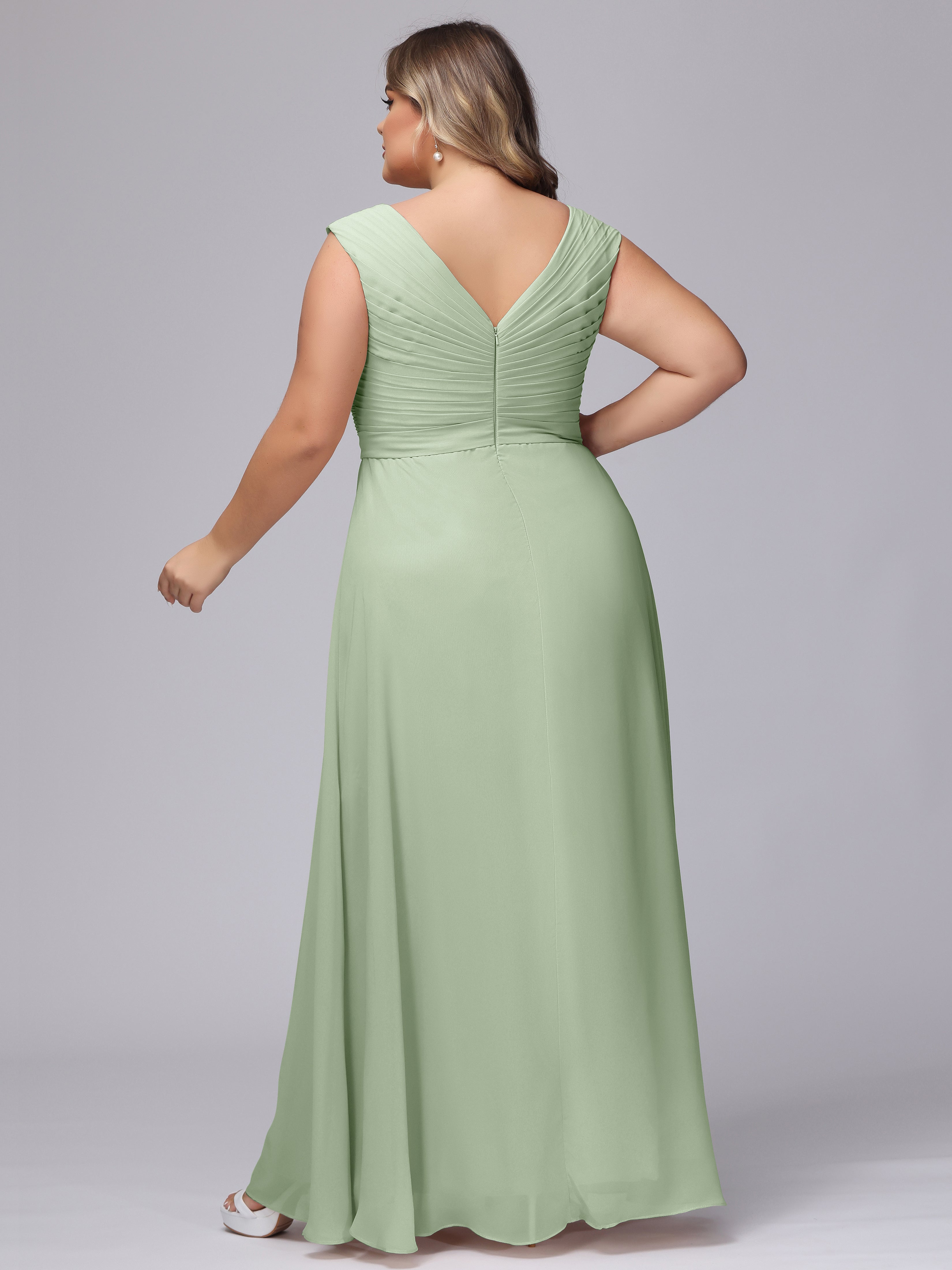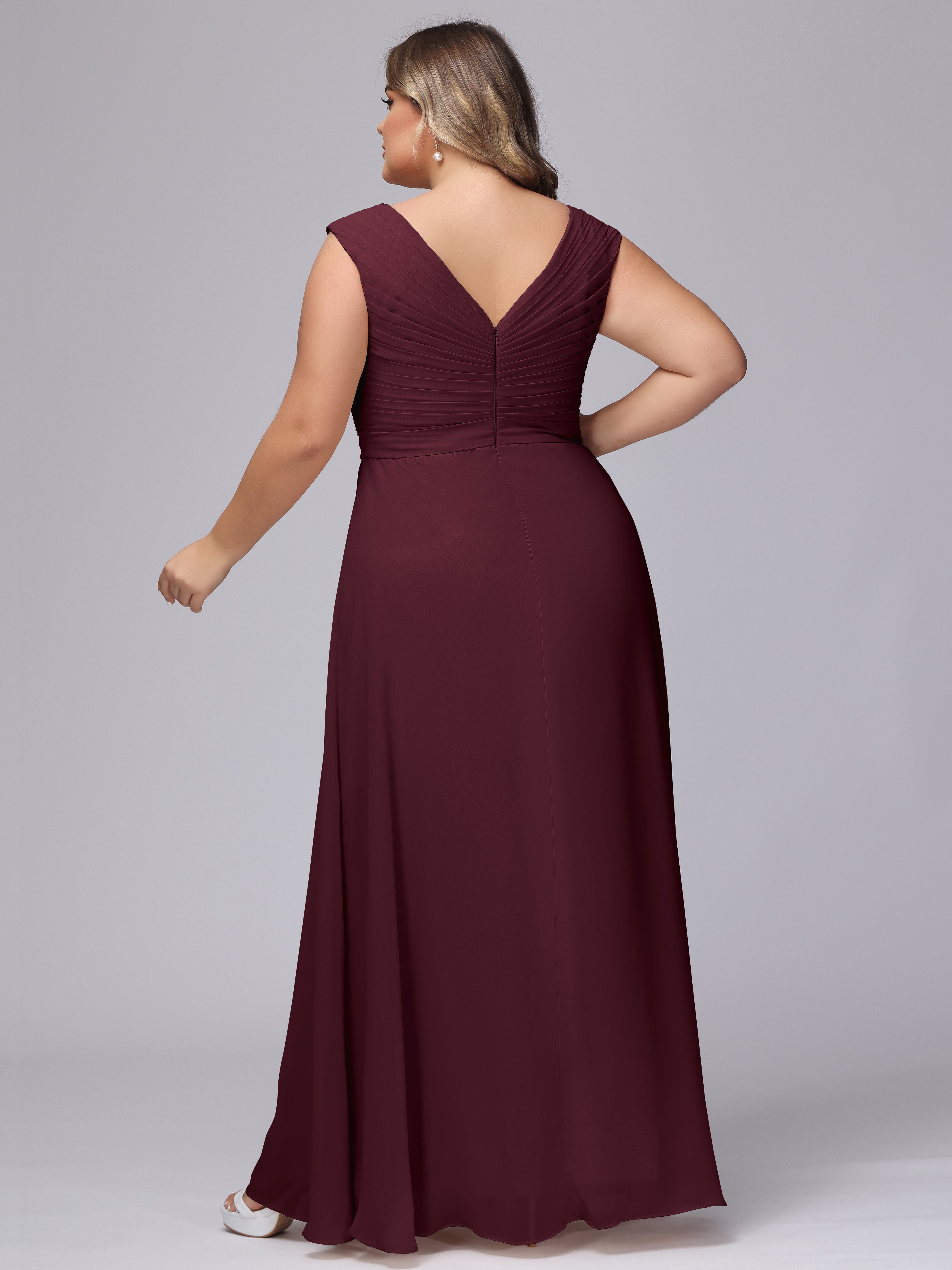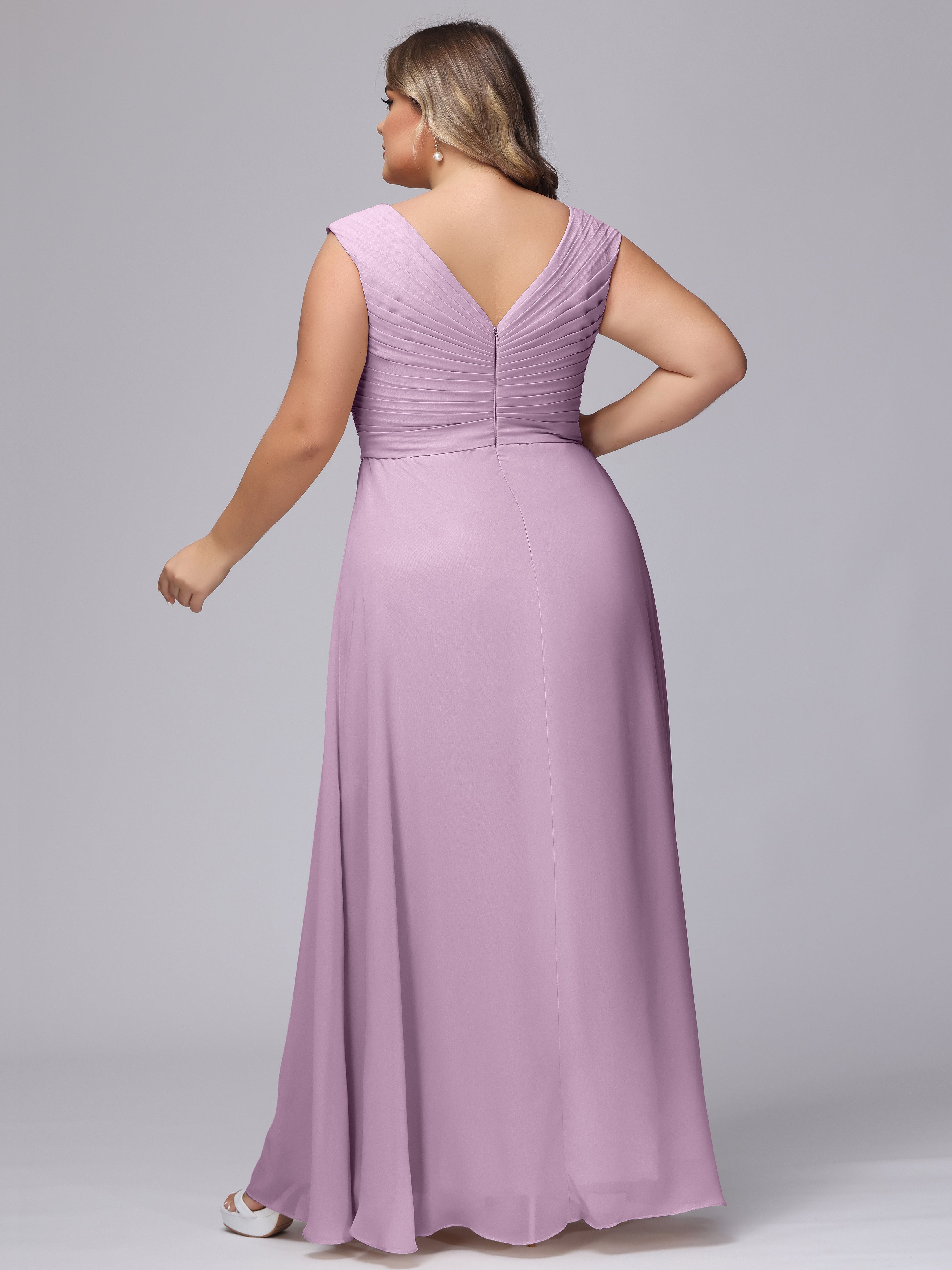 V-Back Plus Size Chiffon Bridesmaid Dress