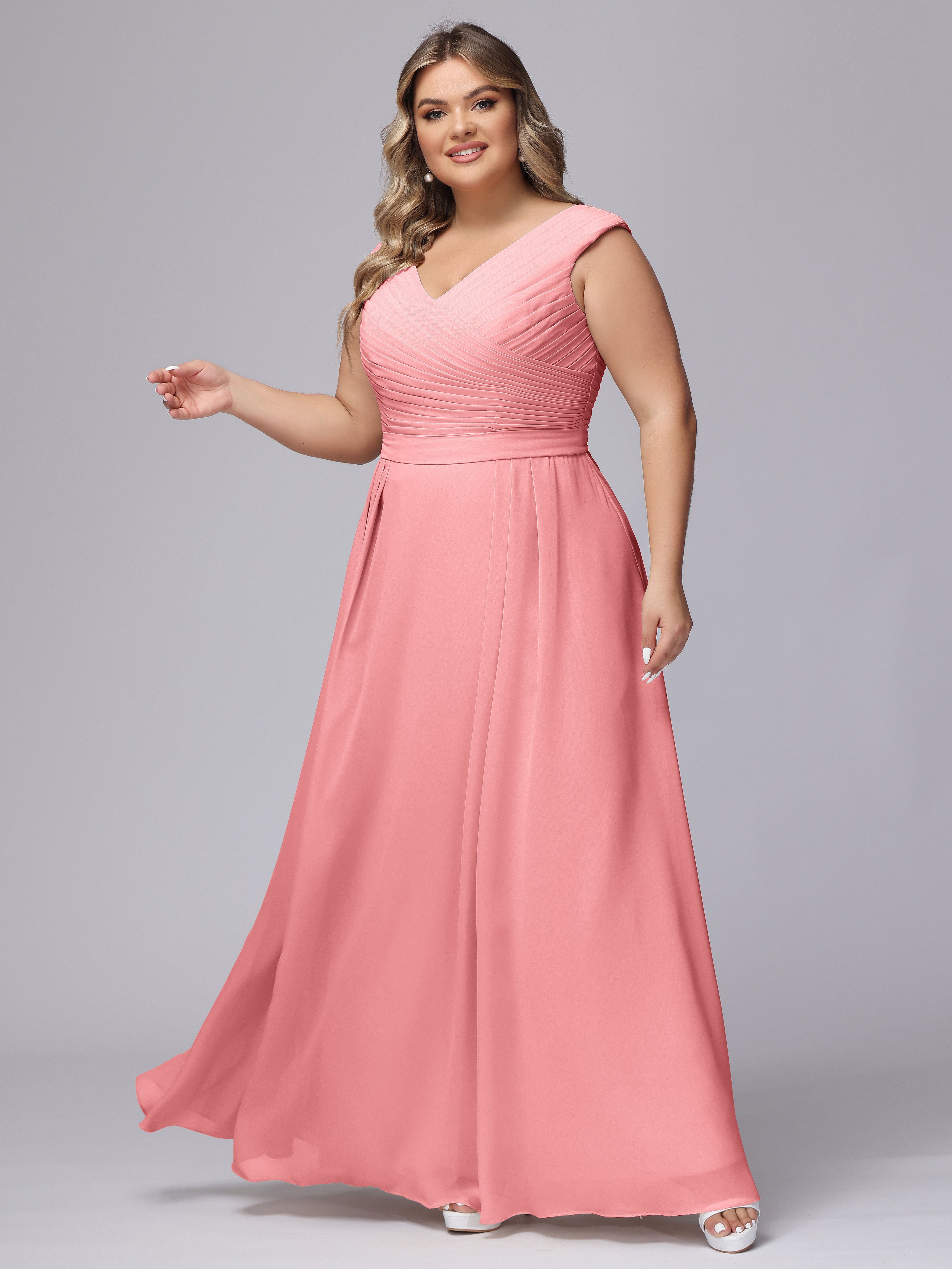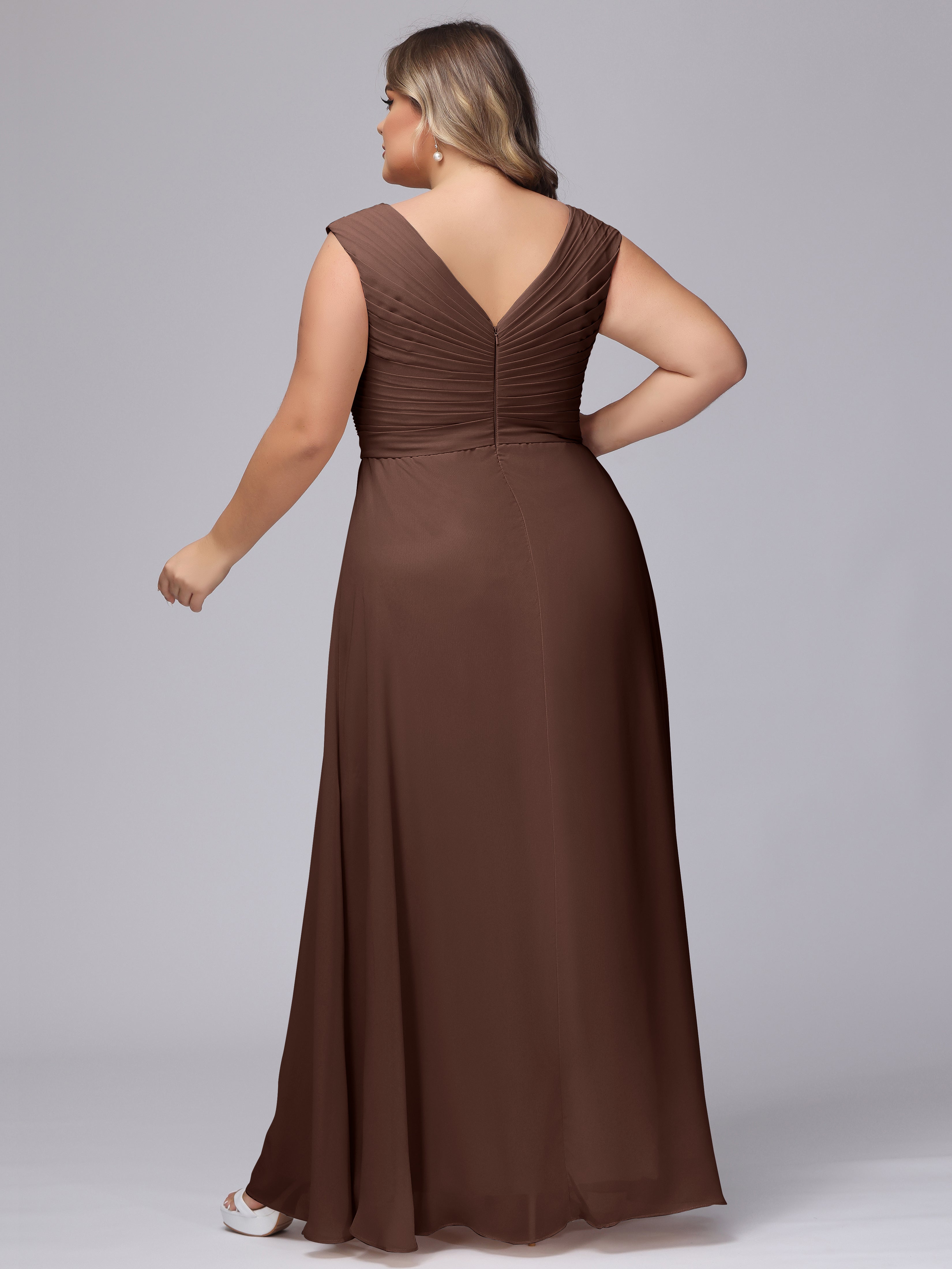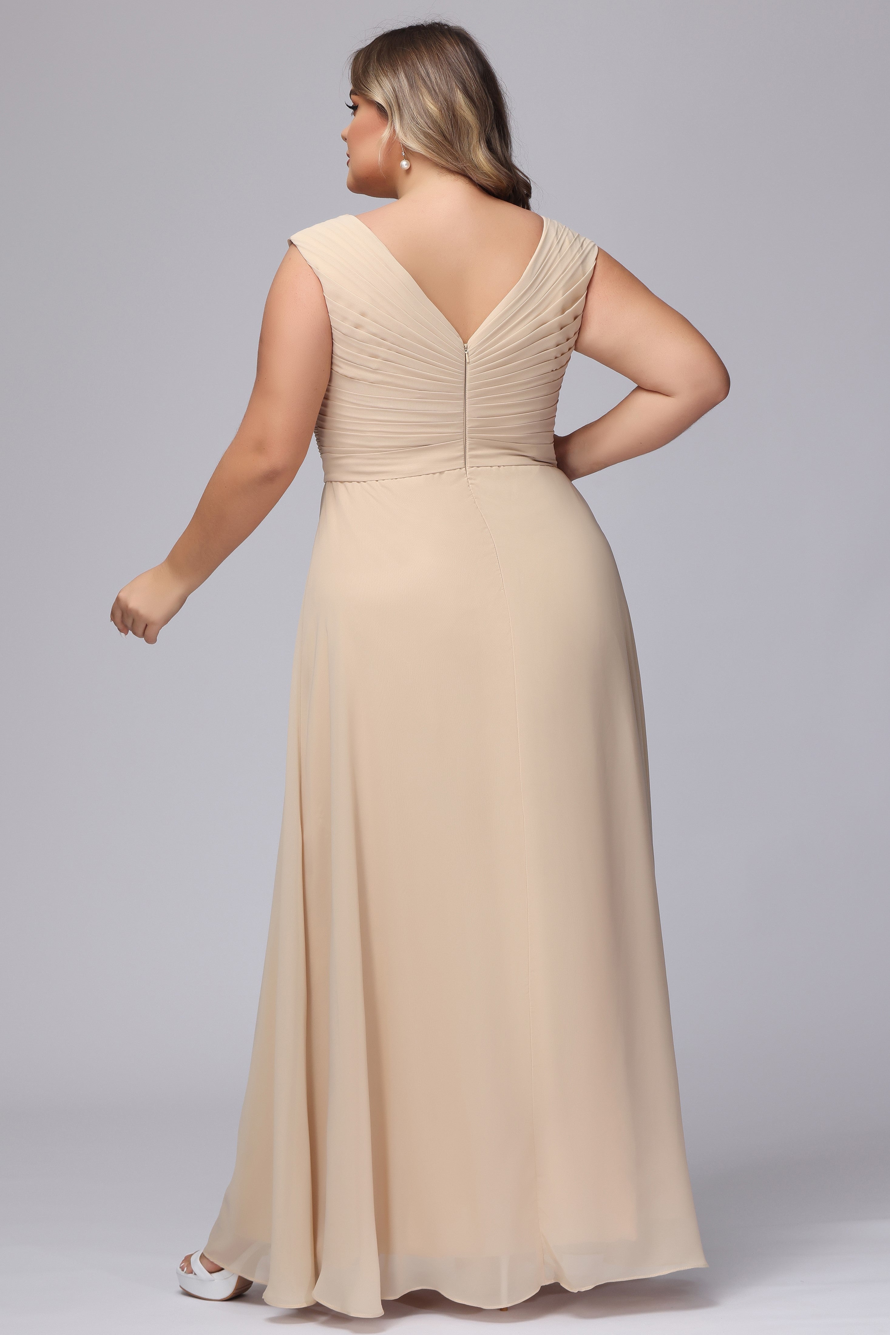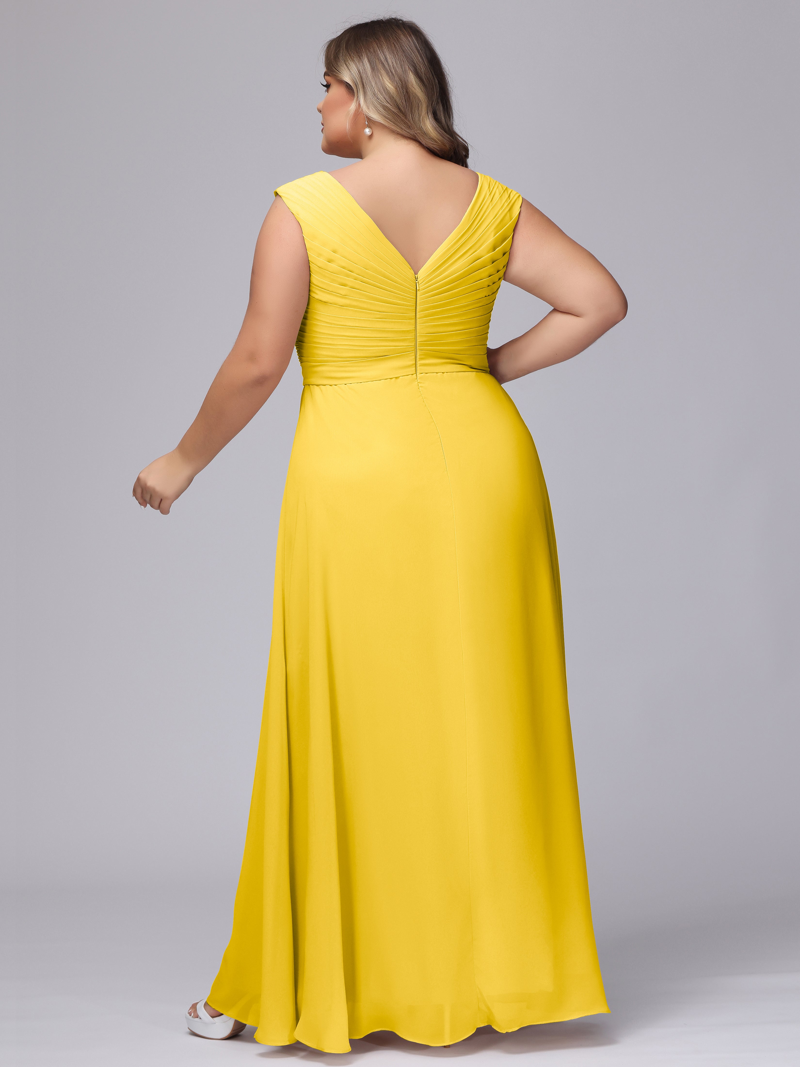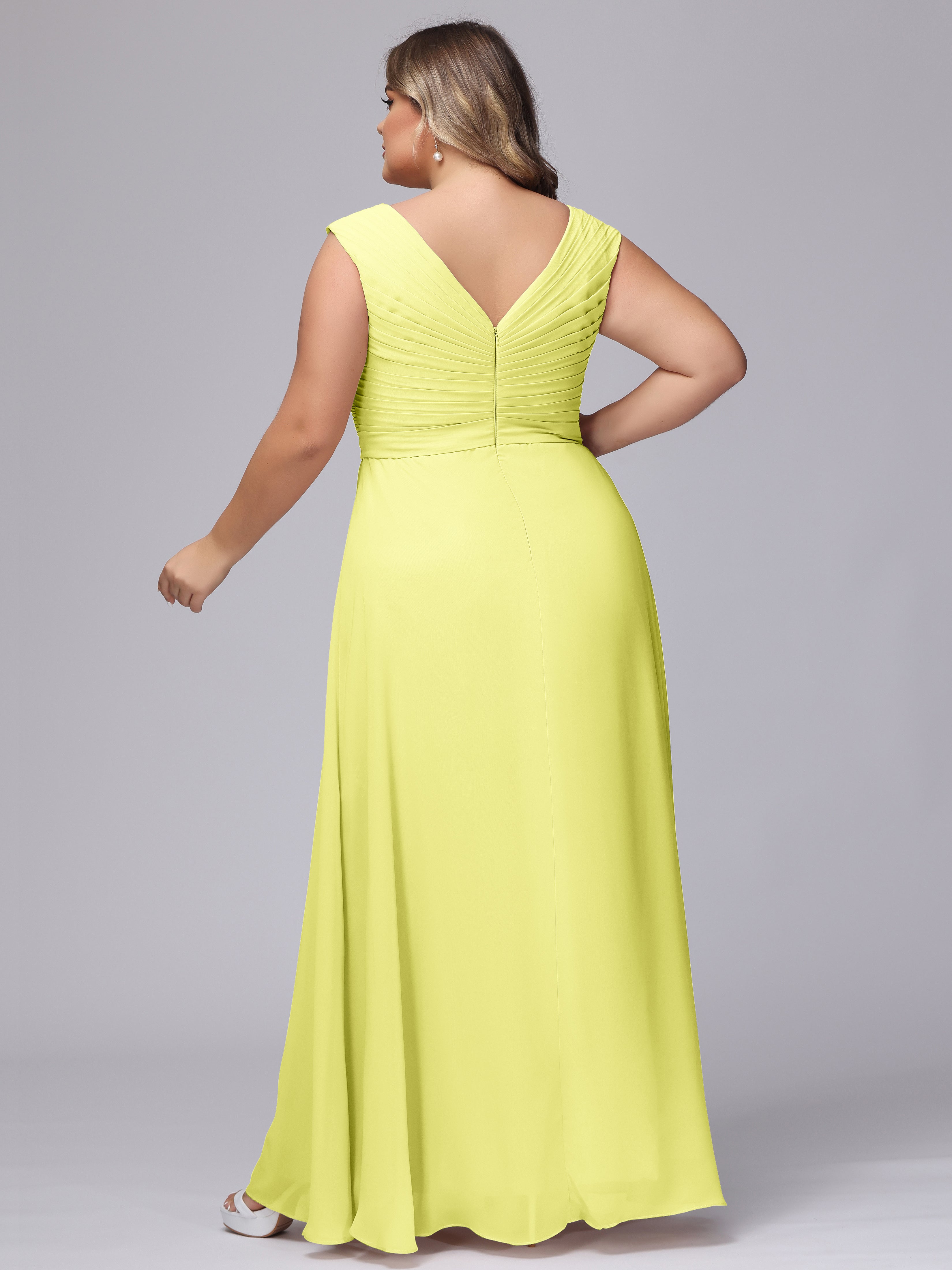 V-Back Plus Size Chiffon Bridesmaid Dress