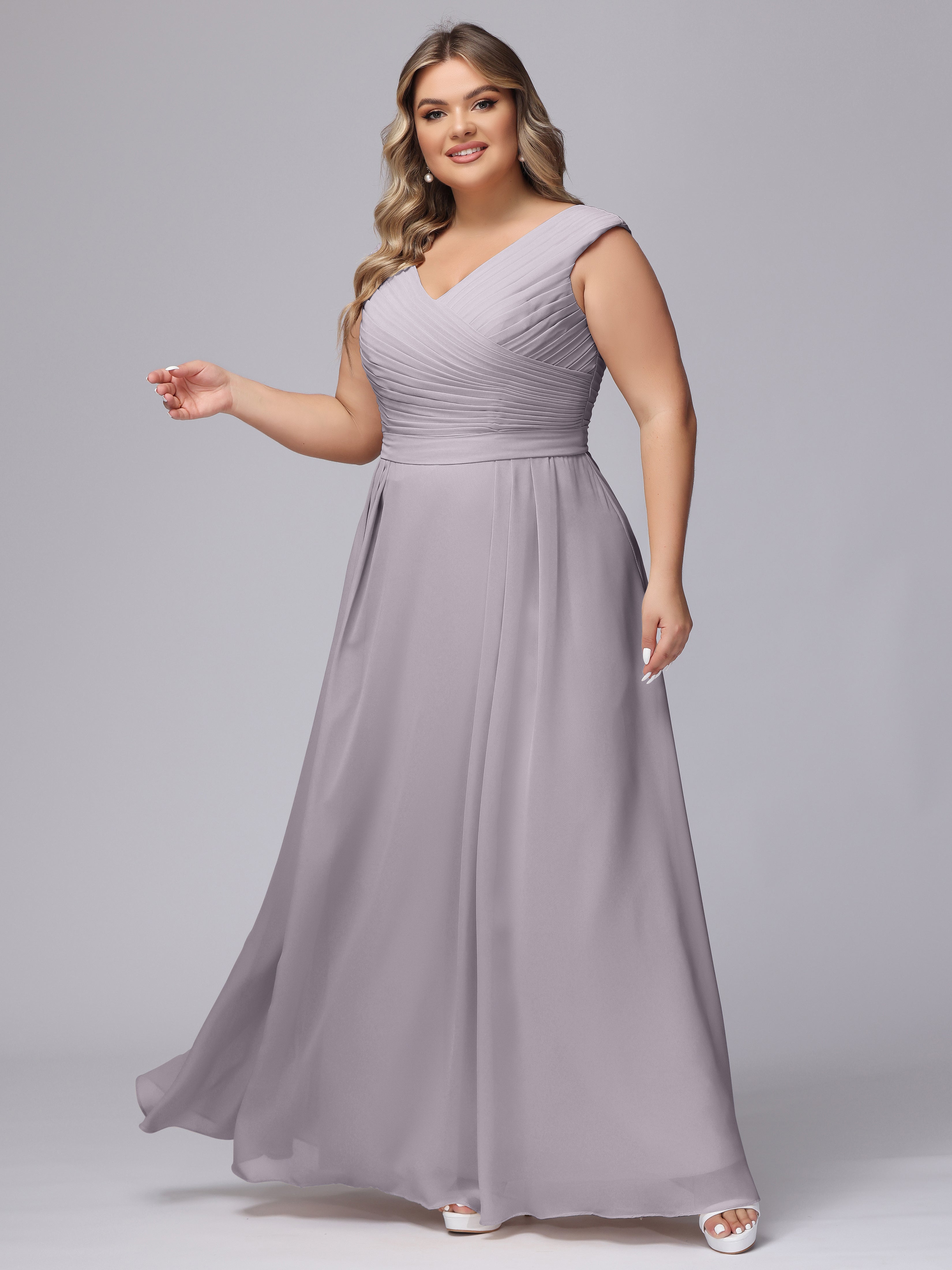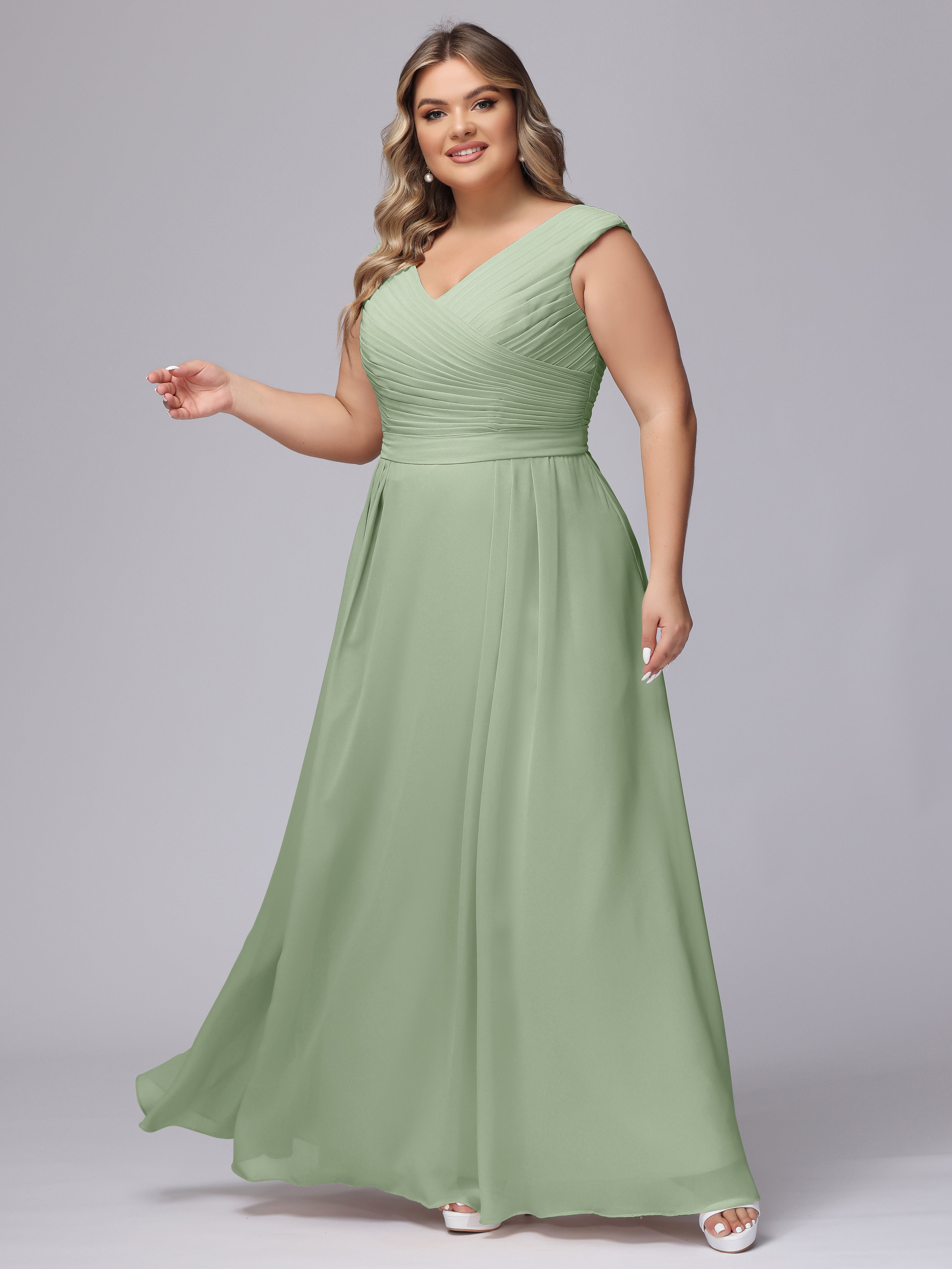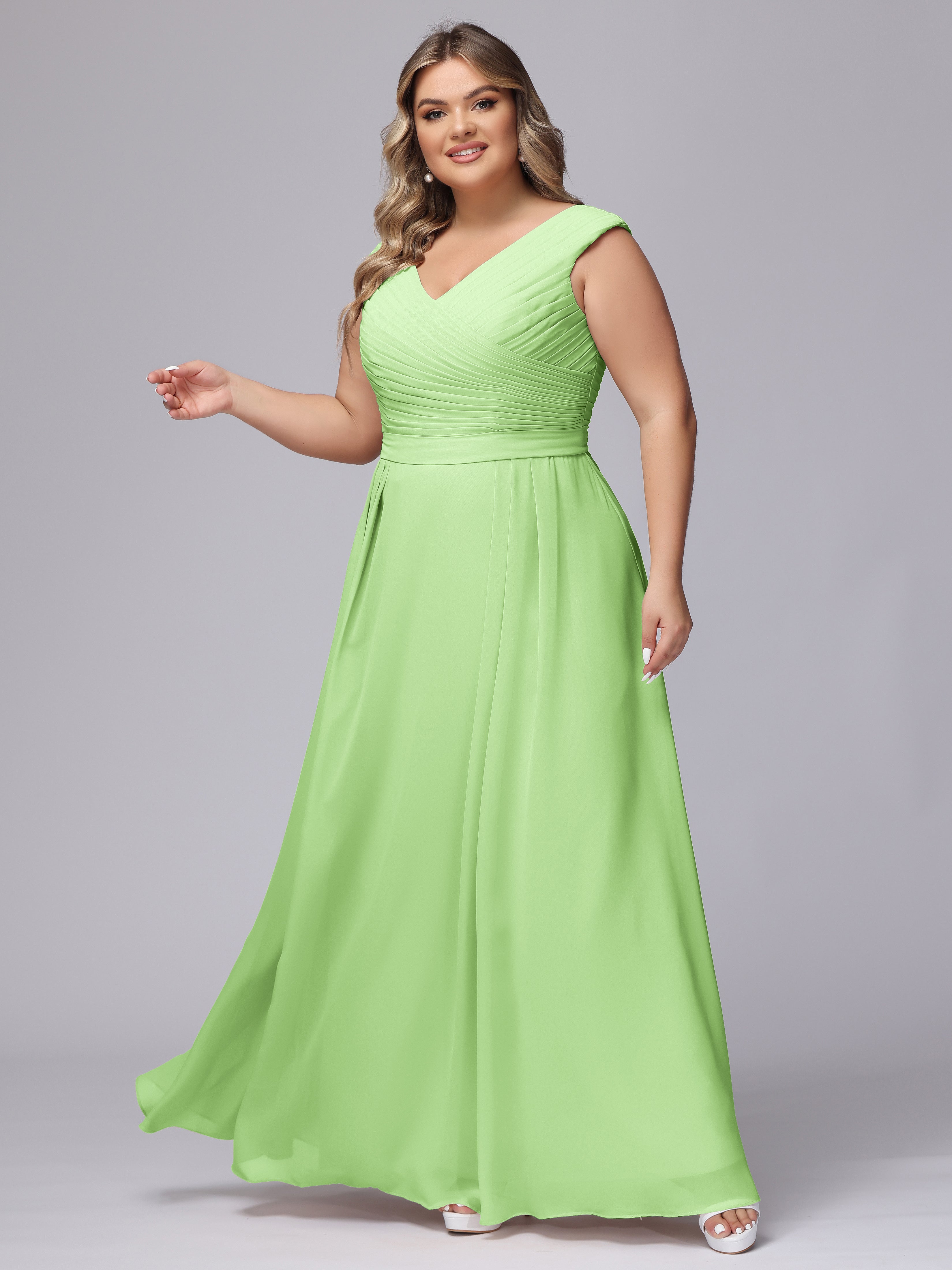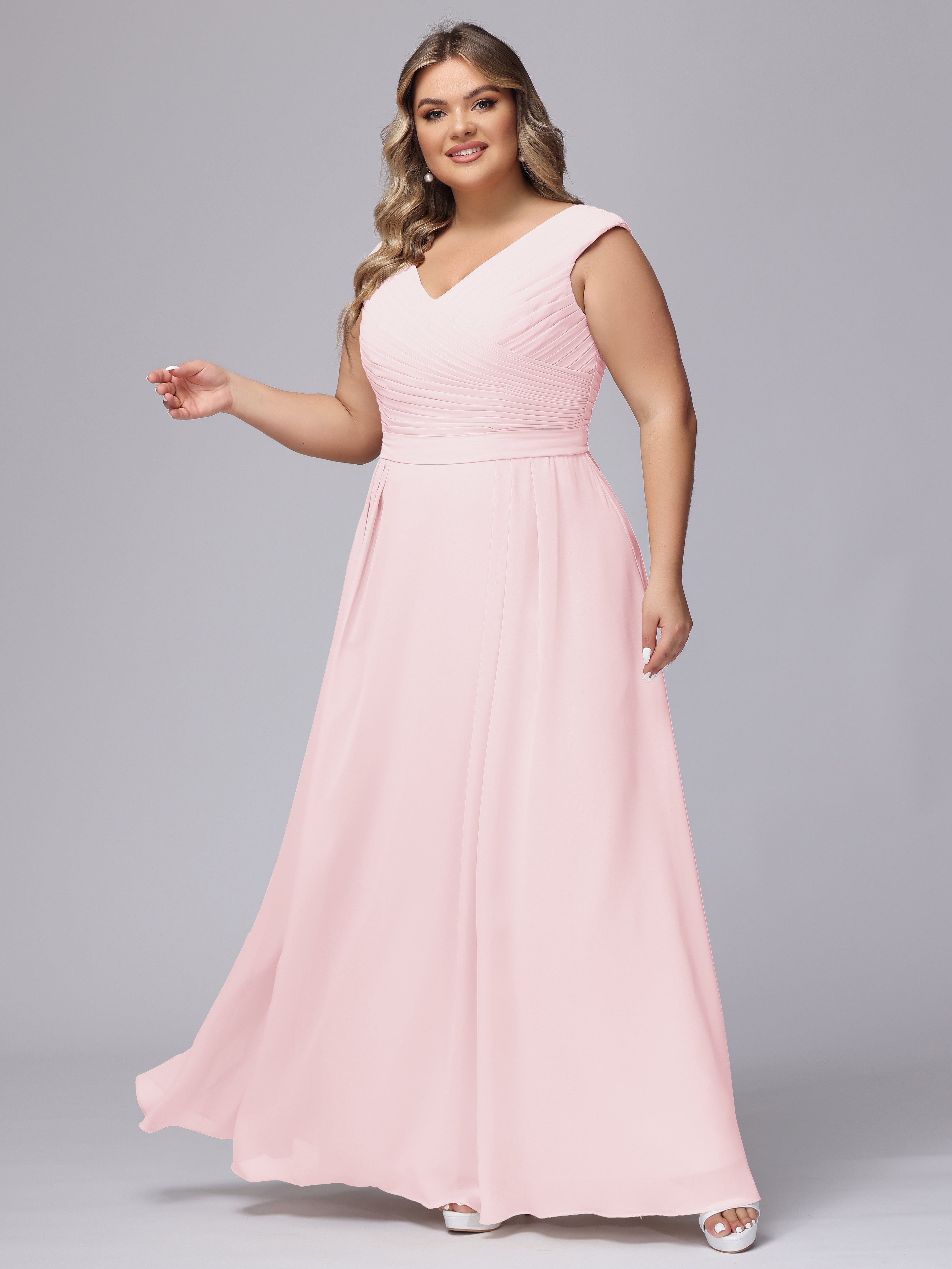 V-Back Plus Size Chiffon Bridesmaid Dress